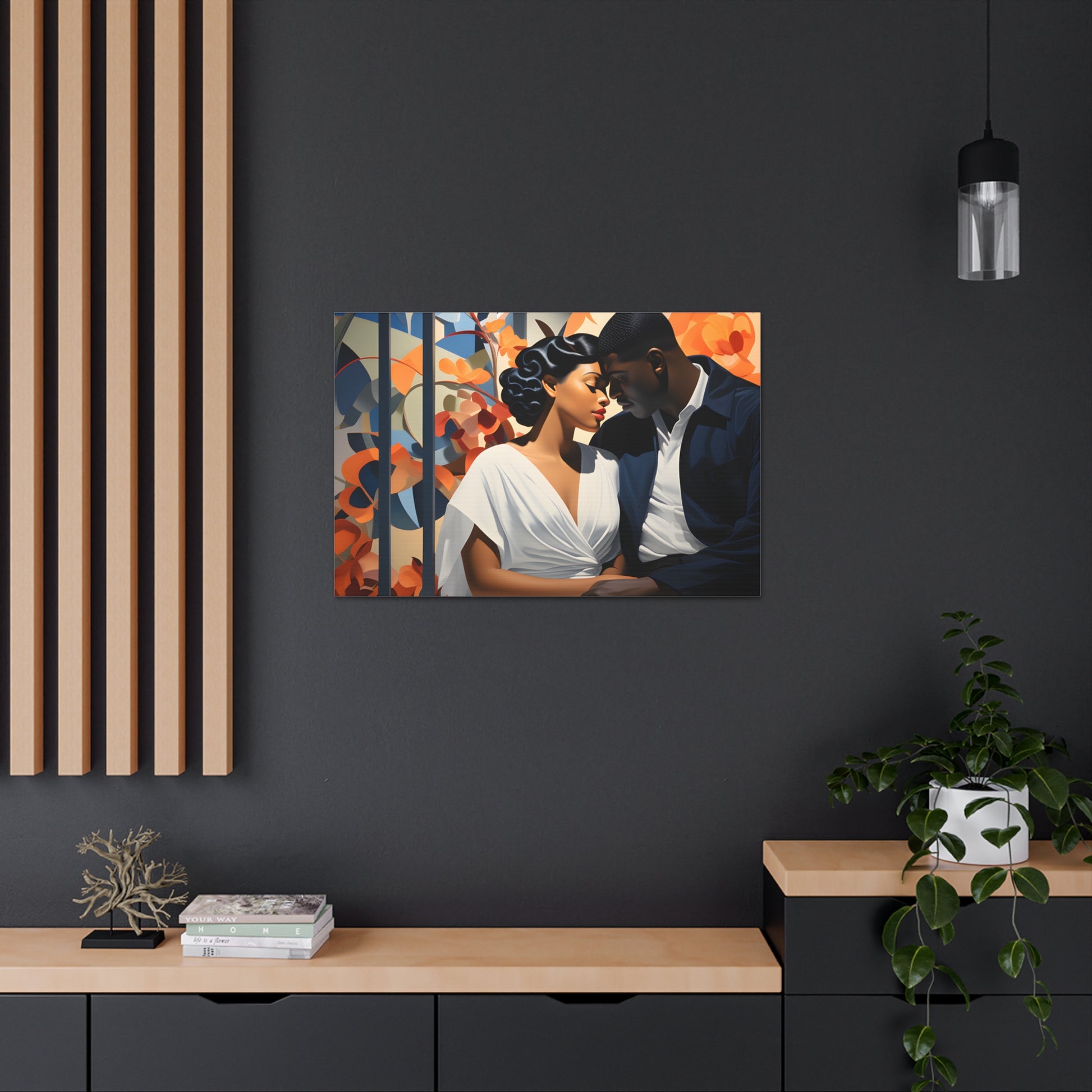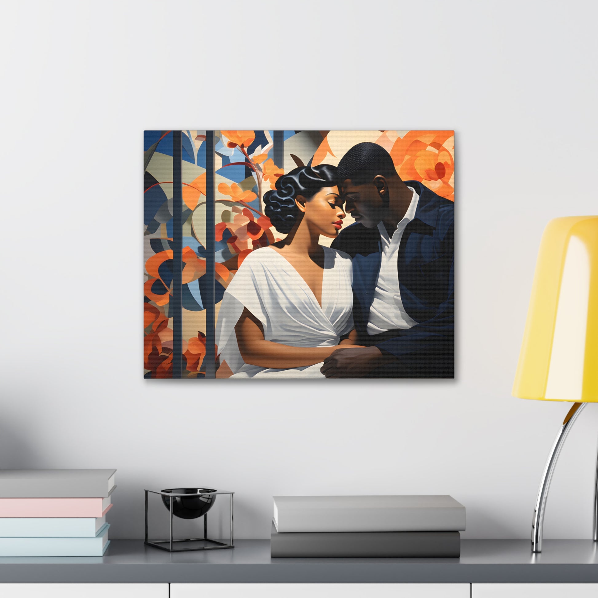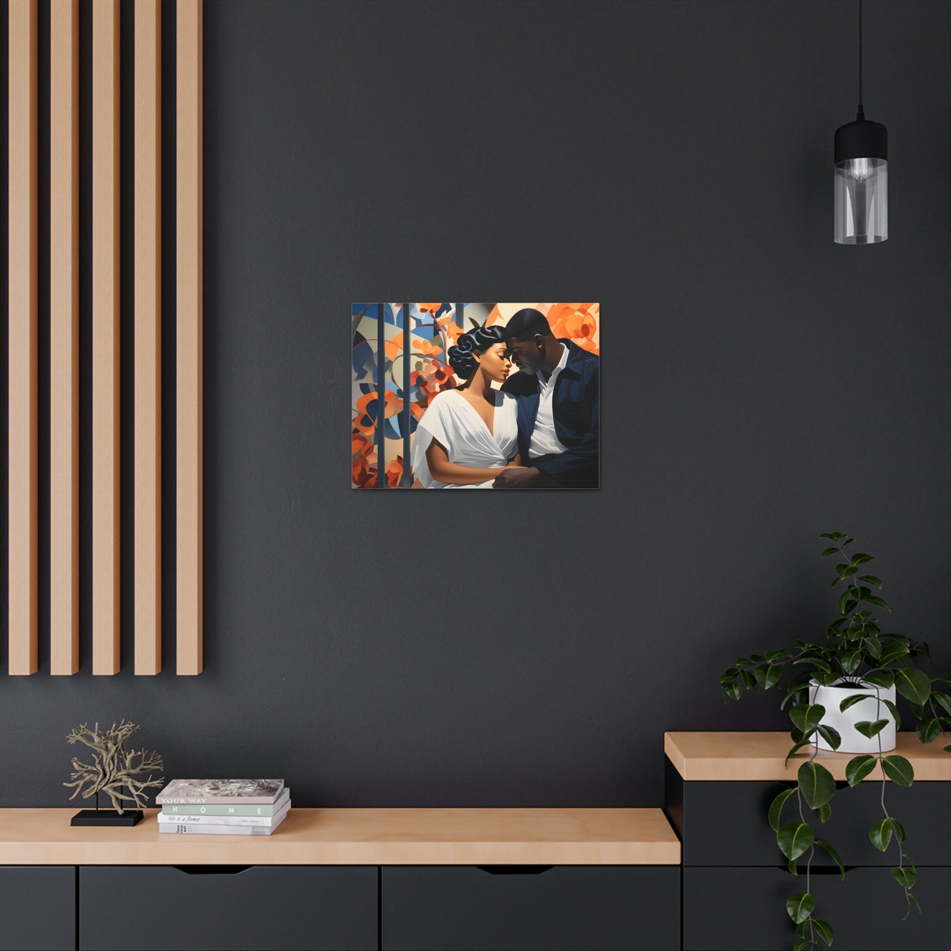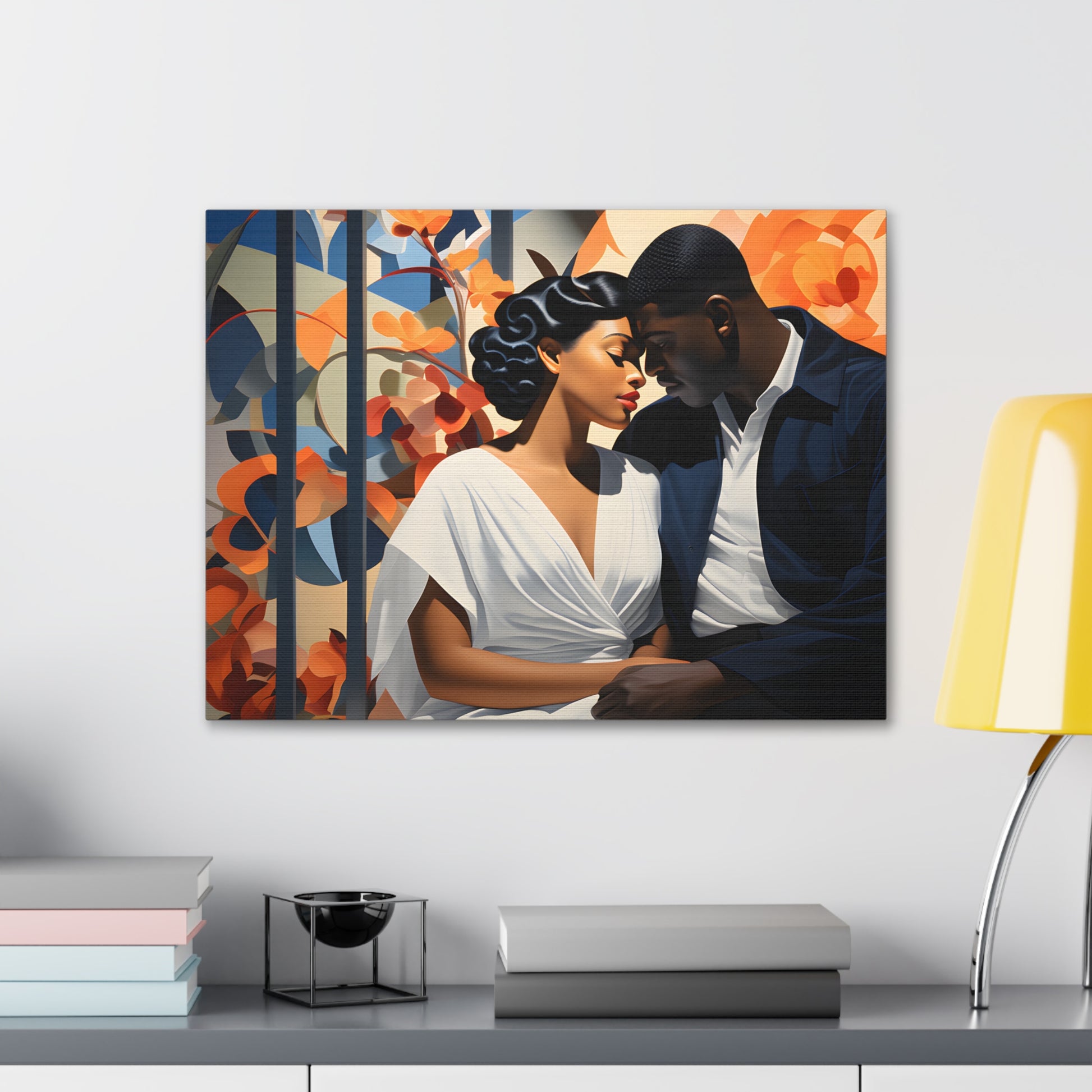 Elevate your space with "A Splash of Love," a vibrant canvas artwork capturing the essence of a passionate embrace between a couple amidst a colorful display of affection.