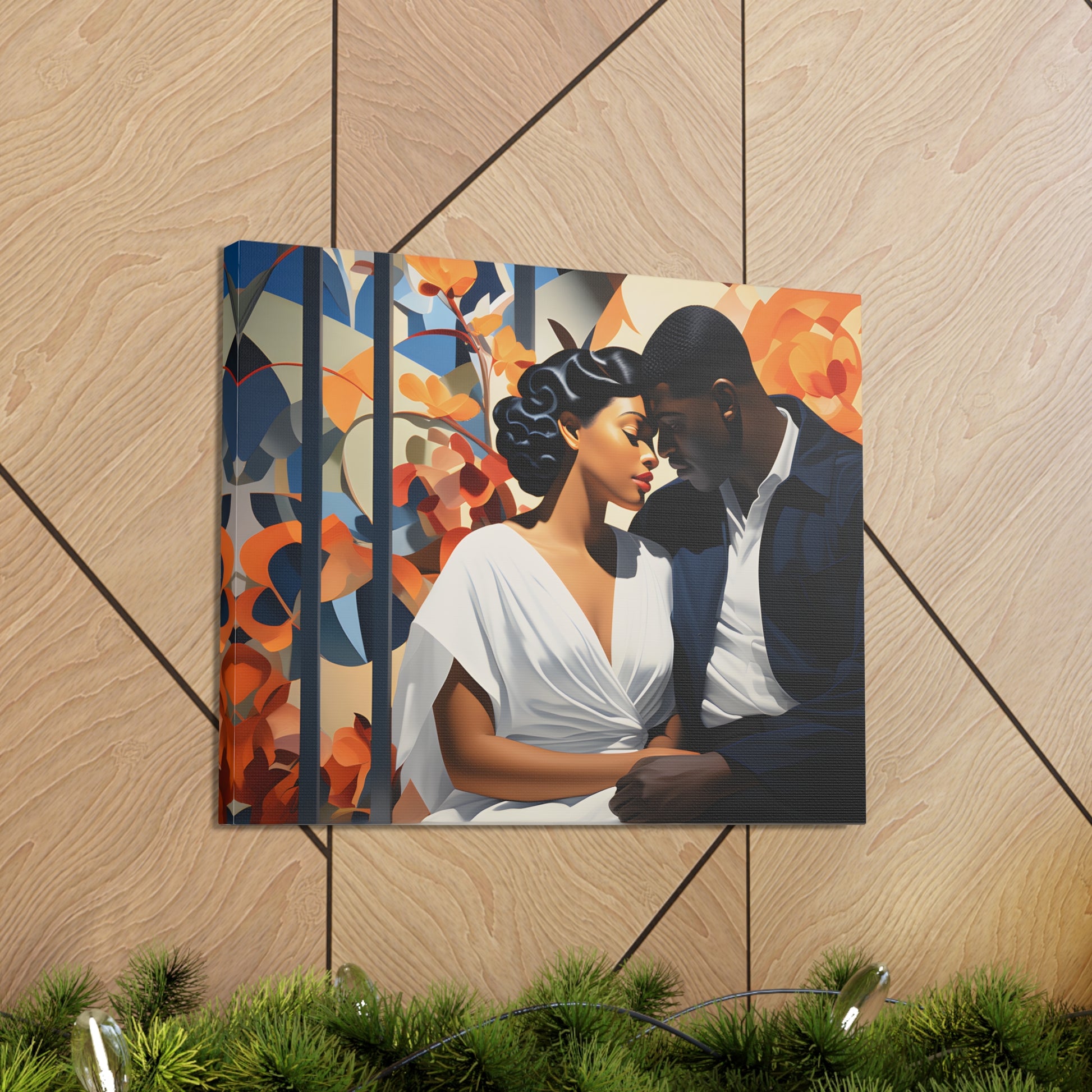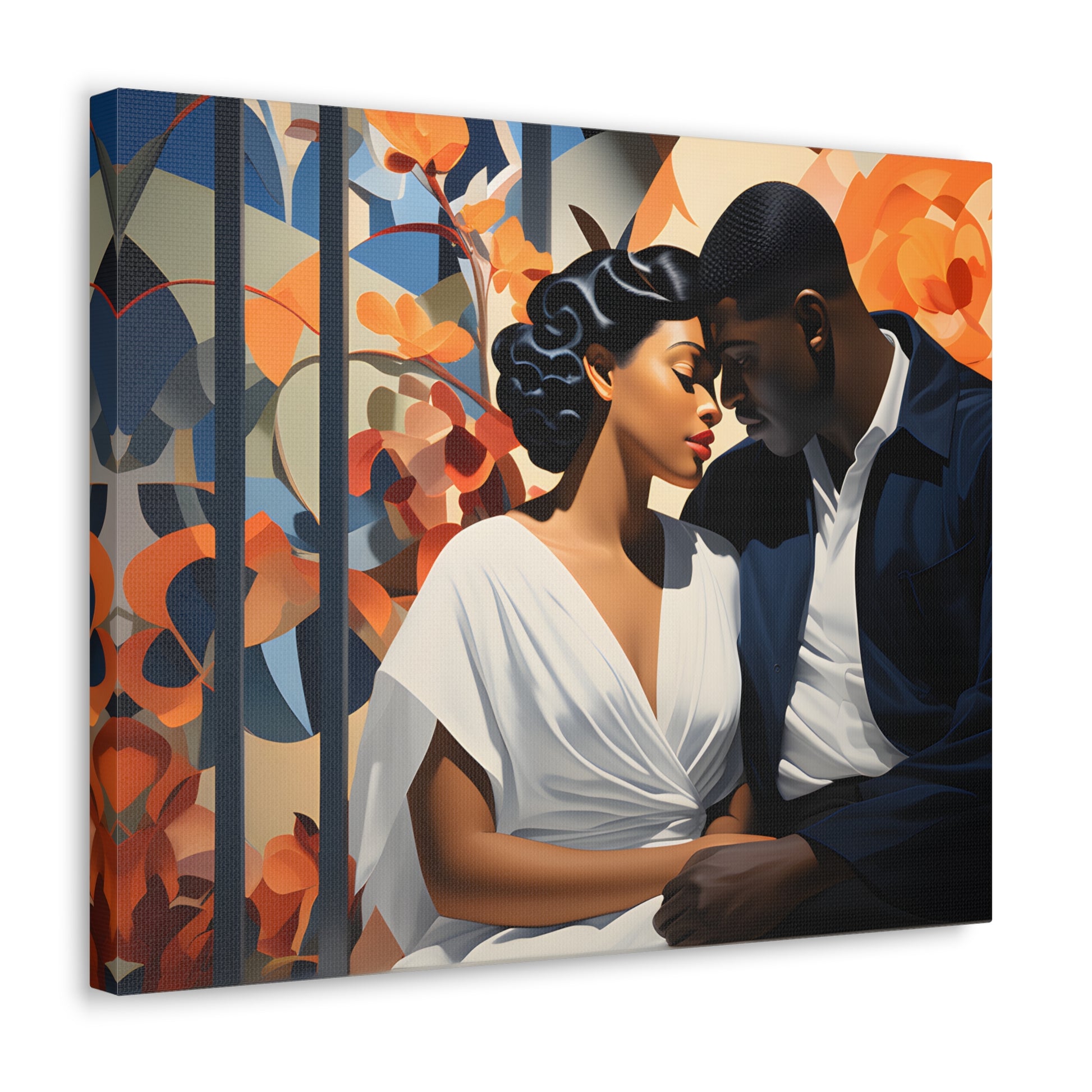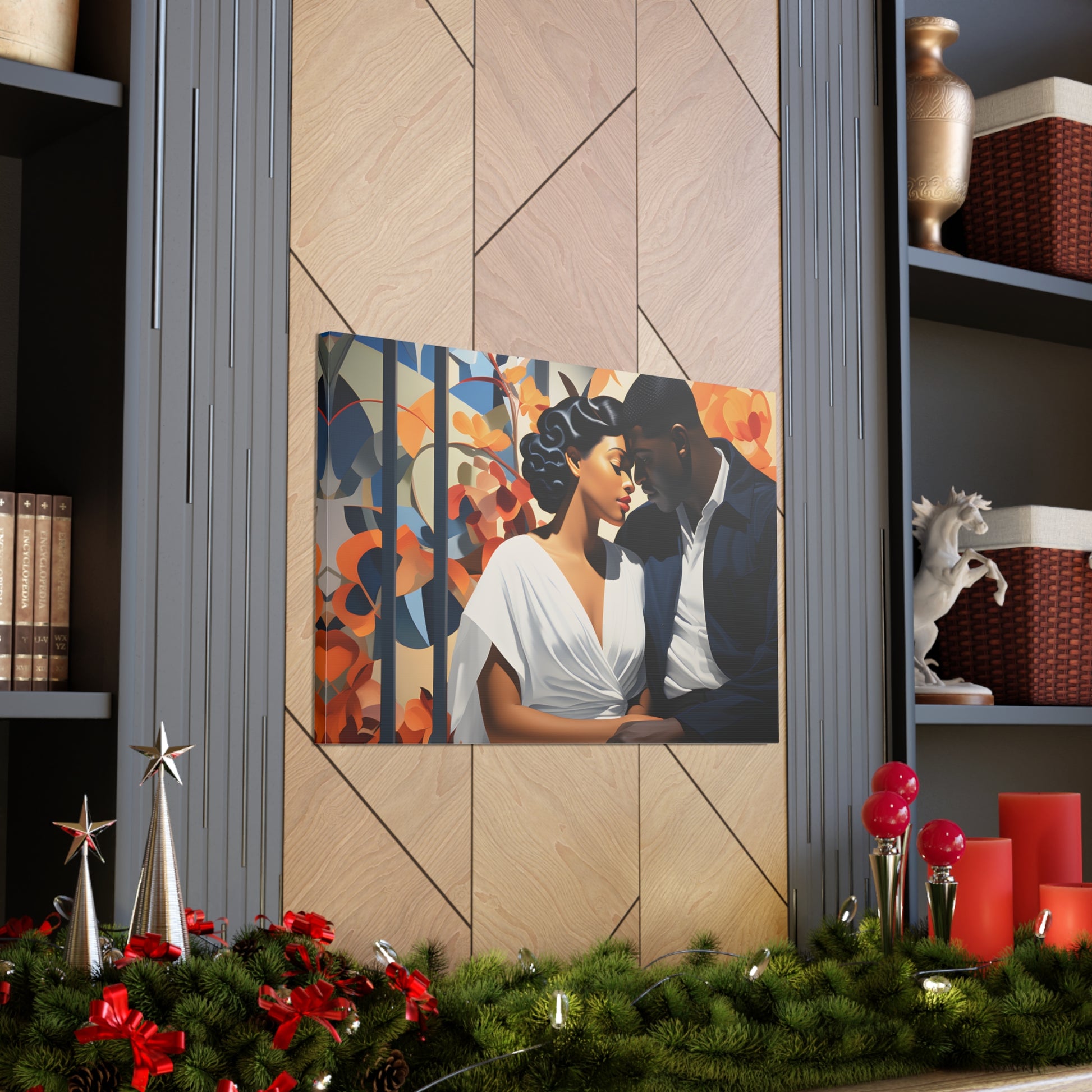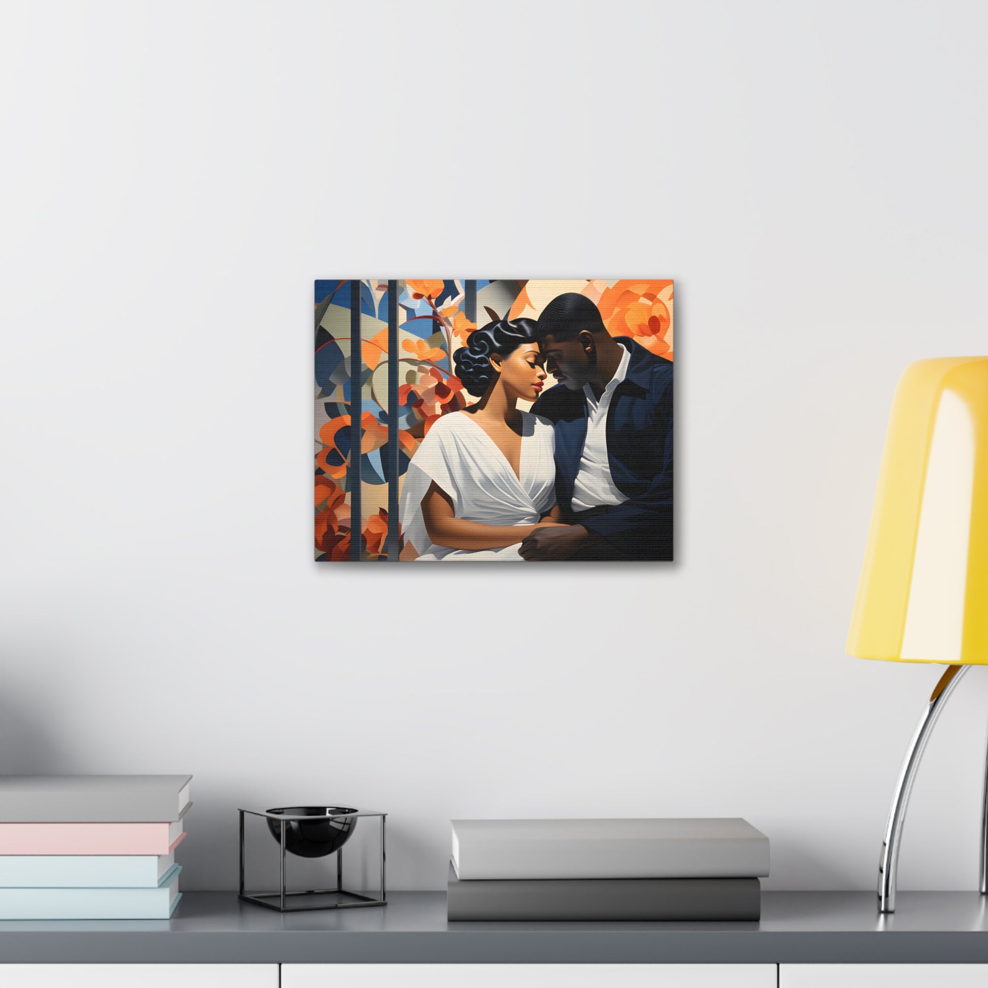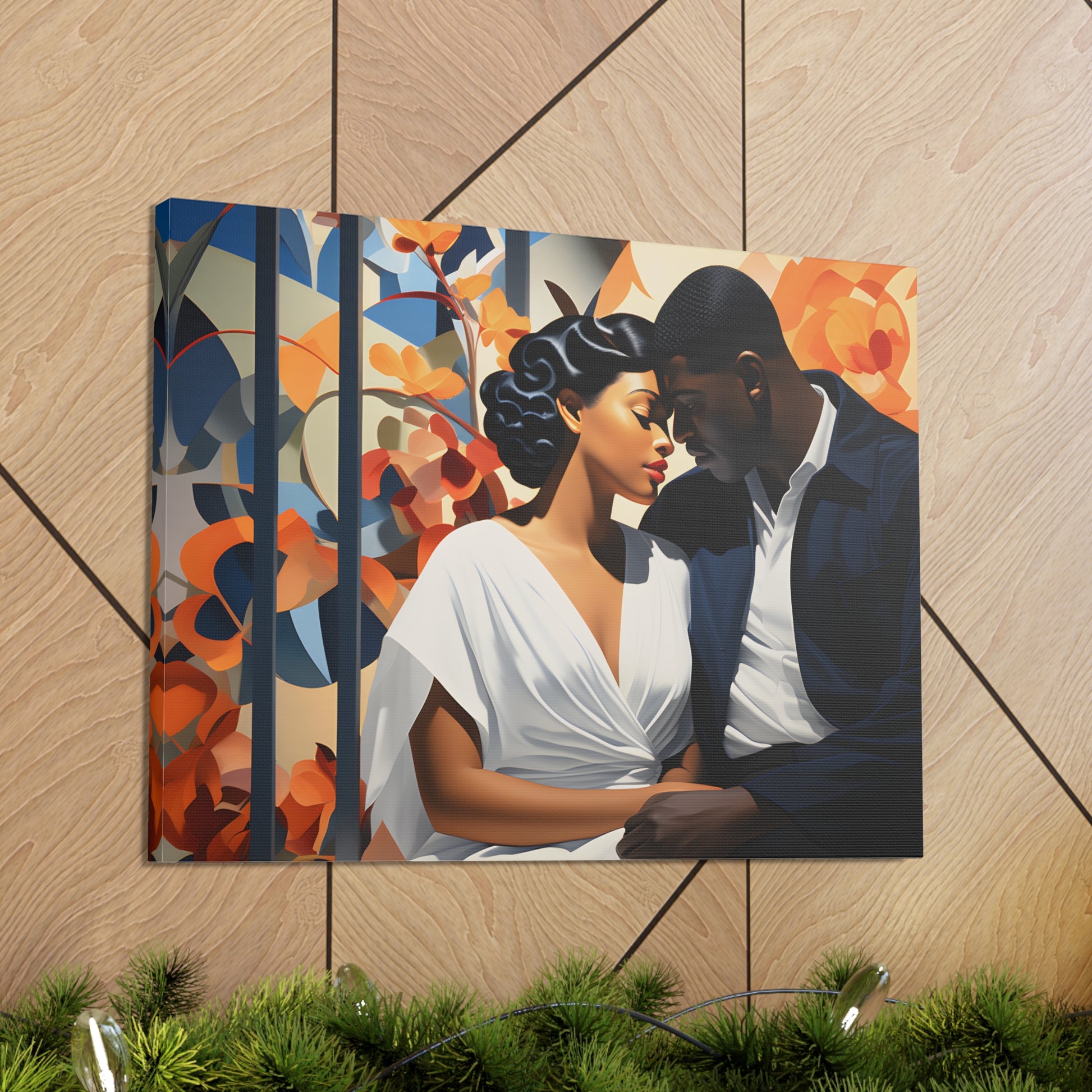 Elevate your space with "A Splash of Love," a vibrant canvas artwork capturing the essence of a passionate embrace between a couple amidst a colorful display of affection.