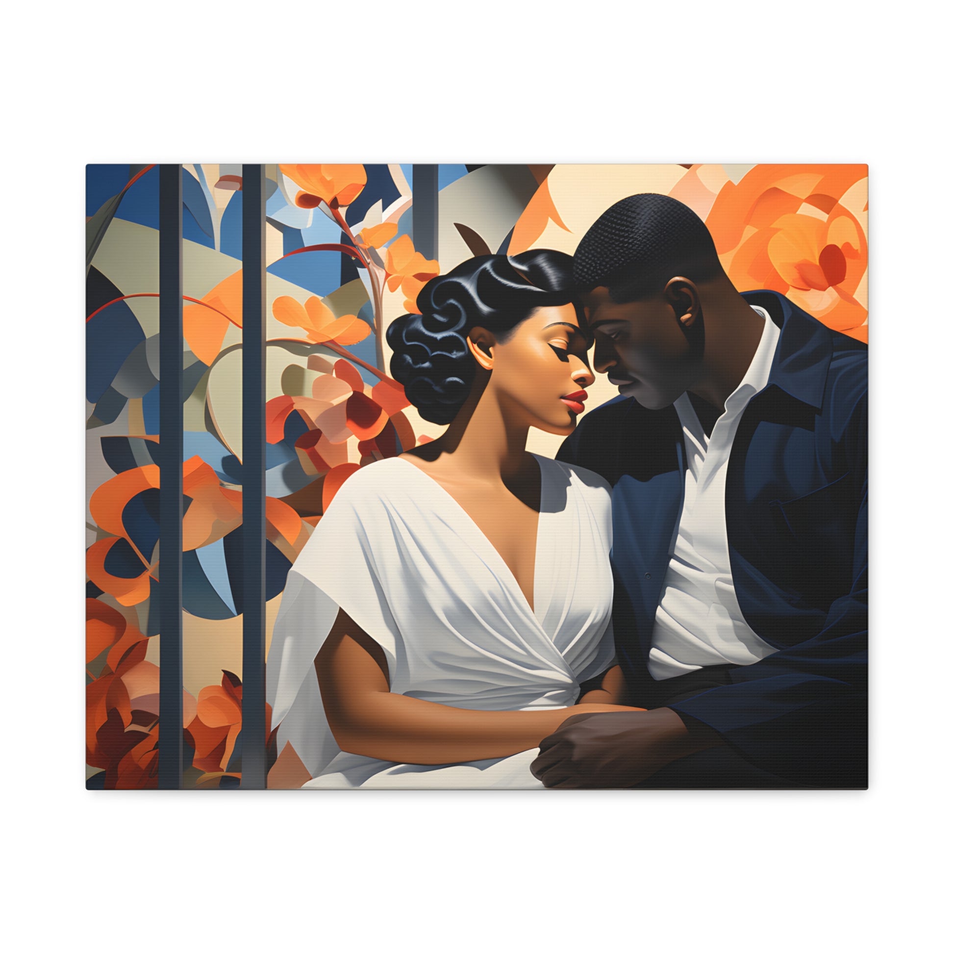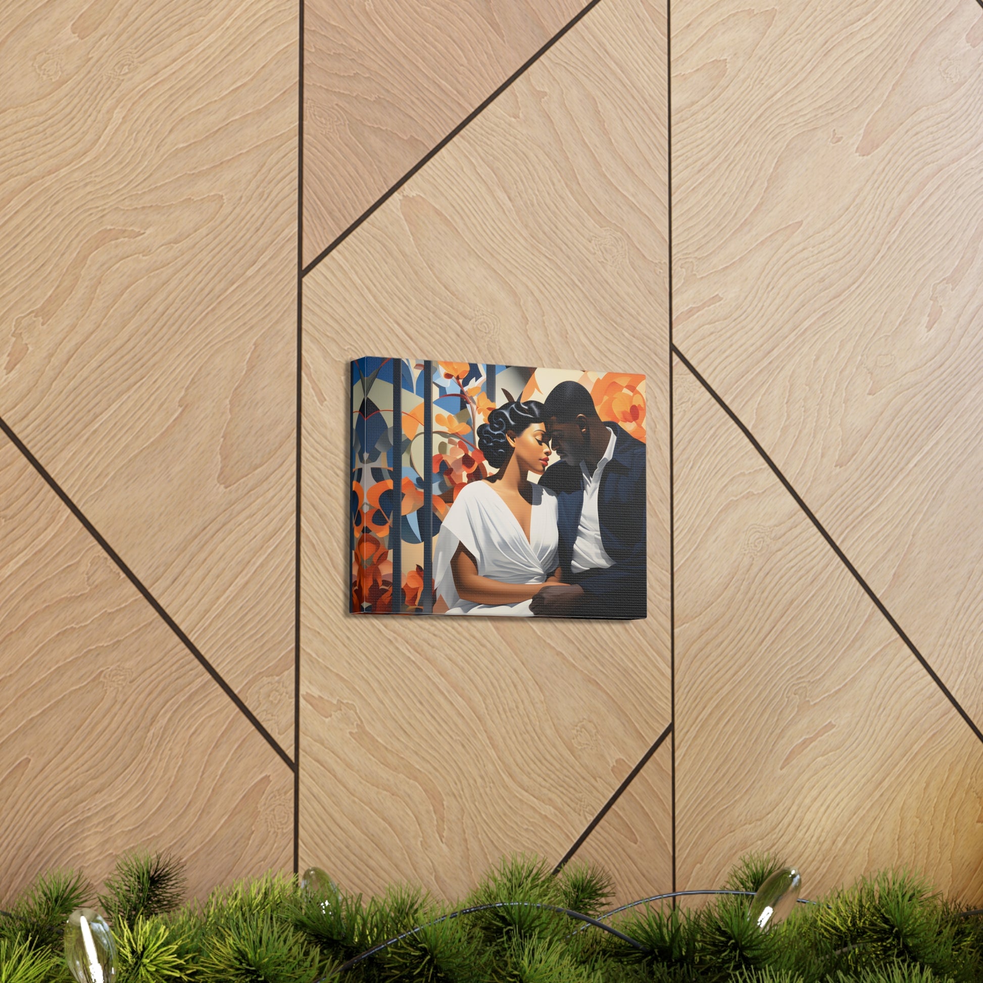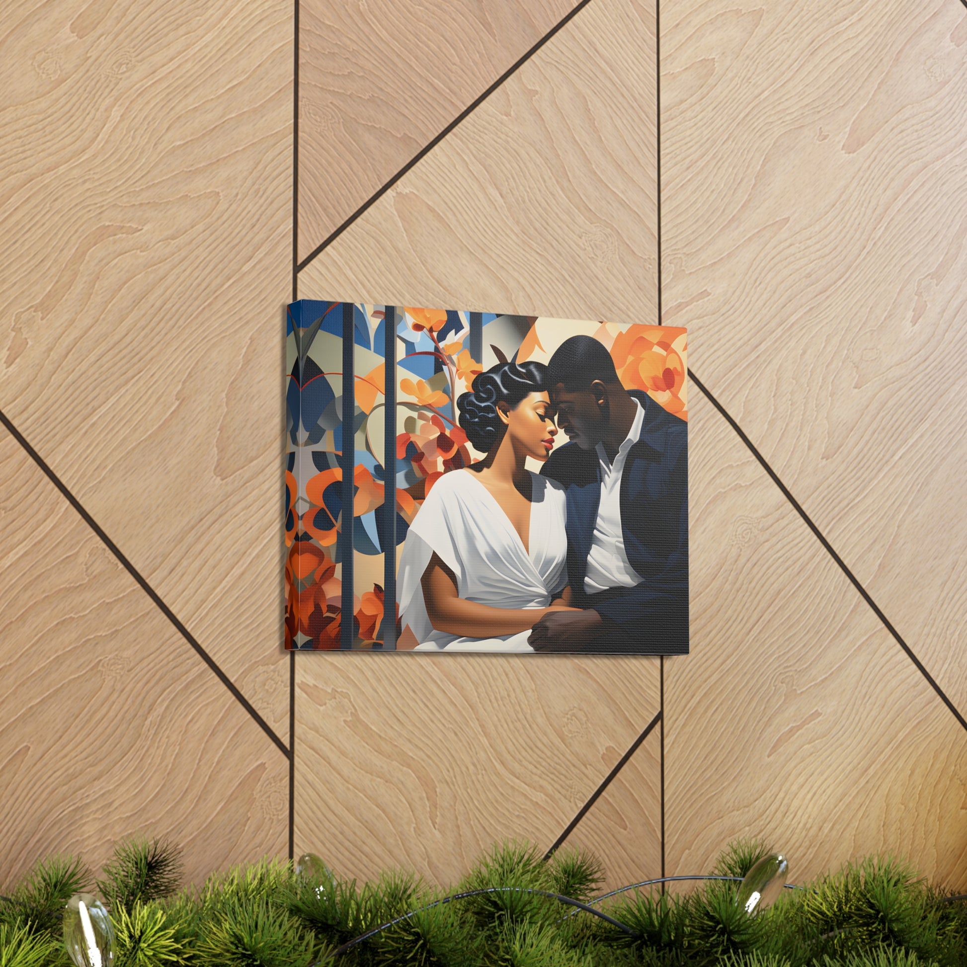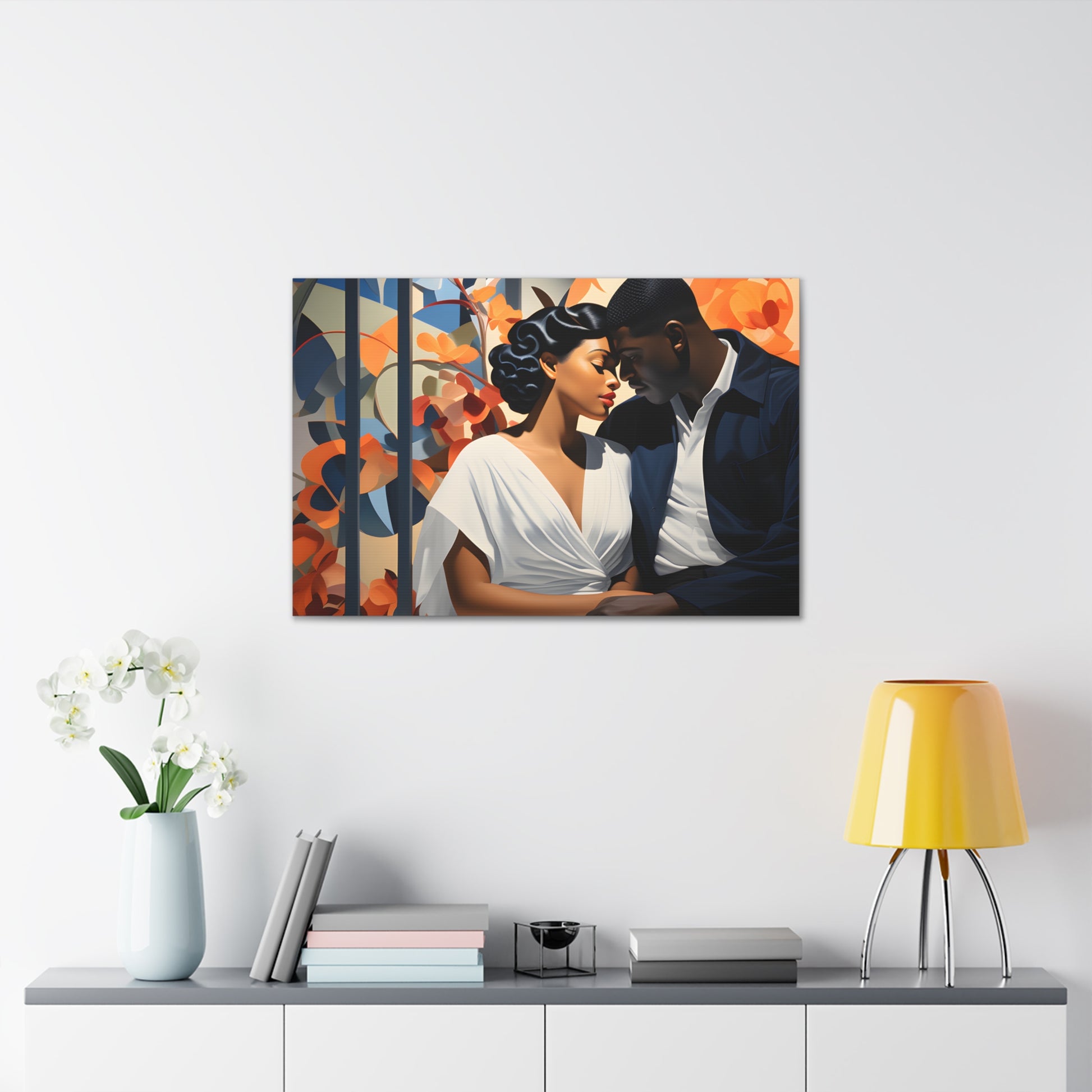 Elevate your space with "A Splash of Love," a vibrant canvas artwork capturing the essence of a passionate embrace between a couple amidst a colorful display of affection.
