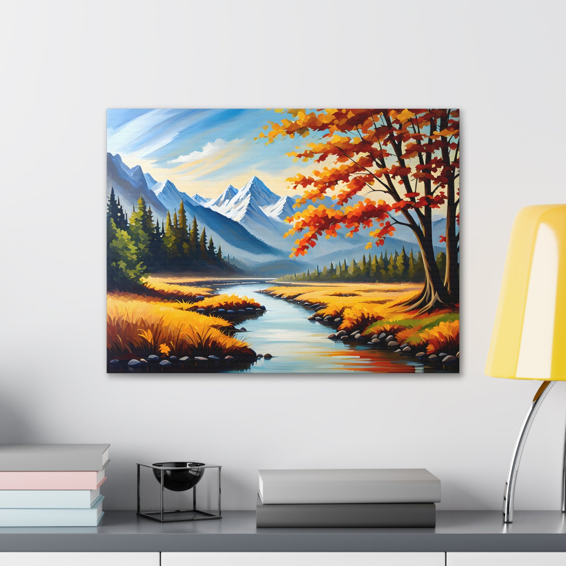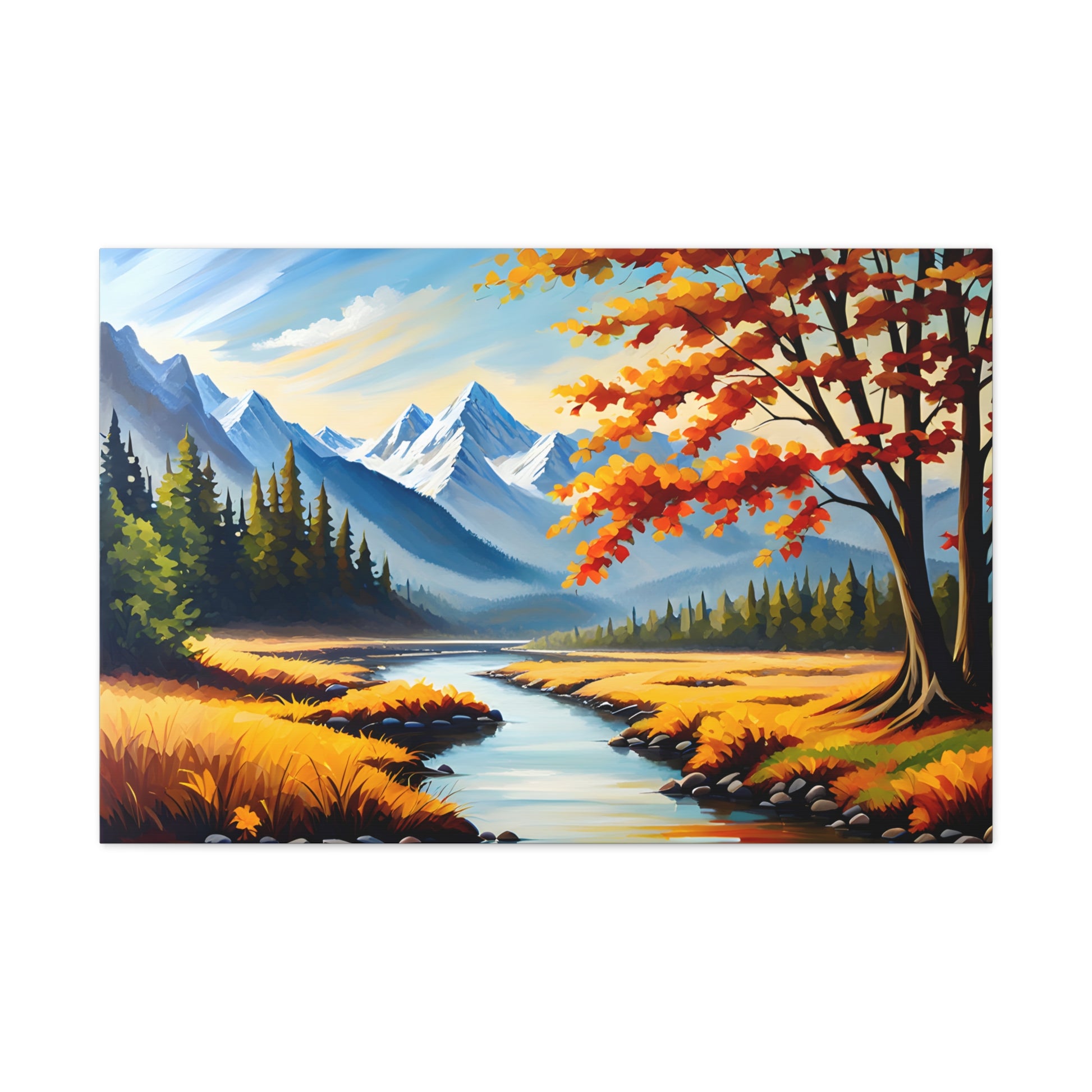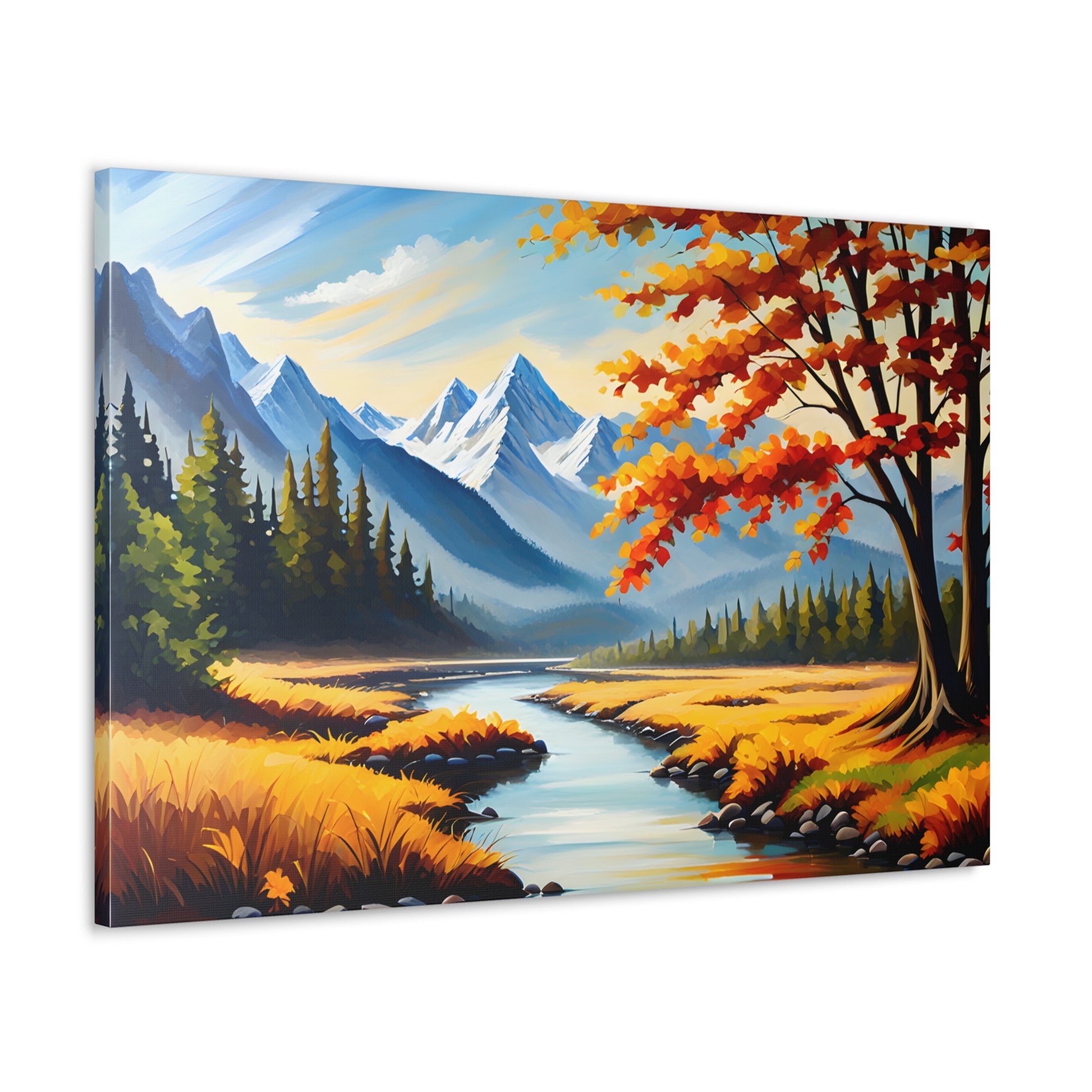 "Autumn Canopy" takes you into a mesmerizing forest during the peak of fall, with vibrant shades of red, orange, and gold. The light filtering through the leaves creates a stunning interplay of colors, perfect for adding warmth and nature to your space.