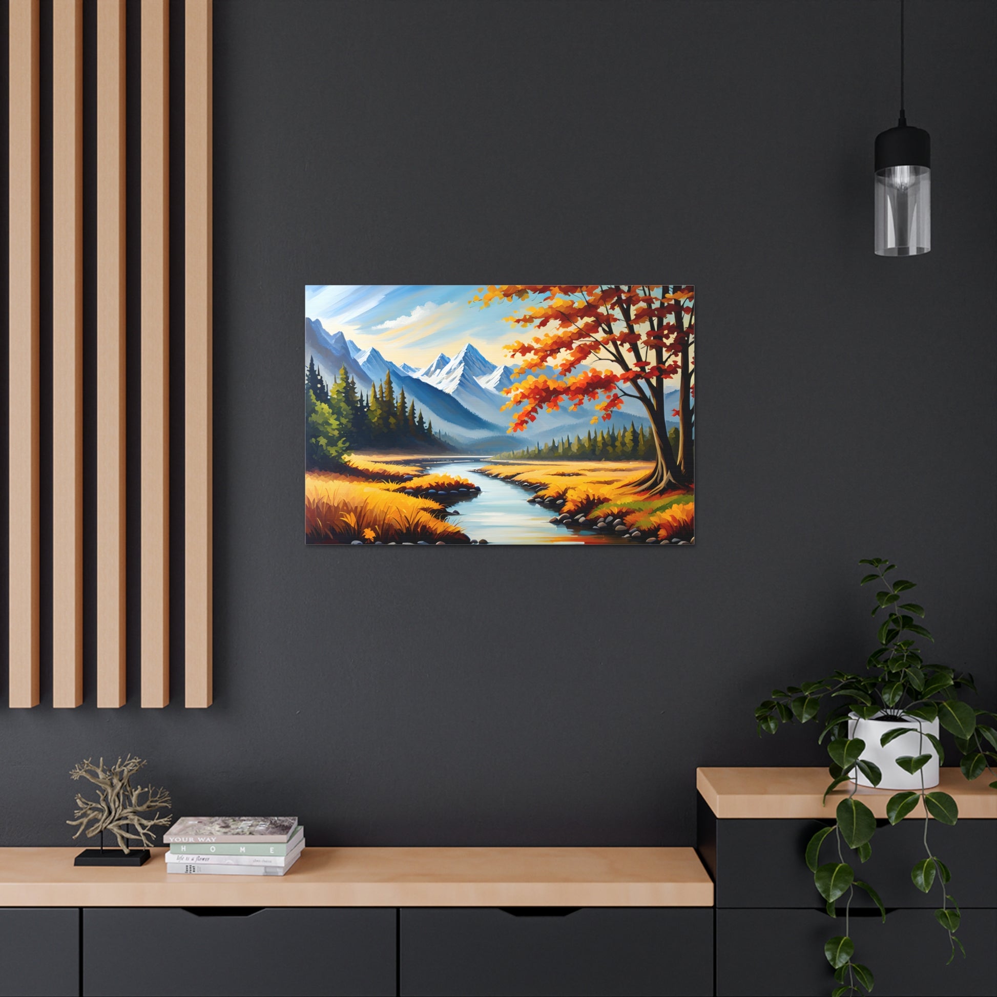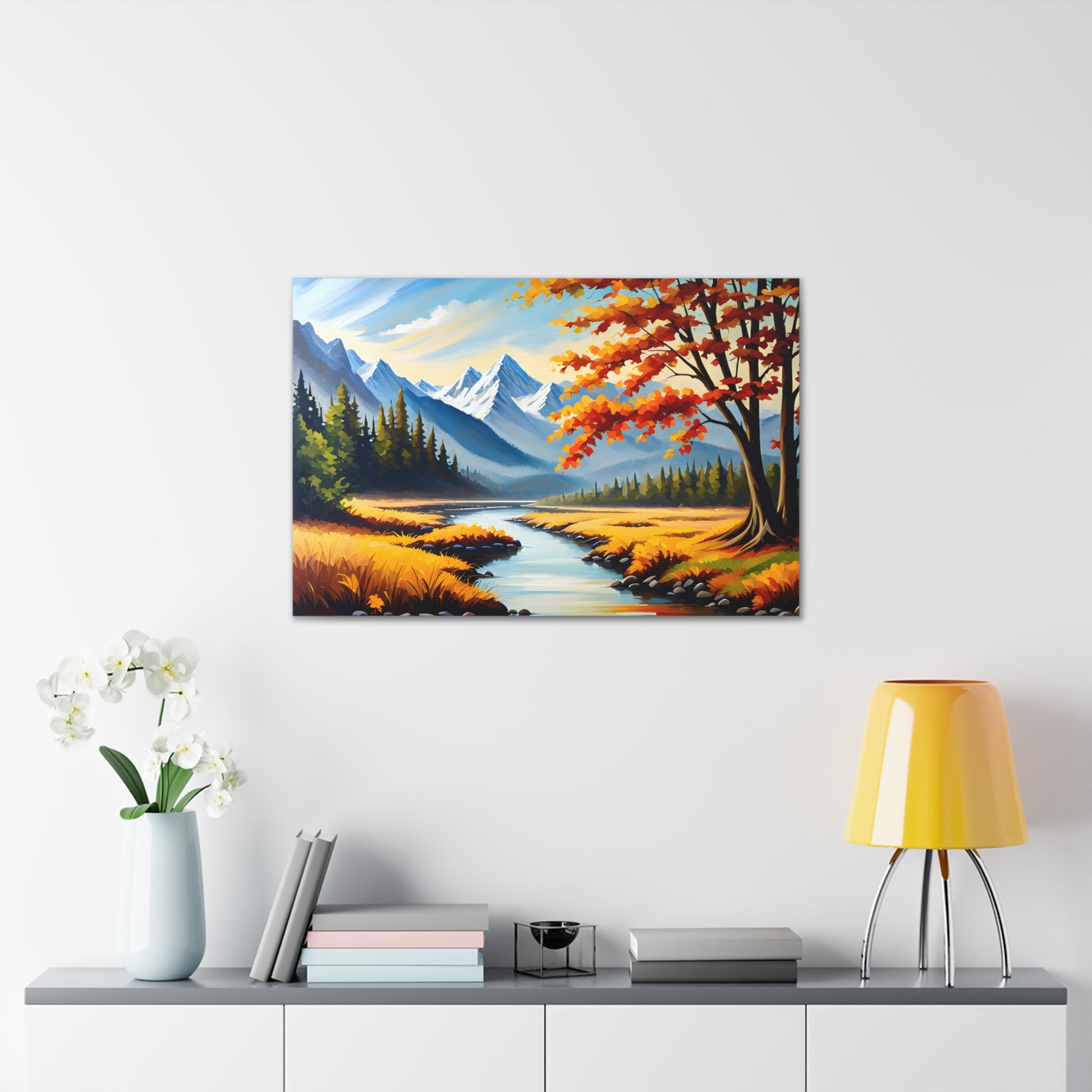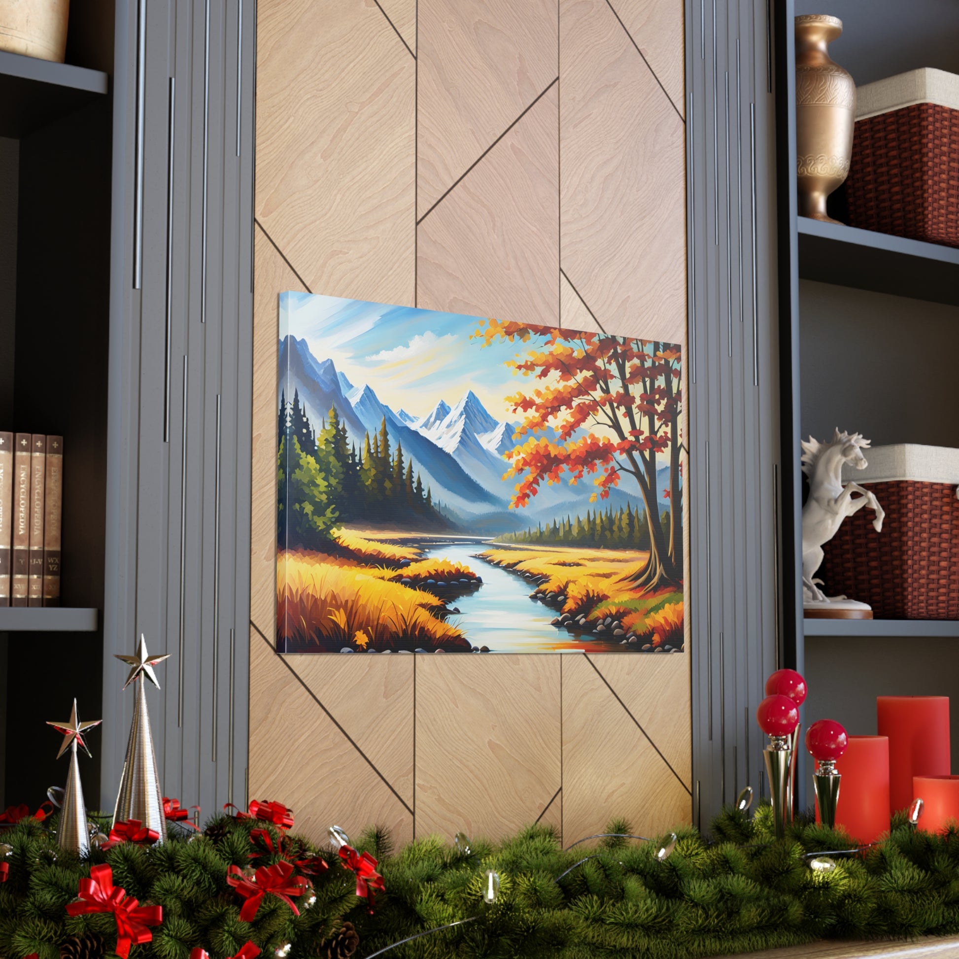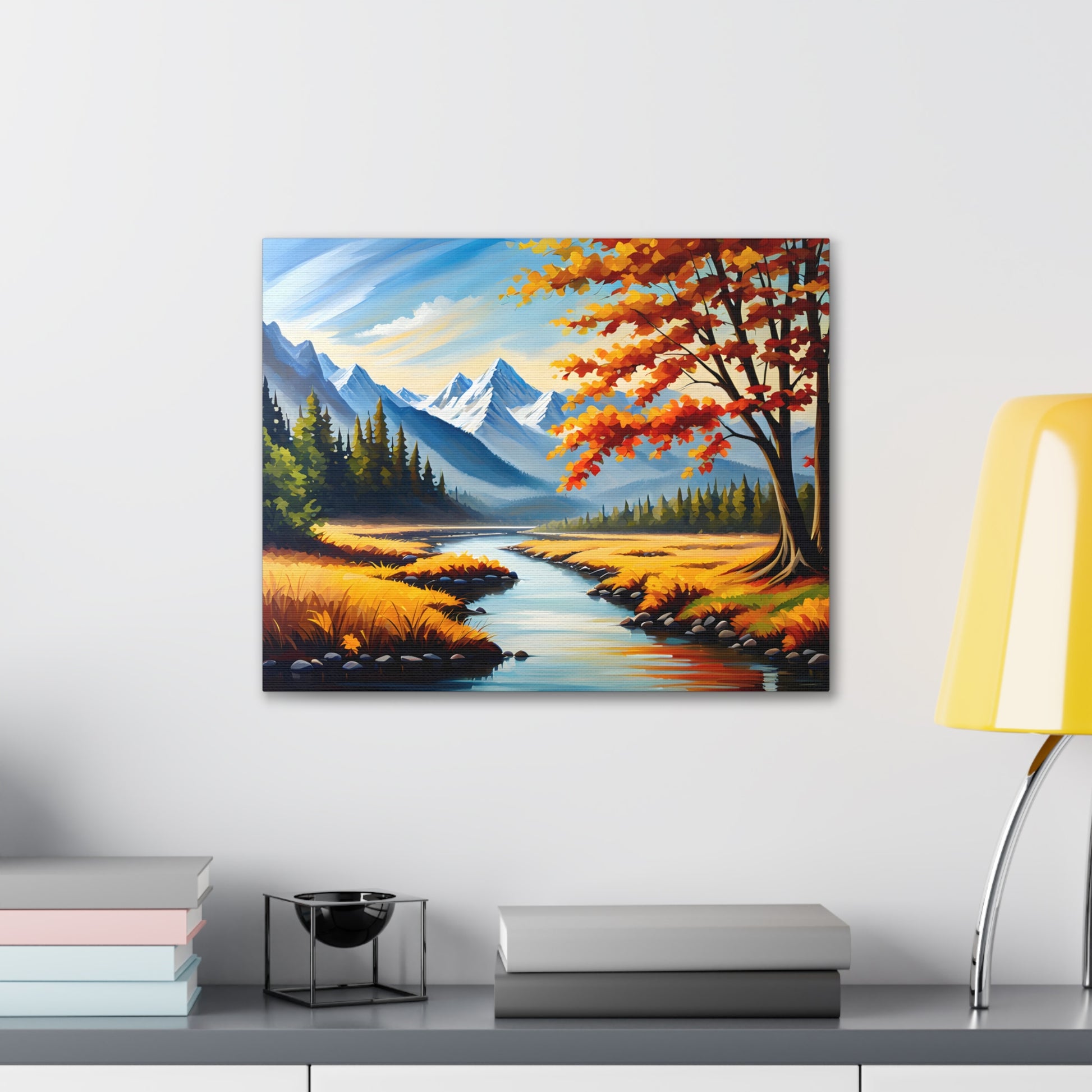 "Autumn Canopy" takes you into a mesmerizing forest during the peak of fall, with vibrant shades of red, orange, and gold. The light filtering through the leaves creates a stunning interplay of colors, perfect for adding warmth and nature to your space.