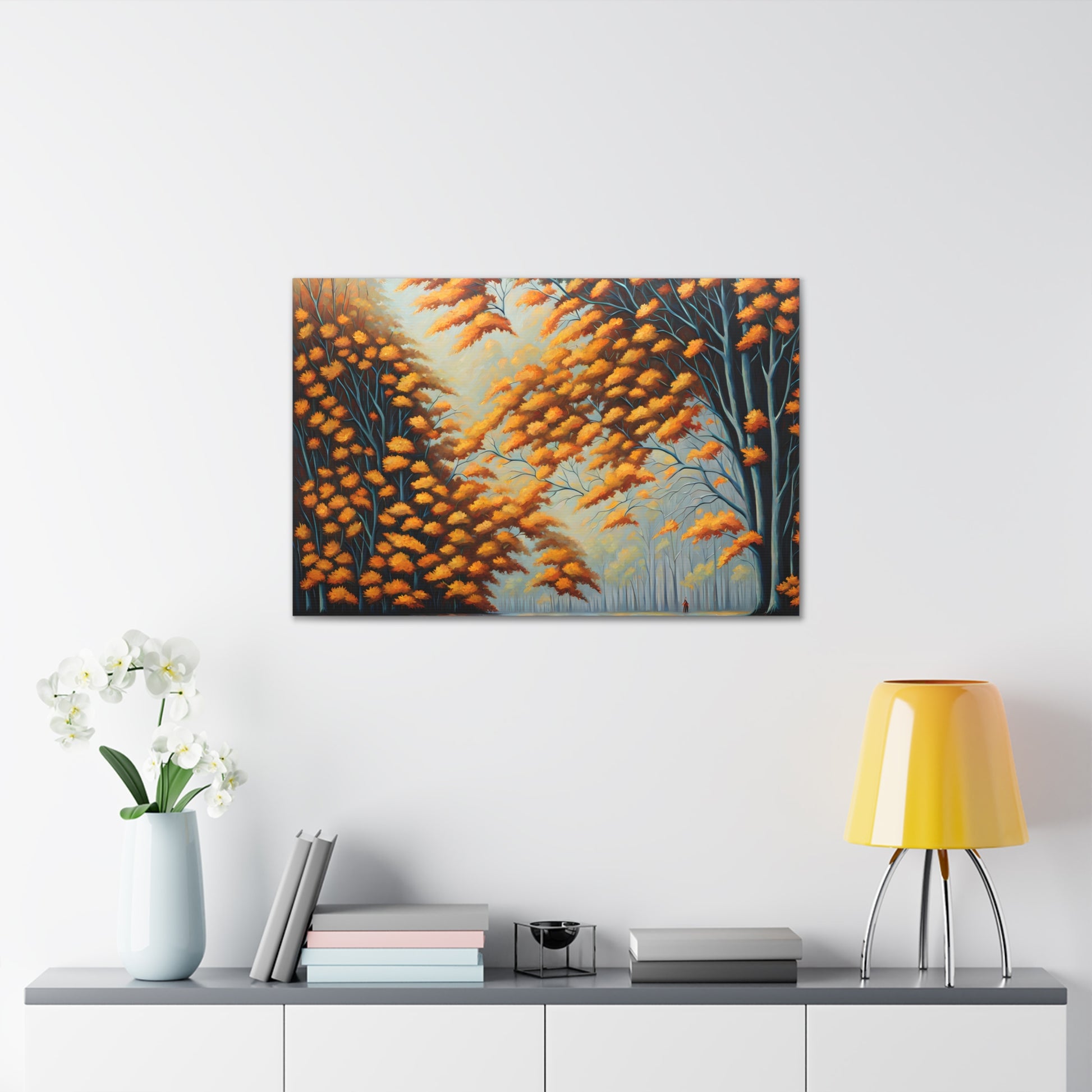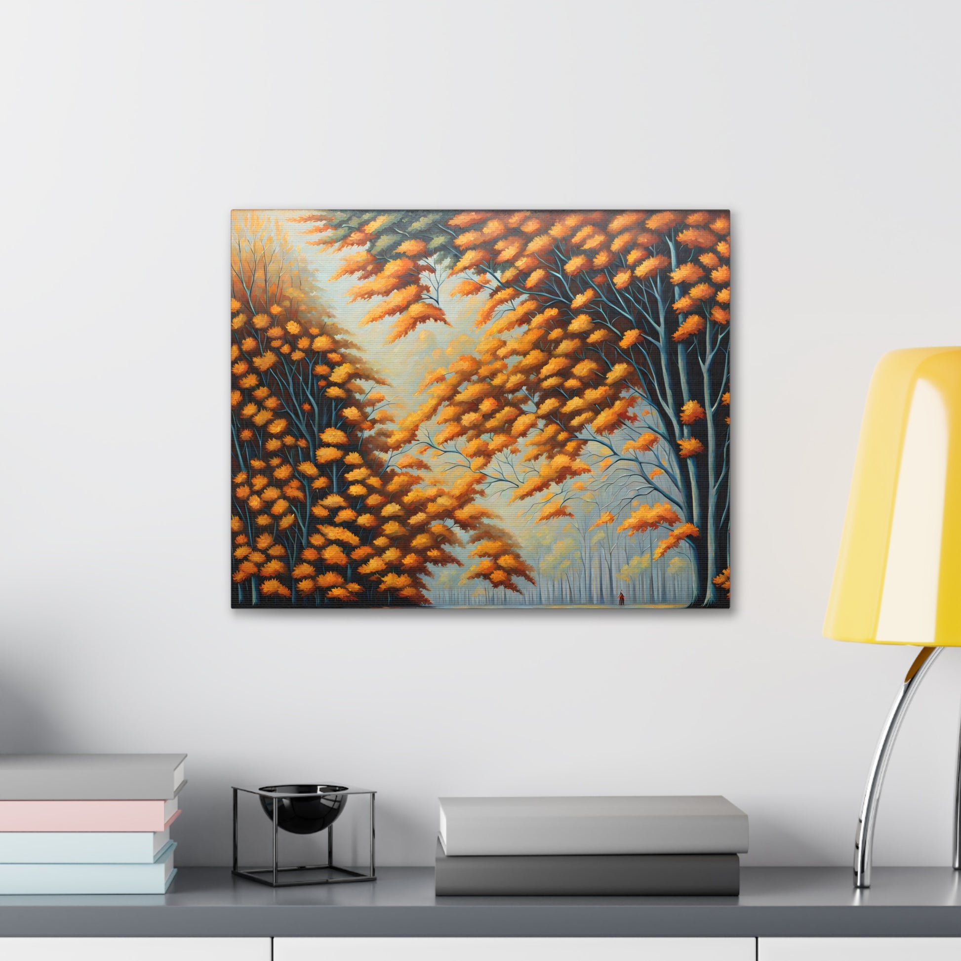 Immerse yourself in the serene beauty of "Autumn Fields," a classic oil painting that captures the vibrant colors of fall. This artwork, crafted on high-quality cotton canvas, features a mesmerizing landscape of golden trees against a misty background, creating a sense of depth and tranquility. Perfect for adding a touch of nature's elegance to your home, "Autumn Fields" is designed for indoor use only.