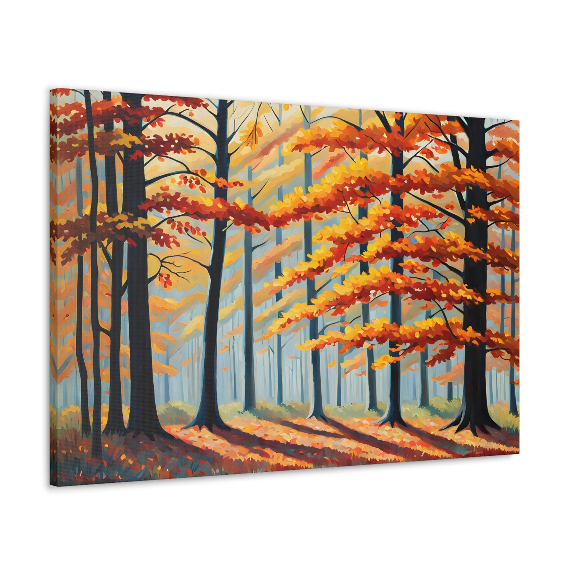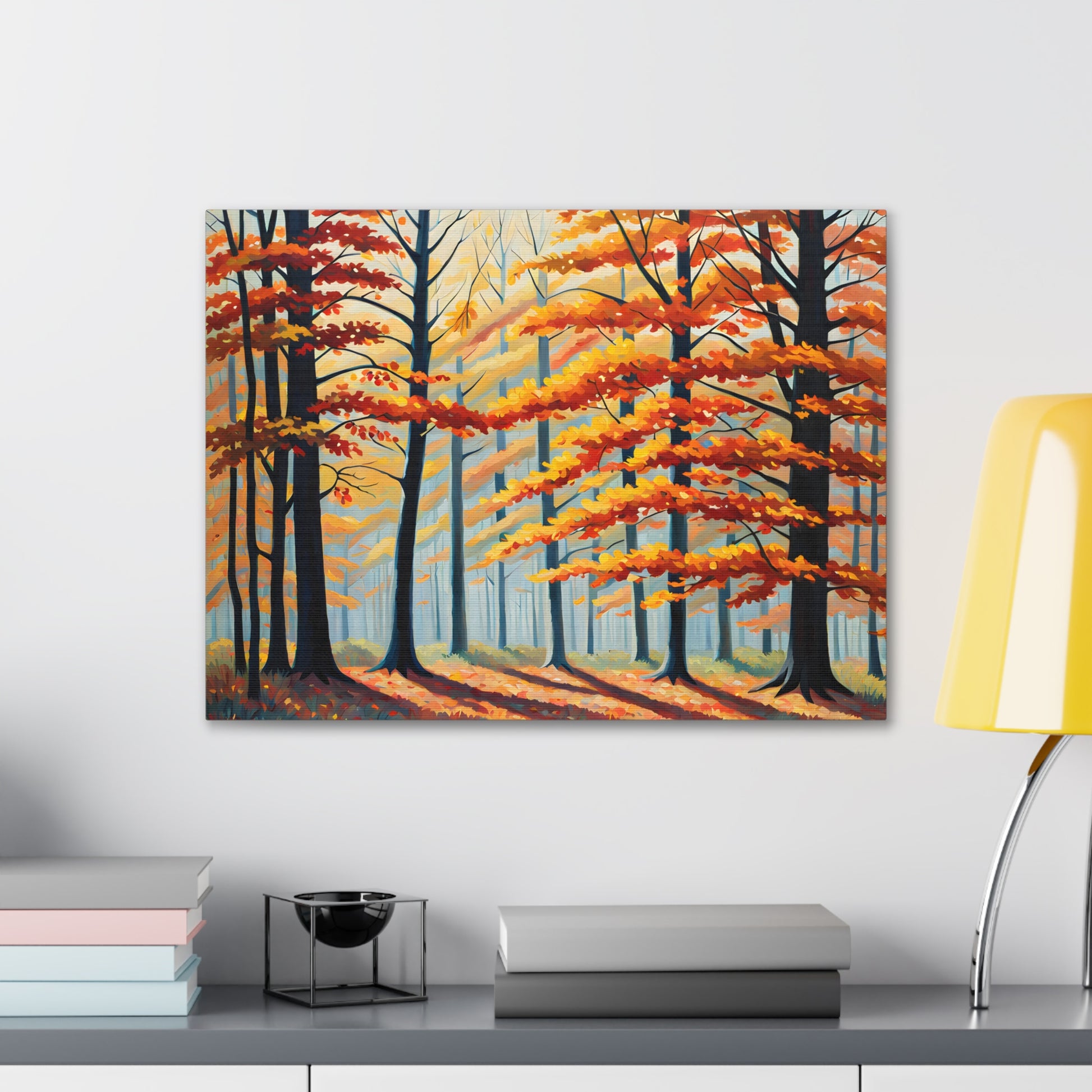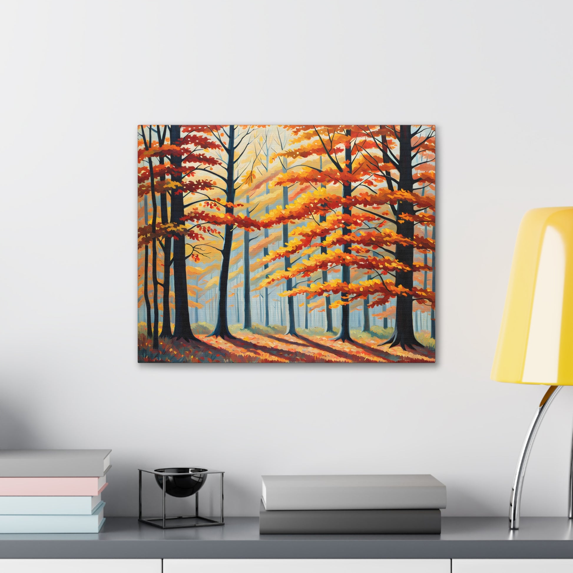 "Autumn Hues" presents a tranquil scene of a vibrant autumn landscape, with the warm colors of fall trees in full bloom. This piece captures the peaceful essence of nature and is ideal for adding a seasonal touch to your home decor.
