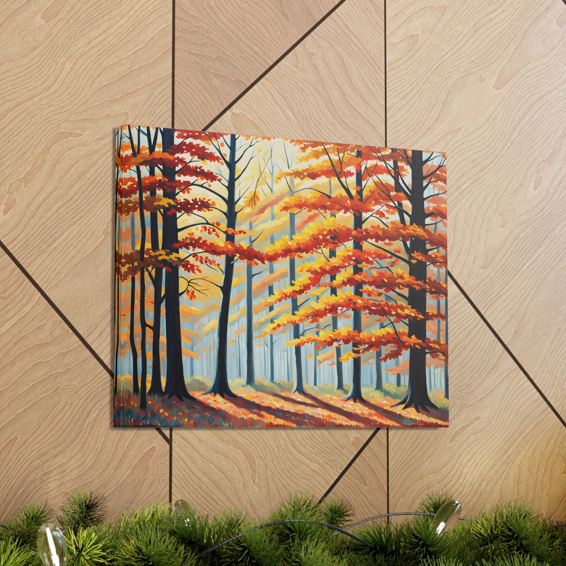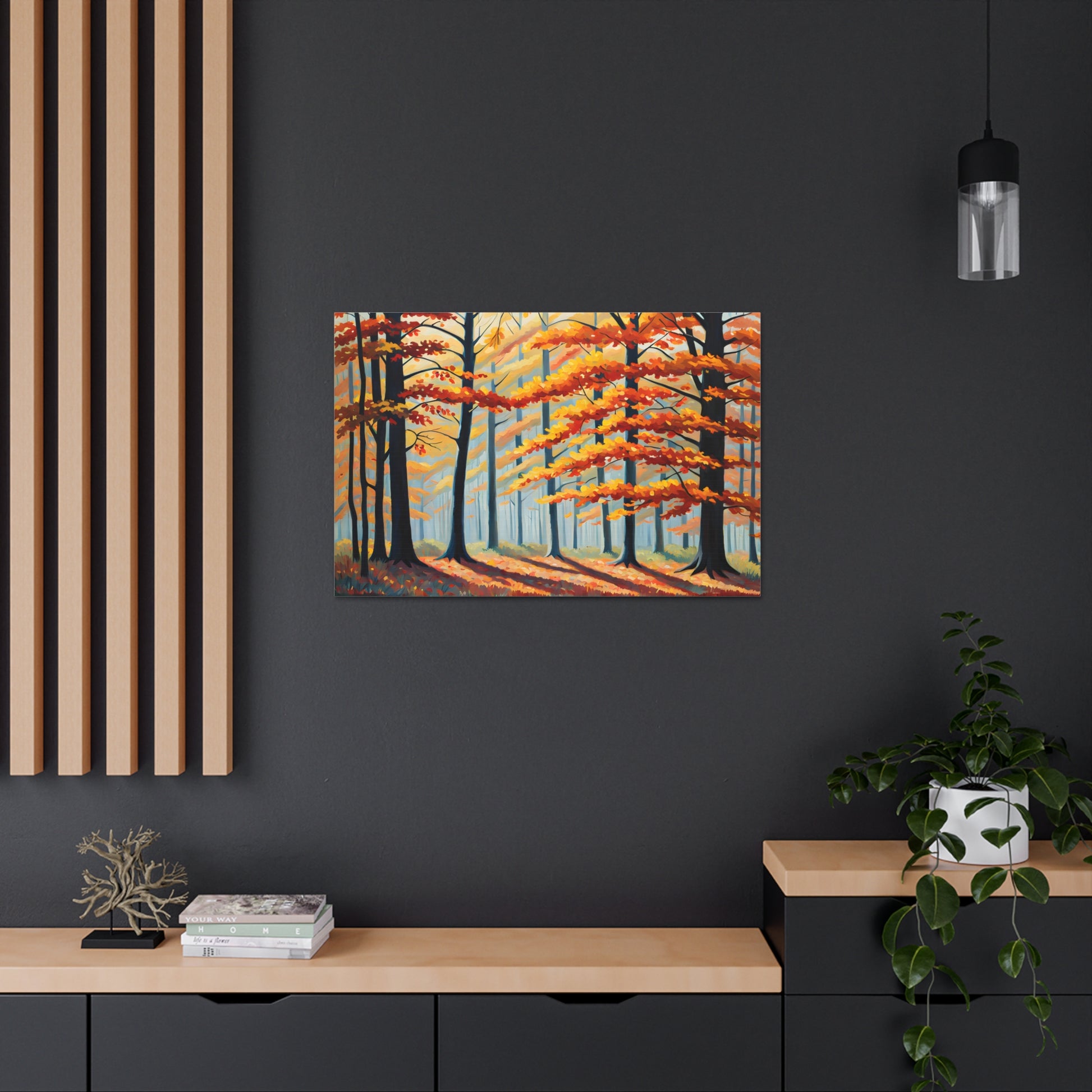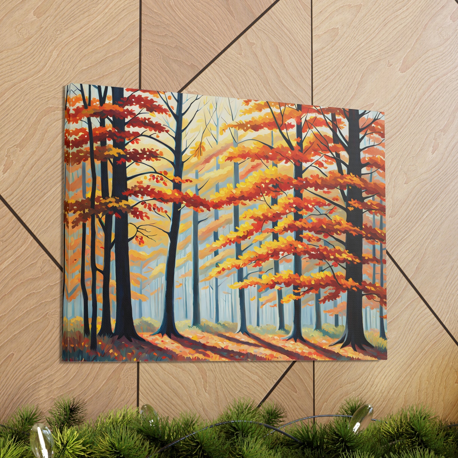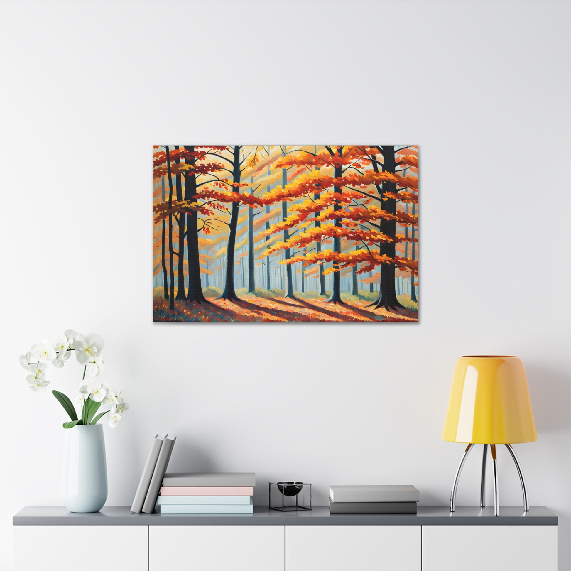 "Autumn Hues" presents a tranquil scene of a vibrant autumn landscape, with the warm colors of fall trees in full bloom. This piece captures the peaceful essence of nature and is ideal for adding a seasonal touch to your home decor.