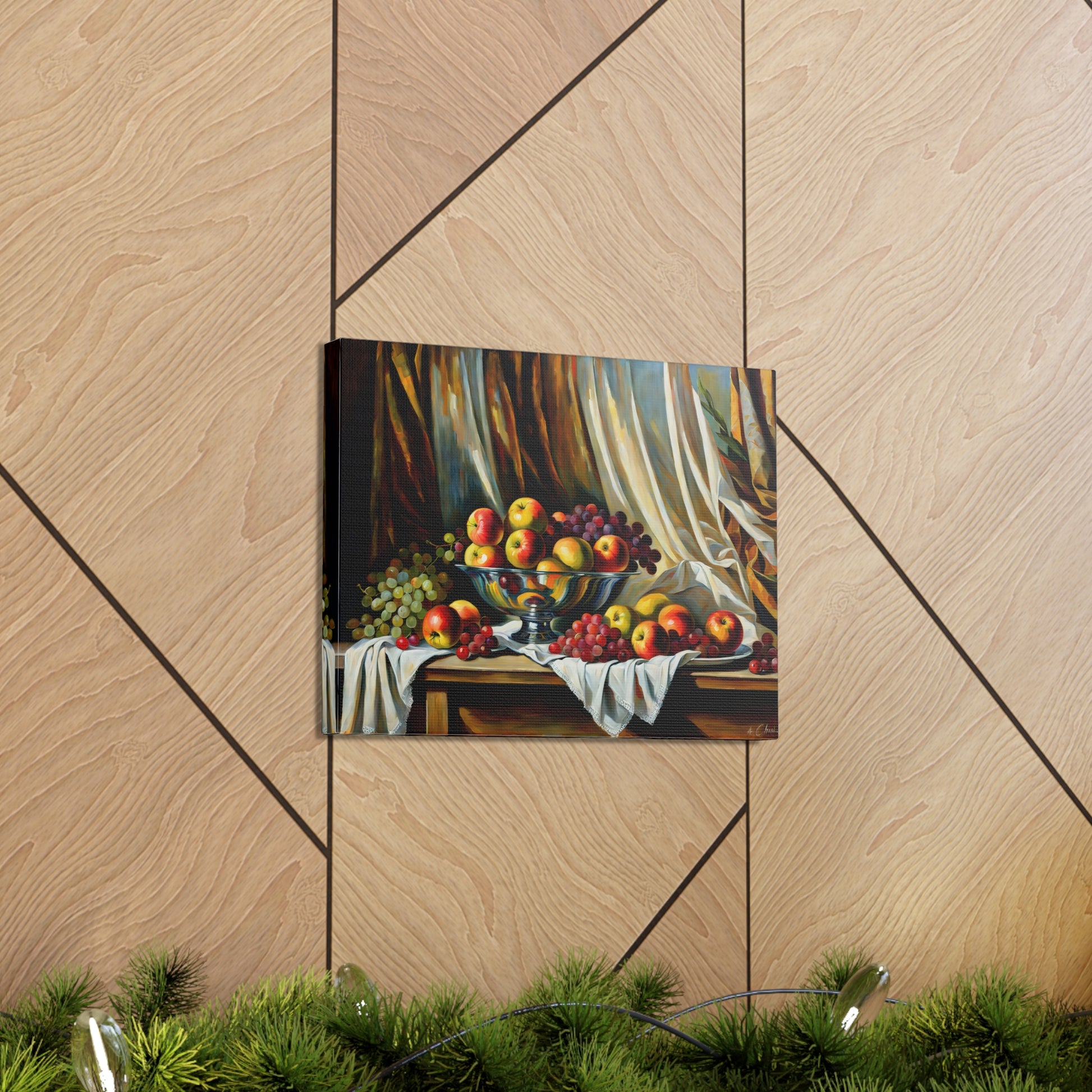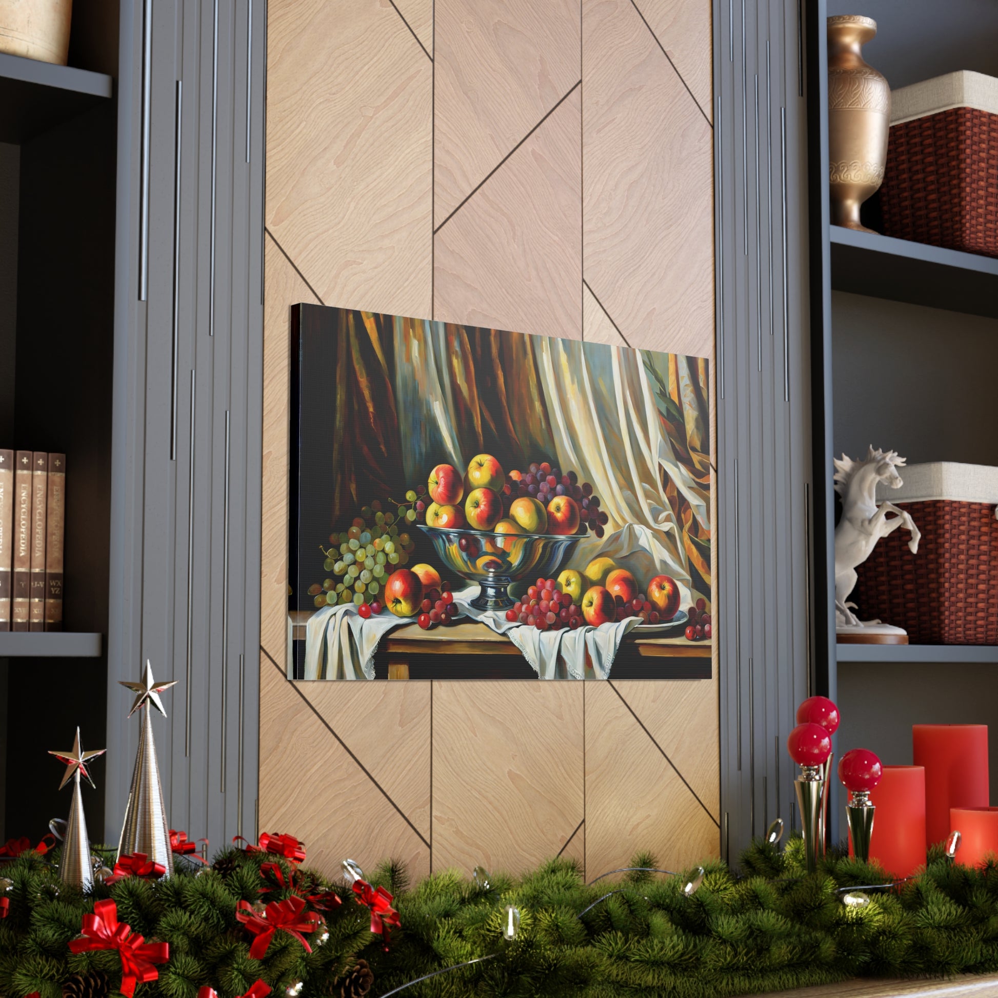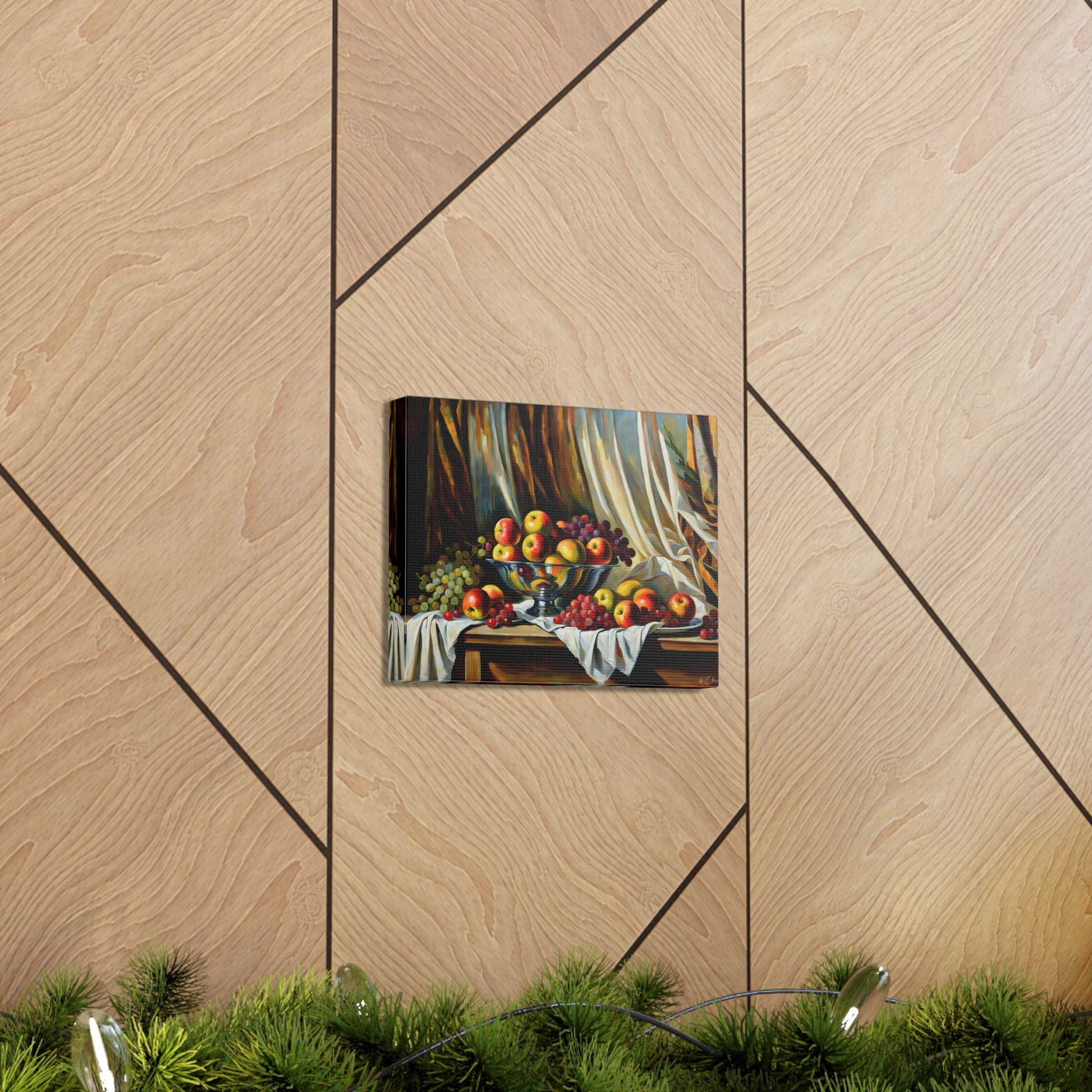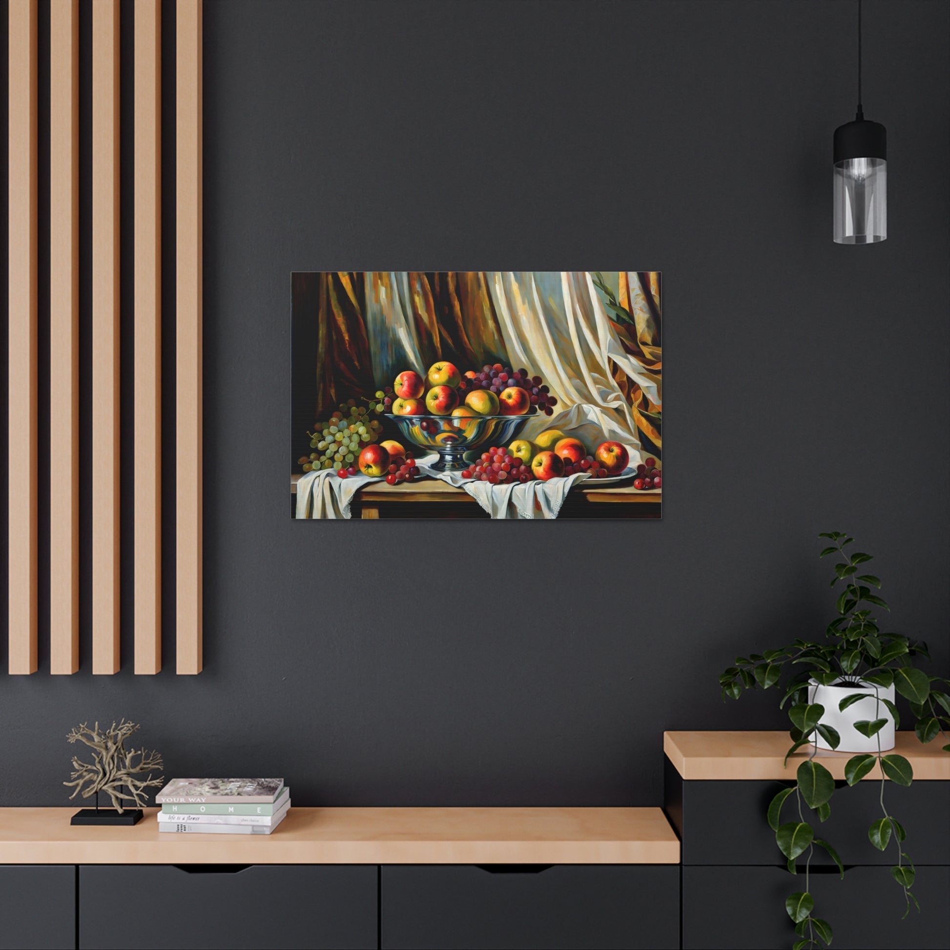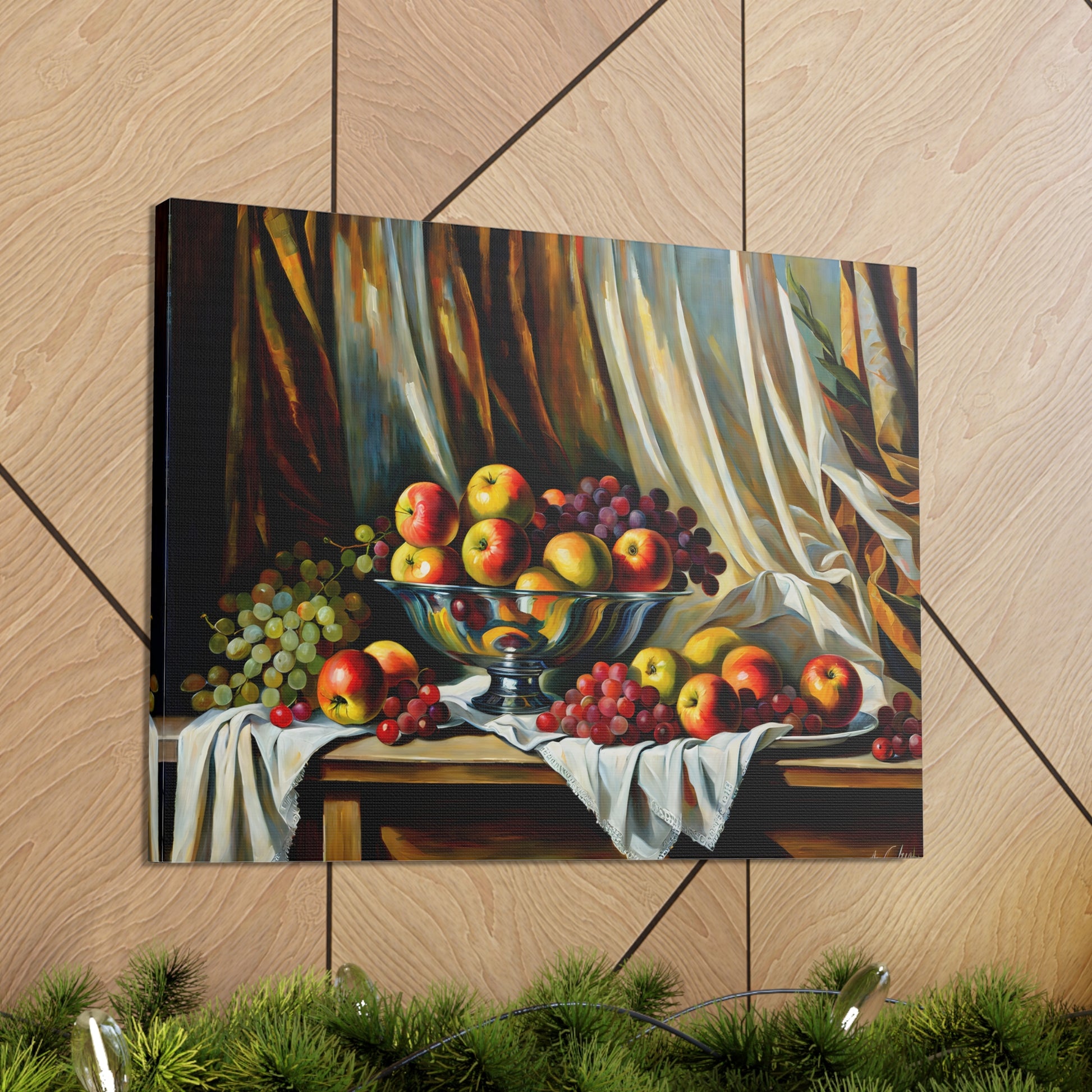 "Calming Table" is a classic still life oil painting featuring a bowl of fruit with soft, inviting colors. This artwork, painted on high-quality cotton canvas, adds a touch of classical charm to any indoor space, evoking a sense of calm and tradition.
