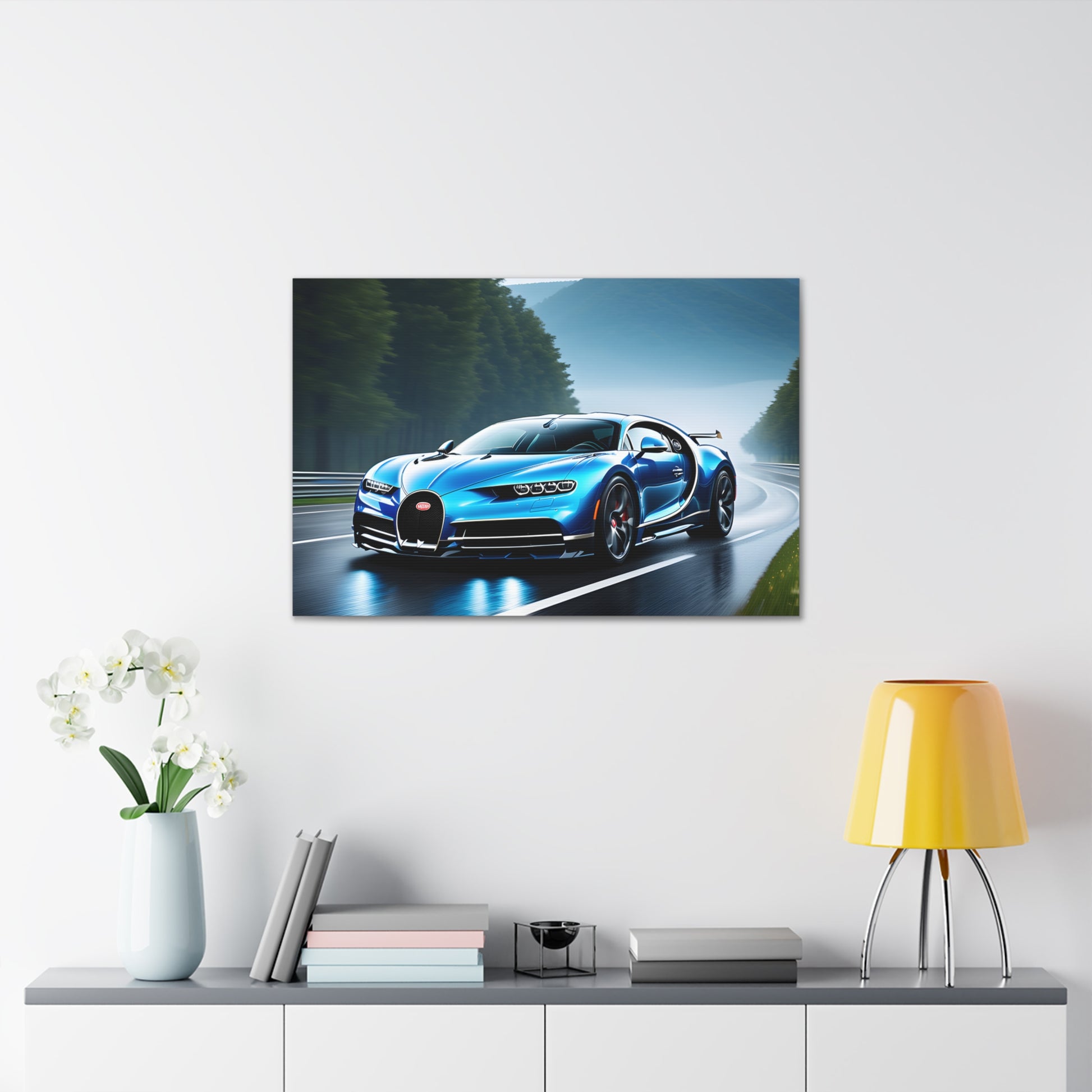 Embark on a journey of speed and elegance with "Chasing Horizon," a mesmerizing canvas art piece showcasing the iconic blue Bugatti Chiron. Feel the thrill of the open road as this automotive masterpiece captures the essence of limitless possibilities and the pursuit of the horizon.