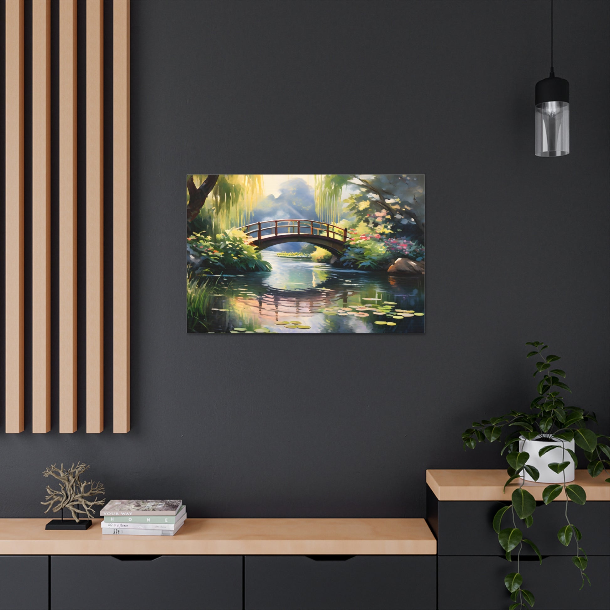 Step into a world of enchantment with "Bridge of Dreams," a timeless masterpiece that captures the essence of tranquility and nostalgia. This classic oil painting, expertly crafted on premium-quality cotton canvas, depicts a charming bridge nestled amidst serene natural surroundings, evoking a sense of wonder and fantasy.