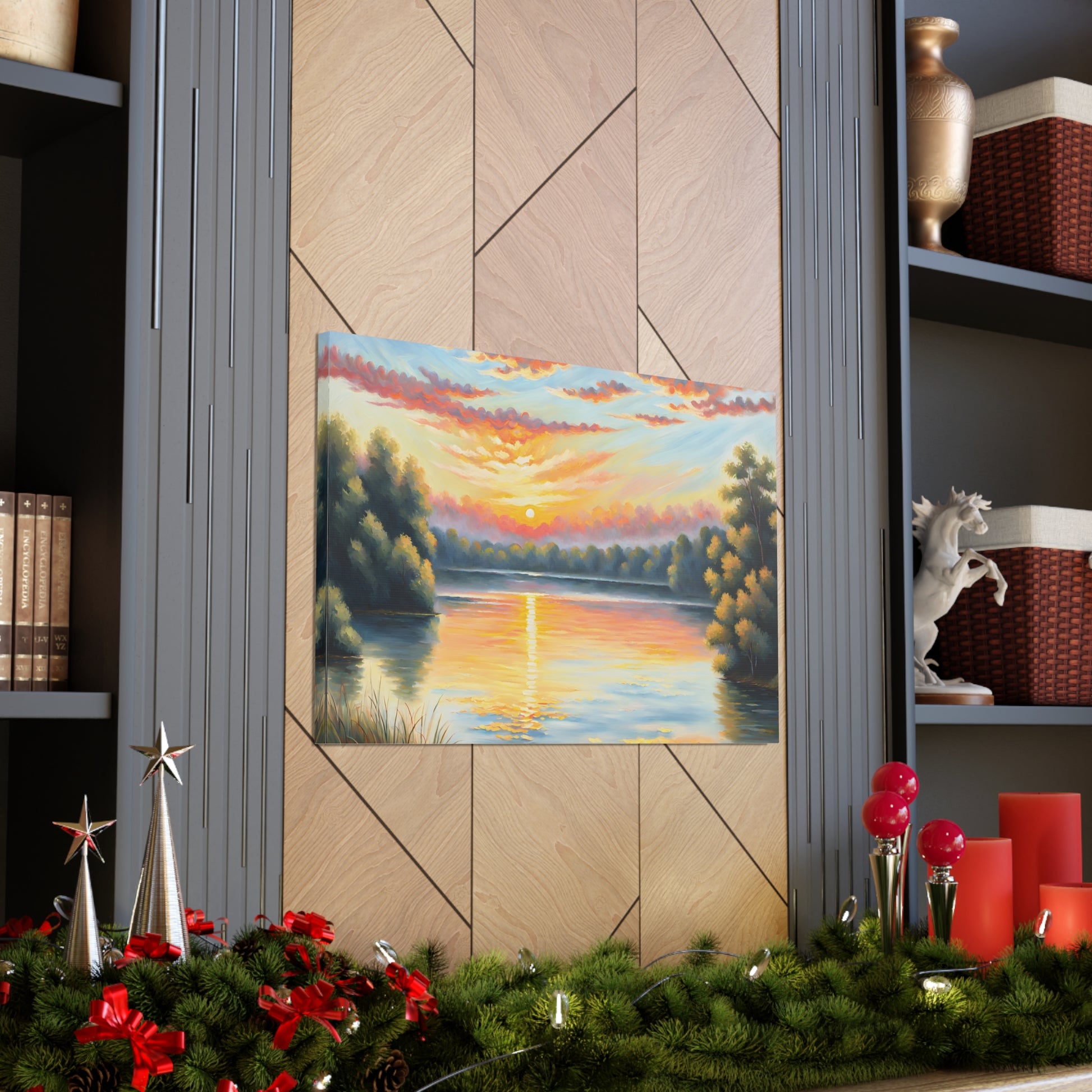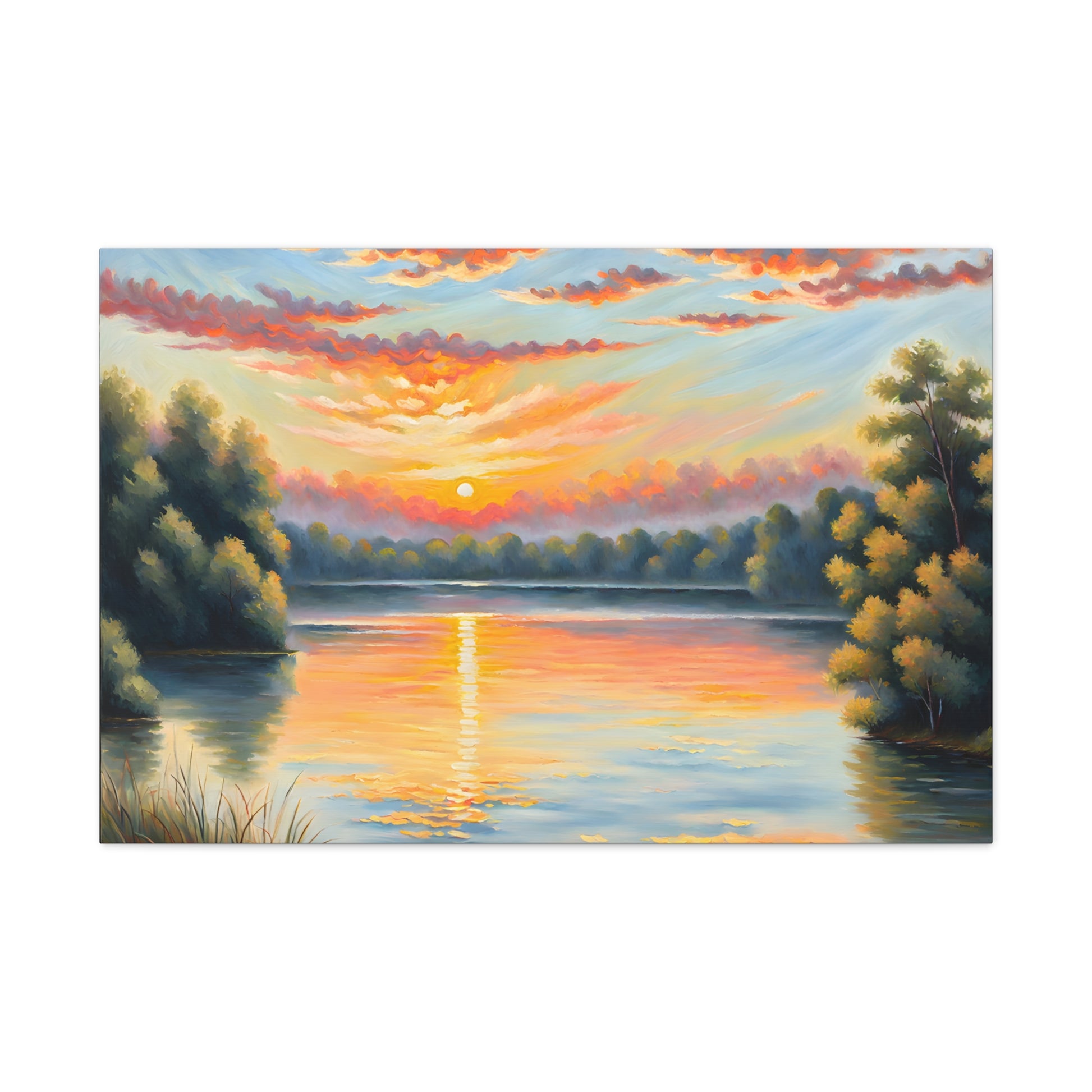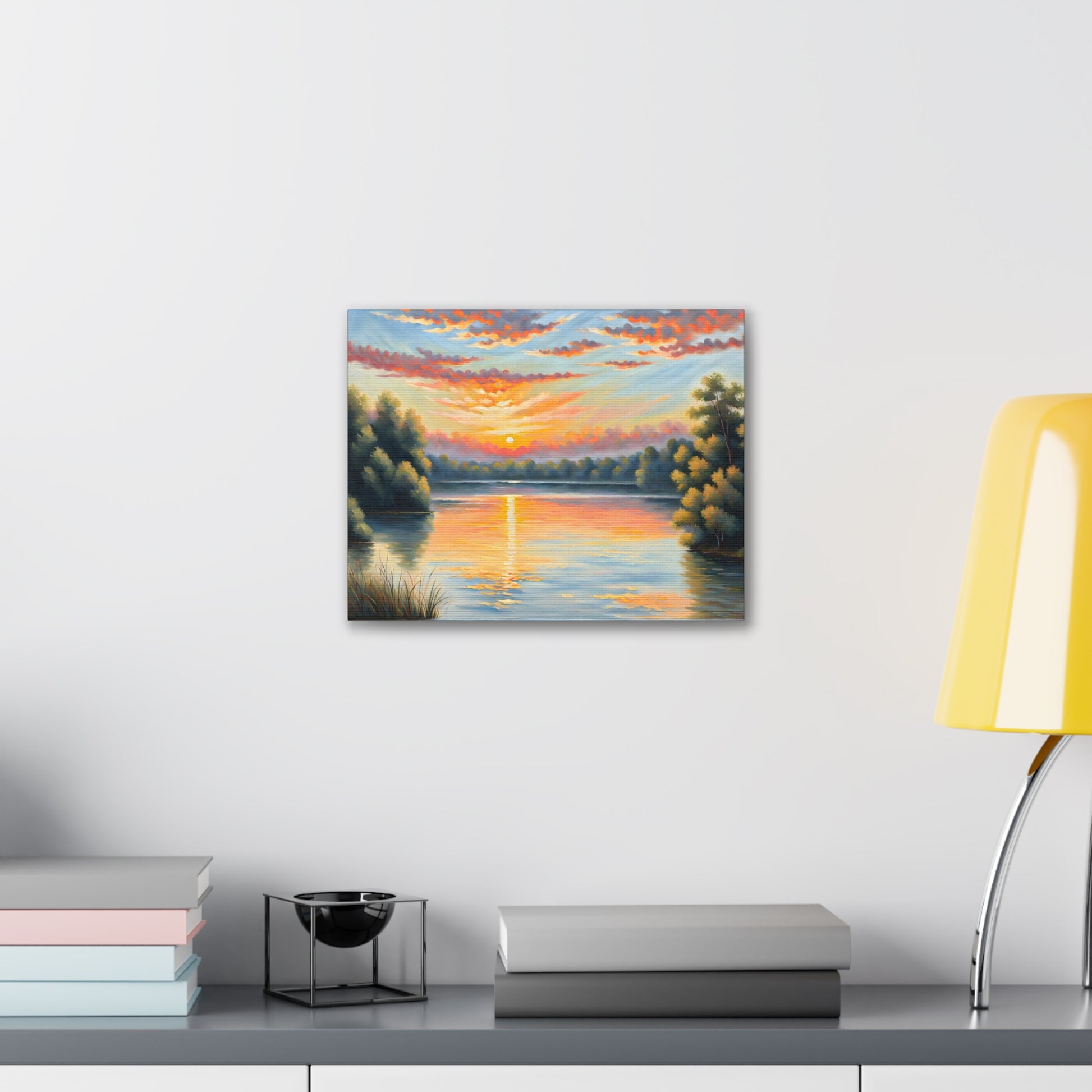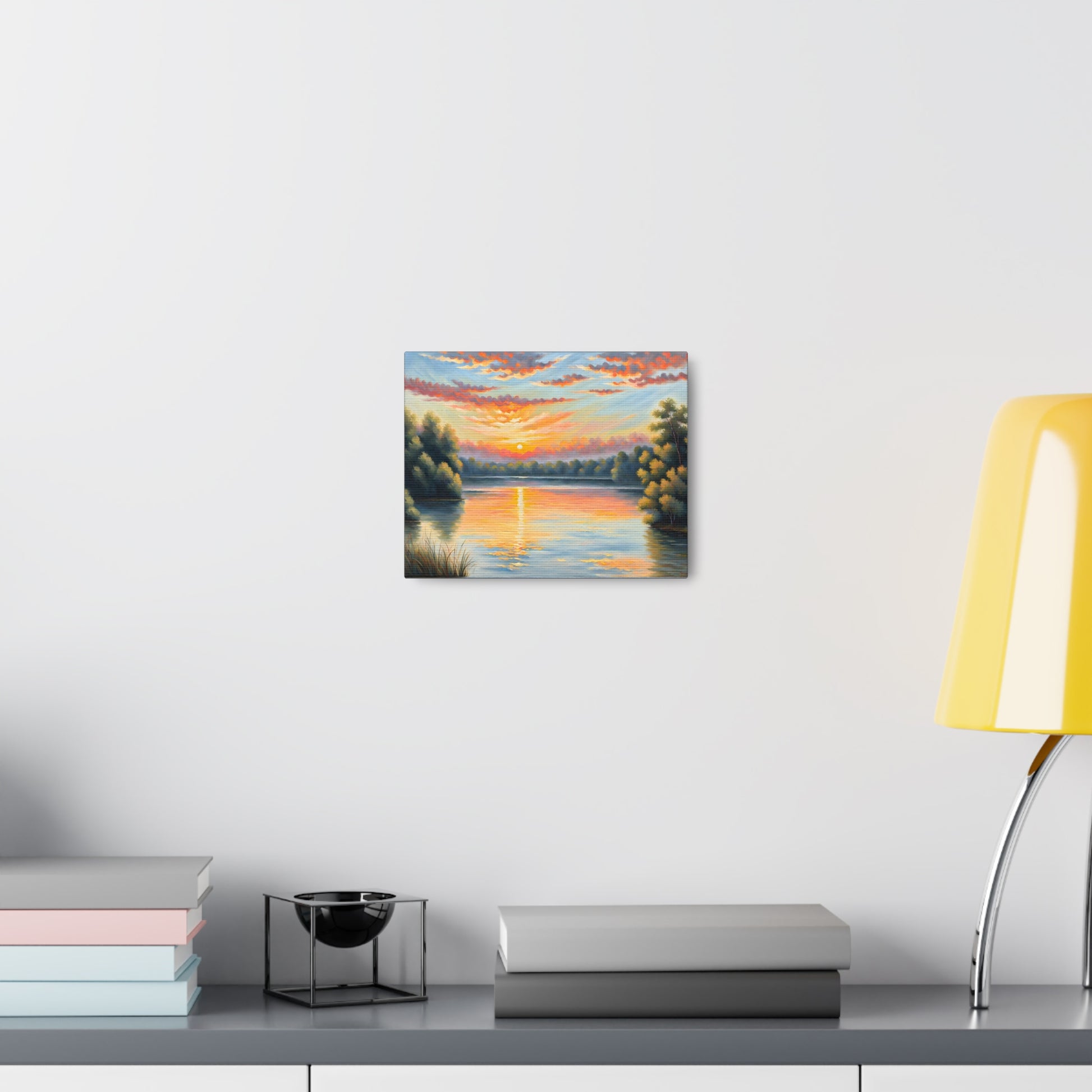 Transport yourself to a scenic coastal vista with "Coastal Mirage." Featuring a gentle river flowing through a vibrant autumn landscape with snowy mountains in the background, this painting exudes peace and natural beauty.