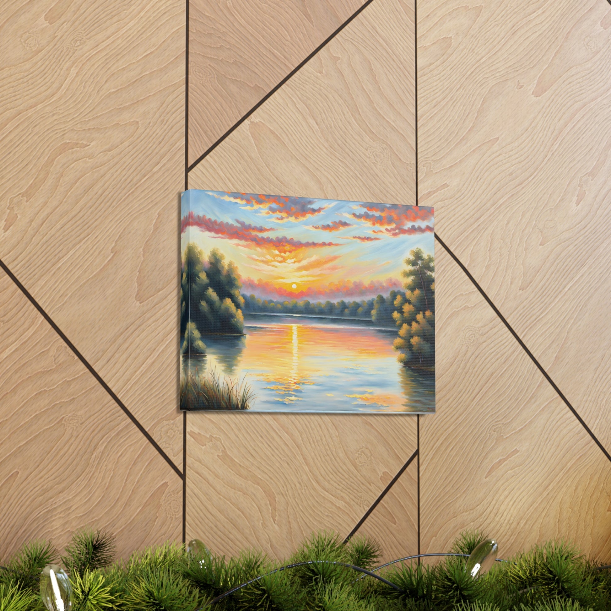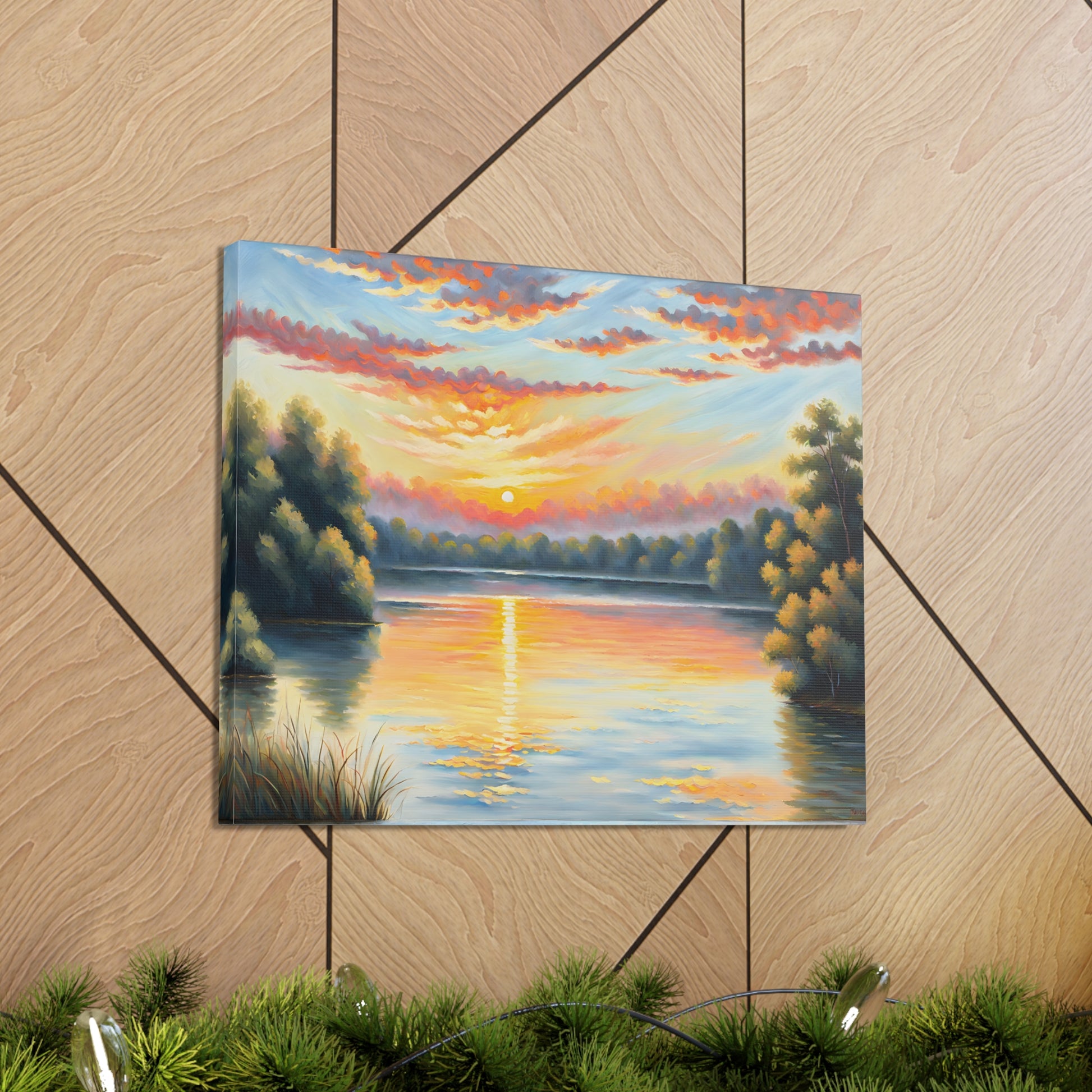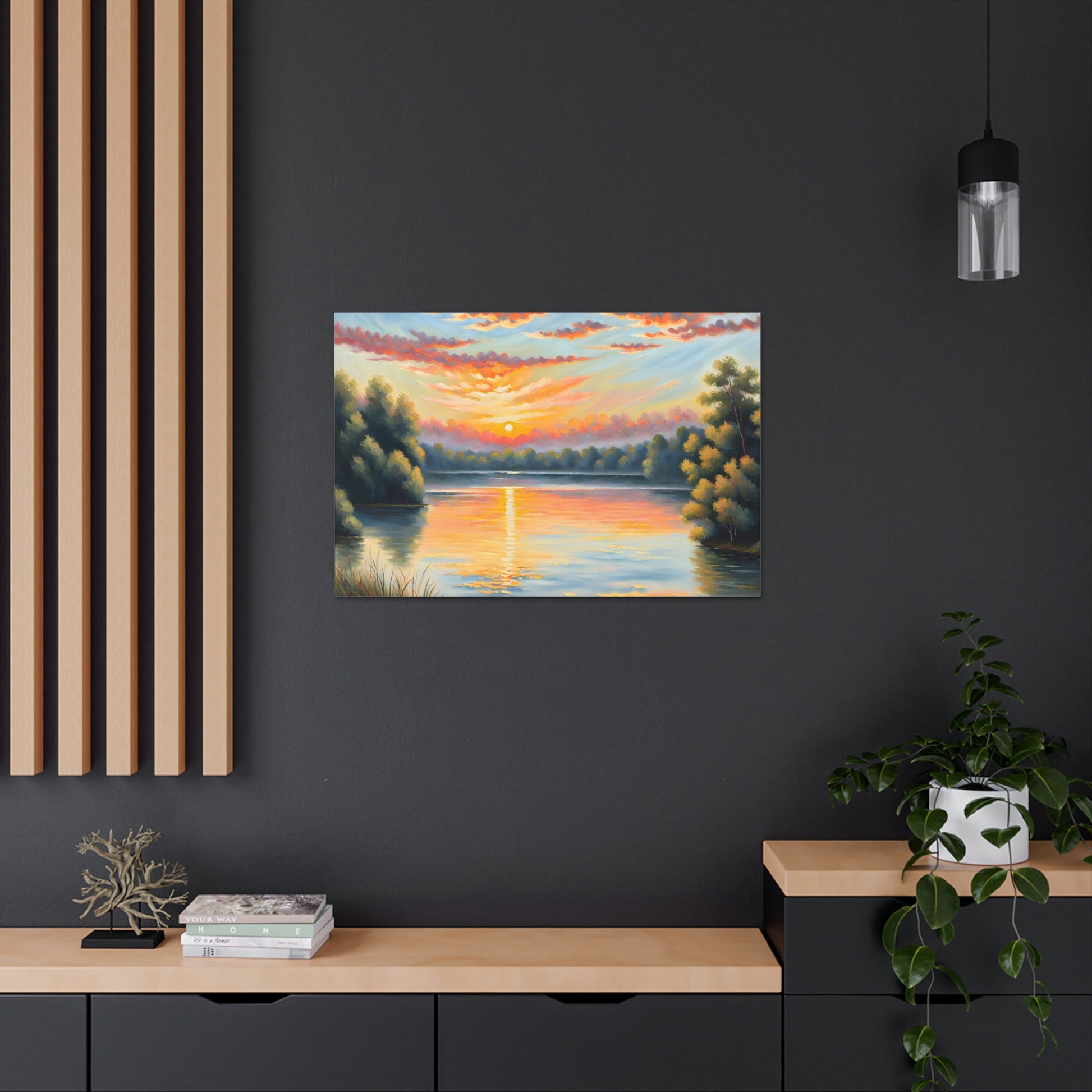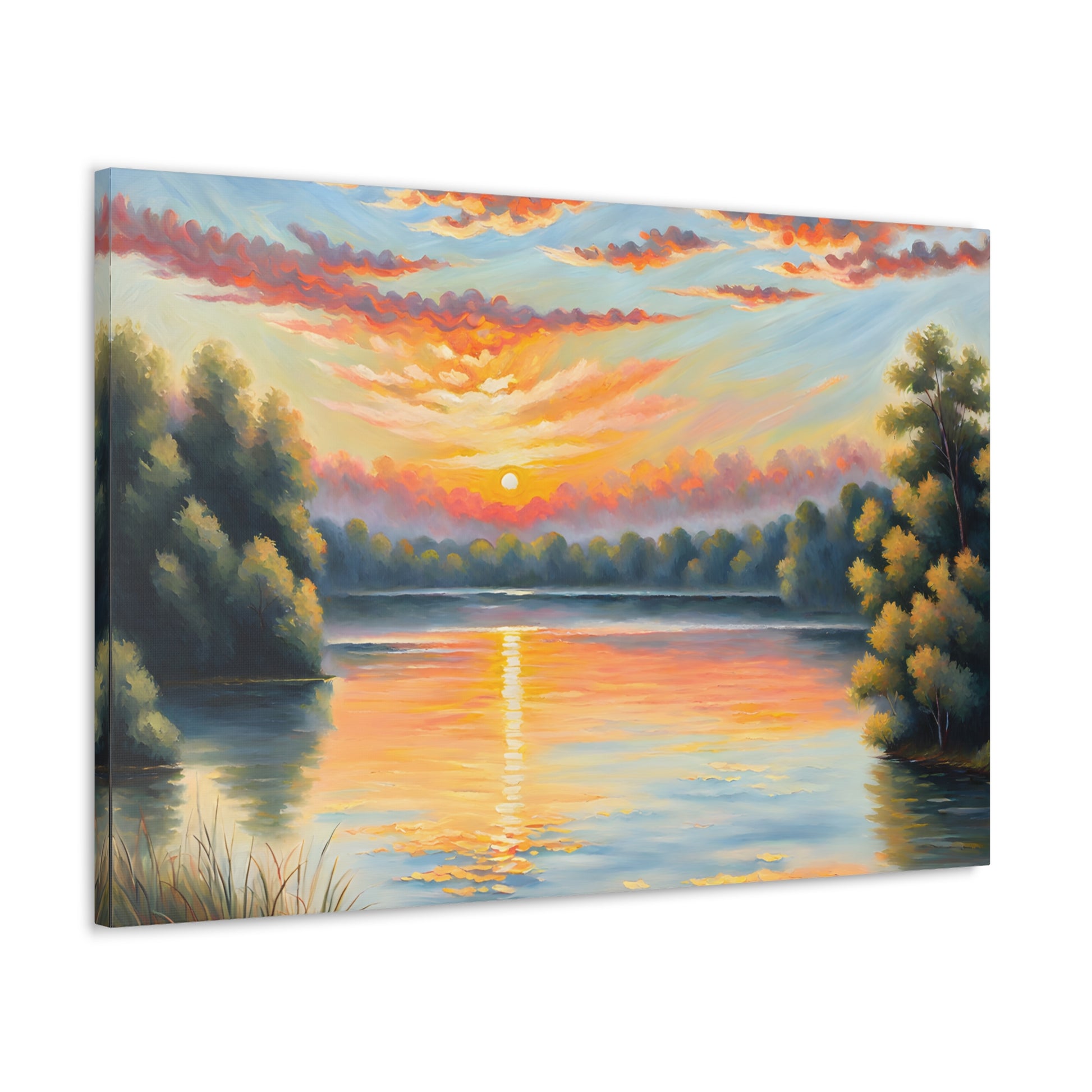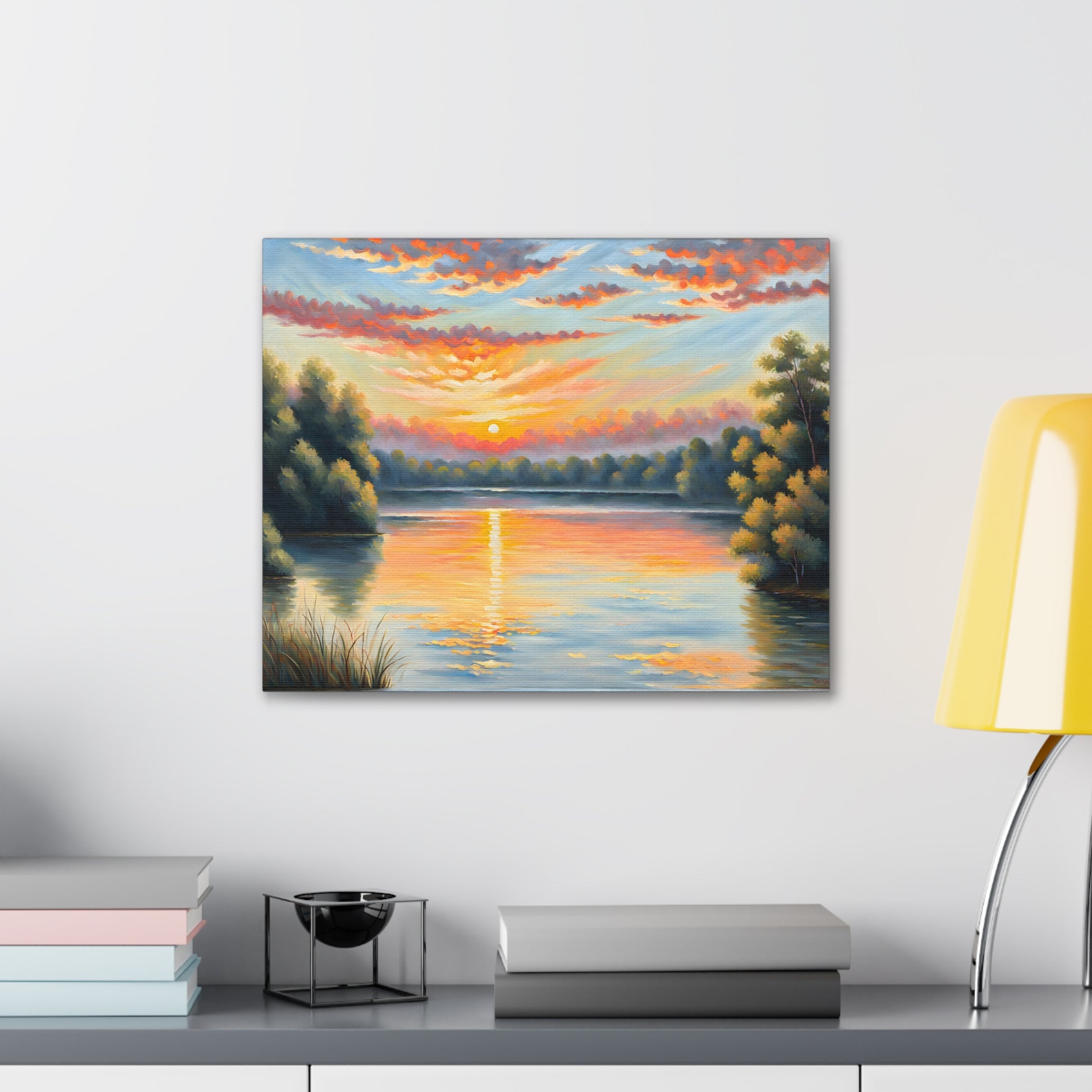 Transport yourself to a scenic coastal vista with "Coastal Mirage." Featuring a gentle river flowing through a vibrant autumn landscape with snowy mountains in the background, this painting exudes peace and natural beauty.