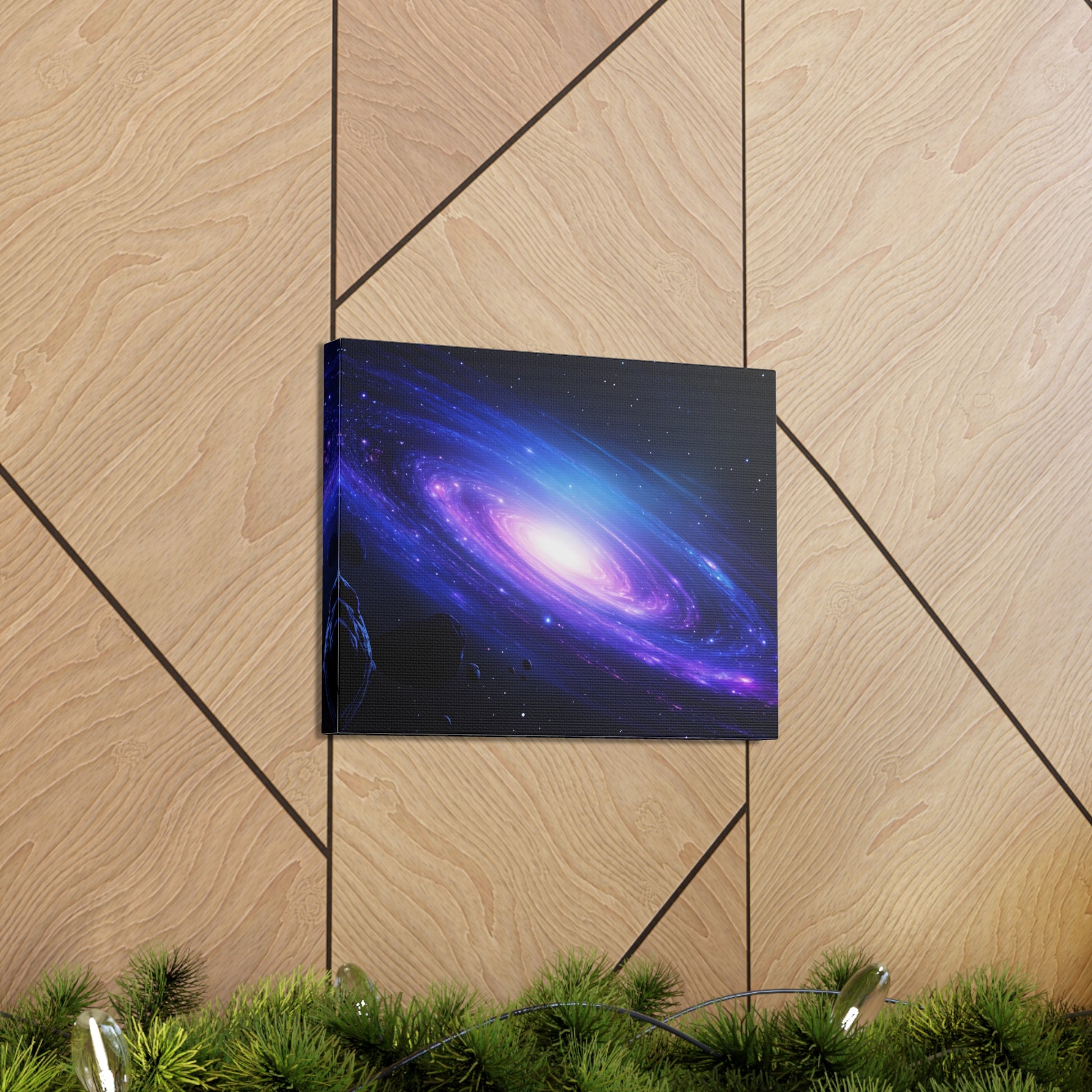 Designed for indoor use only, this piece features a mesmerizing cosmic scene filled with swirling galaxies, sparkling stars, and ethereal nebulae. Each brushstroke captures the awe-inspiring beauty and mystery of the cosmos, making it a stunning focal point for any room.