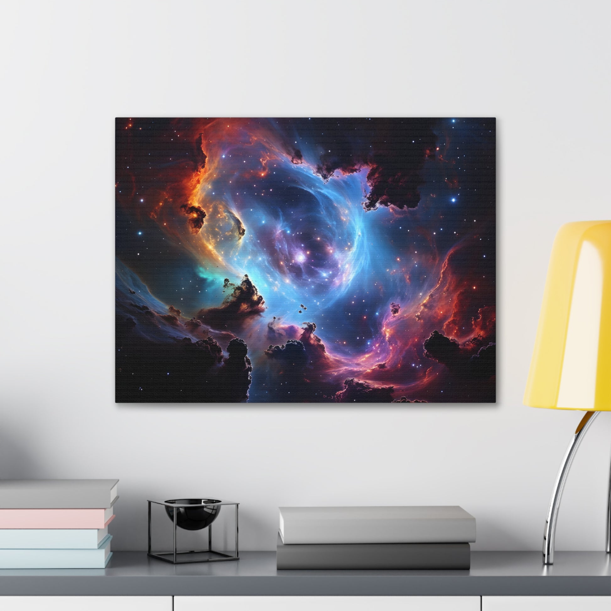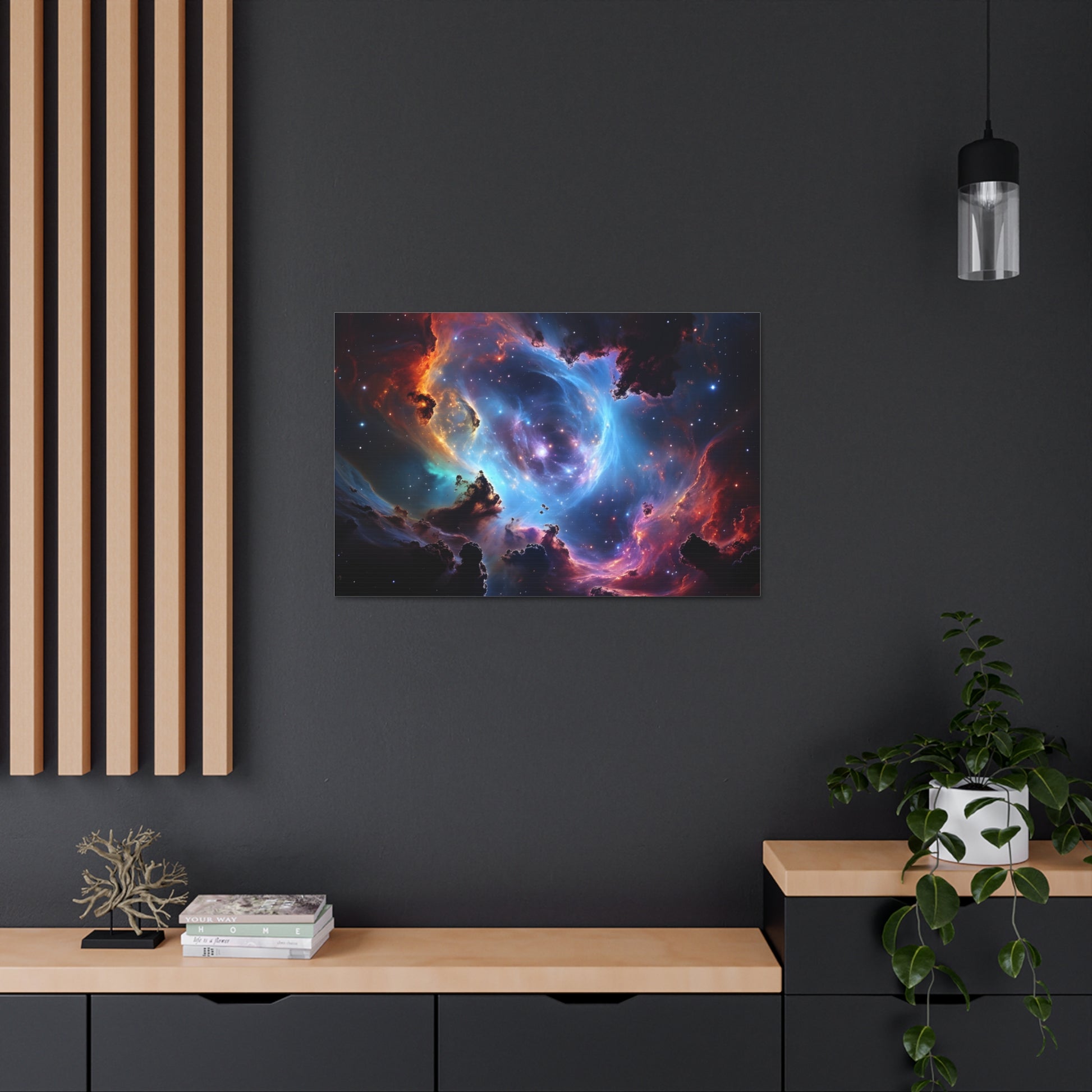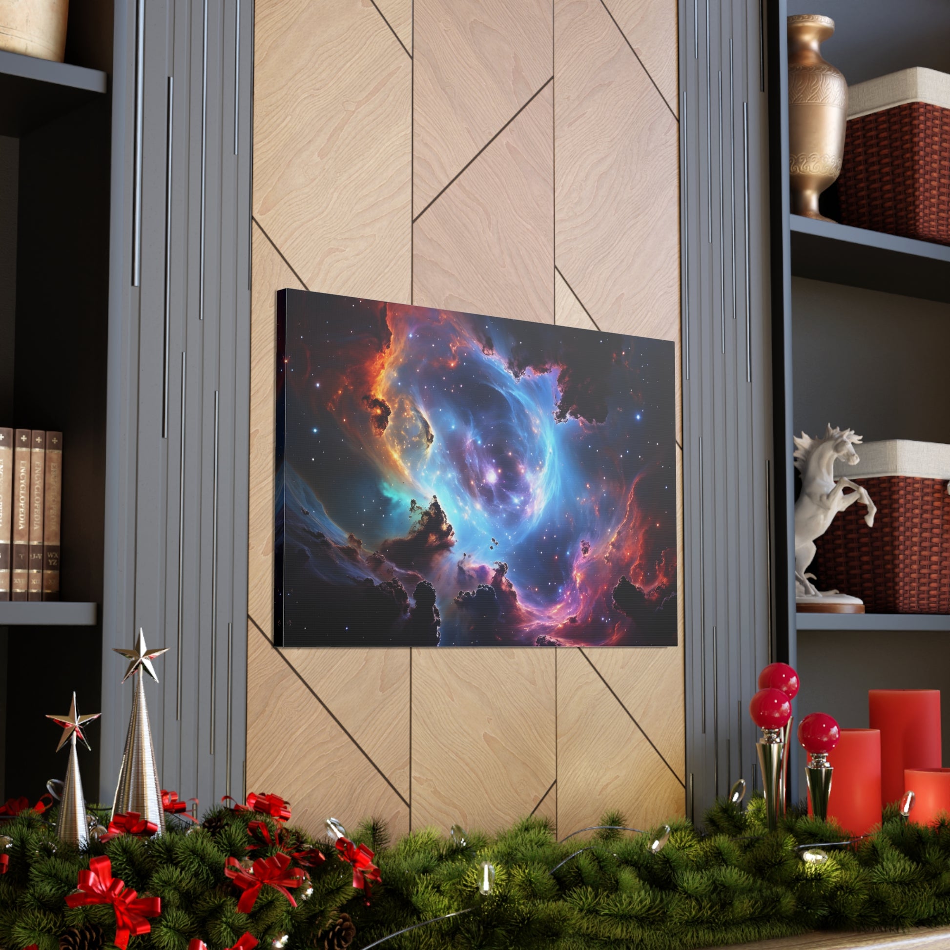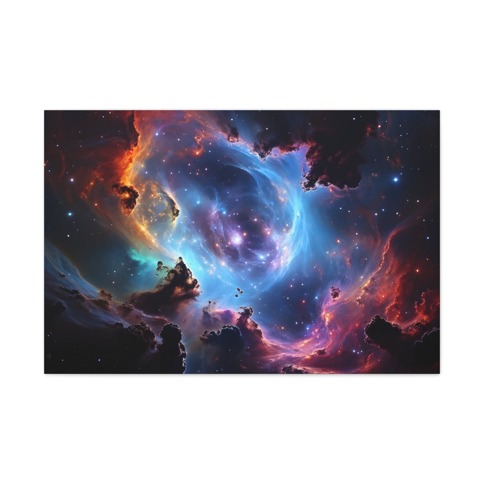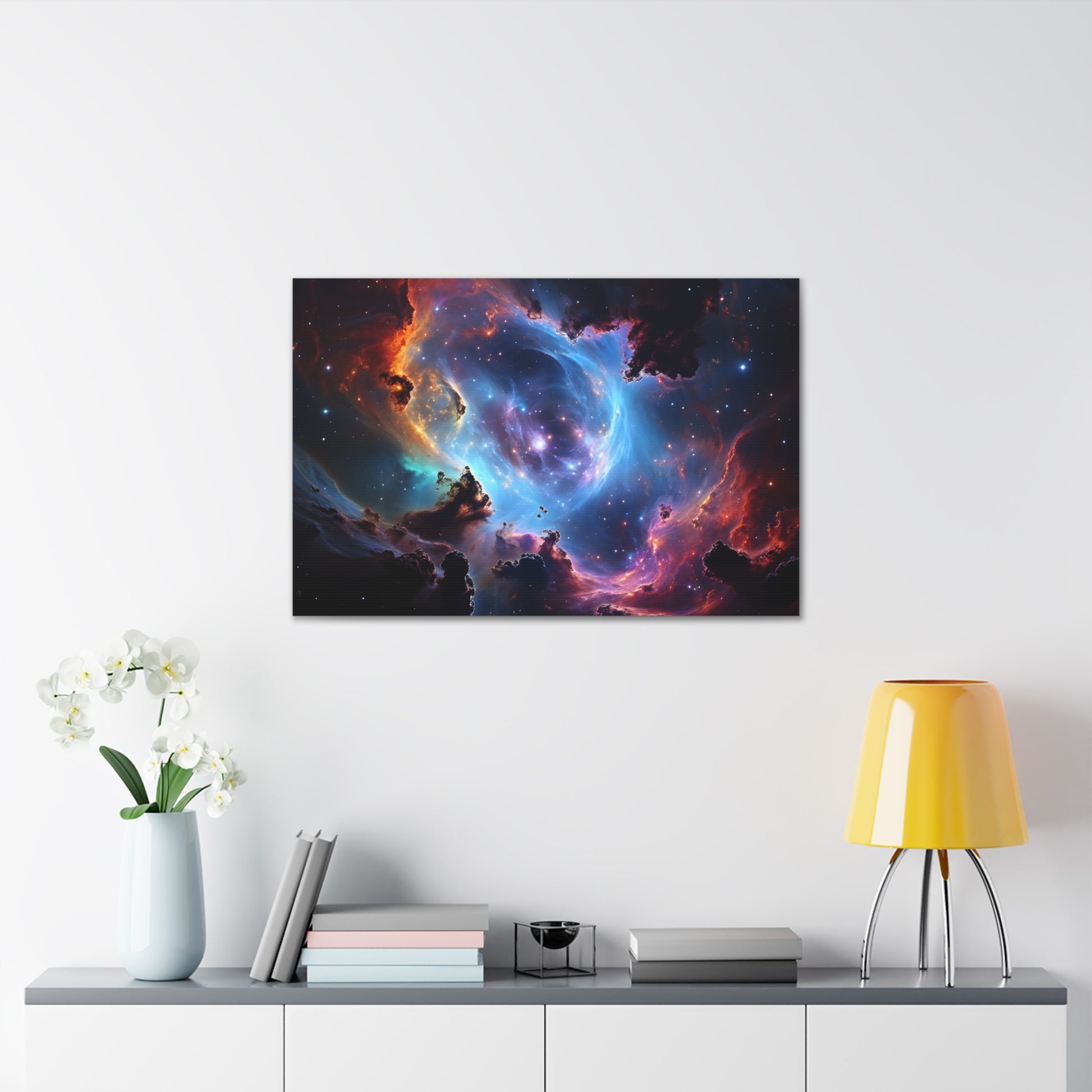 Designed for indoor use only, this piece features a mesmerizing depiction of the cosmos, where vibrant hues and swirling nebulae evoke a sense of awe and wonder. Let the ethereal beauty of distant galaxies and shimmering stars ignite your imagination and elevate your space.