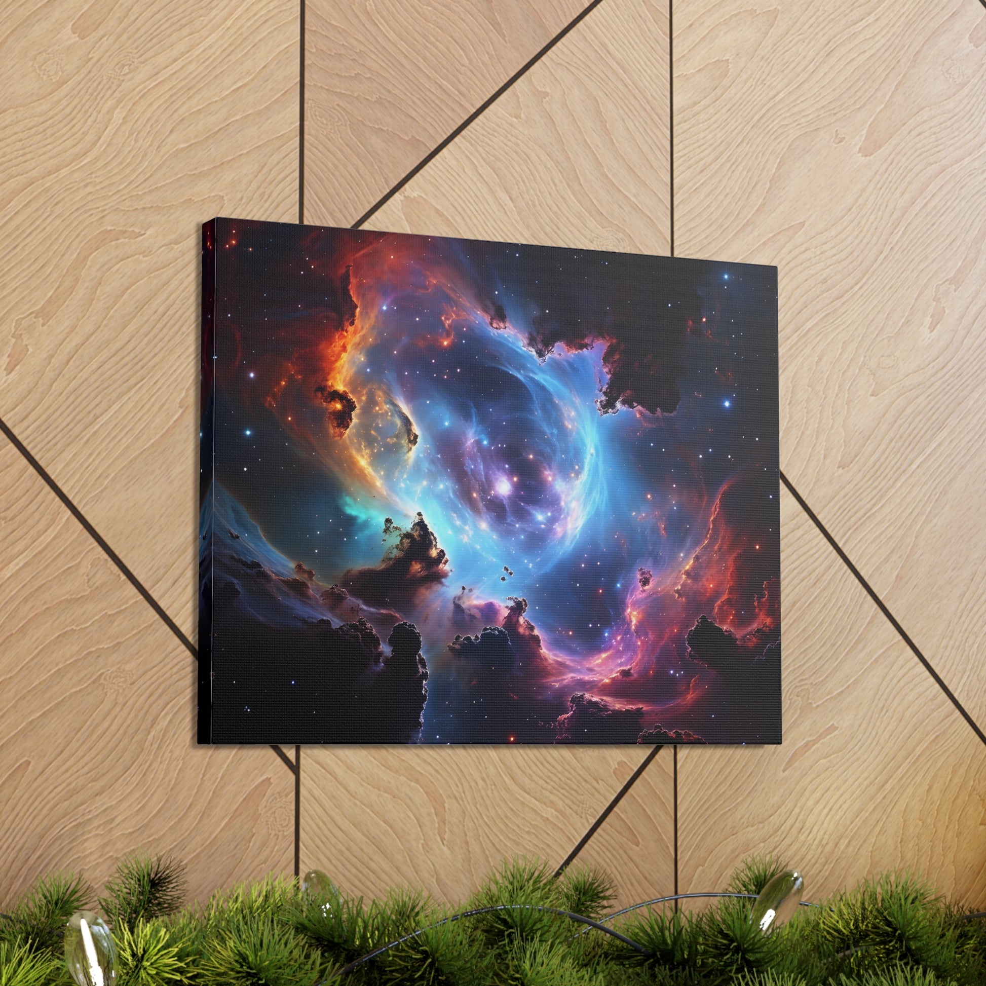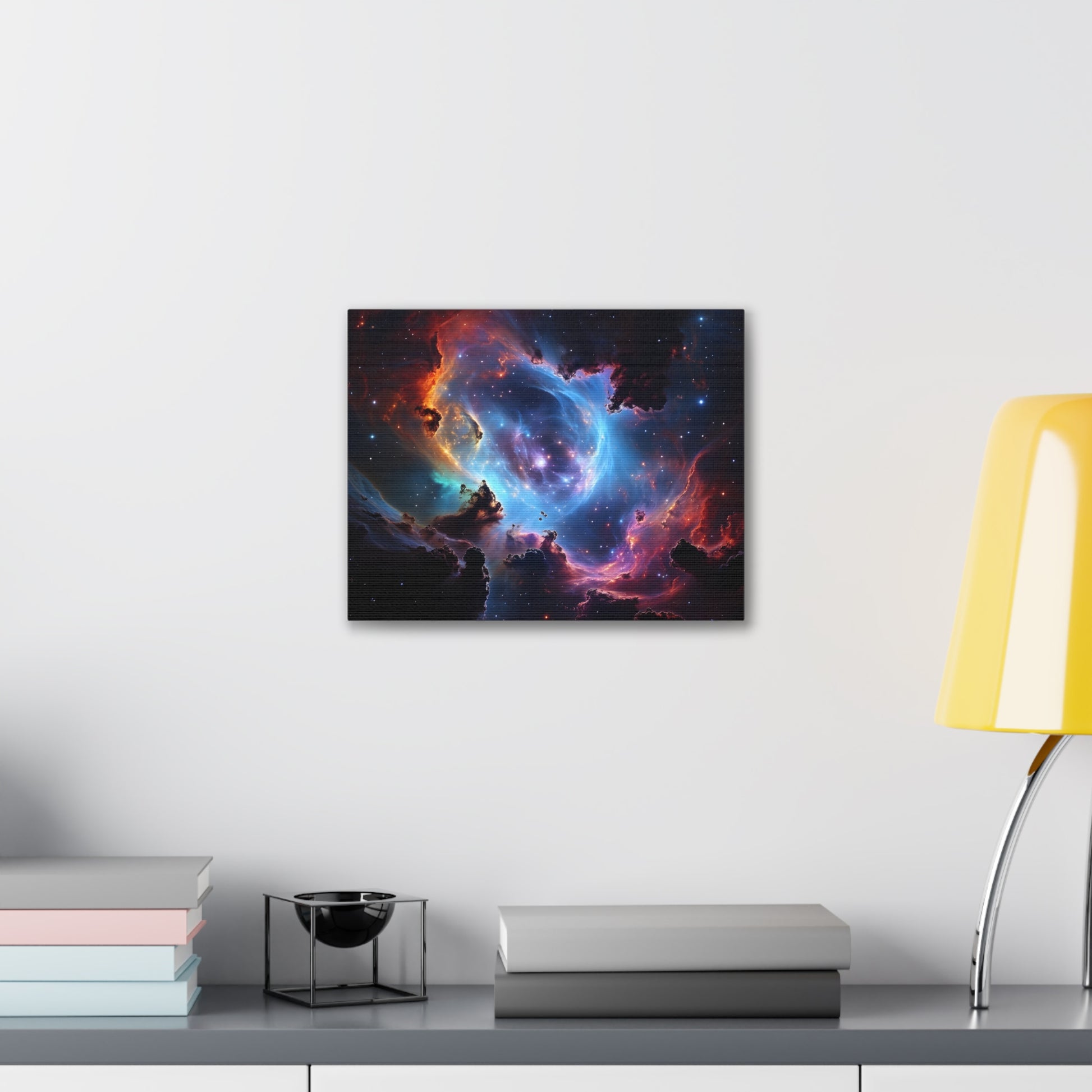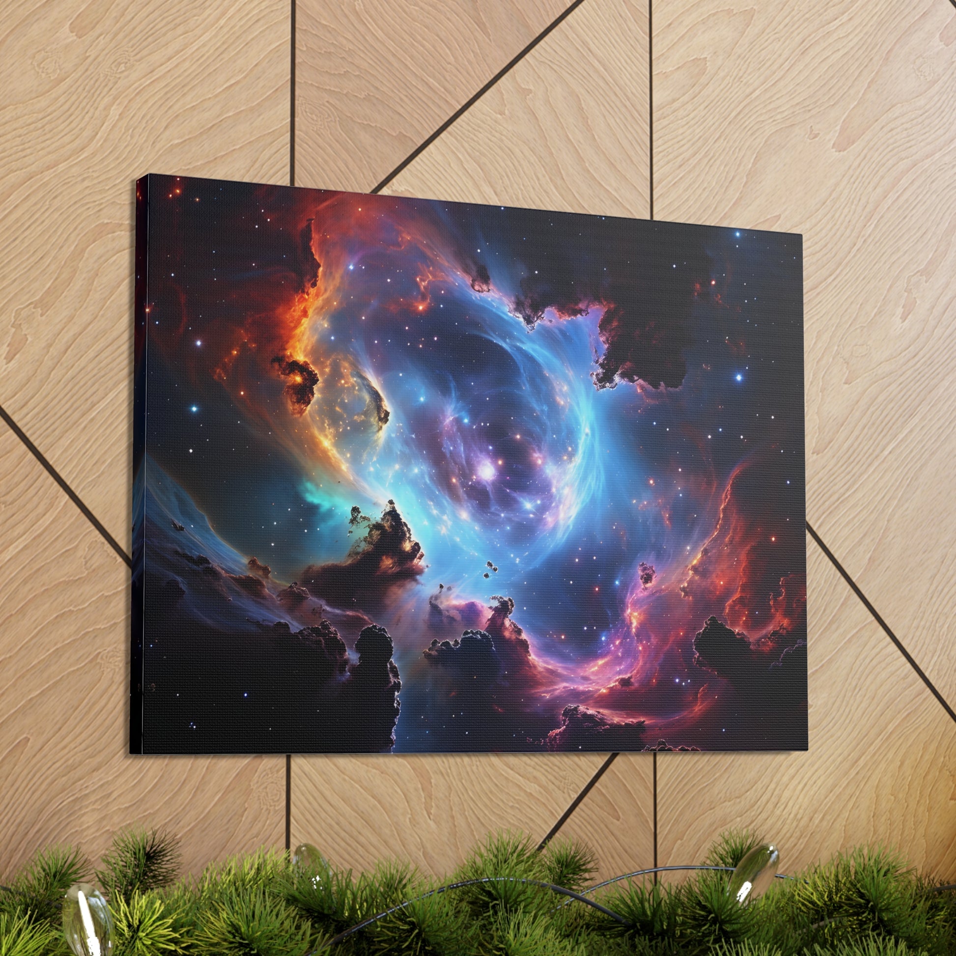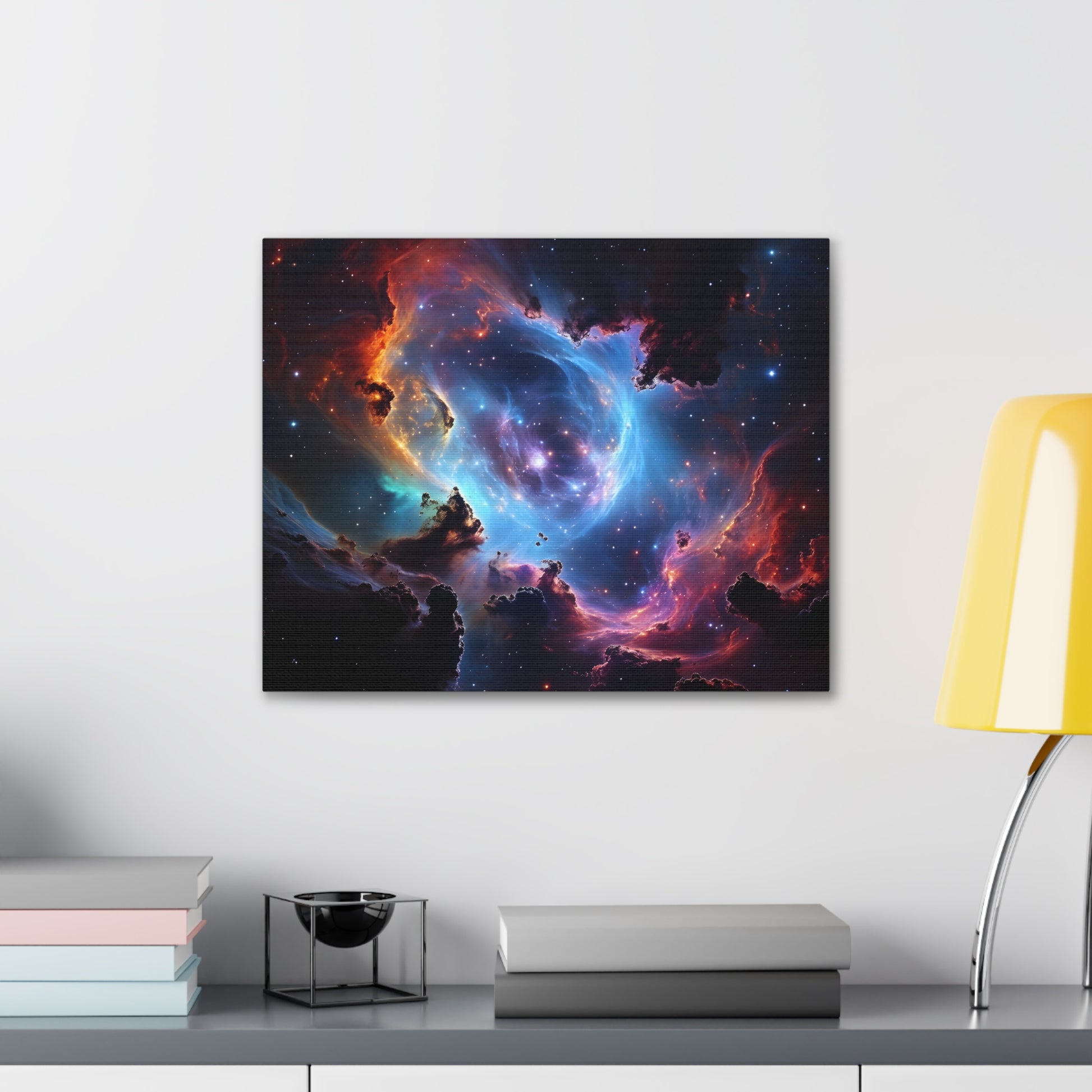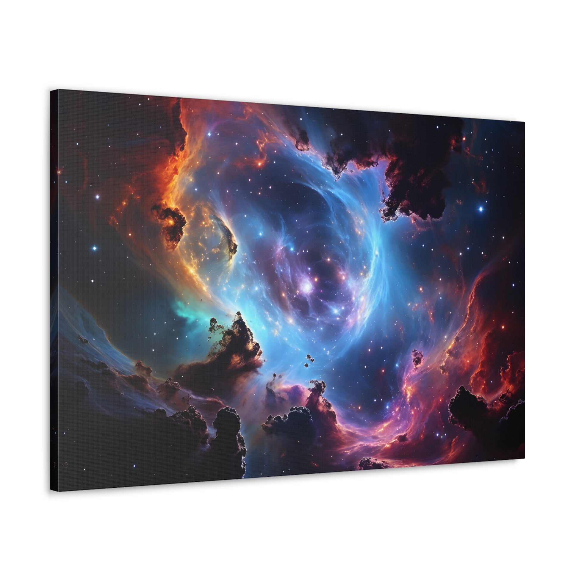 Designed for indoor use only, this piece features a mesmerizing depiction of the cosmos, where vibrant hues and swirling nebulae evoke a sense of awe and wonder. Let the ethereal beauty of distant galaxies and shimmering stars ignite your imagination and elevate your space.