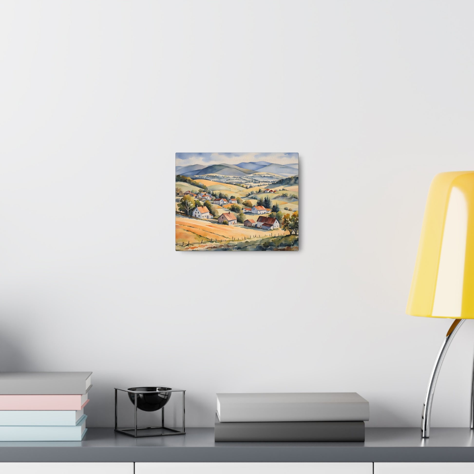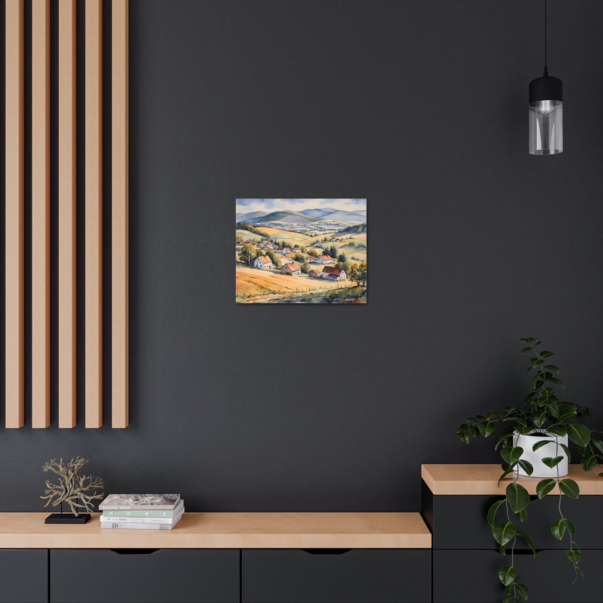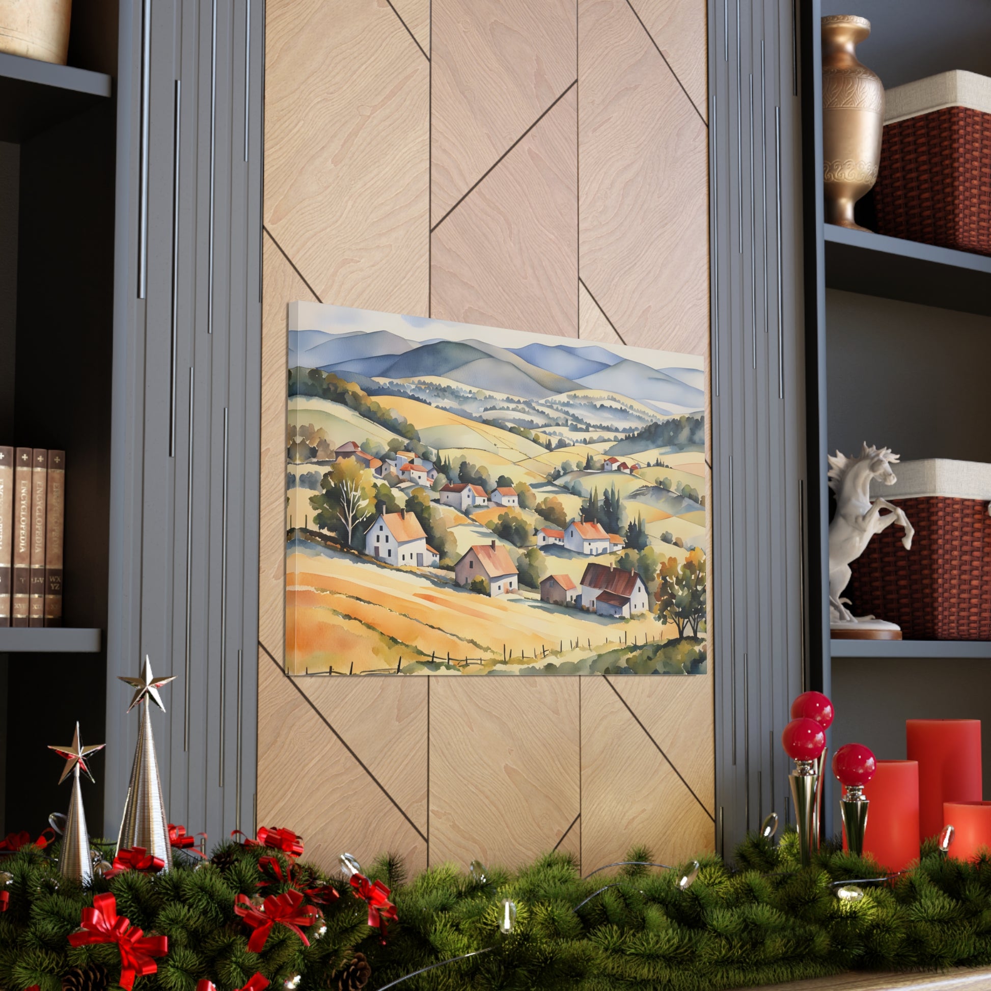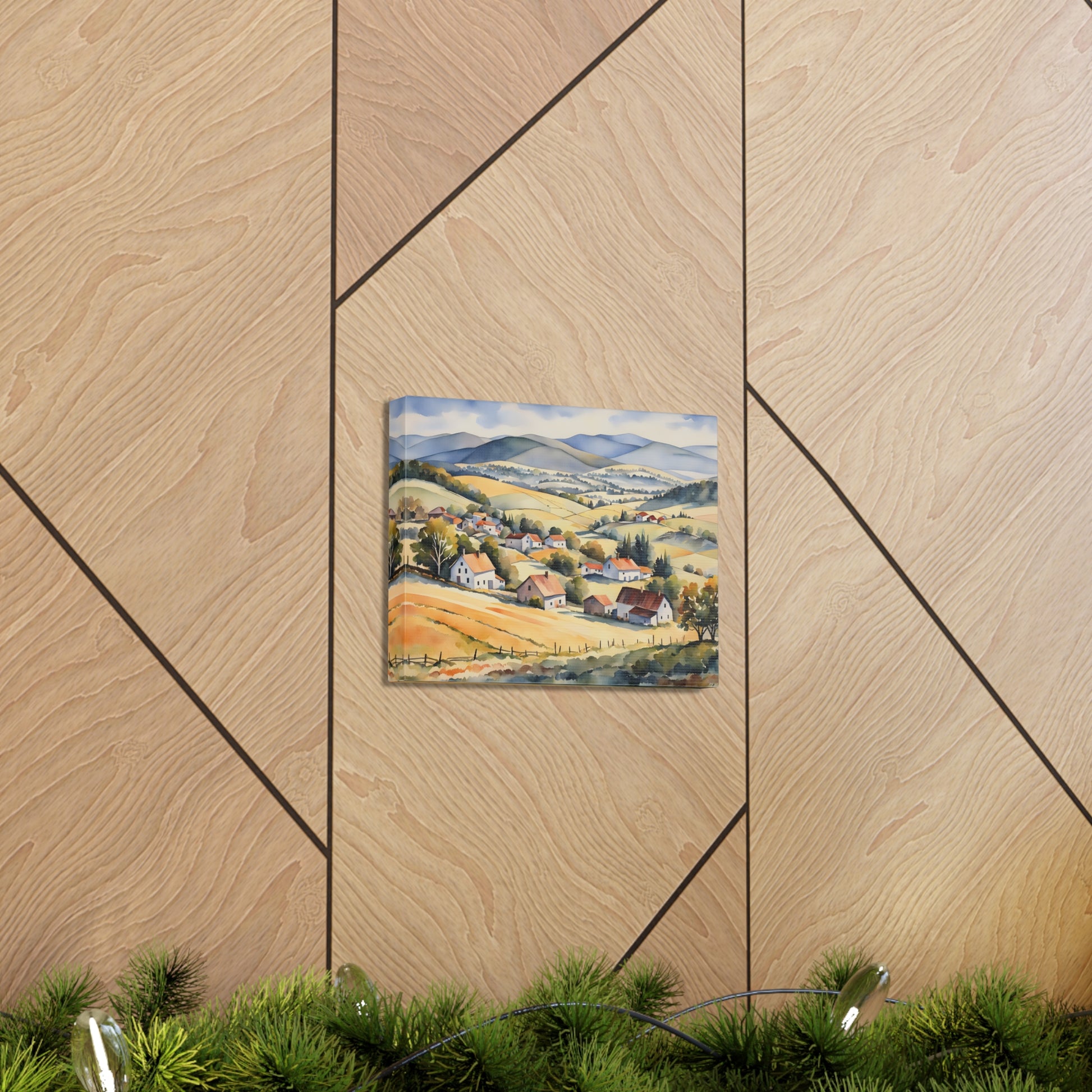 Evoke the charm of rural life with our "Country Town: Watercolor Wall Décor." Skillfully crafted on premium cotton canvas, this captivating artwork transports you to a quaint countryside town nestled among rolling hills and serene landscapes.