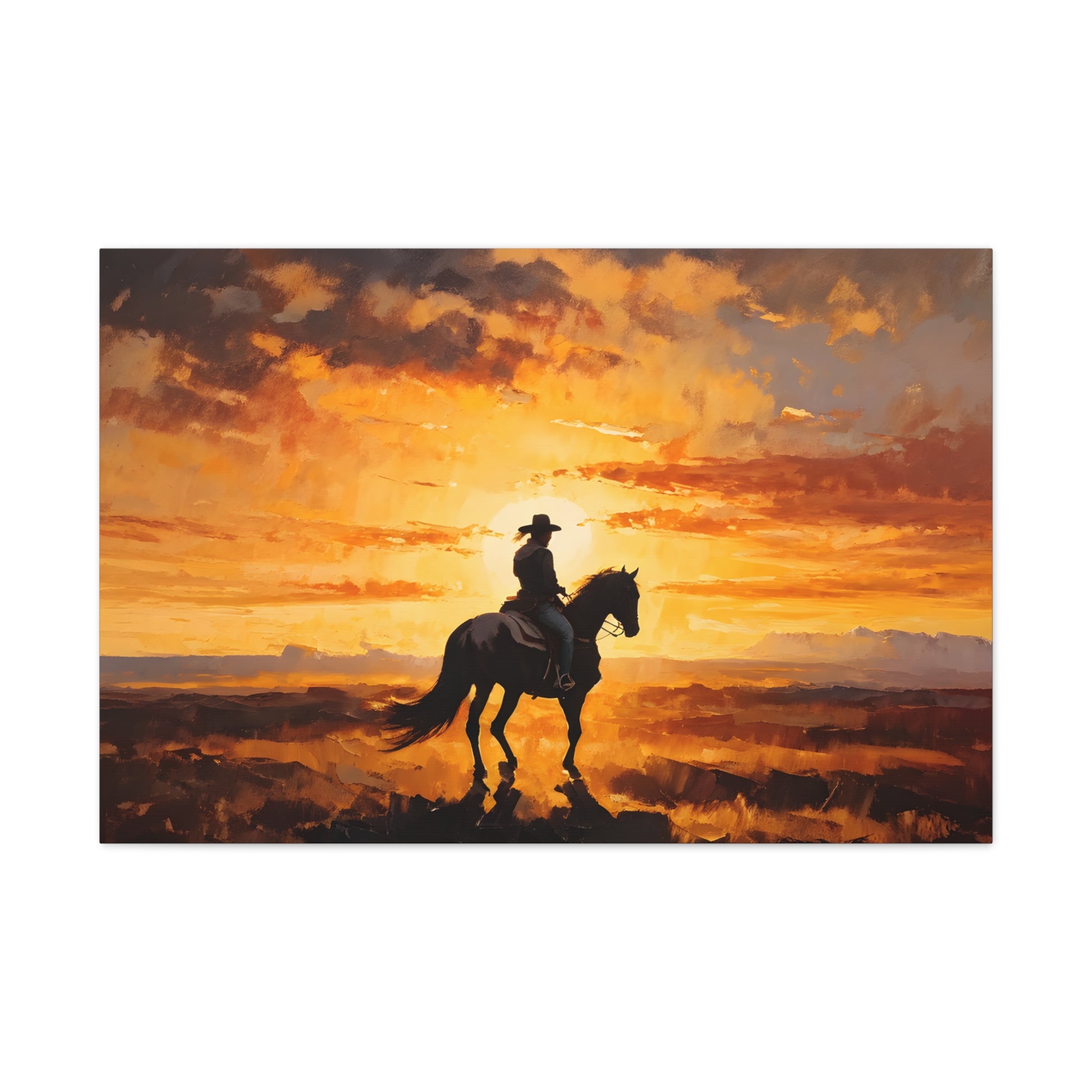 Cowboy's Silhouette: Classic Oil Painting Wall Décor