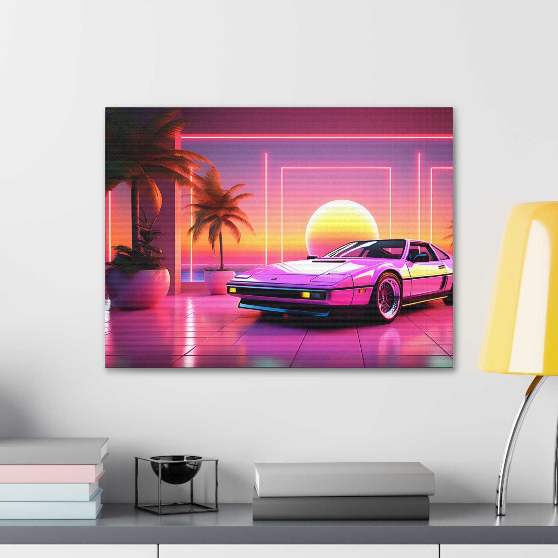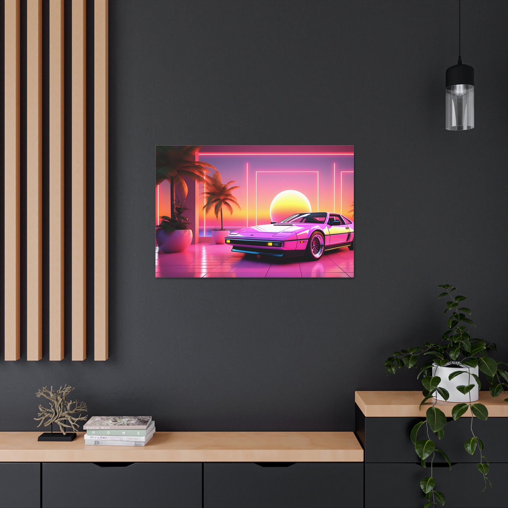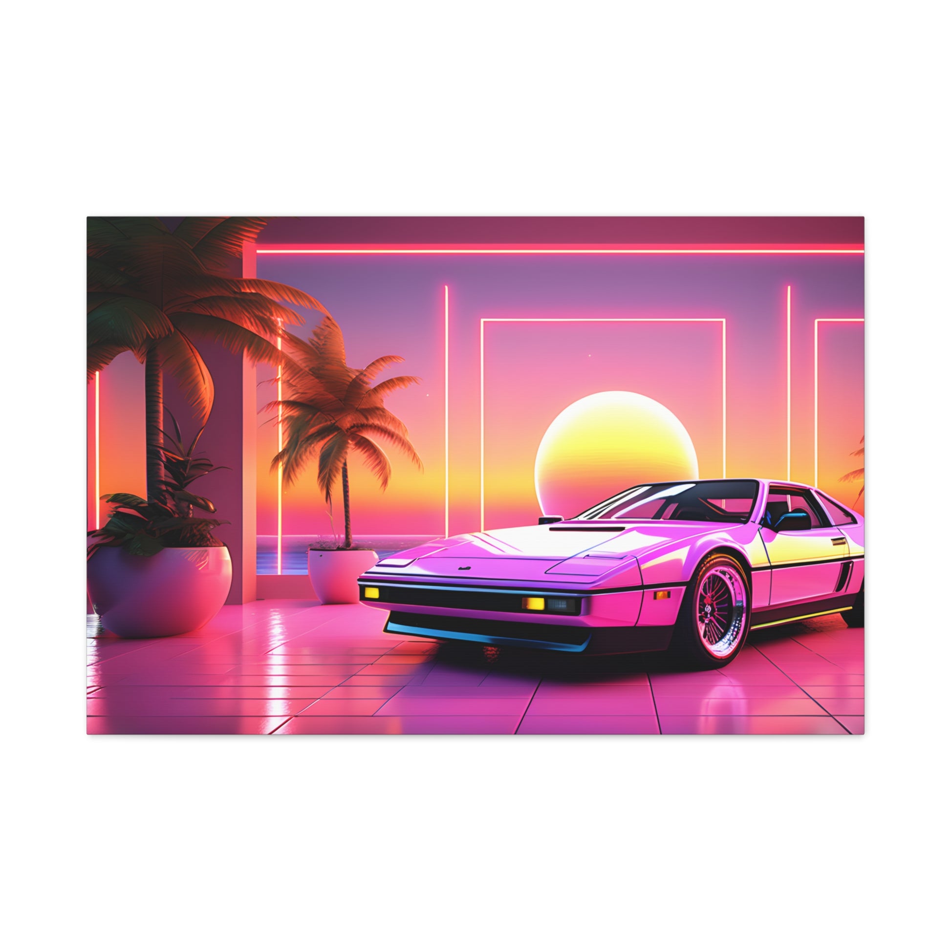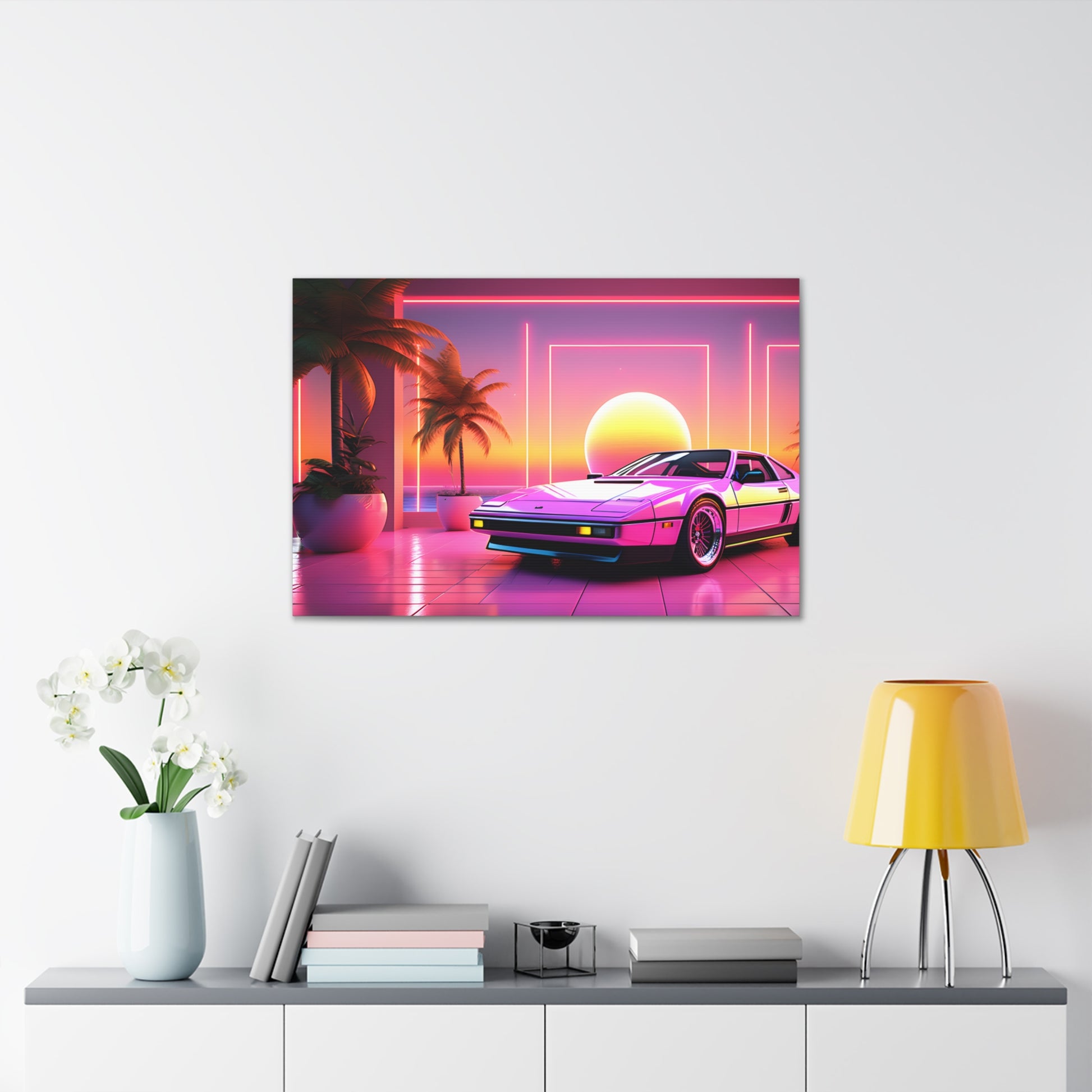 Embark on a journey through time with "Cruisin Chromatic: Outrun Wall Décor." This mesmerizing canvas artwork captures the pulsating essence of the outrun aesthetic, creating a chromatic symphony that echoes the vibrant energy of the 80s.