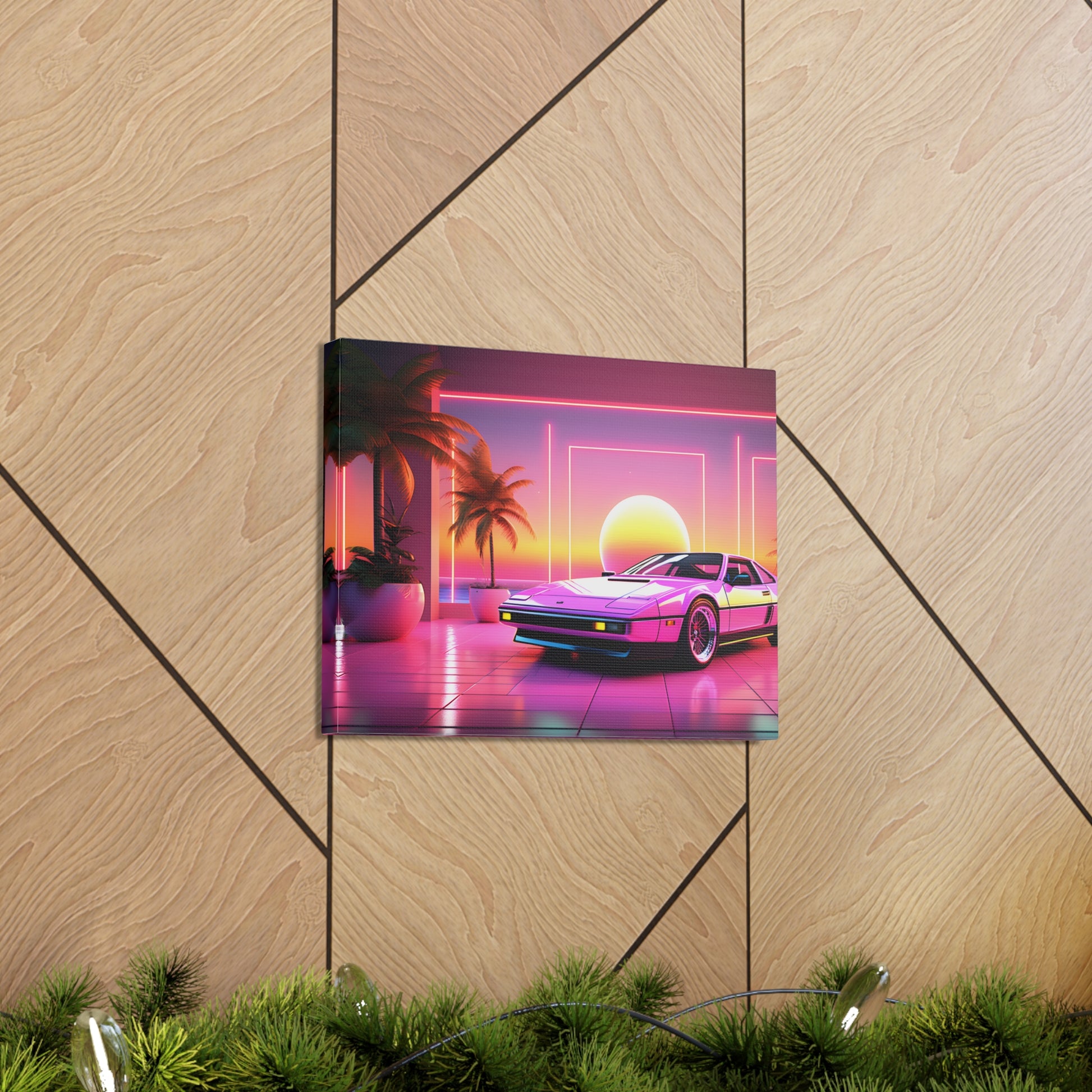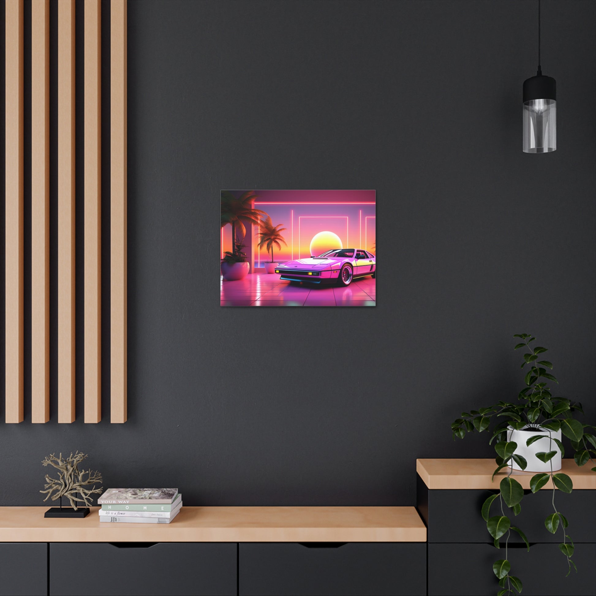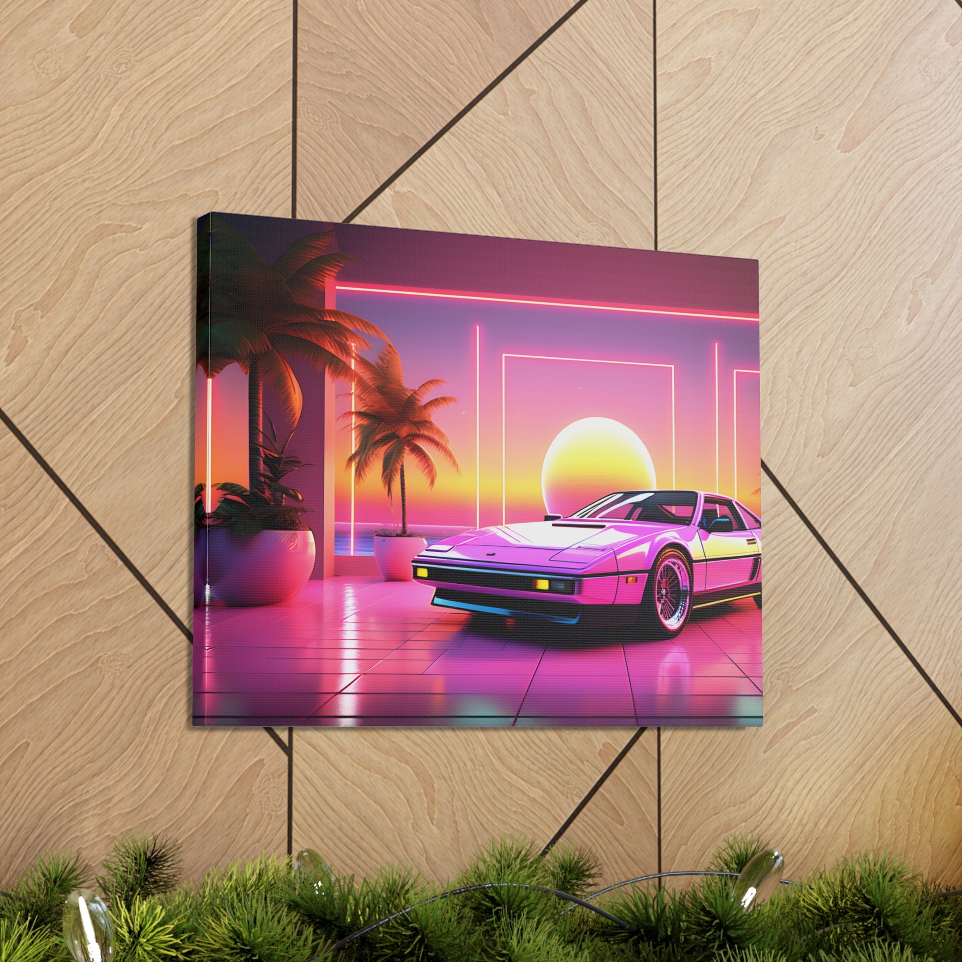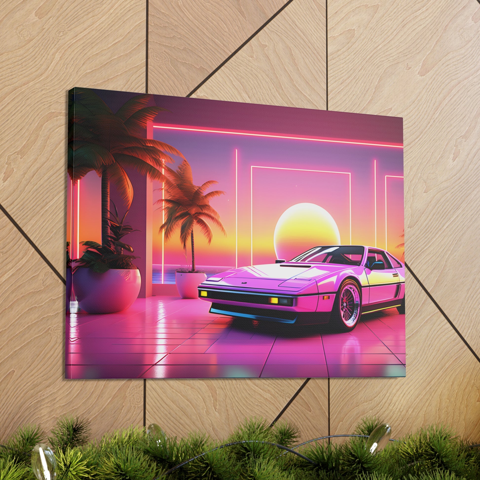 Embark on a journey through time with "Cruisin Chromatic: Outrun Wall Décor." This mesmerizing canvas artwork captures the pulsating essence of the outrun aesthetic, creating a chromatic symphony that echoes the vibrant energy of the 80s.