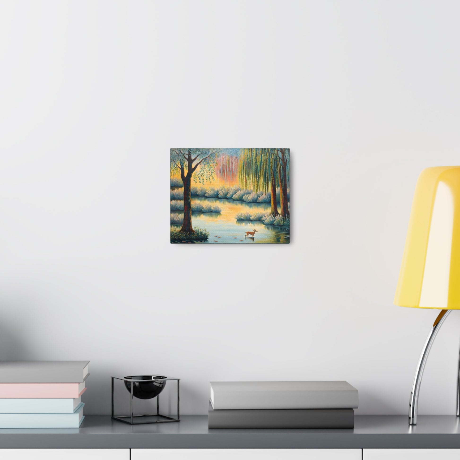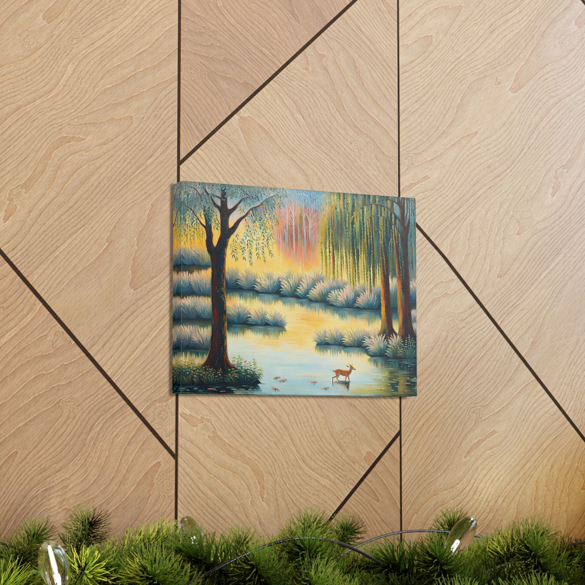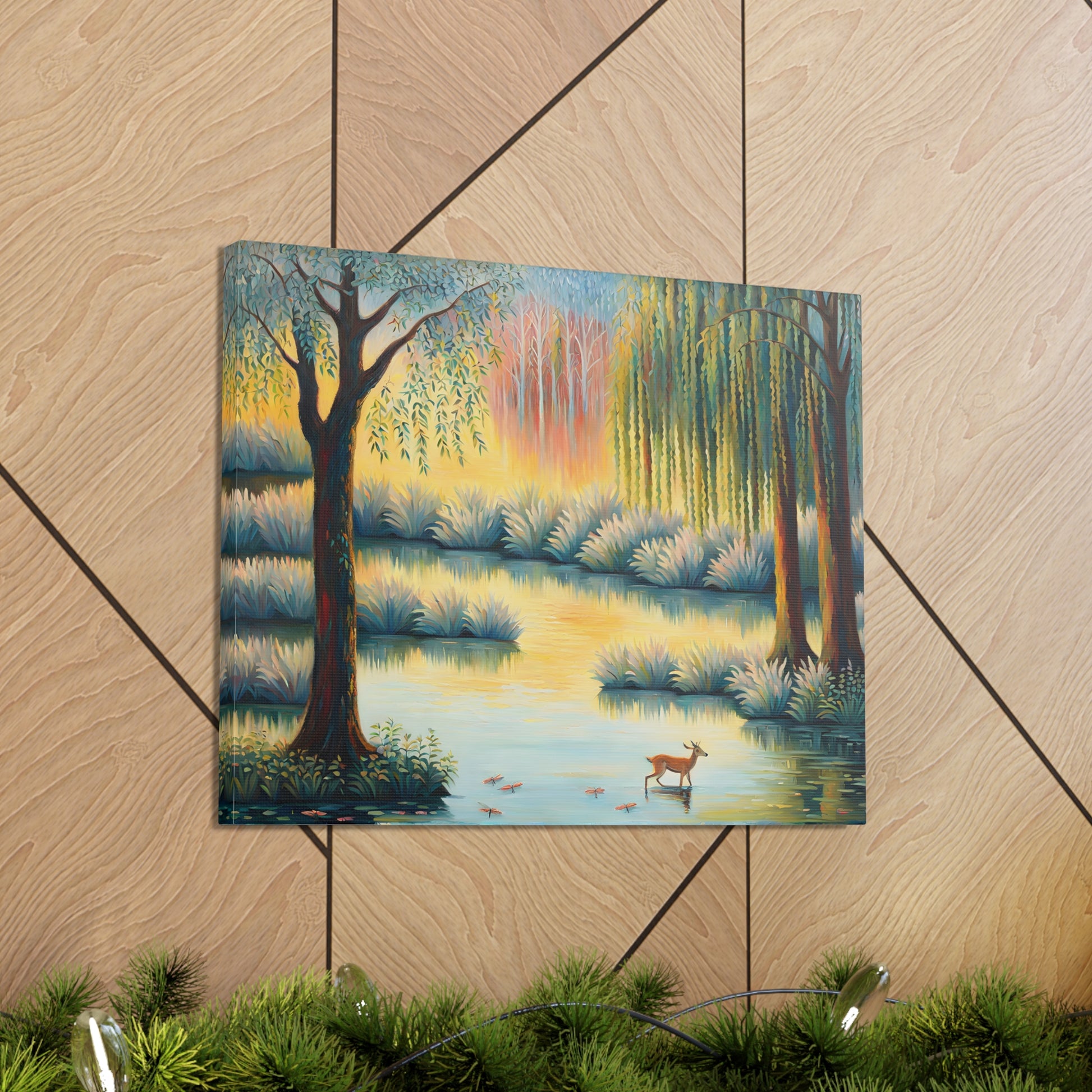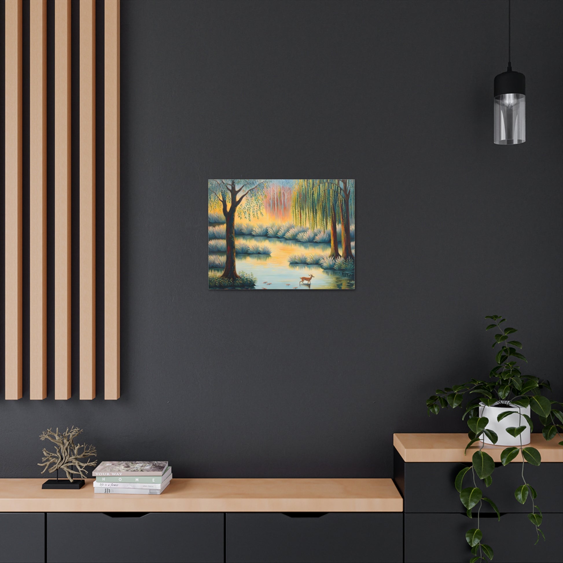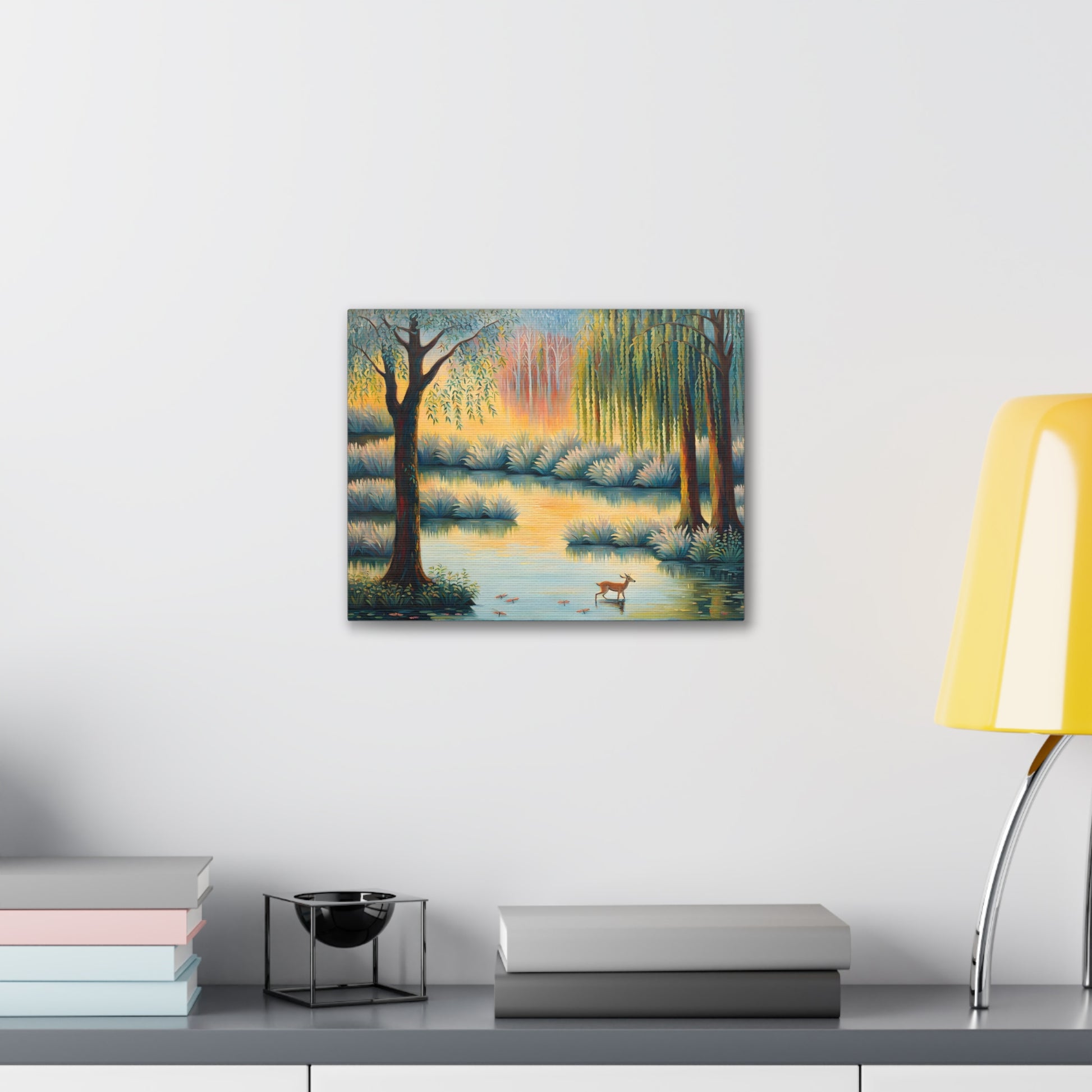 "Delicate Foliage" is a captivating oil painting that brings the gentle beauty of nature into your home. Painted on high-quality cotton canvas, this artwork depicts a serene scene of a deer gracefully wading through a calm stream surrounded by lush greenery and delicate leaves. Perfect for adding a touch of natural charm to any space, this piece is intended for indoor use only.