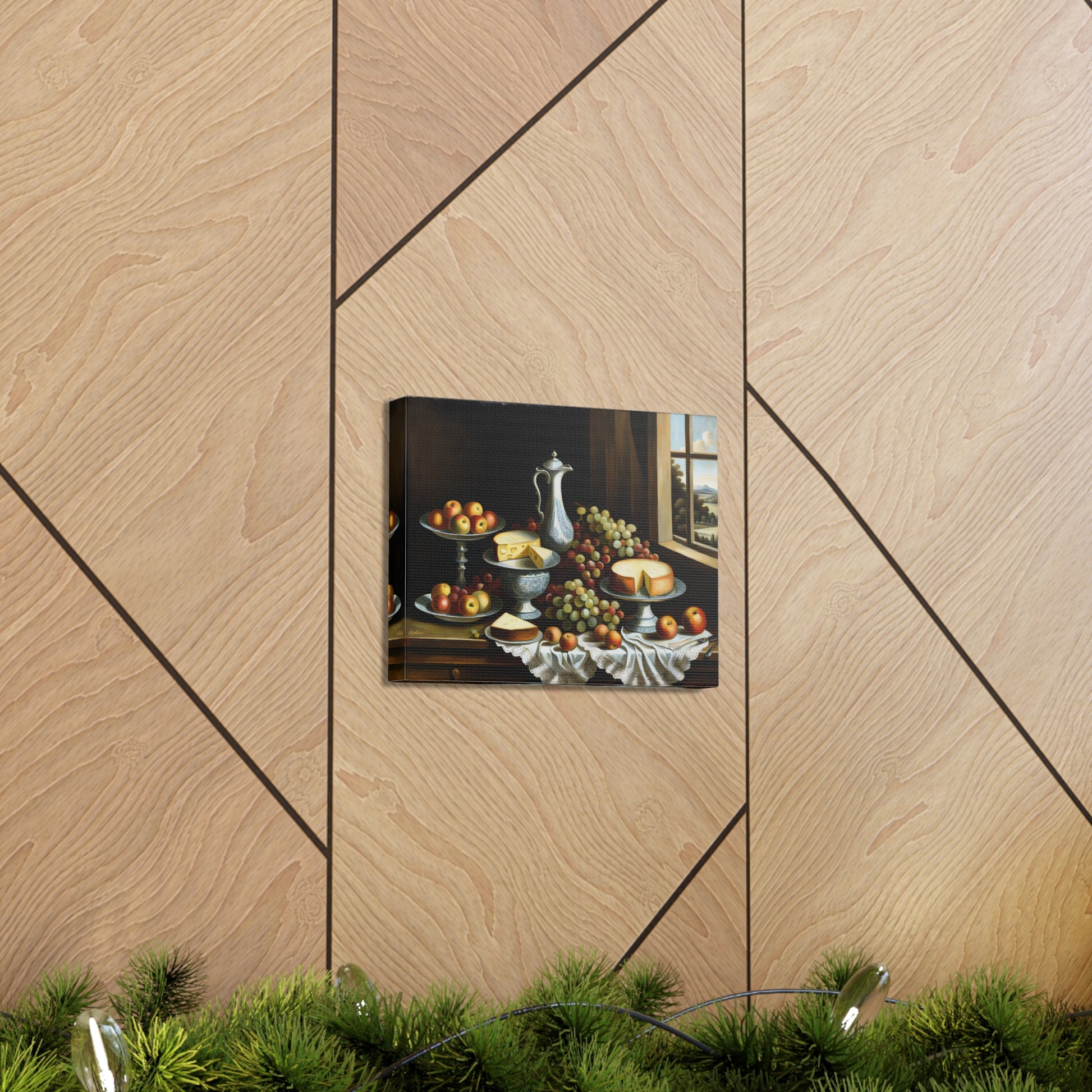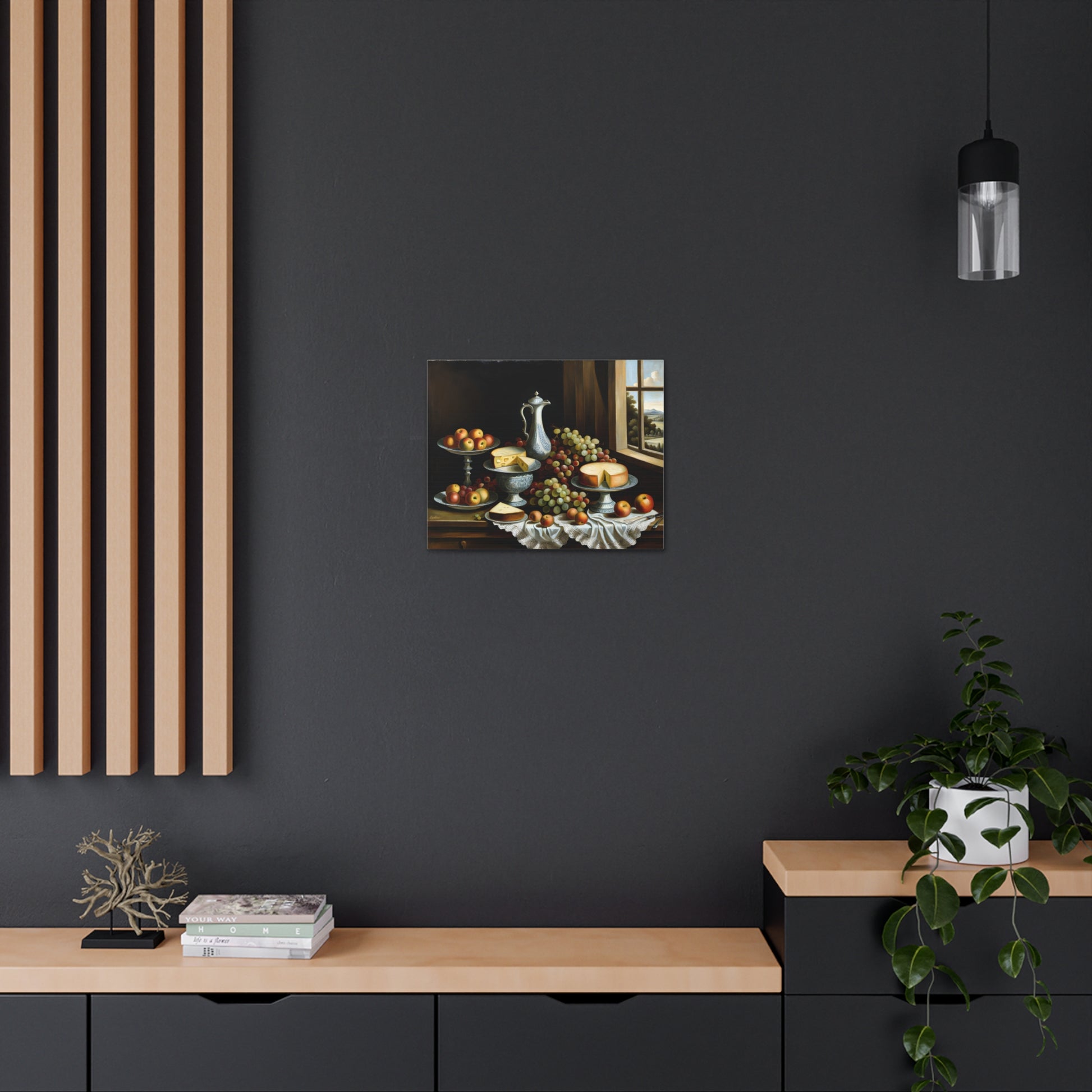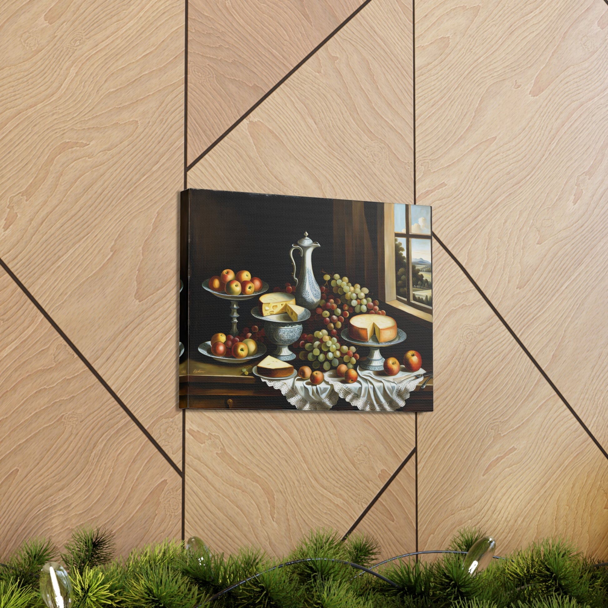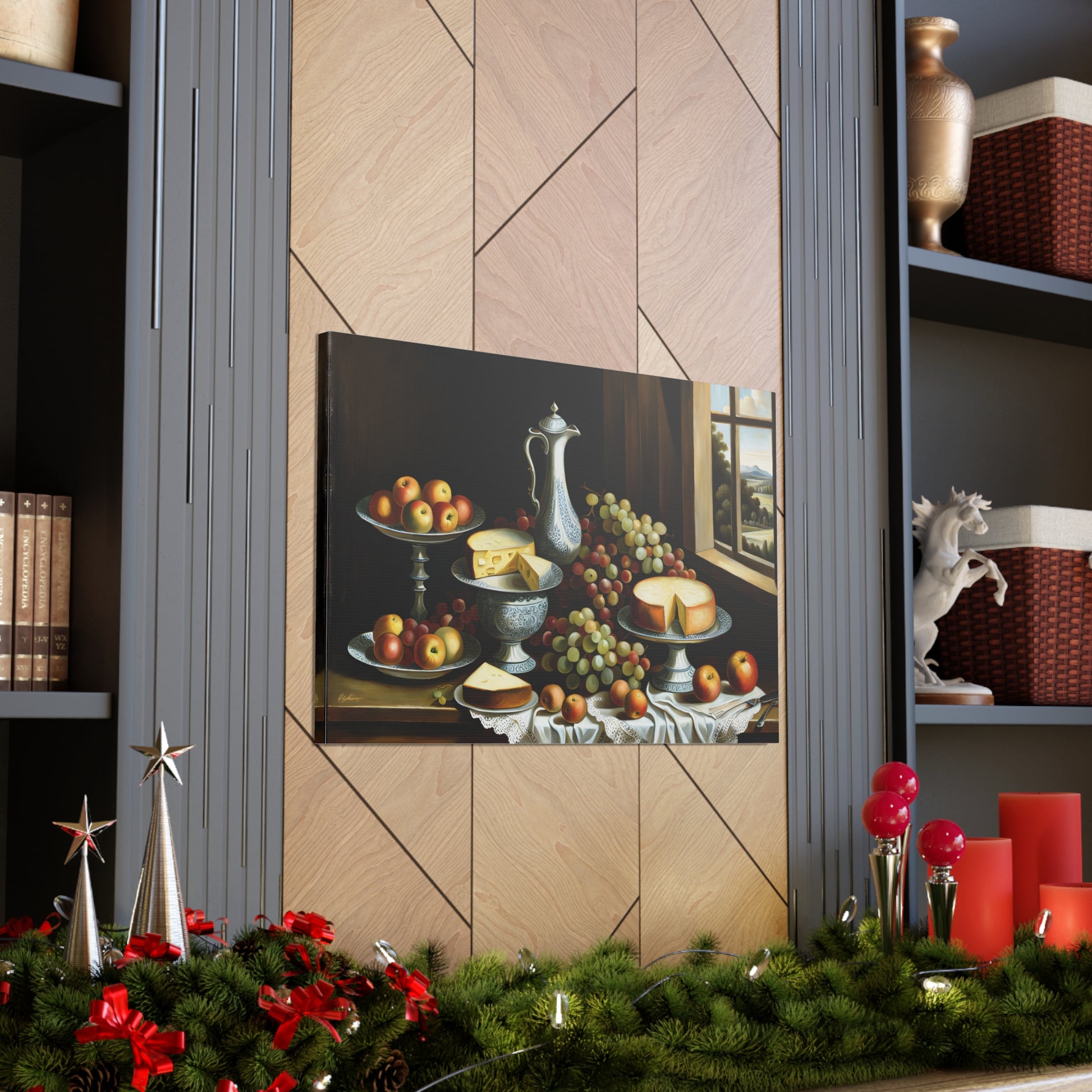 Celebrate the elegance of still life with "Dutch Century." This oil painting takes inspiration from classic Dutch masterpieces, featuring an exquisite arrangement of fruit and cheese by the window. Ideal for adding an air of sophistication to your space.