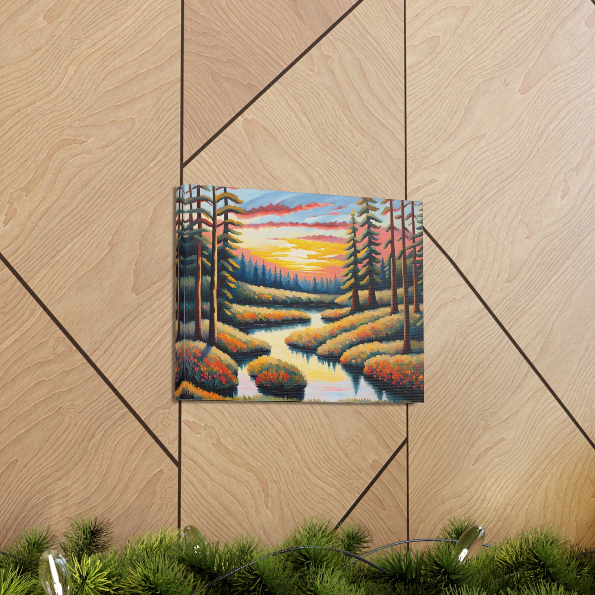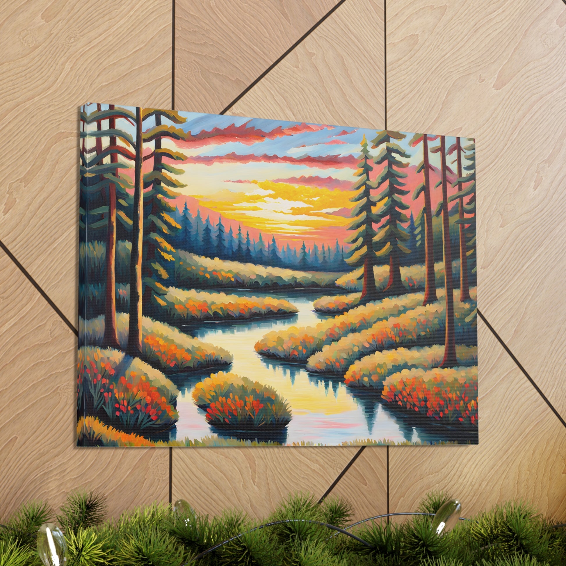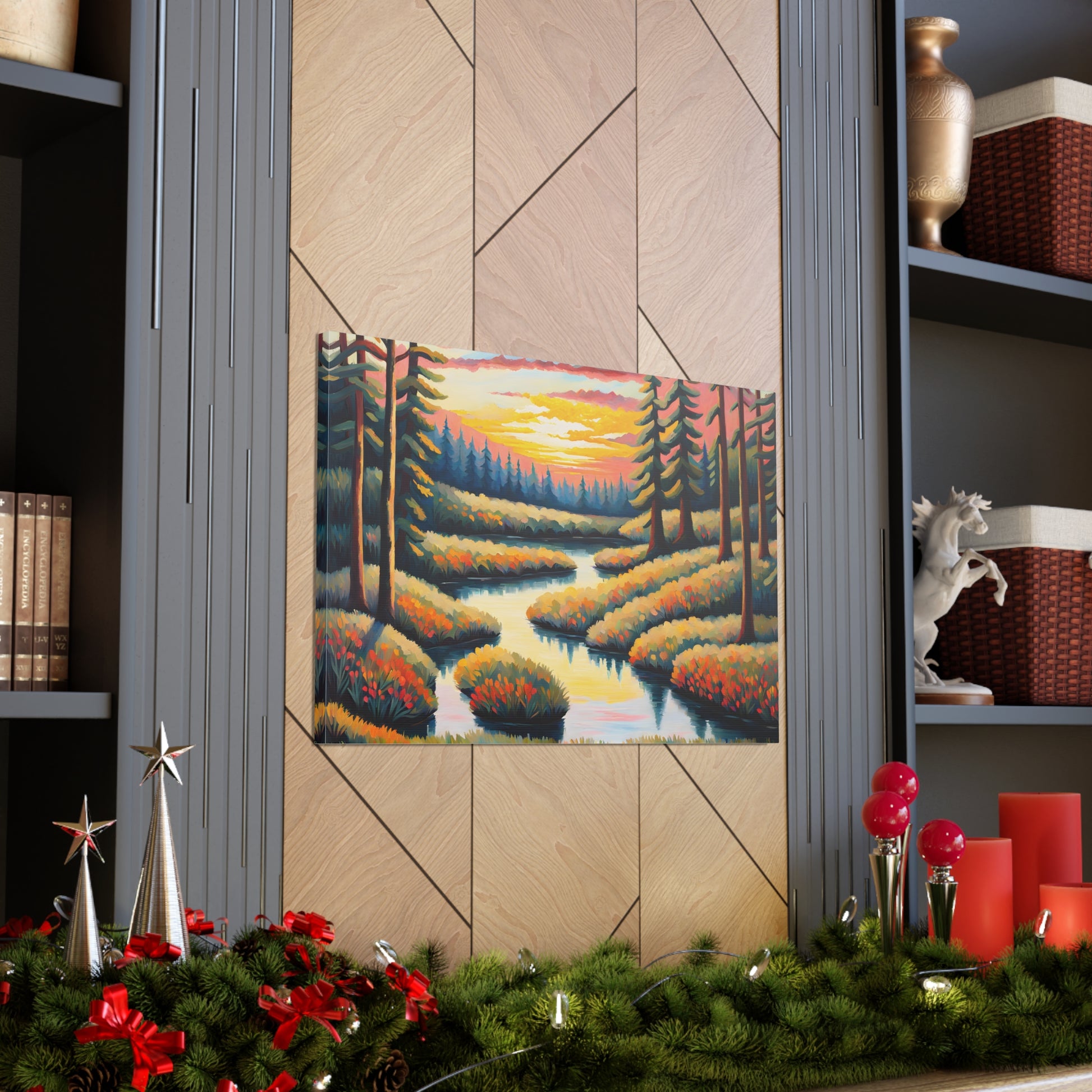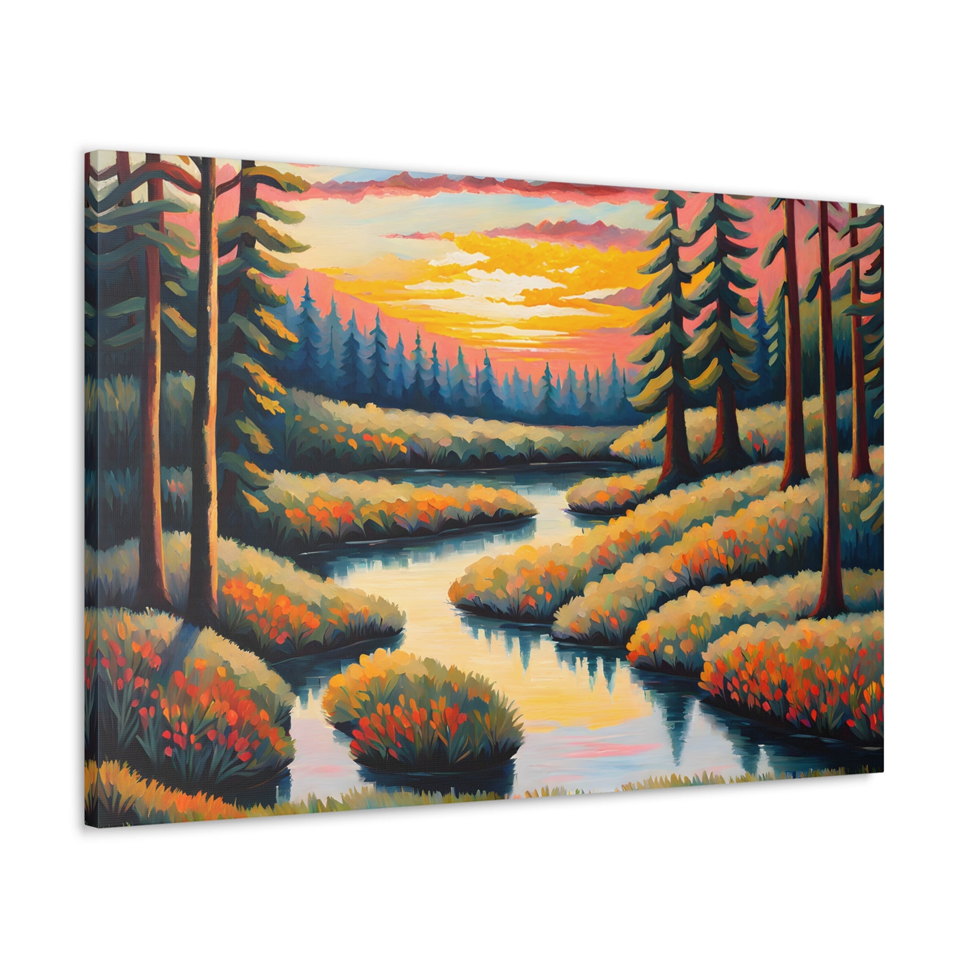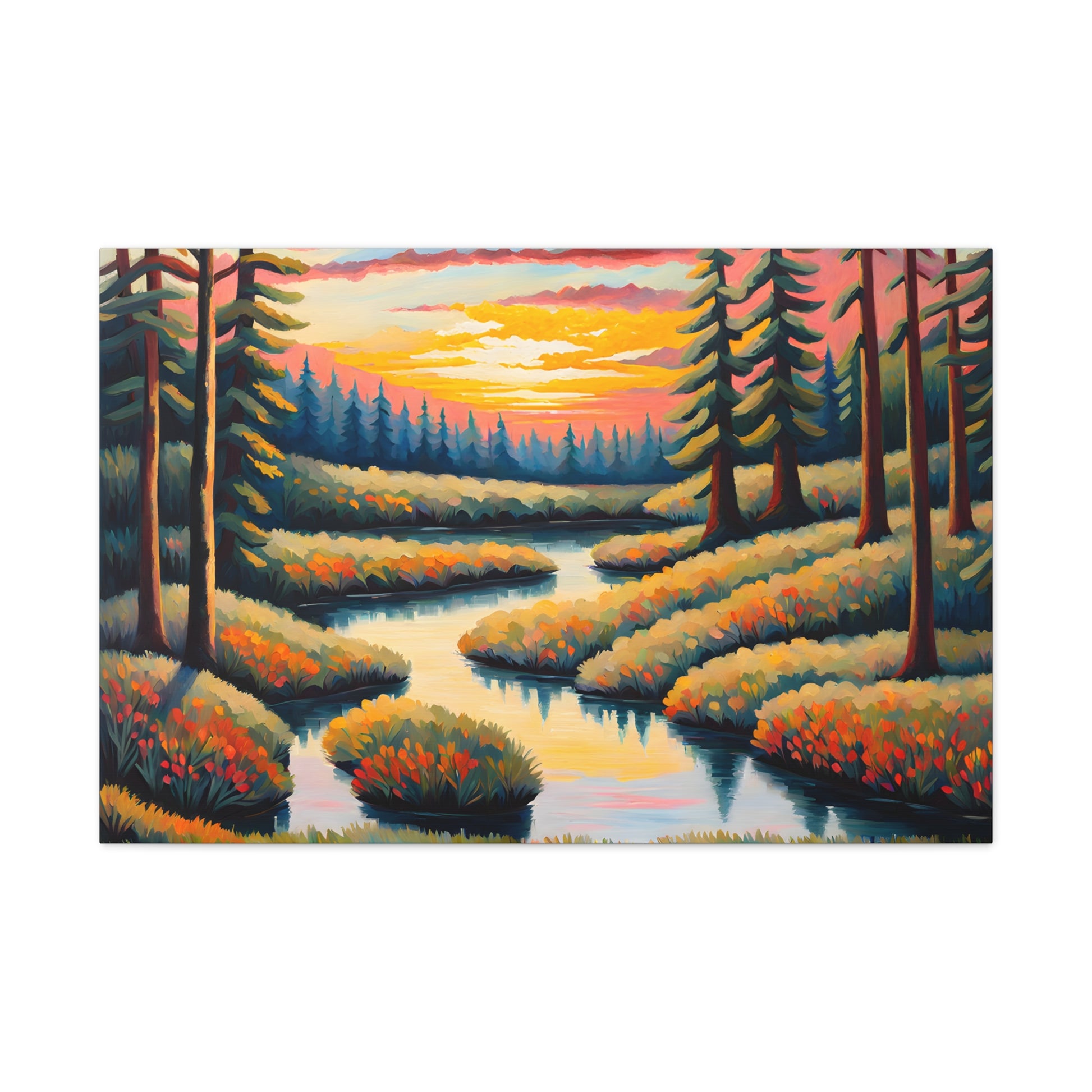 Embrace the serenity of vast, untouched landscapes with "Echoing Valleys." This oil painting, created on cotton canvas, depicts a flowing river meandering through lush fields, evoking a peaceful countryside scene.