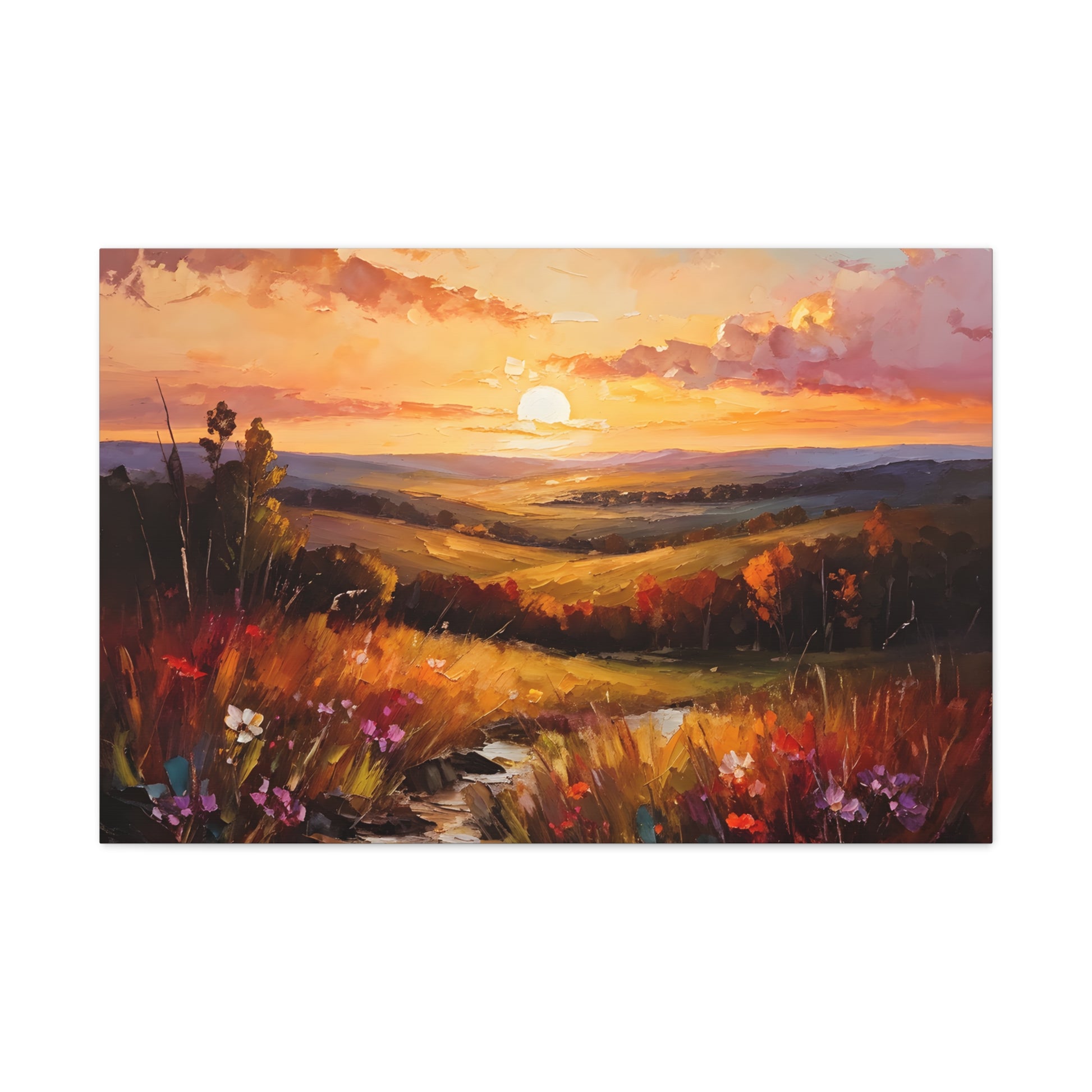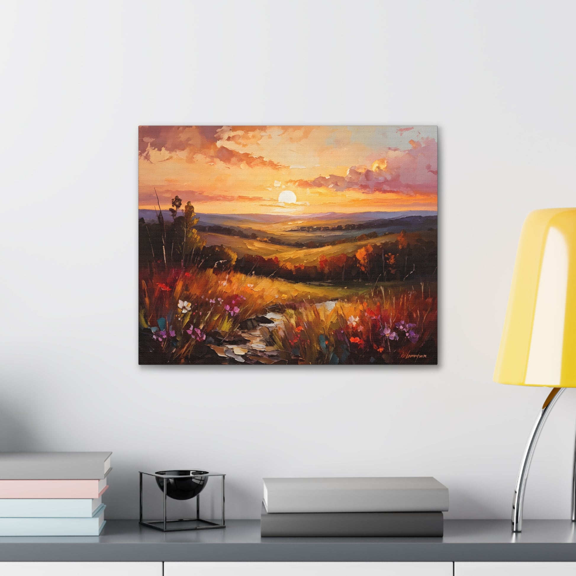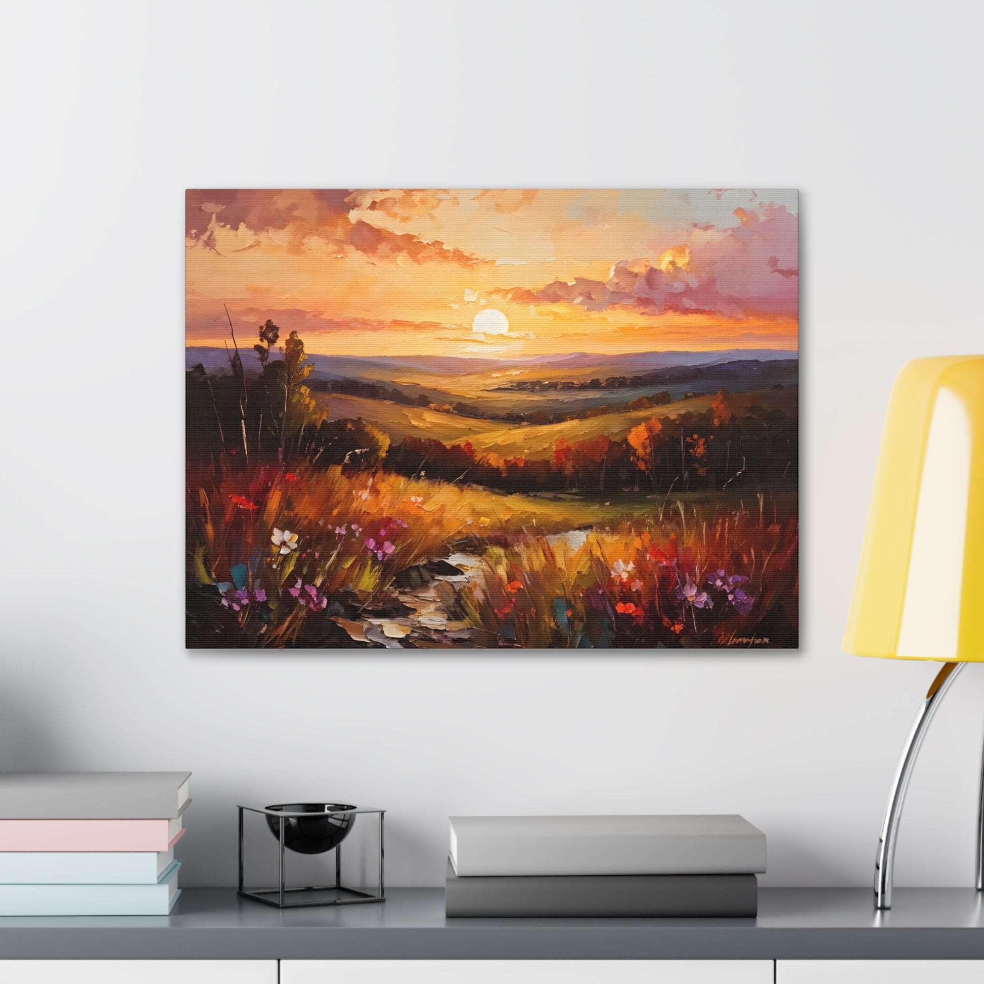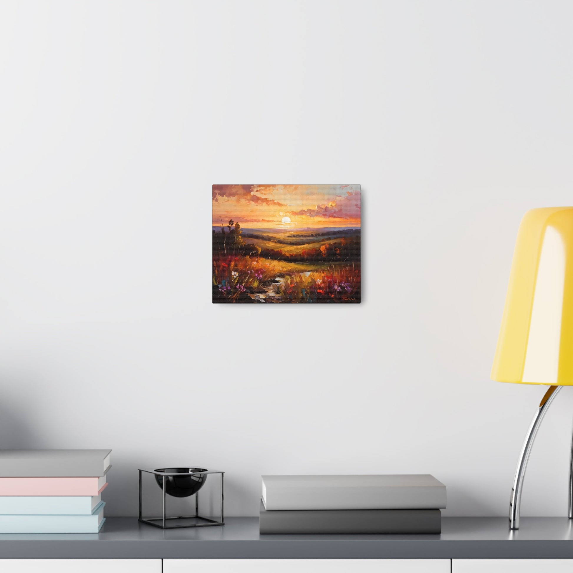 Let the breathtaking colors of the horizon fill your space with "Enchanted Horizon." Crafted on high-quality cotton canvas, this oil painting evokes a serene sunset over rolling hills, bringing warmth and beauty indoors. NB! For indoor use only.