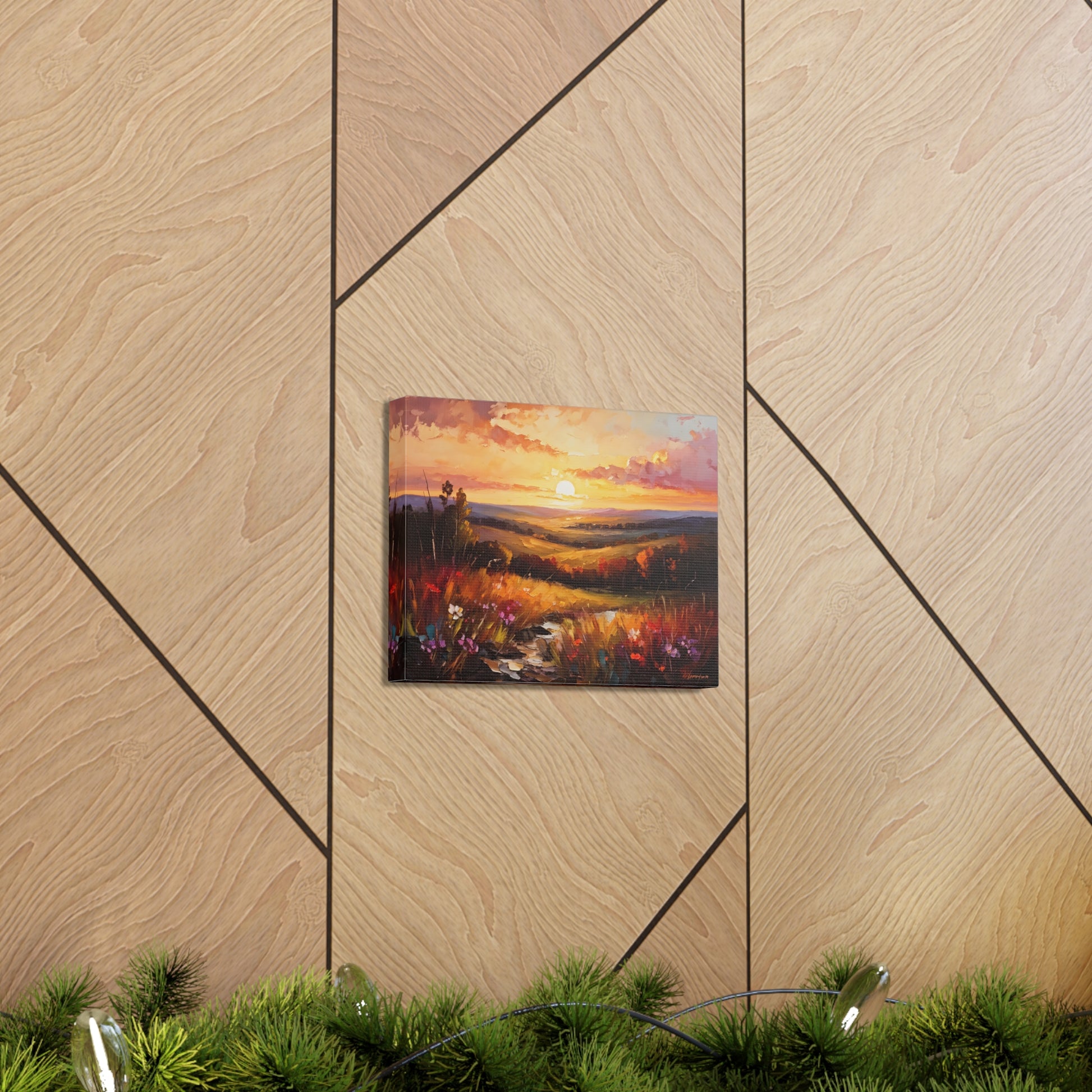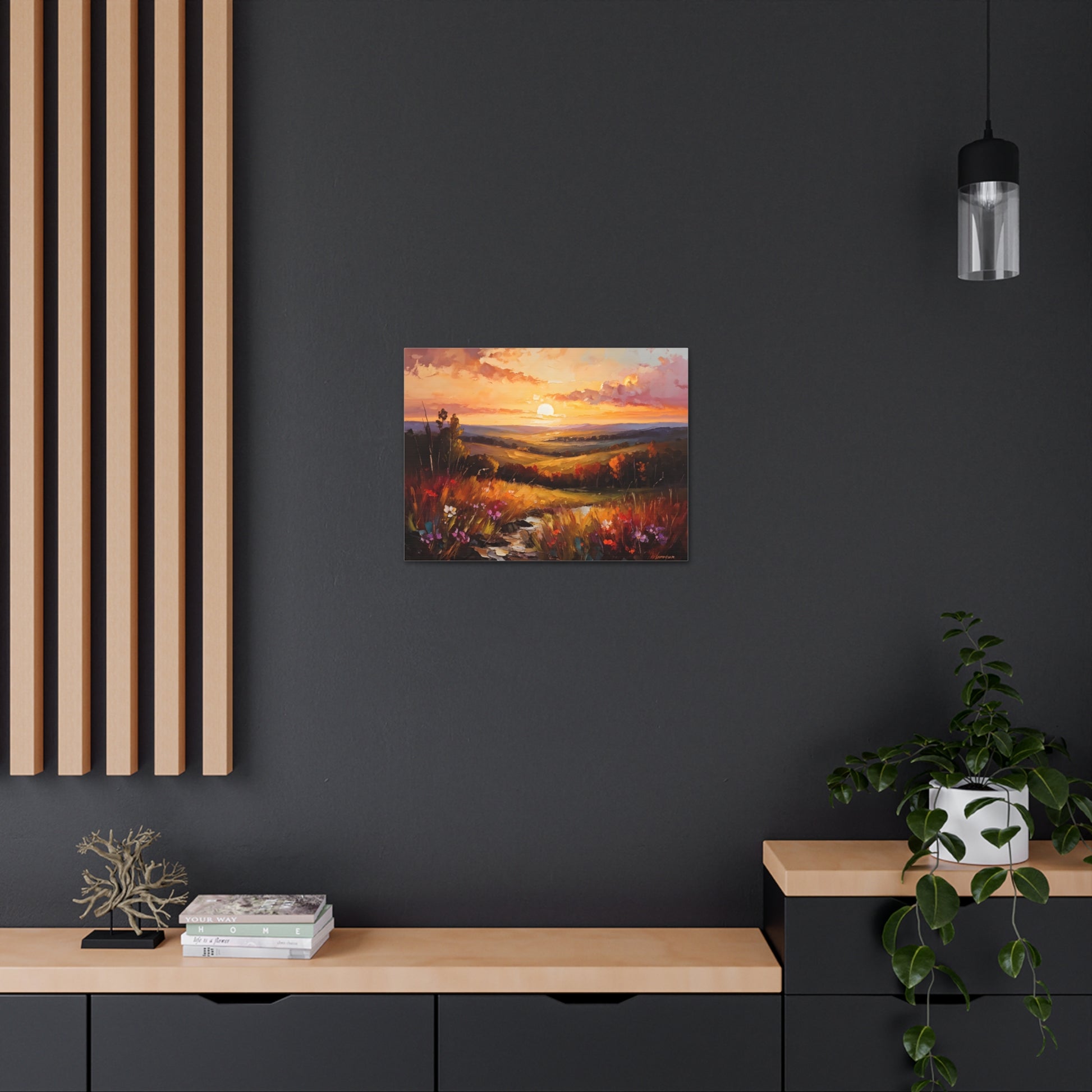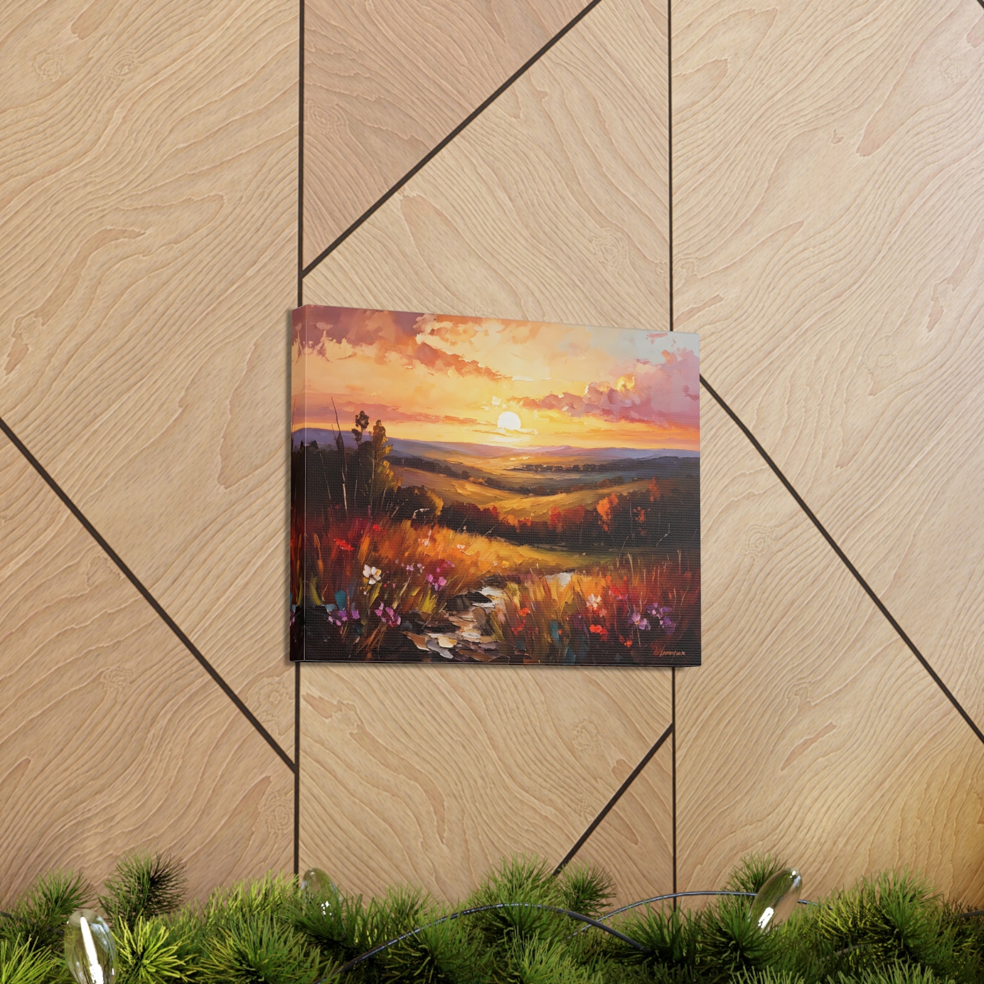 Let the breathtaking colors of the horizon fill your space with "Enchanted Horizon." Crafted on high-quality cotton canvas, this oil painting evokes a serene sunset over rolling hills, bringing warmth and beauty indoors. NB! For indoor use only.