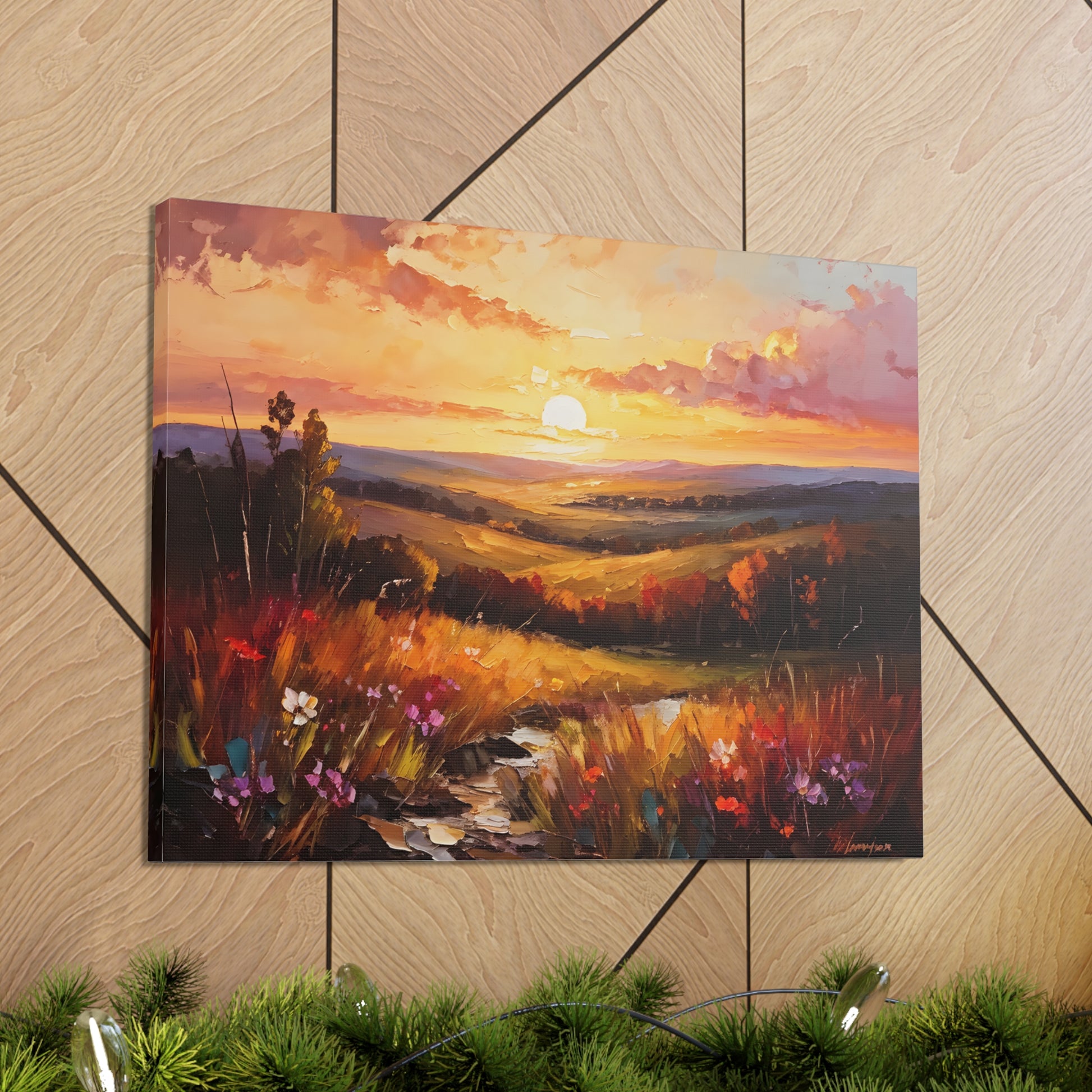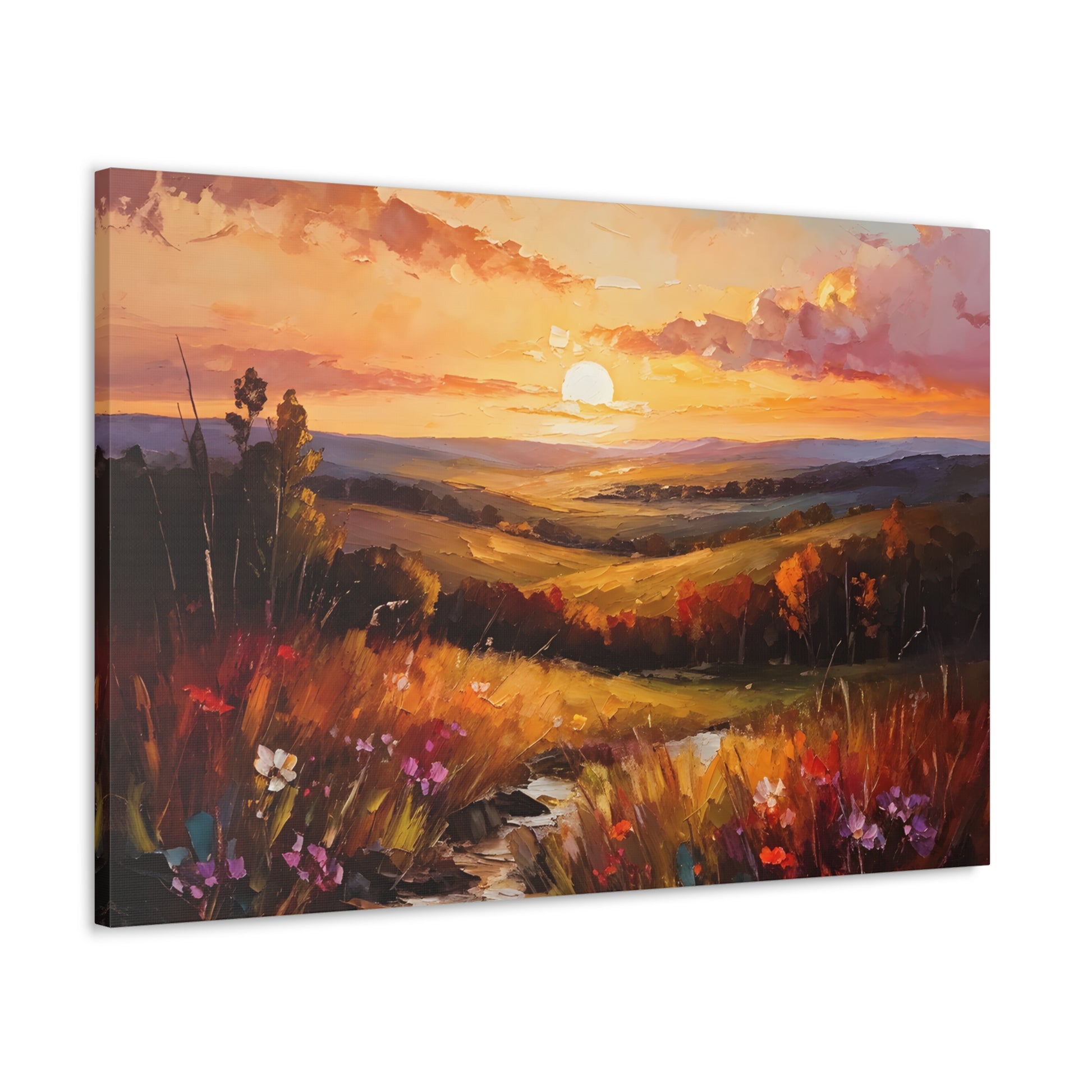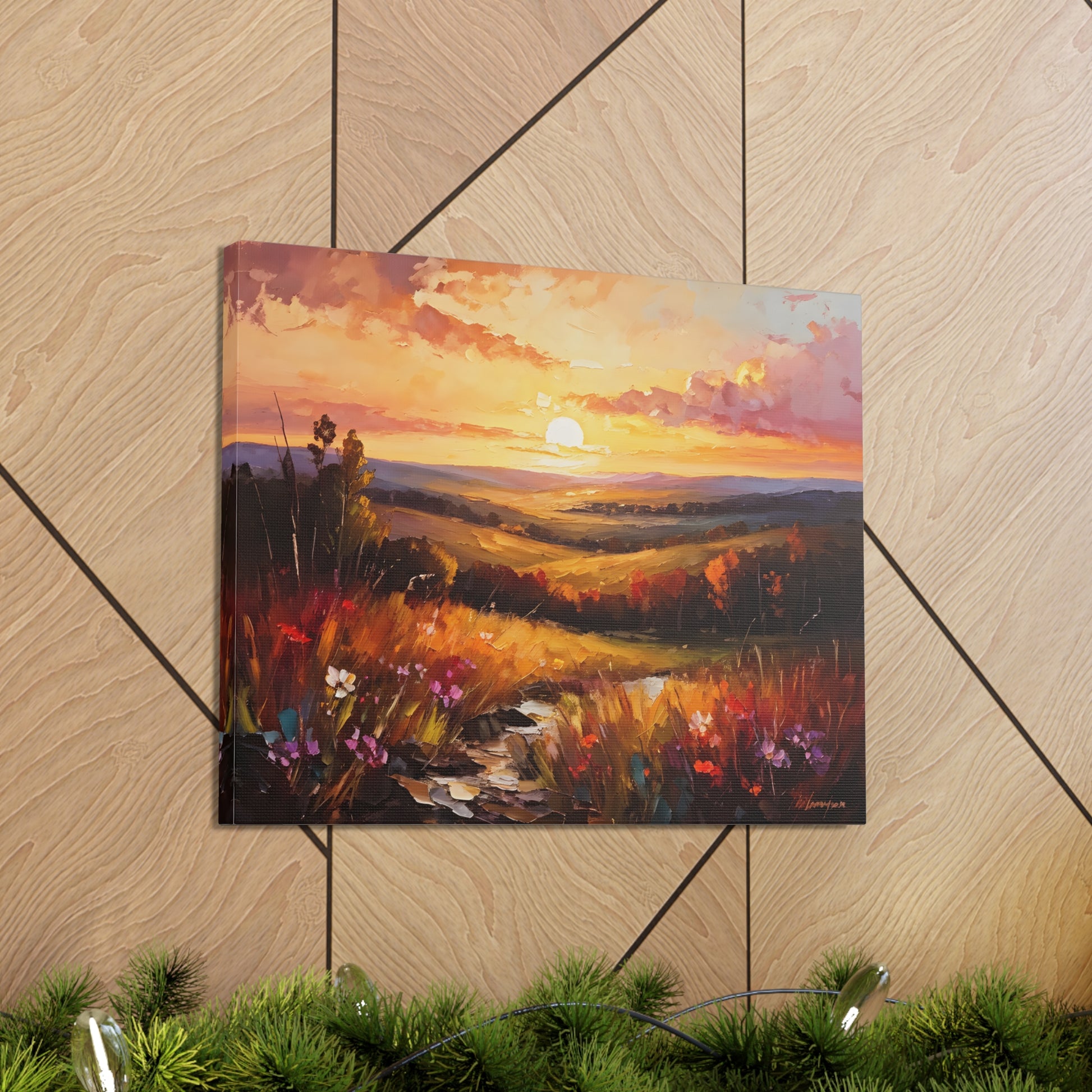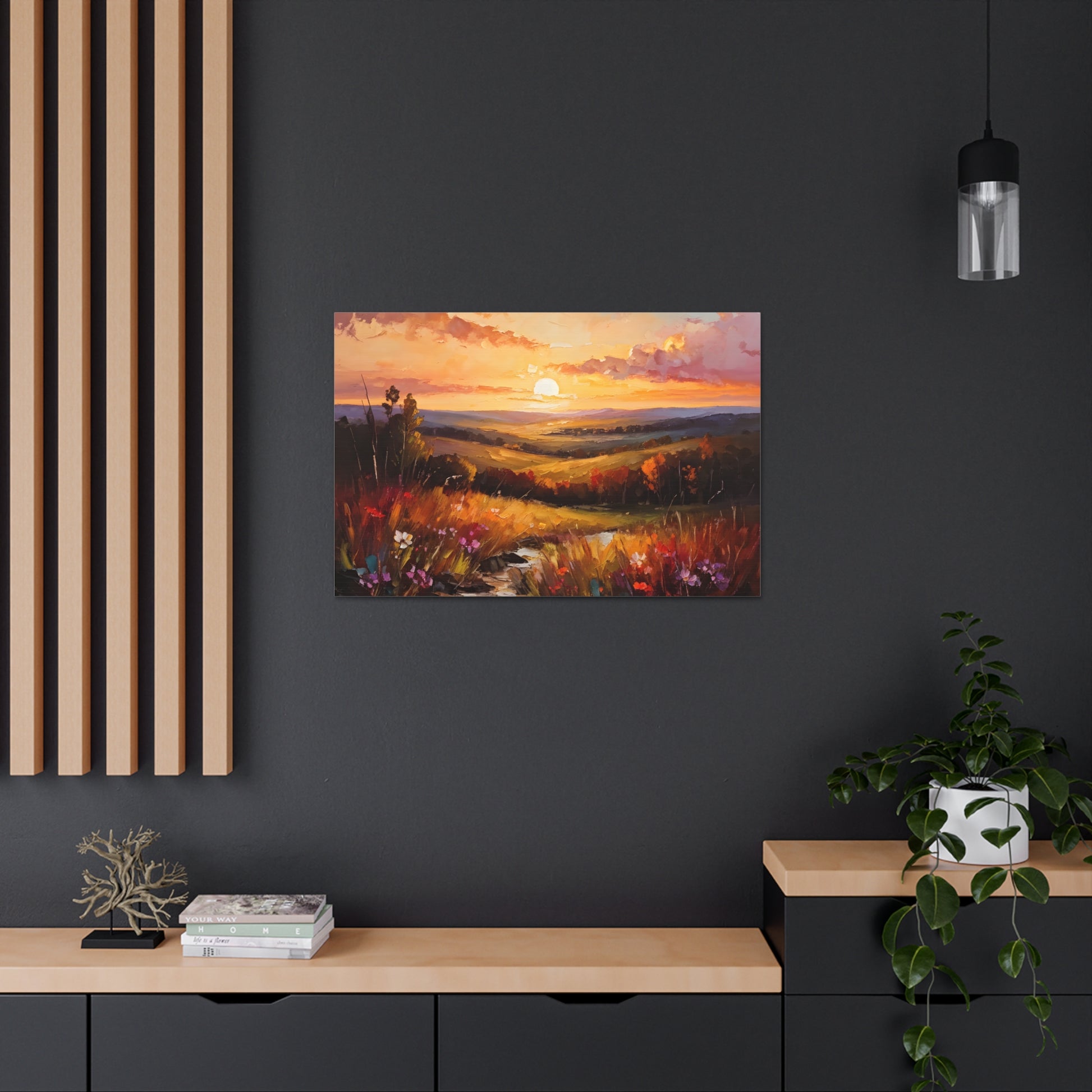 Let the breathtaking colors of the horizon fill your space with "Enchanted Horizon." Crafted on high-quality cotton canvas, this oil painting evokes a serene sunset over rolling hills, bringing warmth and beauty indoors. NB! For indoor use only.