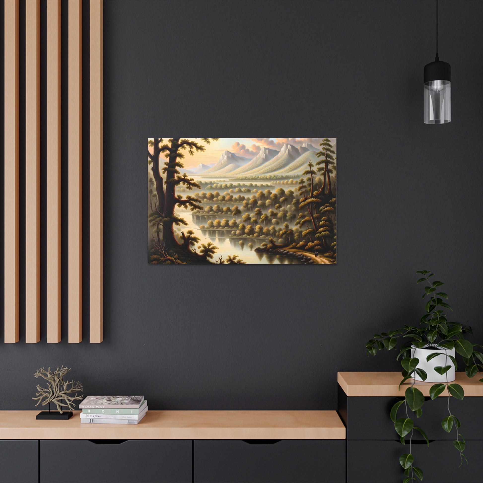 Marvel at the sweeping vistas of "Enchanted View," a classic oil painting that offers a breathtaking panorama of nature's grandeur. Painted on high-quality cotton canvas, this piece features towering trees and expansive views of mountains under a softly lit sky. Perfect for adding a majestic touch to any room, "Enchanted View" is designed for indoor use only.