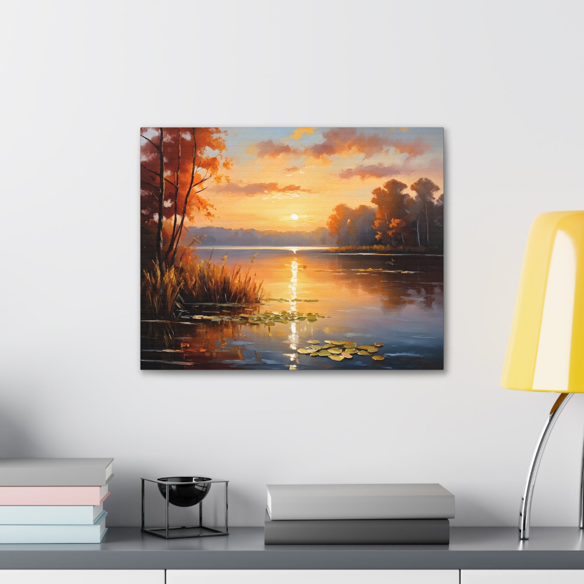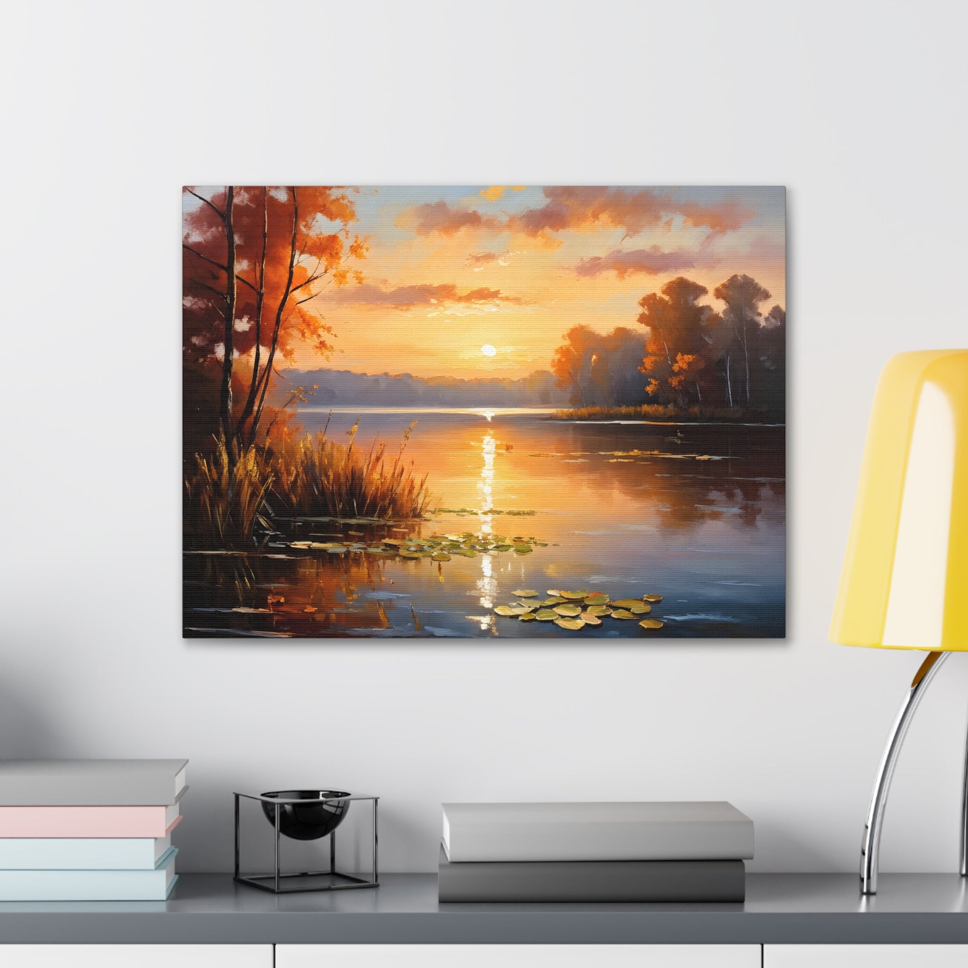 Take in the vast beauty of nature with "Enchanted Vista." This oil painting, set on premium cotton canvas, showcases a tranquil scene at dusk, perfect for adding a serene touch to any room. NB! For indoor use only.
