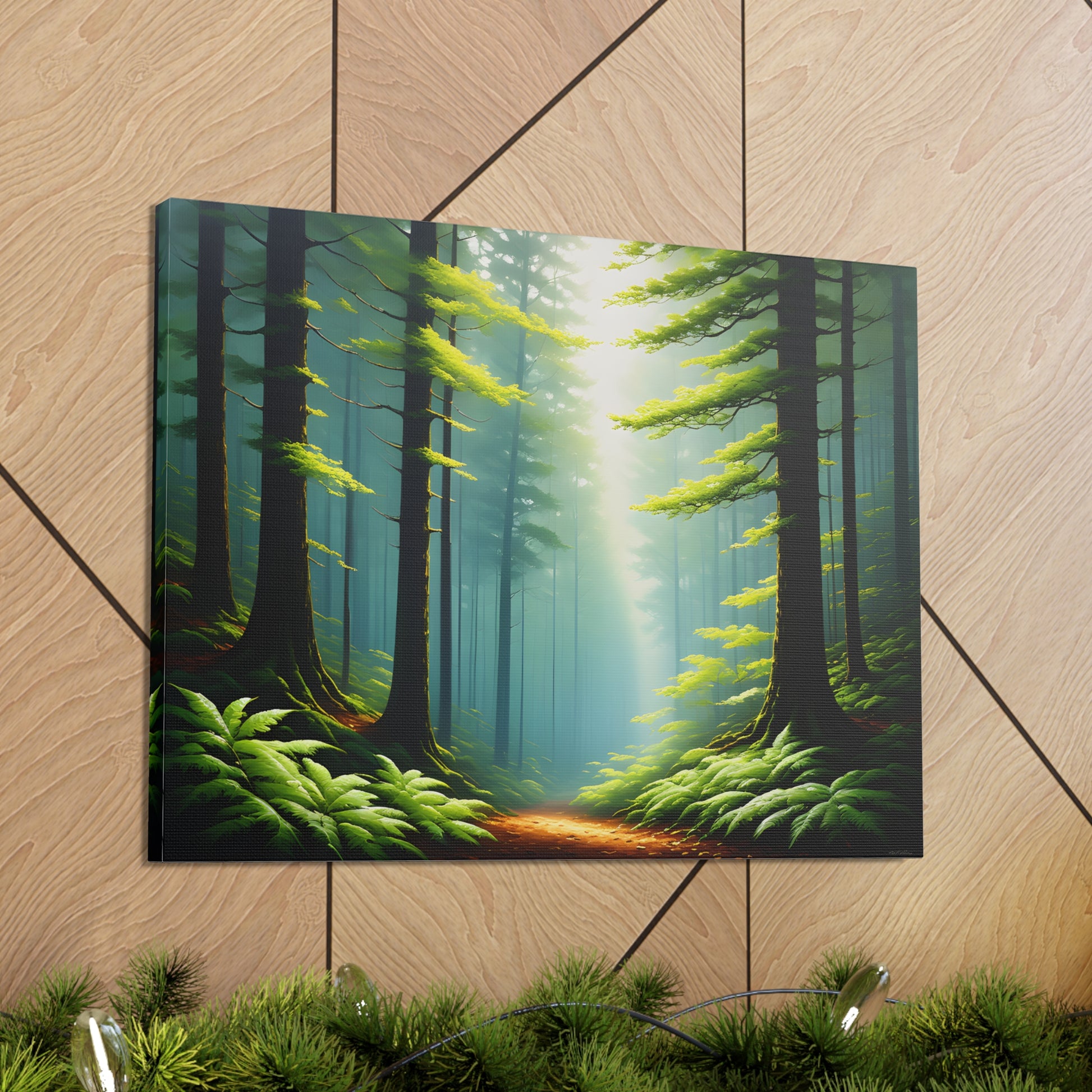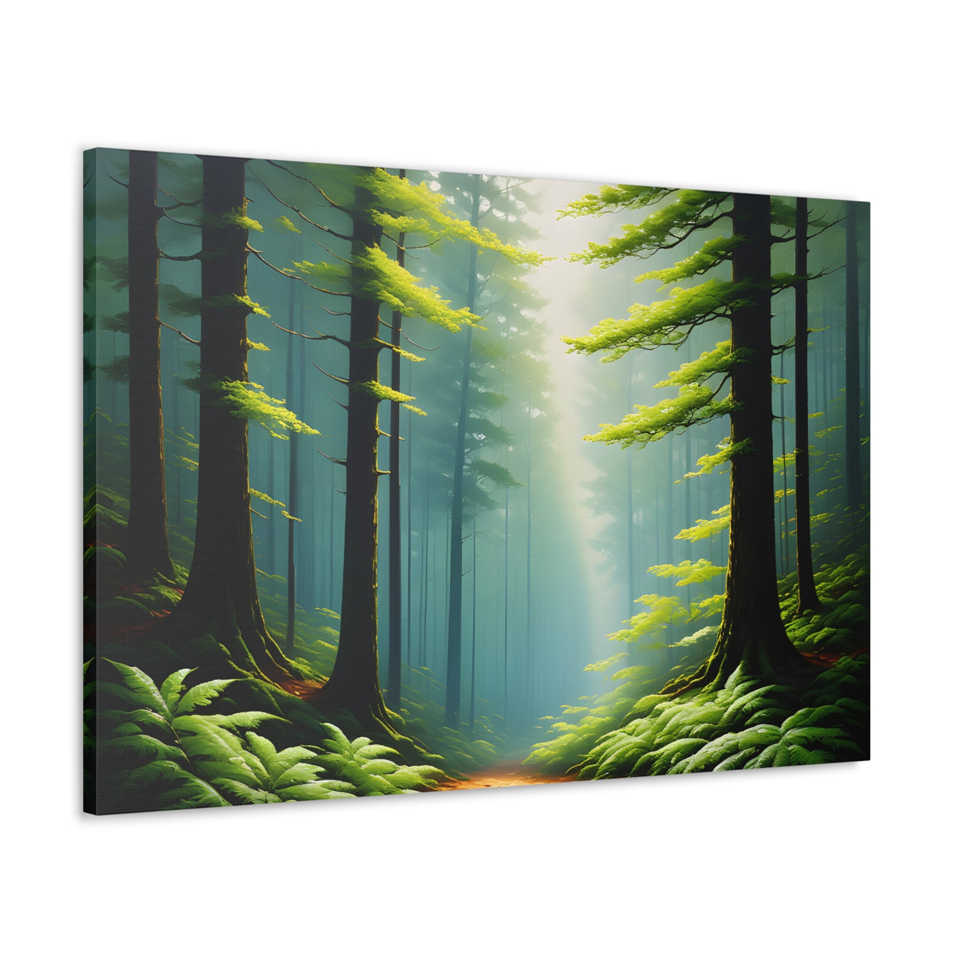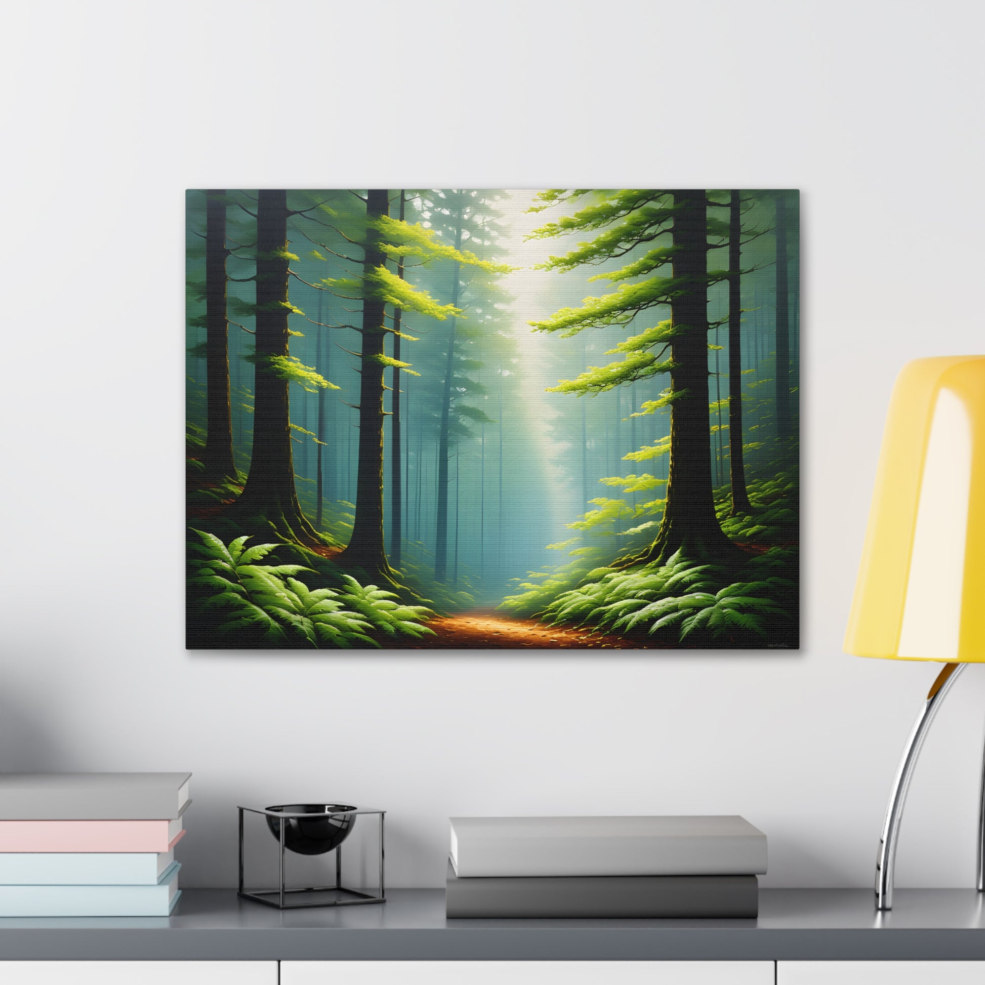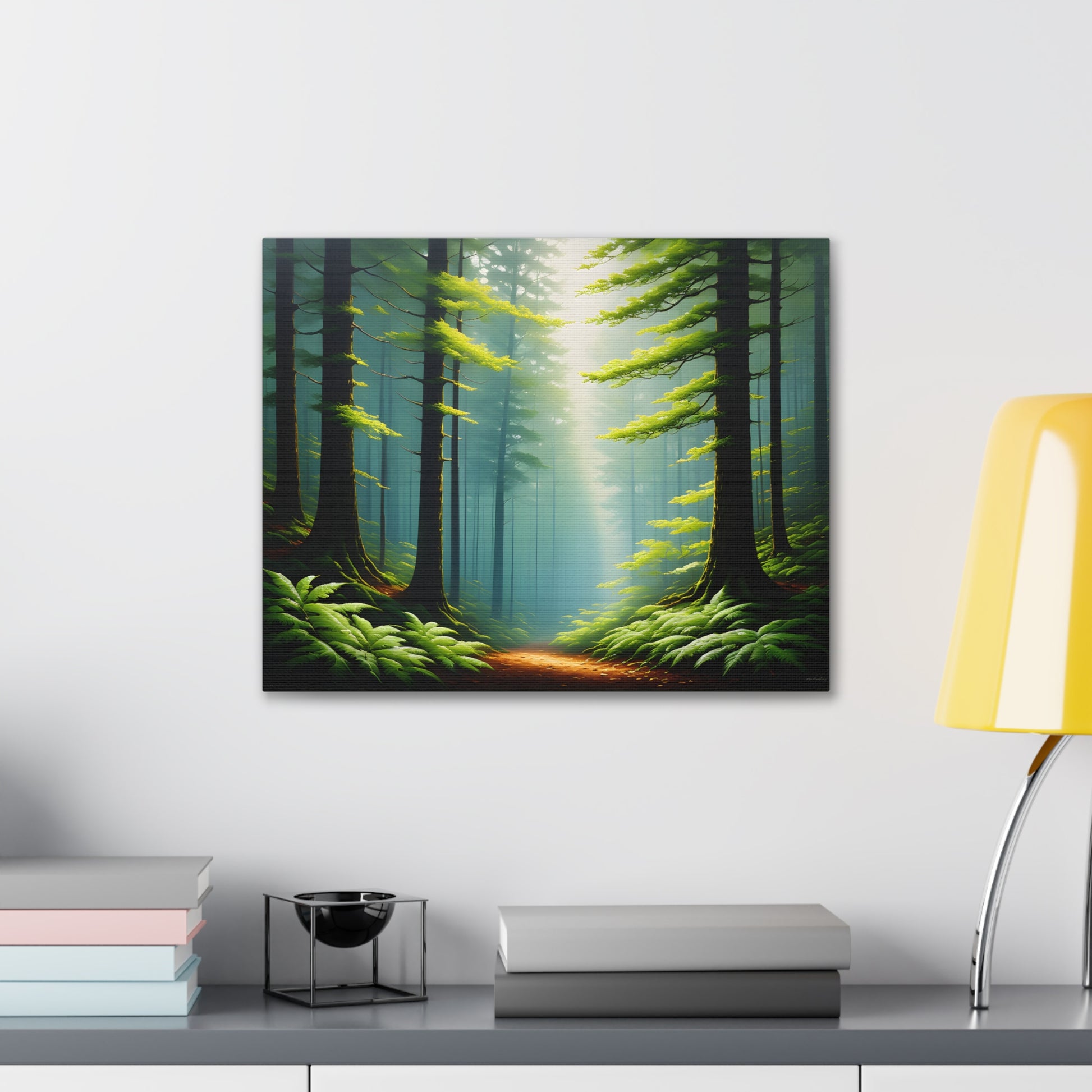 Step into the magical allure of "Enchanted Woodland," a captivating canvas artwork that brings the beauty of nature to life. This enchanting piece transports you to a whimsical forest realm, where the interplay of light and shadows dances through the lush foliage.