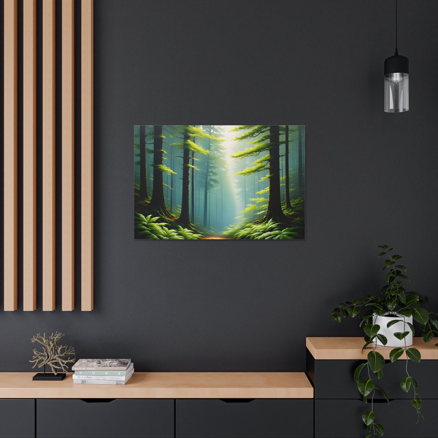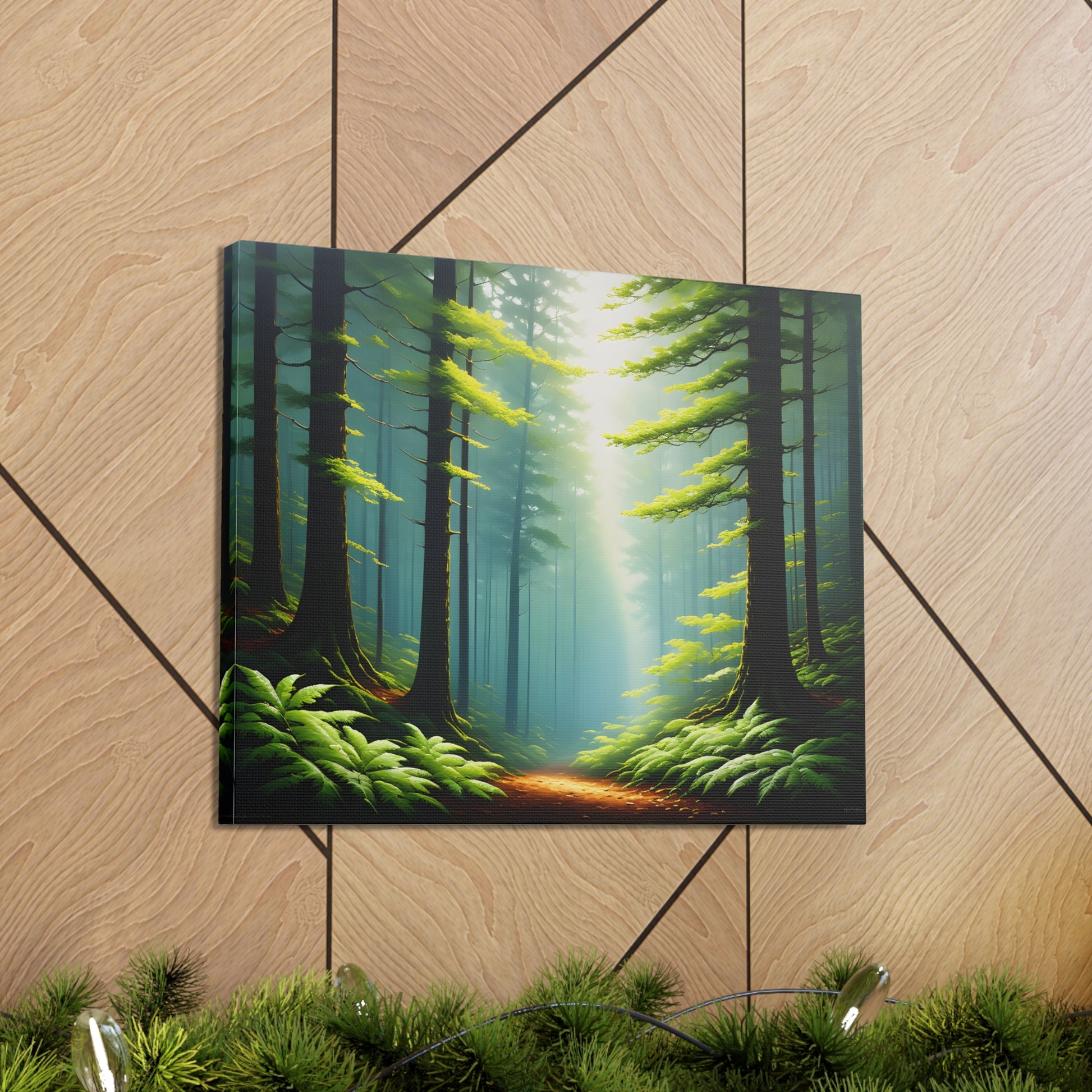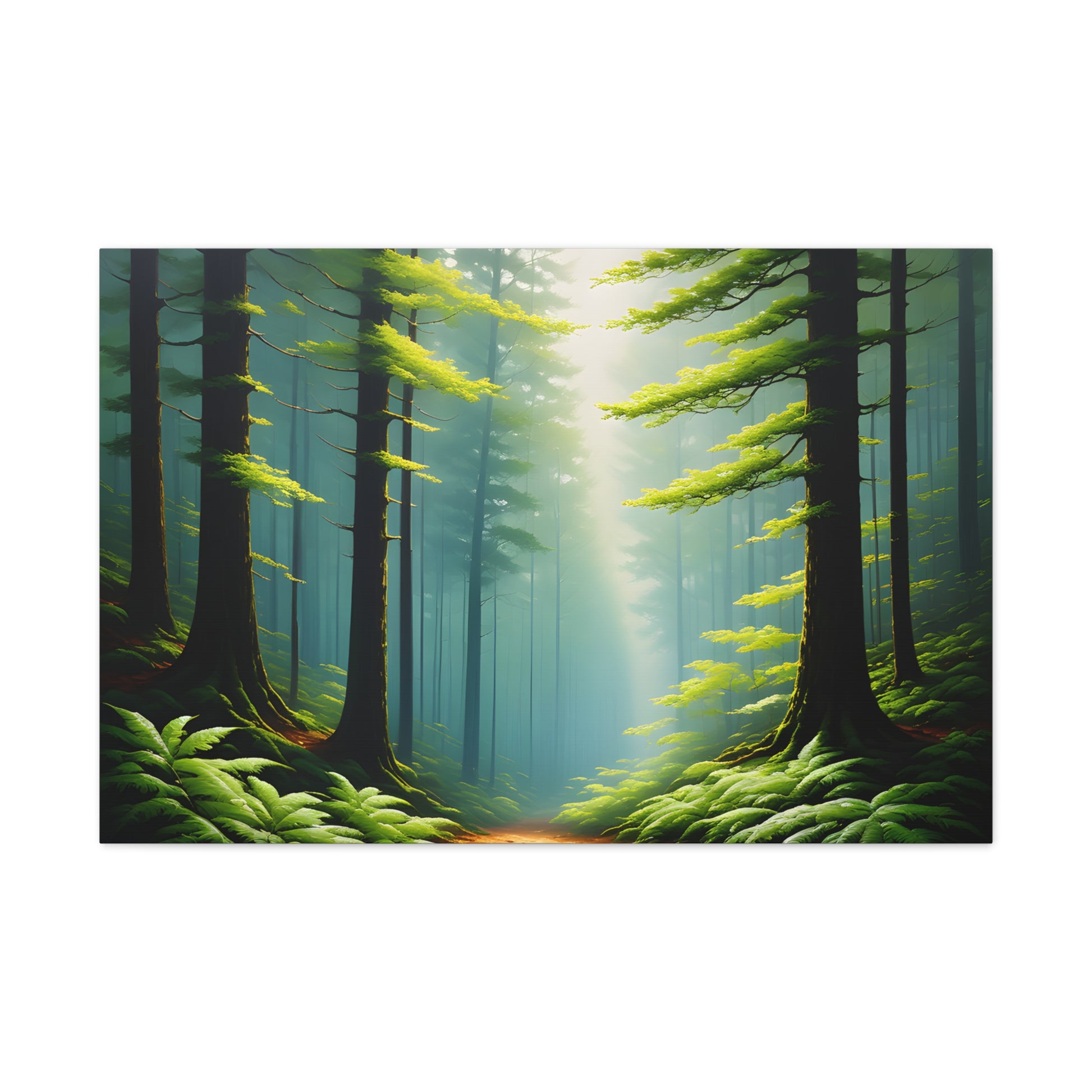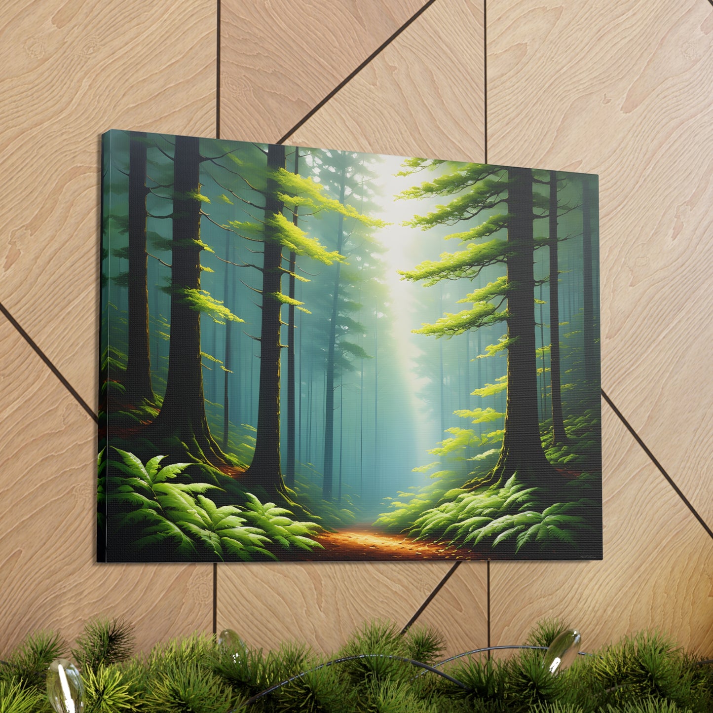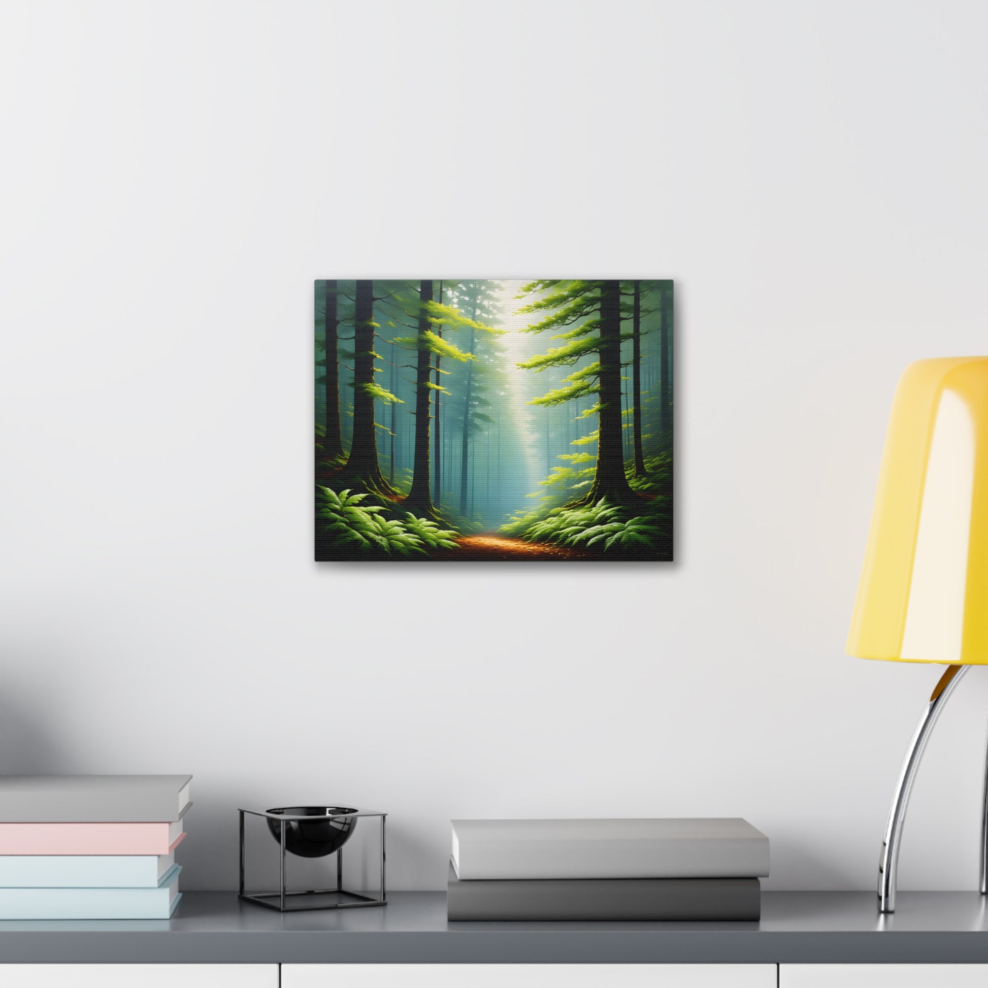 Step into the magical allure of "Enchanted Woodland," a captivating canvas artwork that brings the beauty of nature to life. This enchanting piece transports you to a whimsical forest realm, where the interplay of light and shadows dances through the lush foliage.