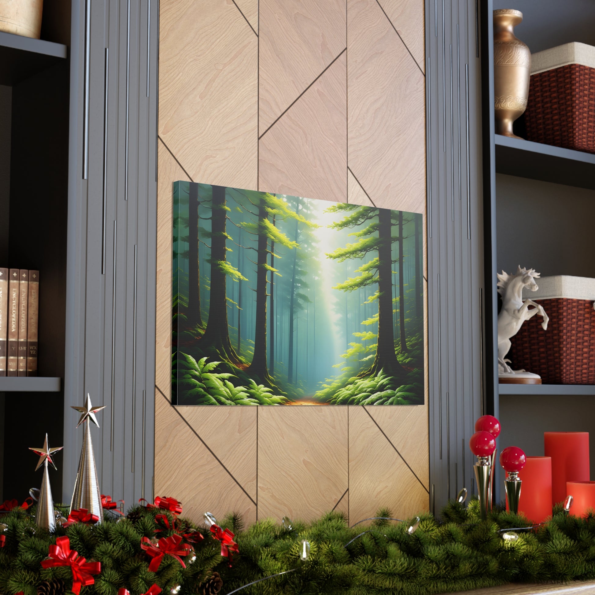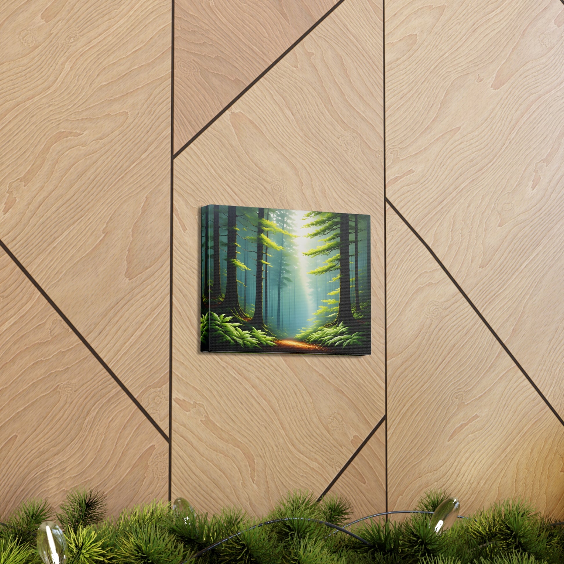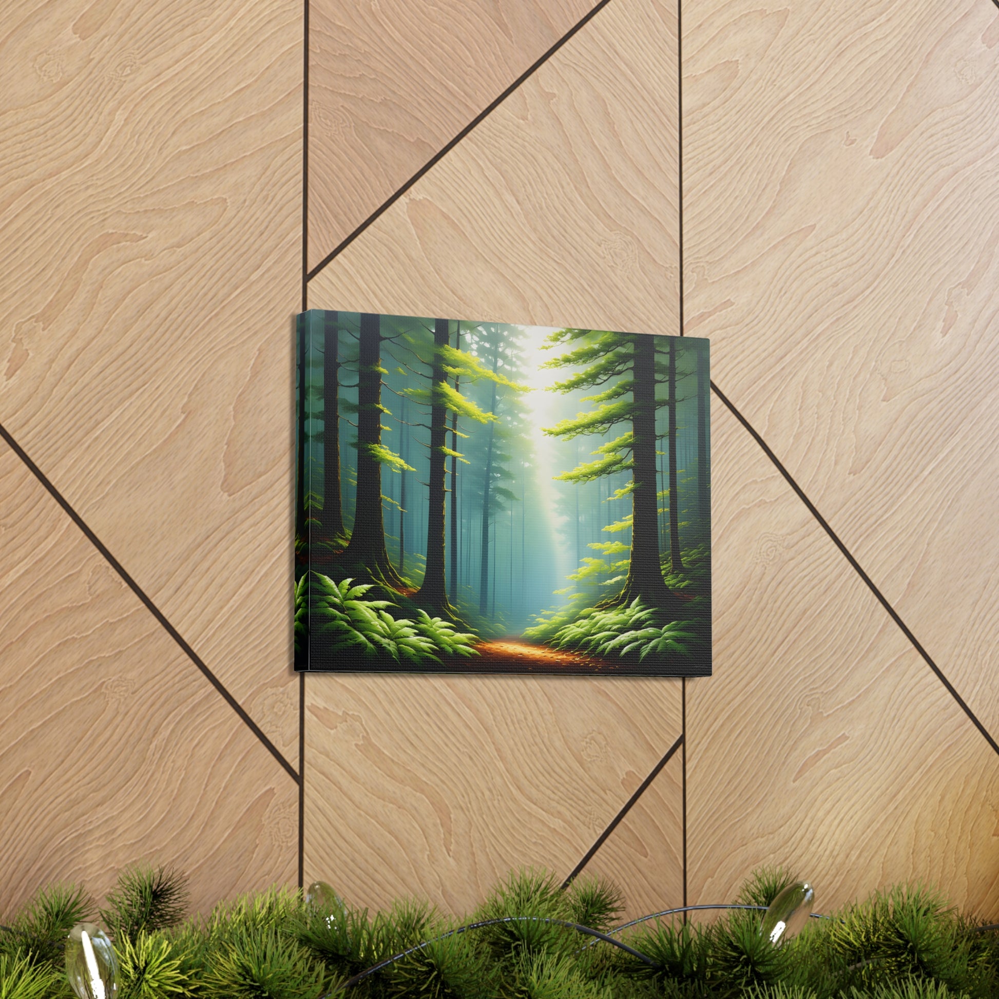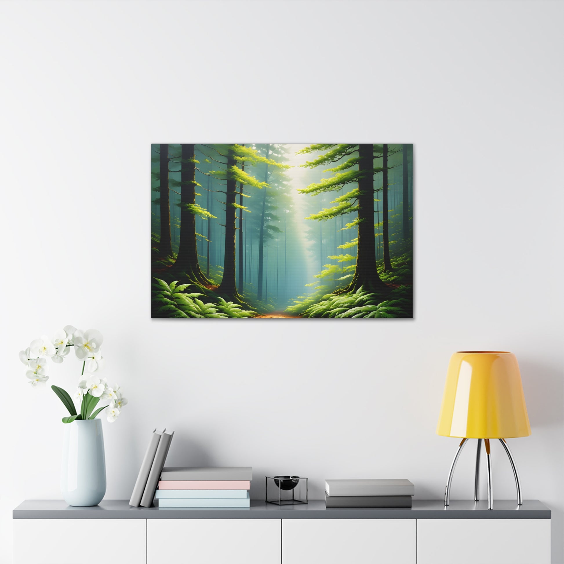 Step into the magical allure of "Enchanted Woodland," a captivating canvas artwork that brings the beauty of nature to life. This enchanting piece transports you to a whimsical forest realm, where the interplay of light and shadows dances through the lush foliage.