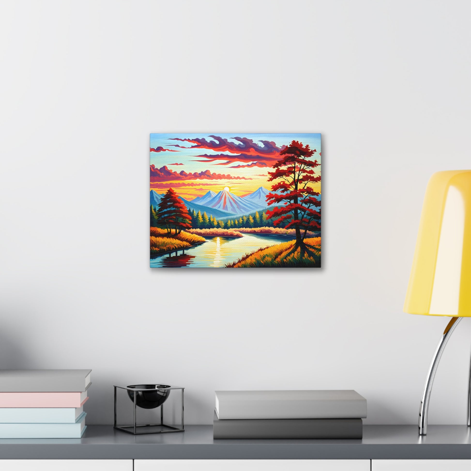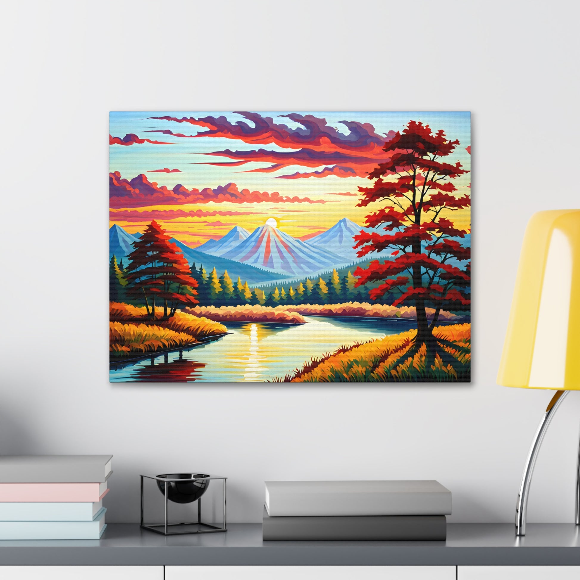 "Ethereal Dreamscape" brings the sublime beauty of an enchanting landscape to life. Painted on cotton canvas, this artwork transports you to a vibrant world of lush meadows and sunset skies, perfect for adding an otherworldly touch to your indoor space.