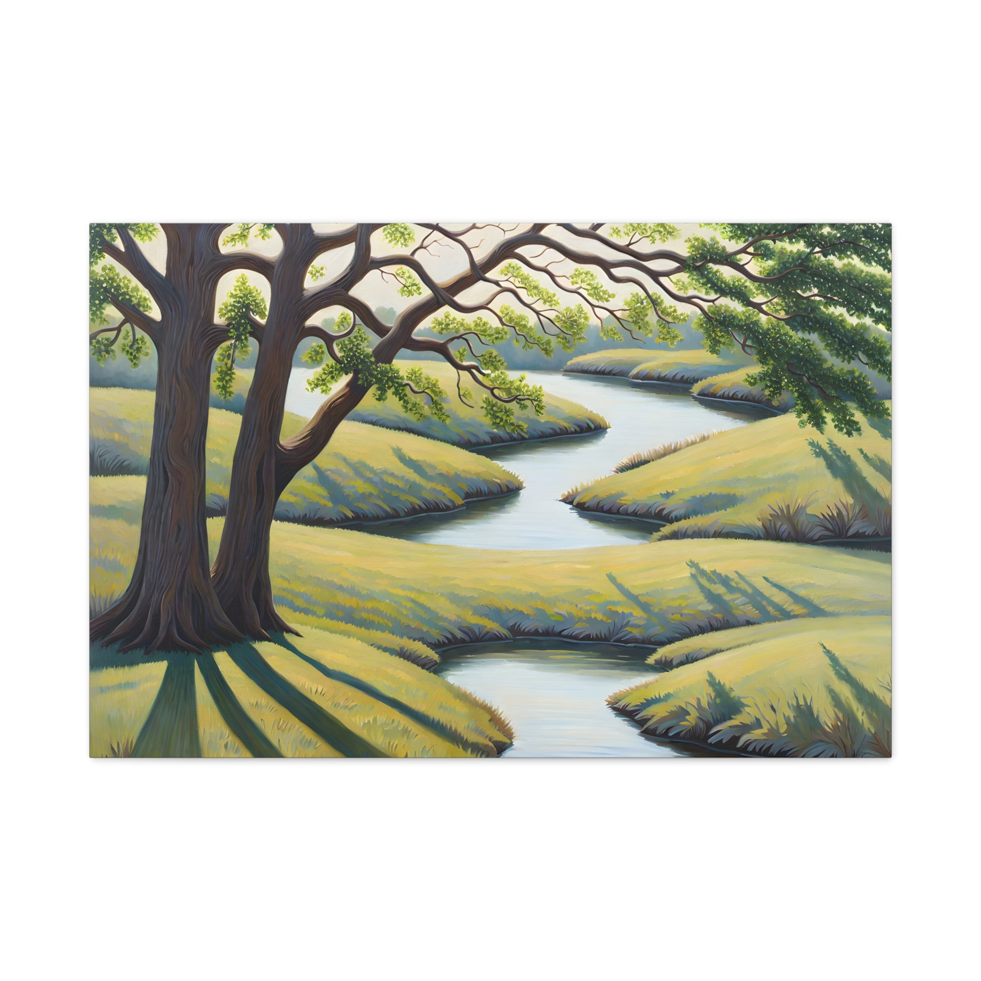 "Evergreen Vista" captures the serenity of lush green hills and flowing streams in a gentle landscape scene. Crafted on premium cotton canvas, this oil painting is ideal for those who appreciate the natural beauty of untouched forests, suitable for indoor use only.