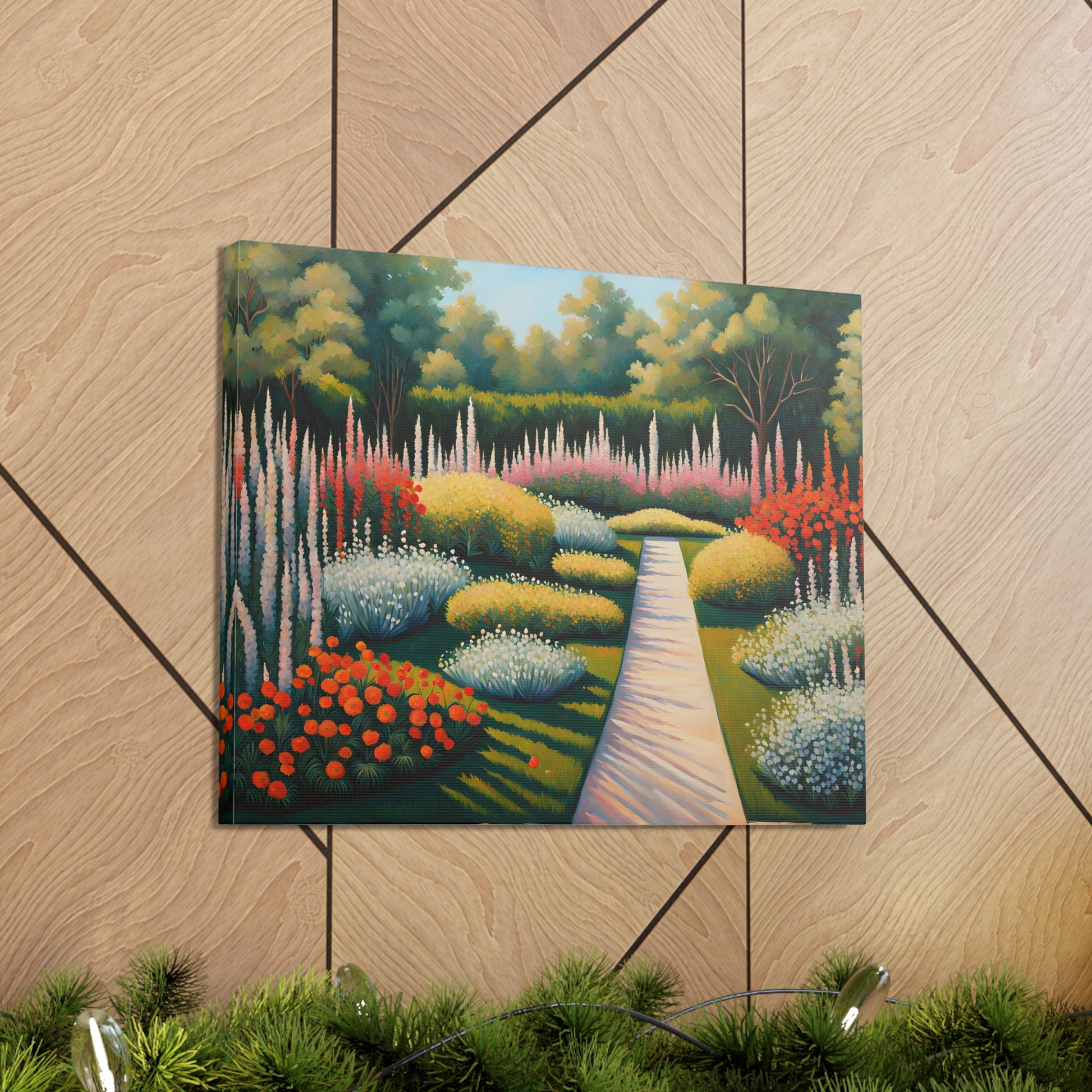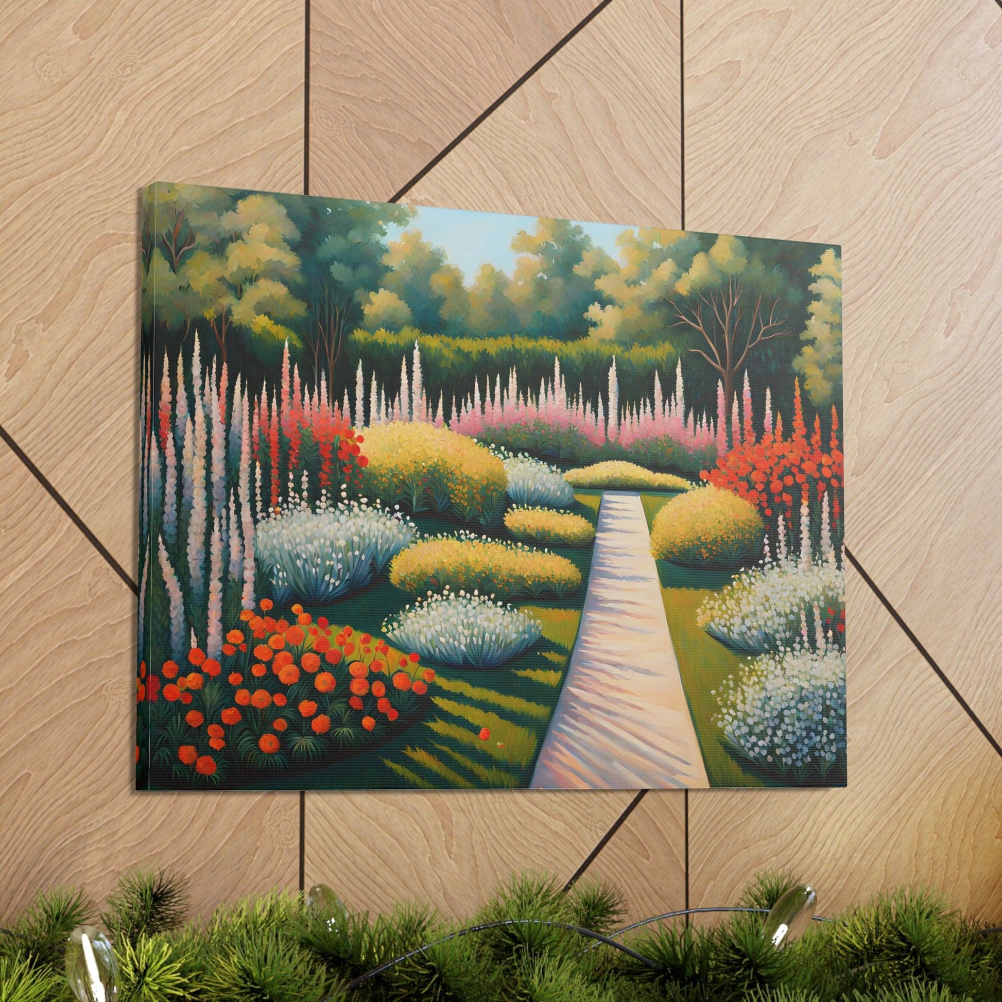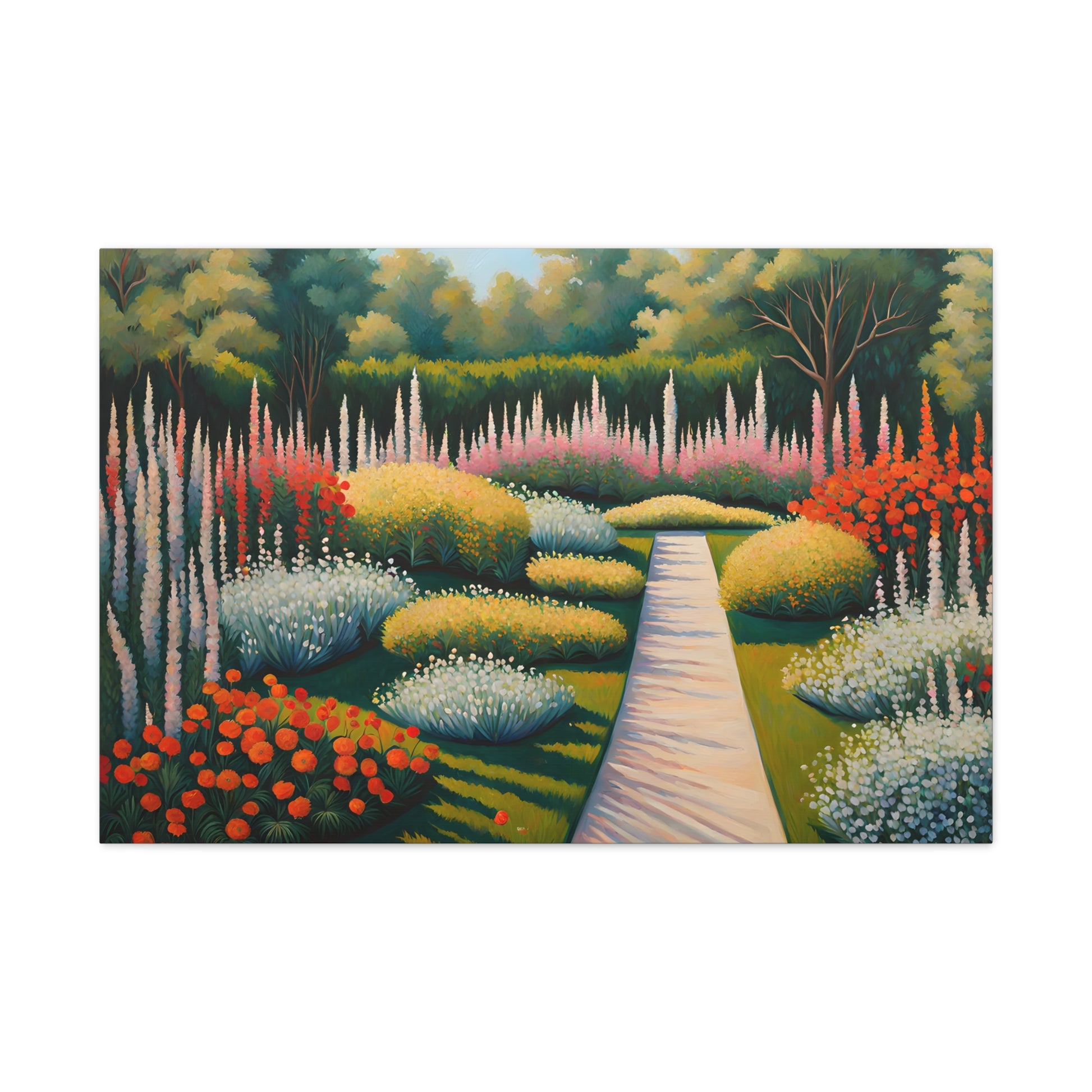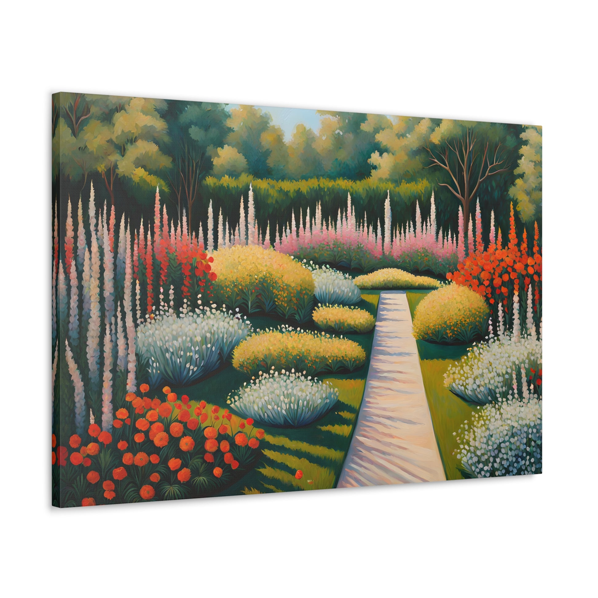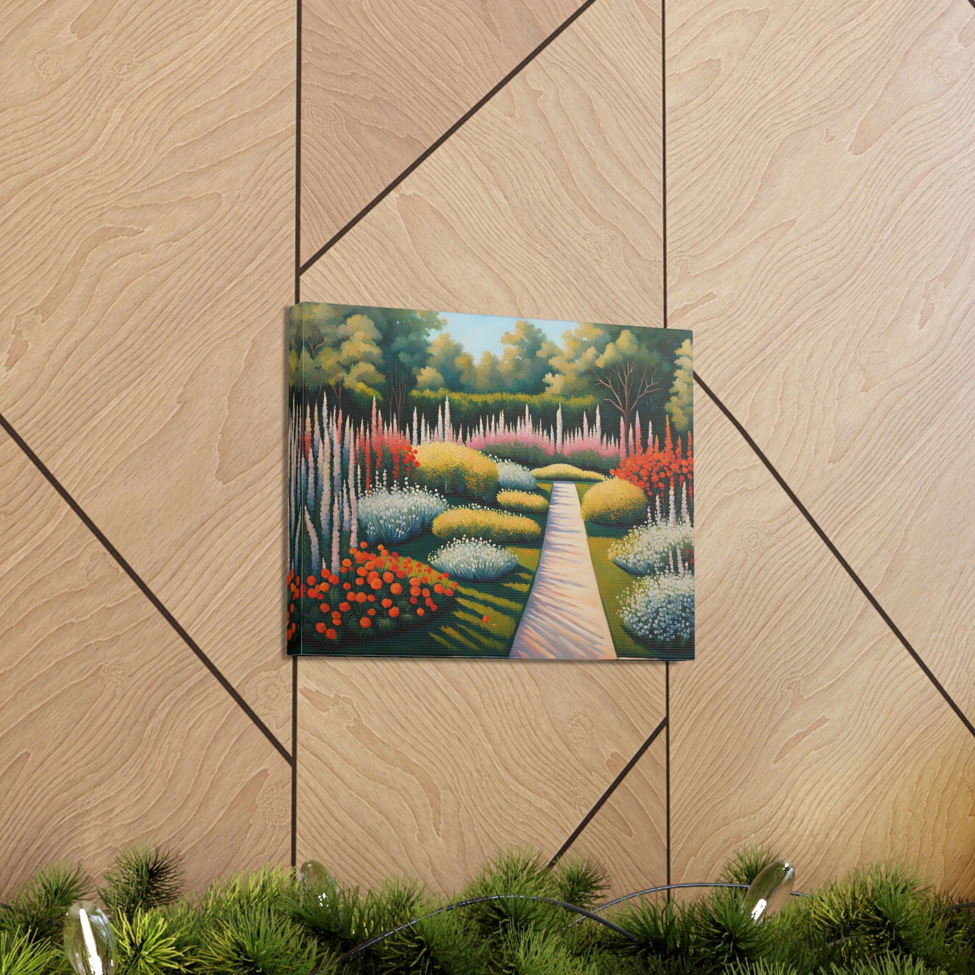 "Forest Pathway" leads you into a serene forest setting, with vibrant autumn colors bathing the trees and pathways in soft light. This piece adds an element of natural beauty and calm to any interior.