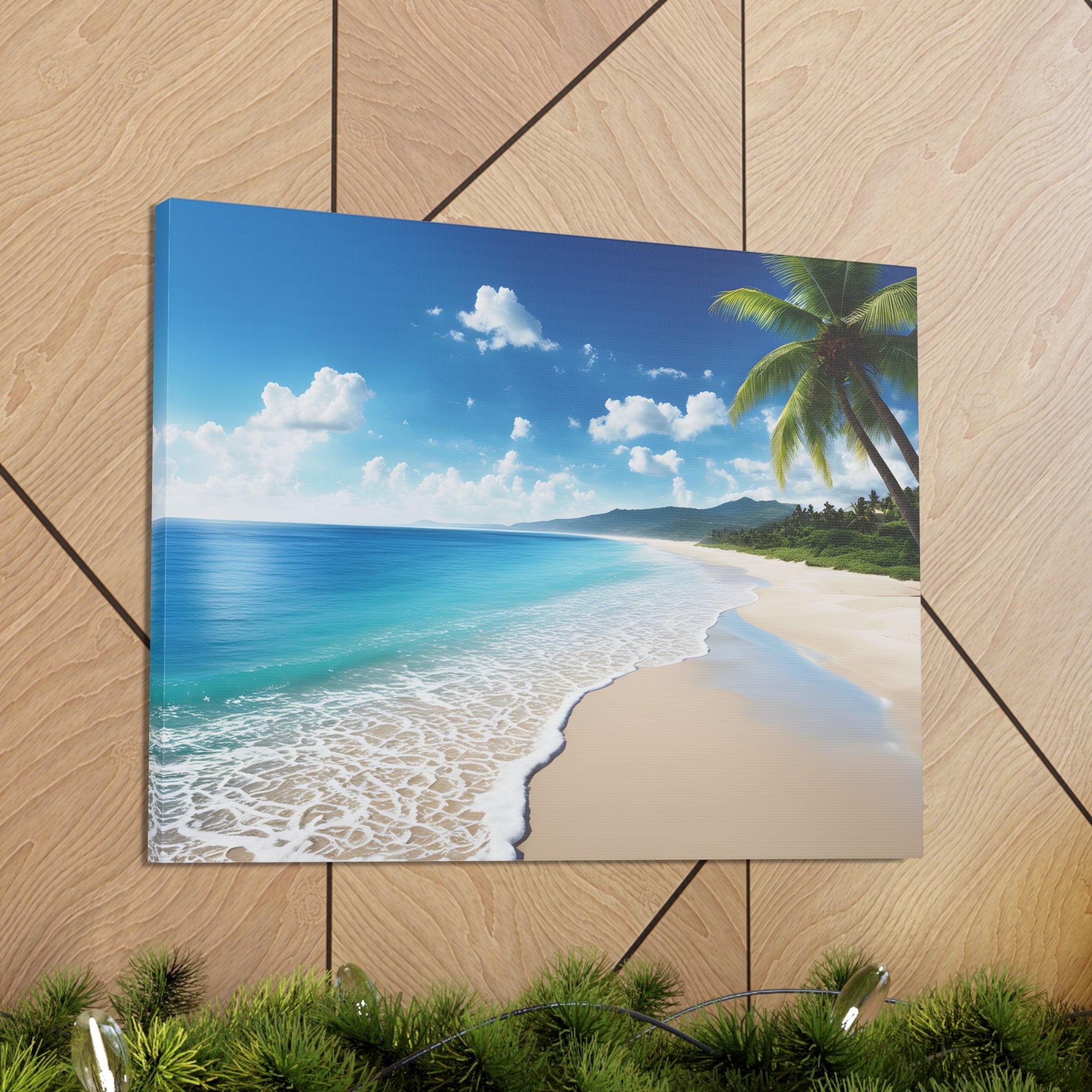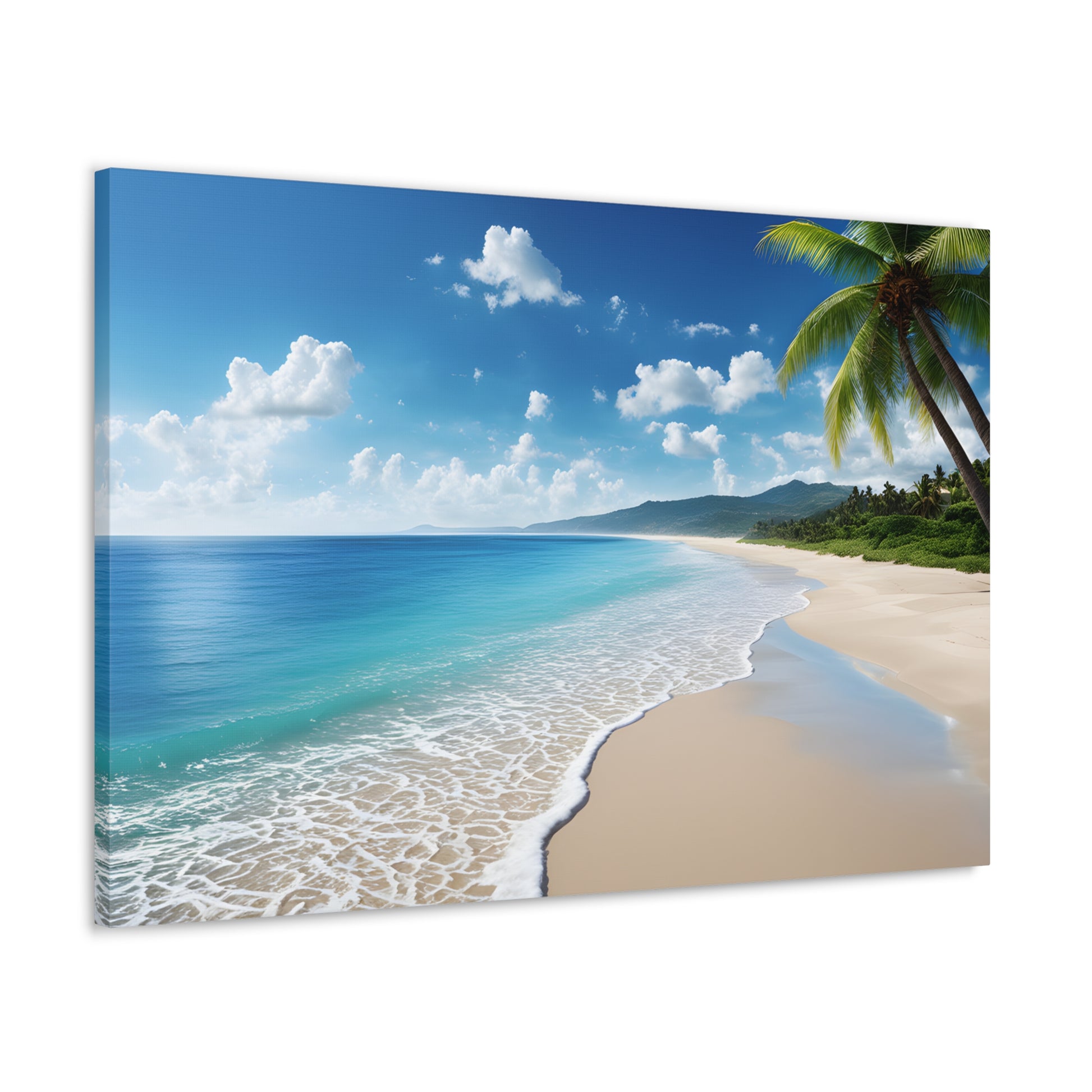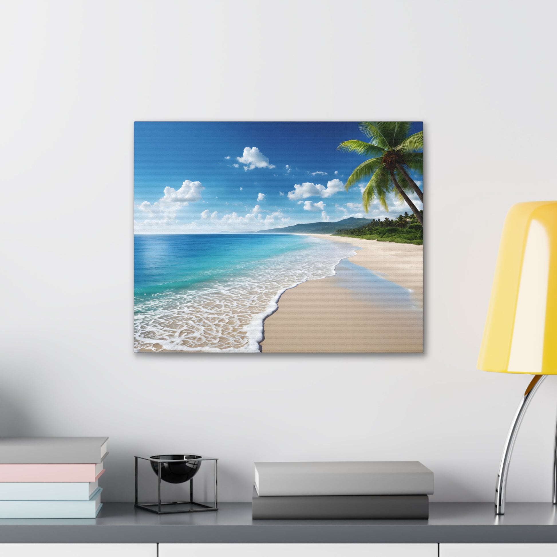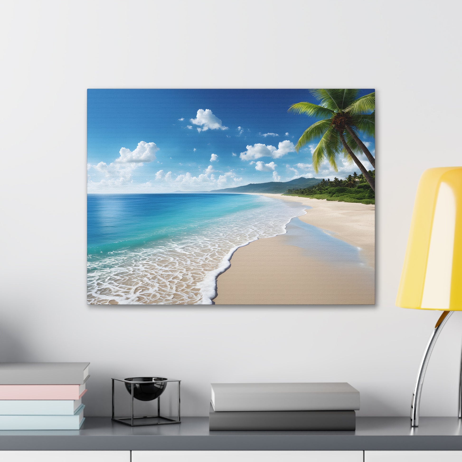 Indulge in the timeless allure of coastal tranquility with "Golden Sands Serenity." This captivating canvas artwork transports you to the sun-kissed shores where golden sands meet the azure sea, creating an oasis of calm and relaxation within your space.
