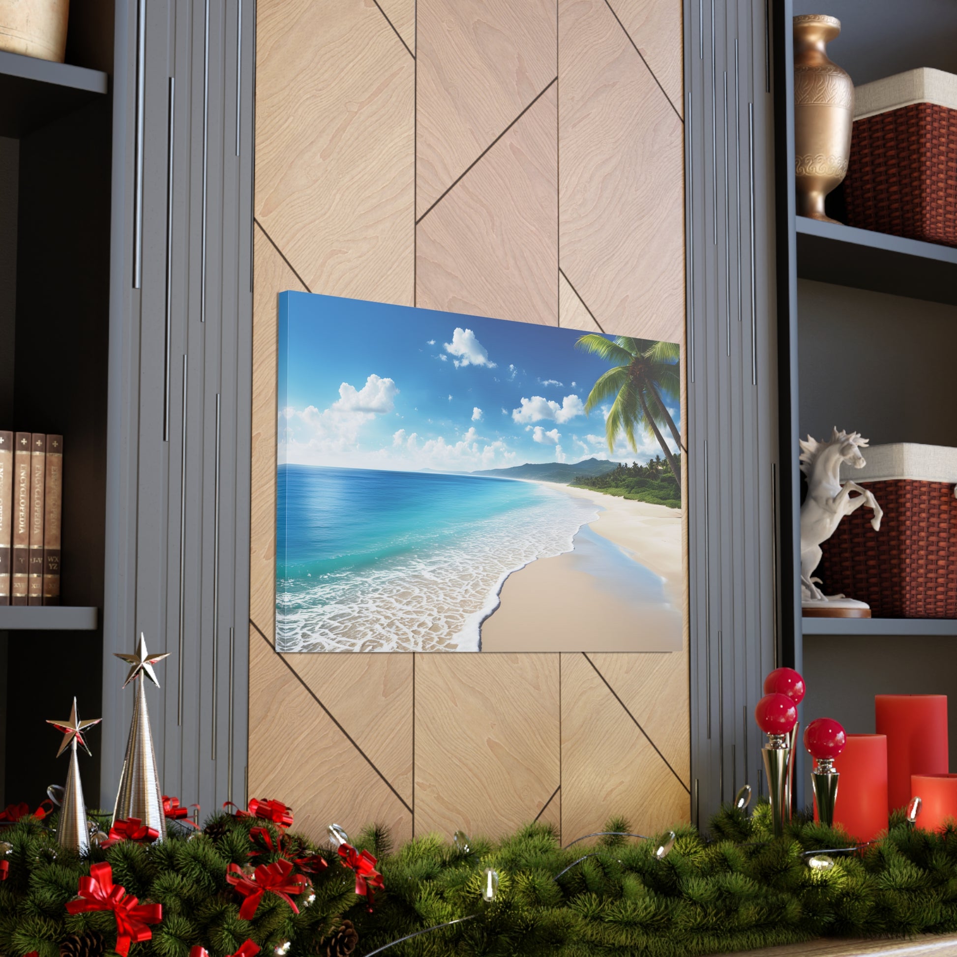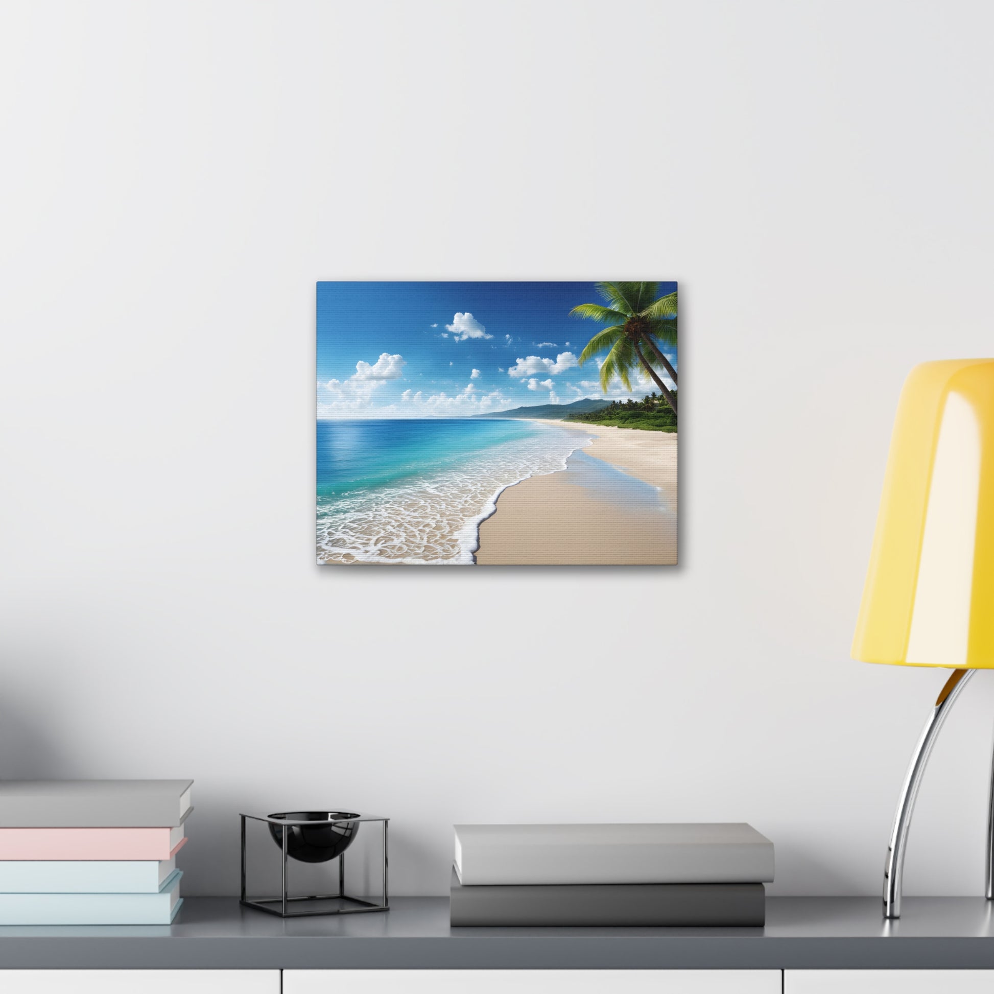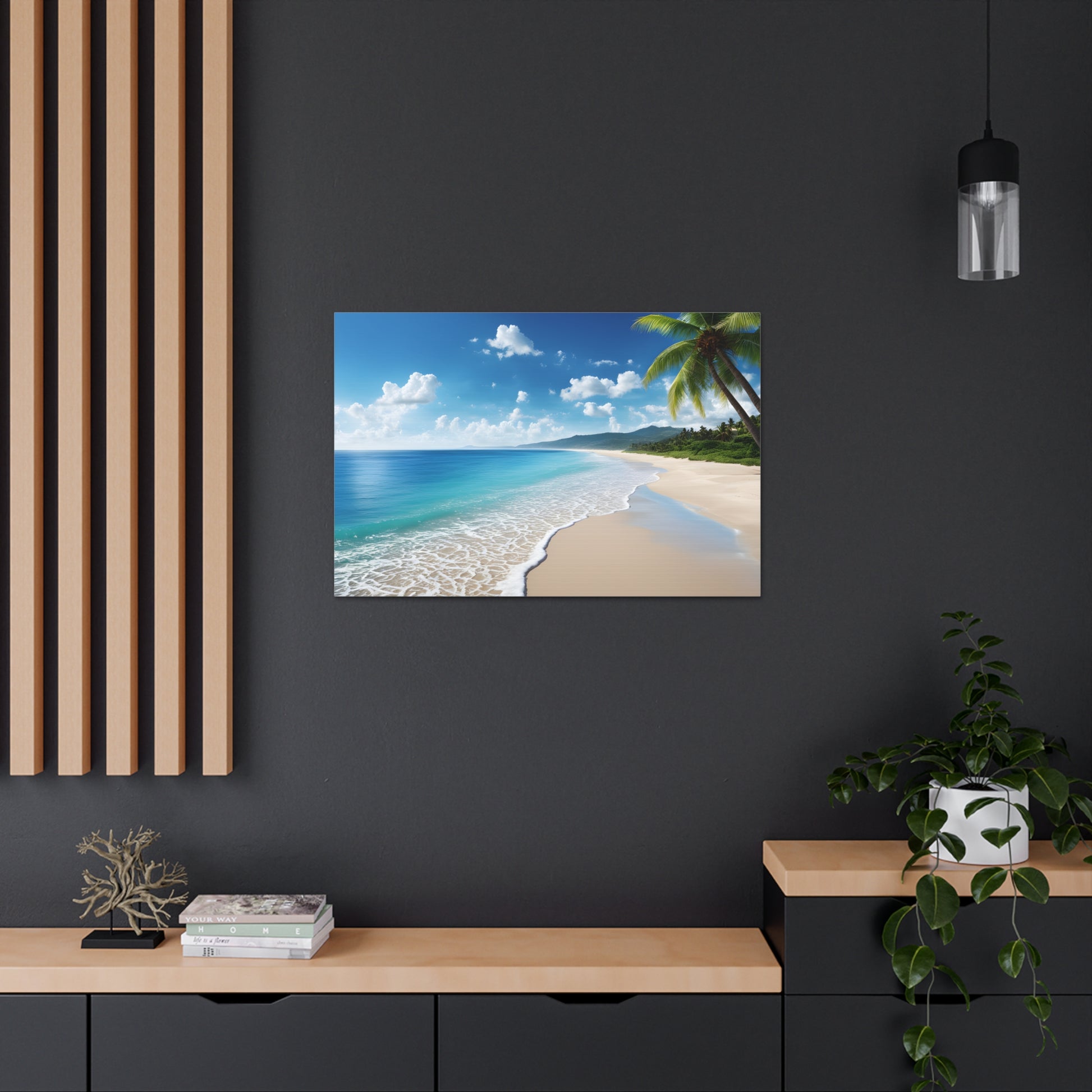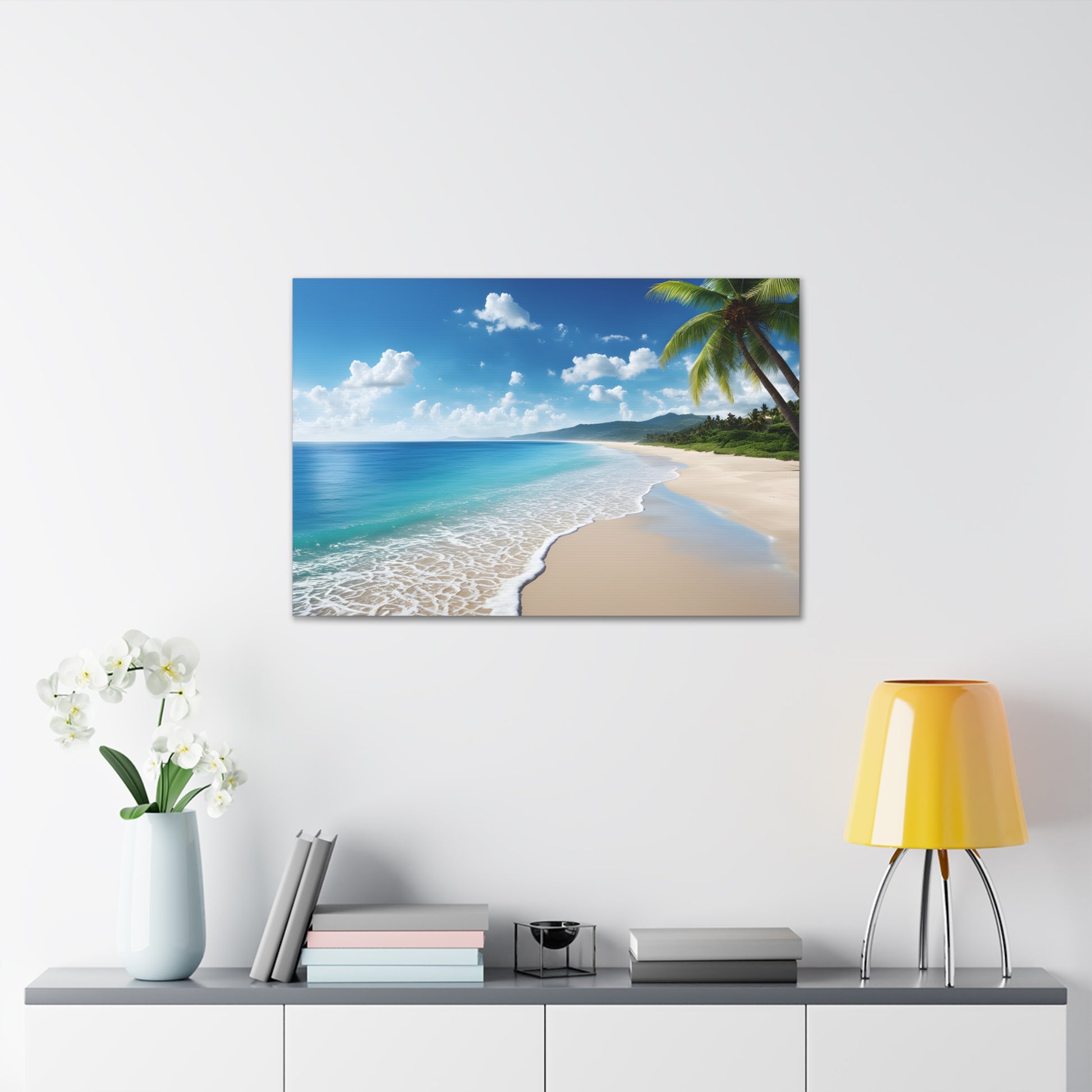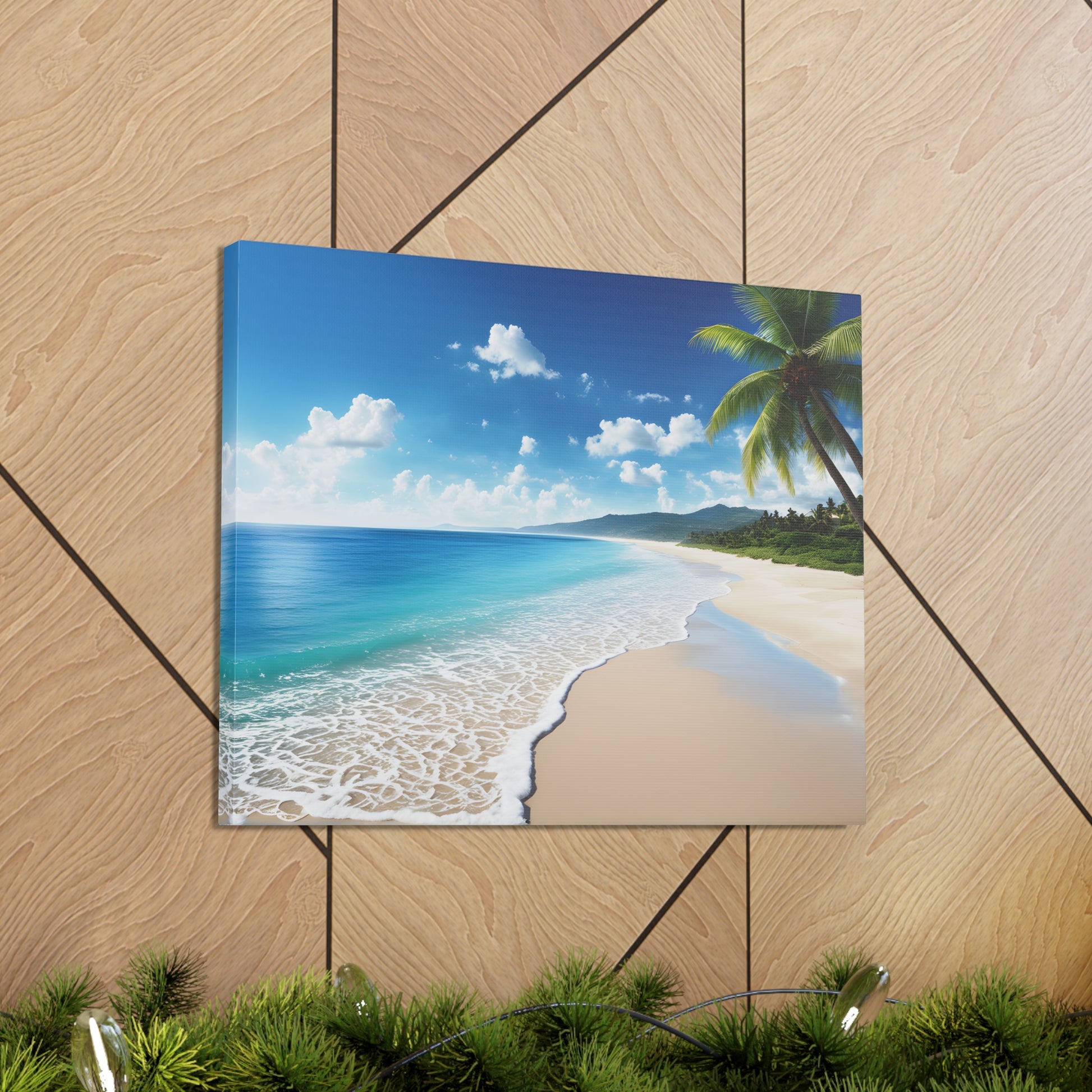 Indulge in the timeless allure of coastal tranquility with "Golden Sands Serenity." This captivating canvas artwork transports you to the sun-kissed shores where golden sands meet the azure sea, creating an oasis of calm and relaxation within your space.