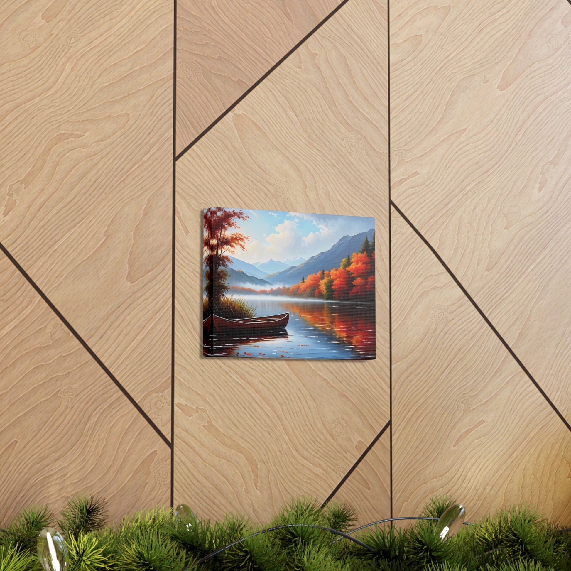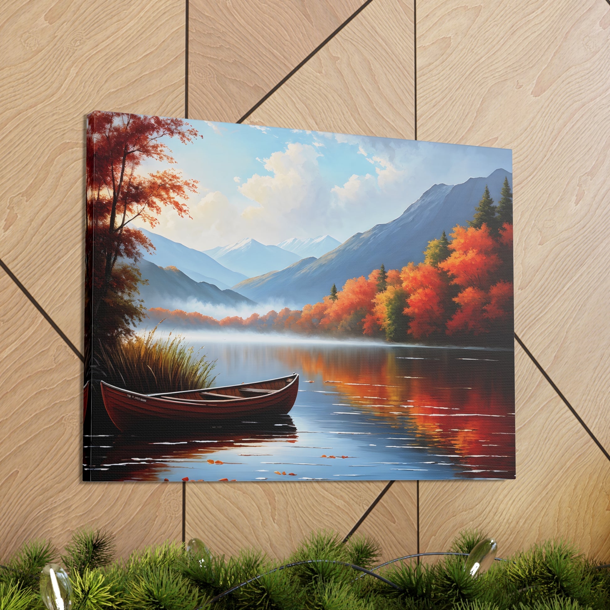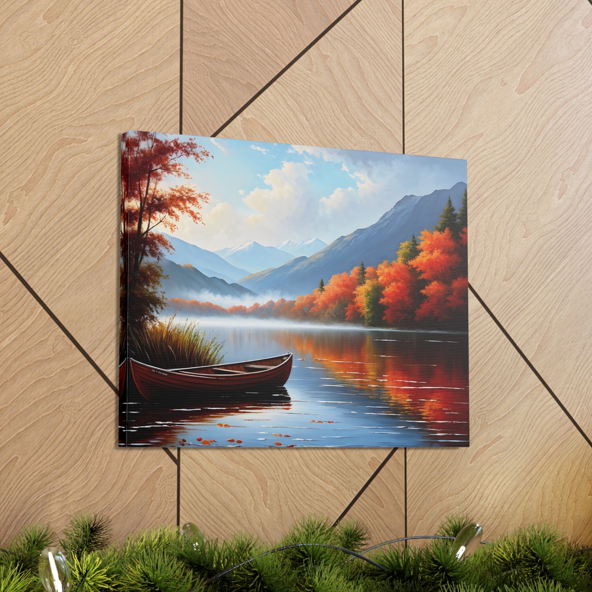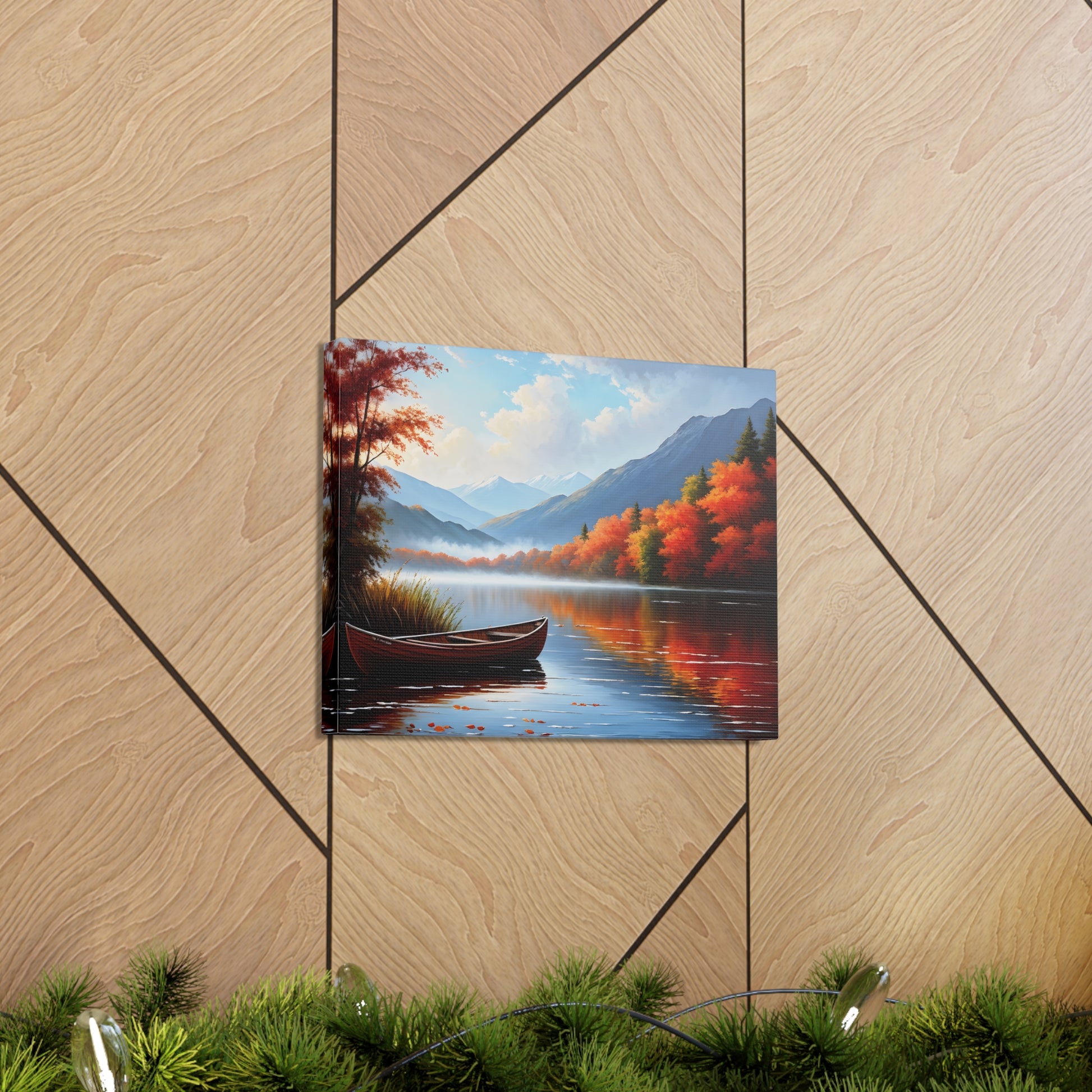 Harbor Reflections captures the stillness of water mirroring a fiery sunset. This detailed seascape, set against the backdrop of trees, brings warmth and tranquility to any living space.