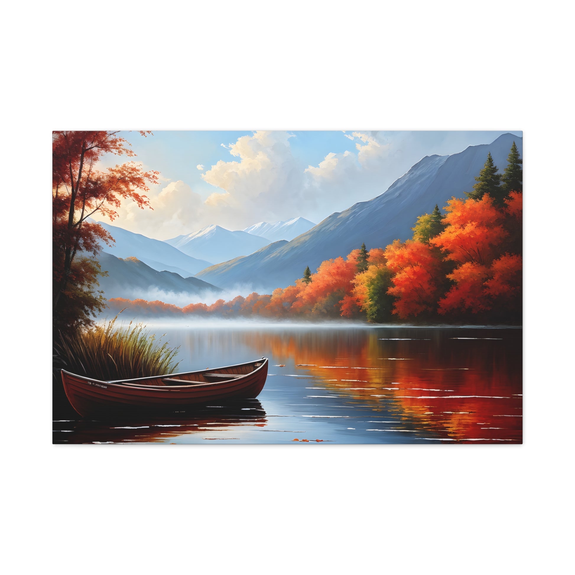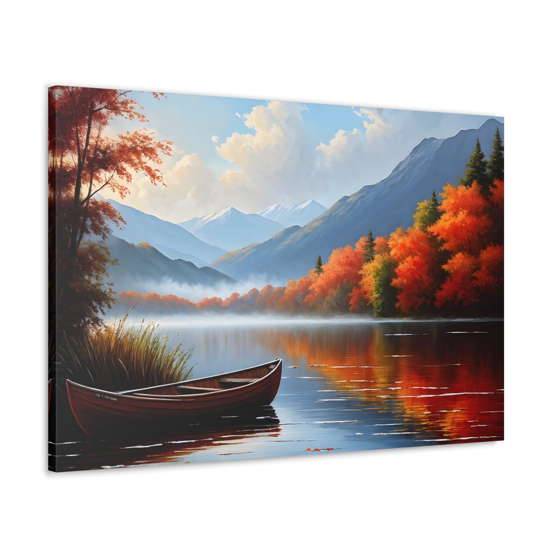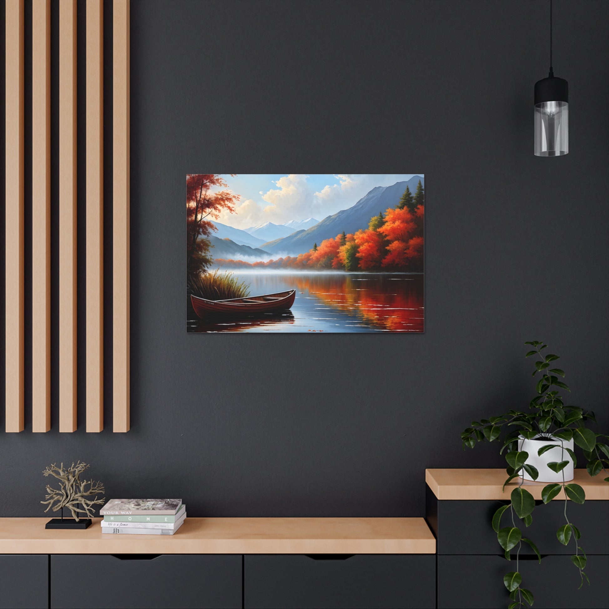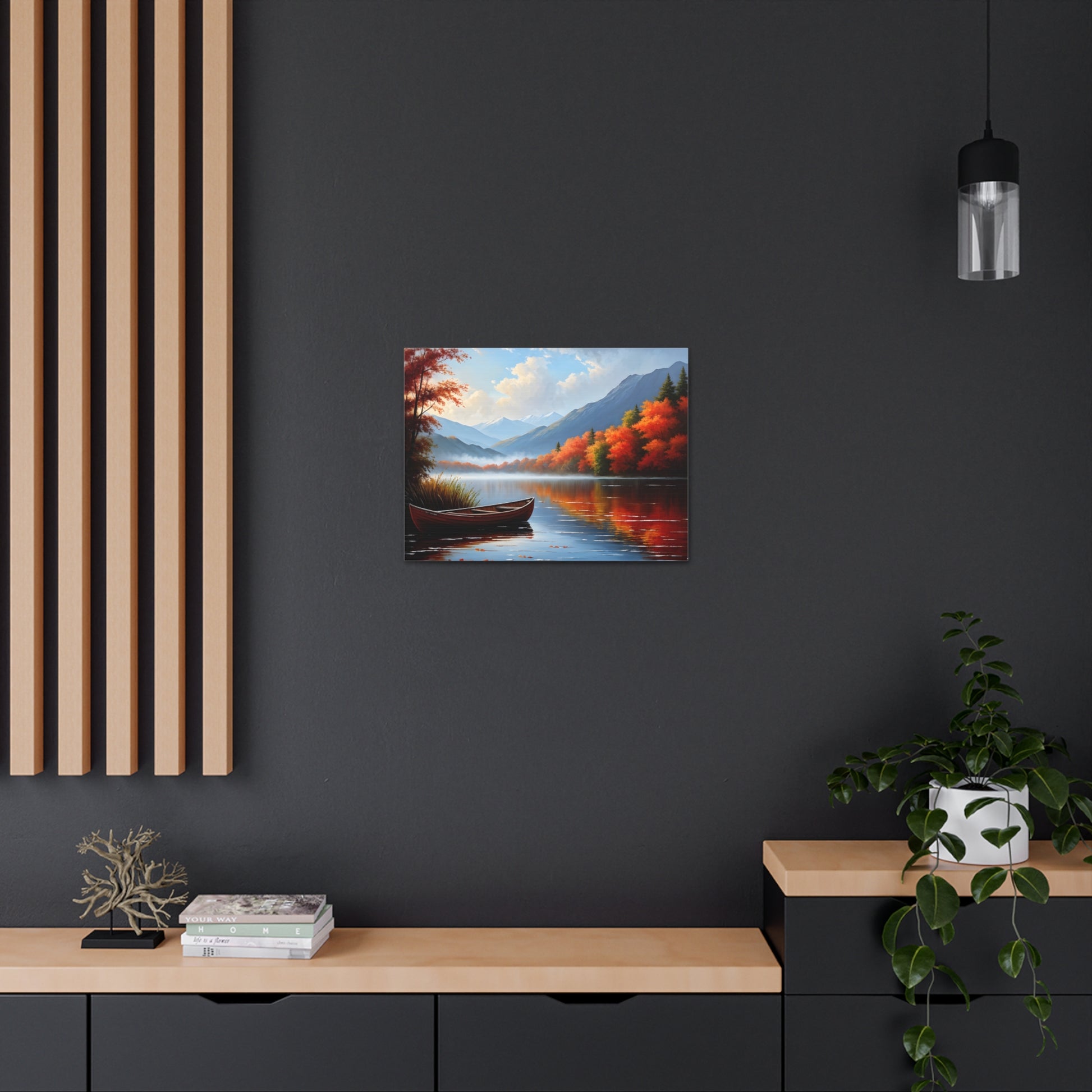 Harbor Reflections captures the stillness of water mirroring a fiery sunset. This detailed seascape, set against the backdrop of trees, brings warmth and tranquility to any living space.