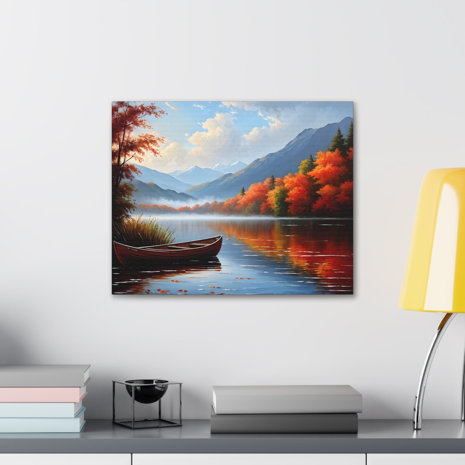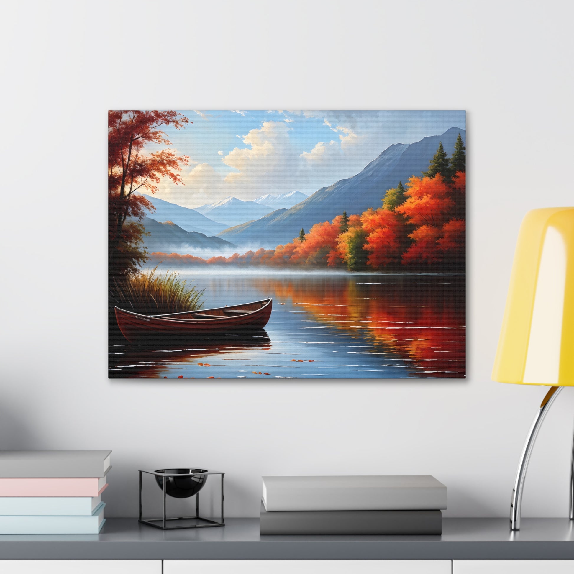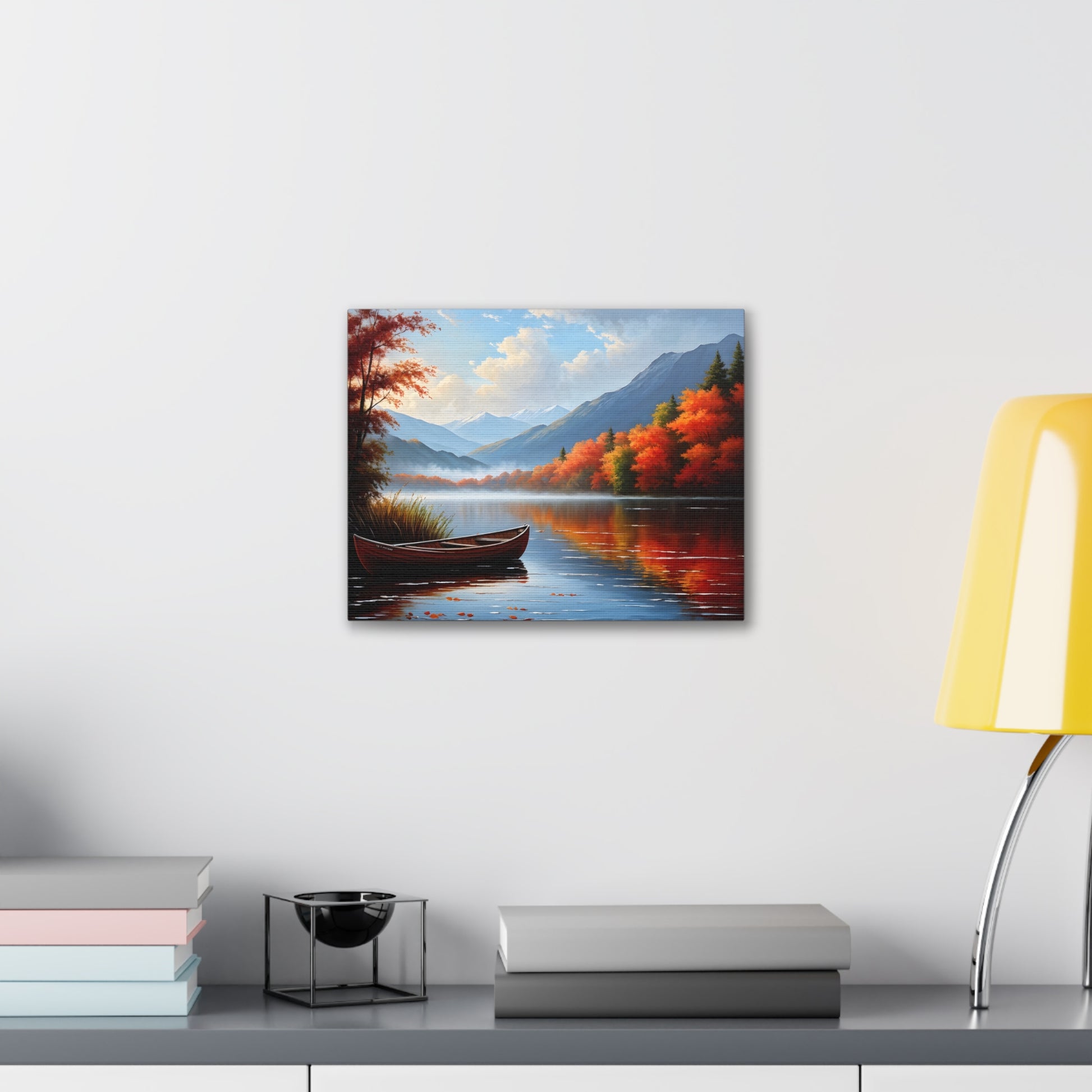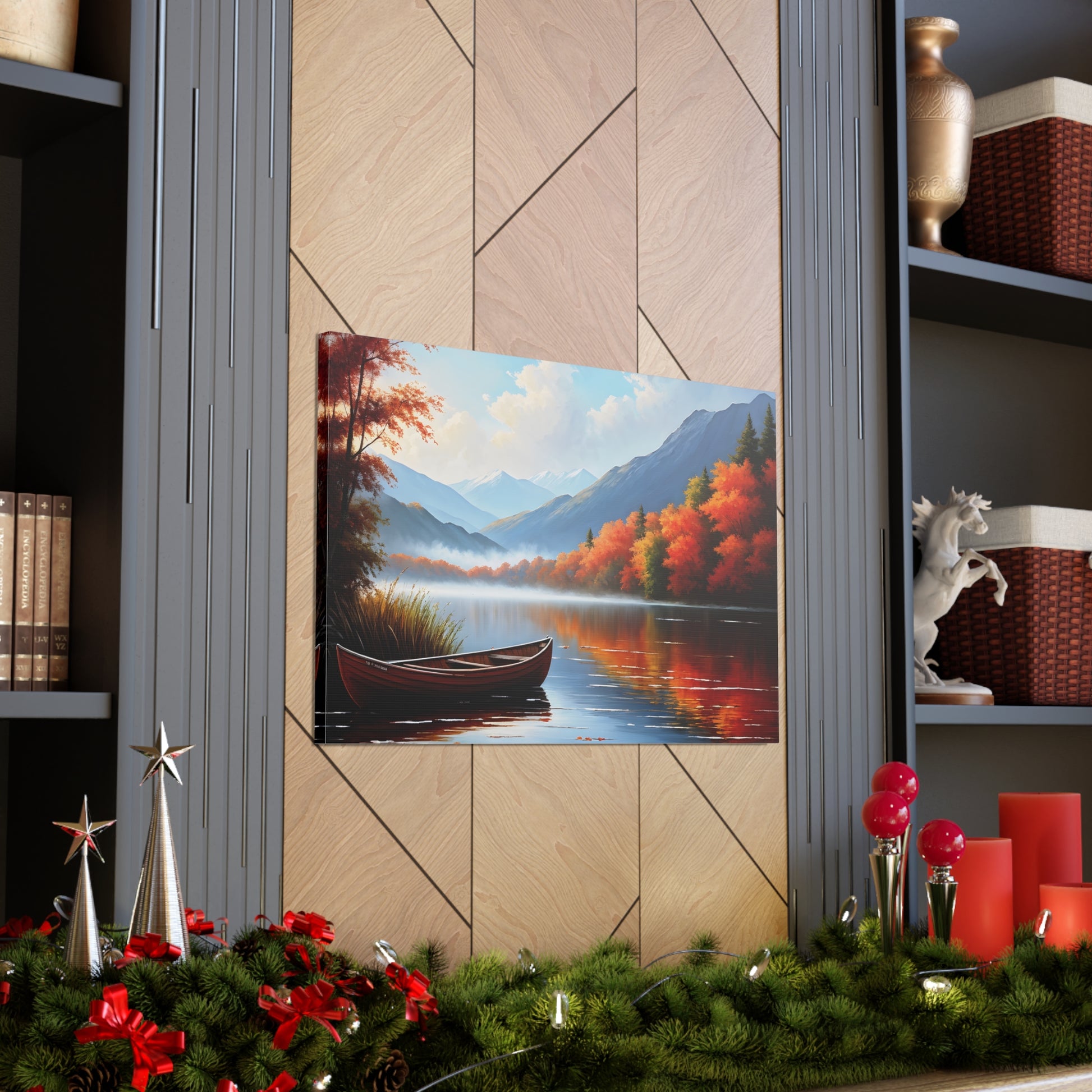 Harbor Reflections captures the stillness of water mirroring a fiery sunset. This detailed seascape, set against the backdrop of trees, brings warmth and tranquility to any living space.