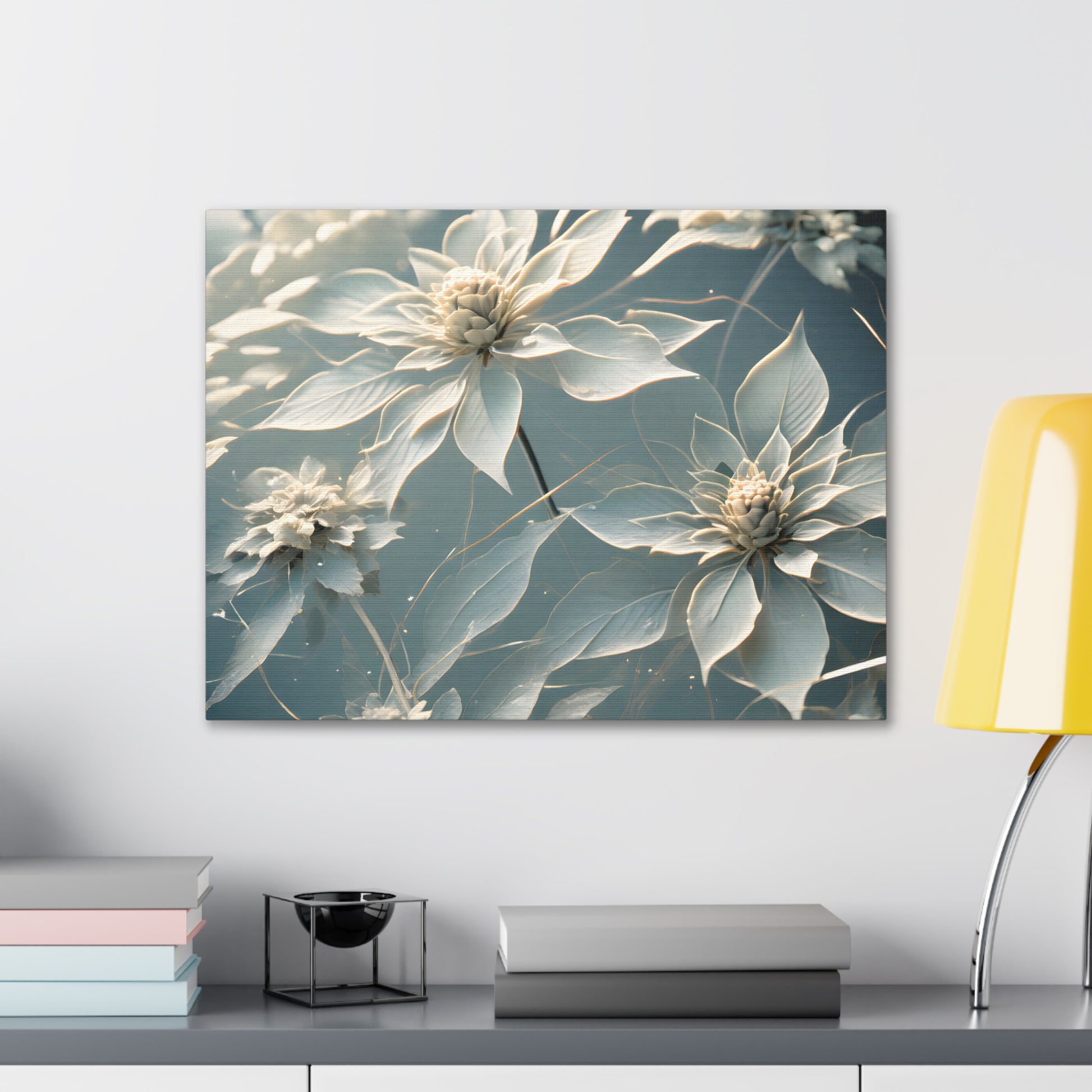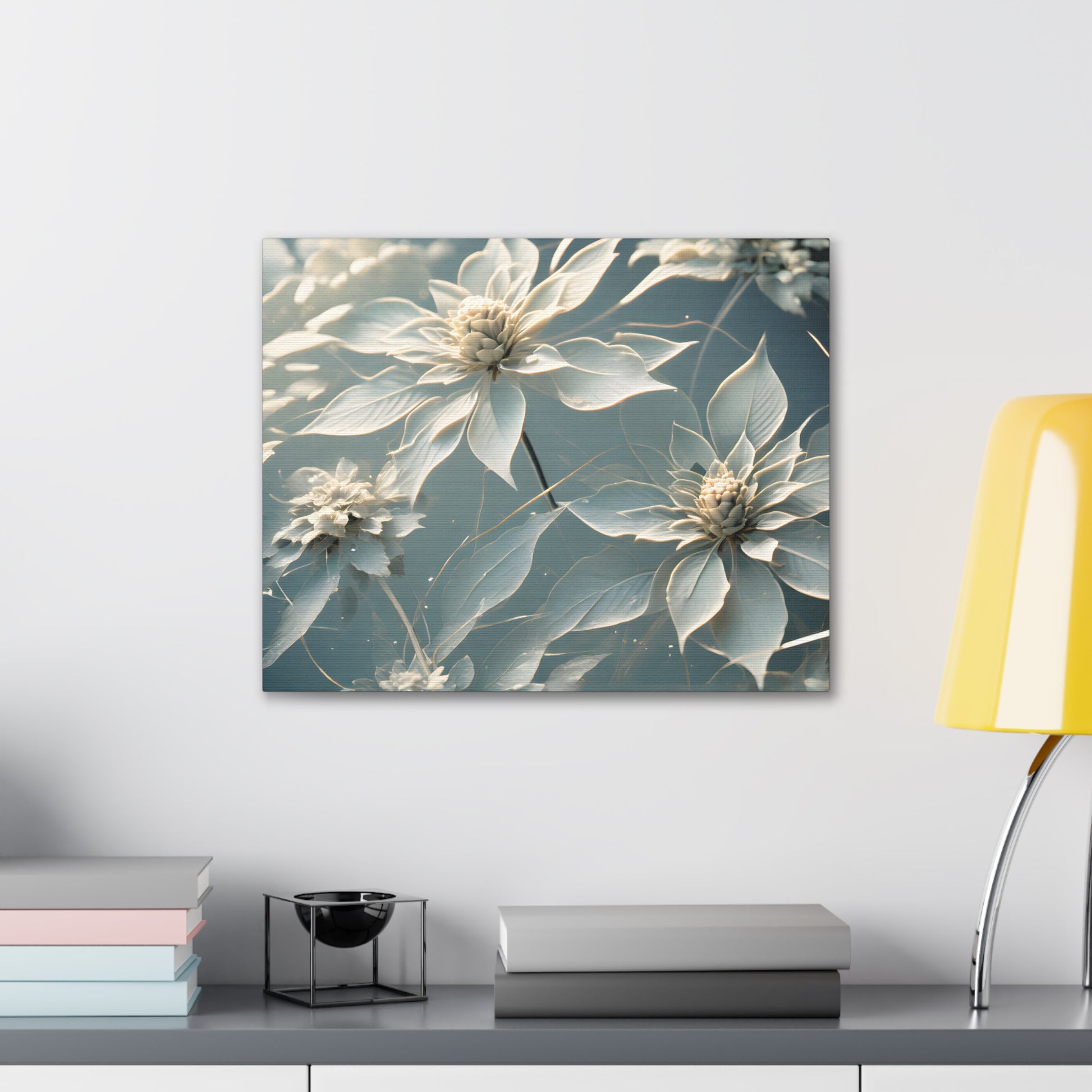 Step into a realm of ethereal beauty with "Heaven-Kissed Blossom," a mesmerizing canvas artwork capturing the serene grace of several floating flowers, reminiscent of heavenly enchantment.