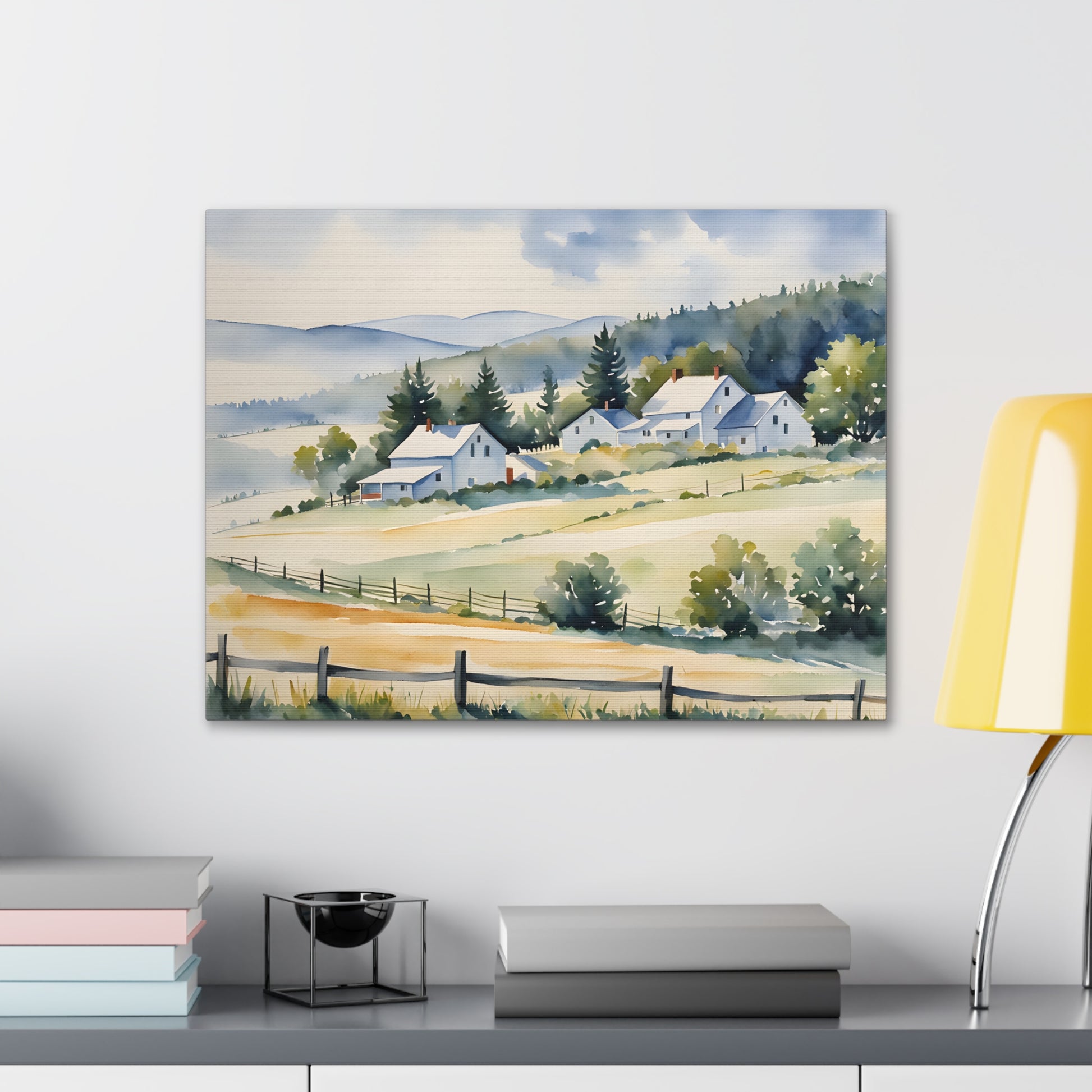 Elevate your home with the picturesque beauty of our "Hillside Charm: Watercolor Wall Décor." Expertly crafted on premium cotton canvas, this enchanting artwork brings the tranquility of the countryside into your living space.