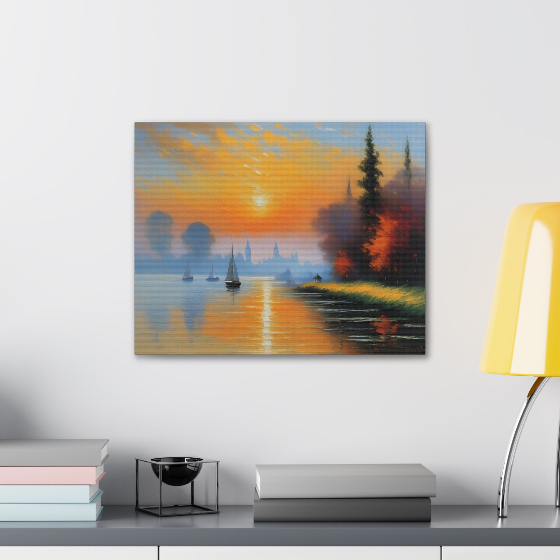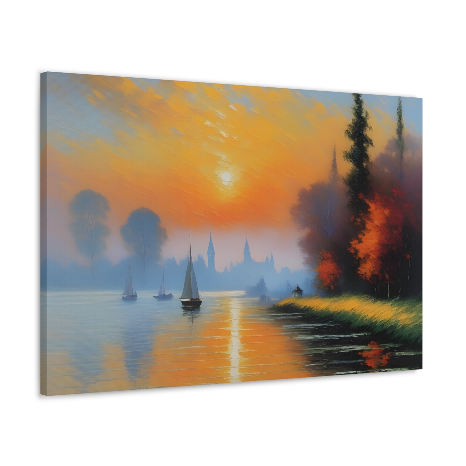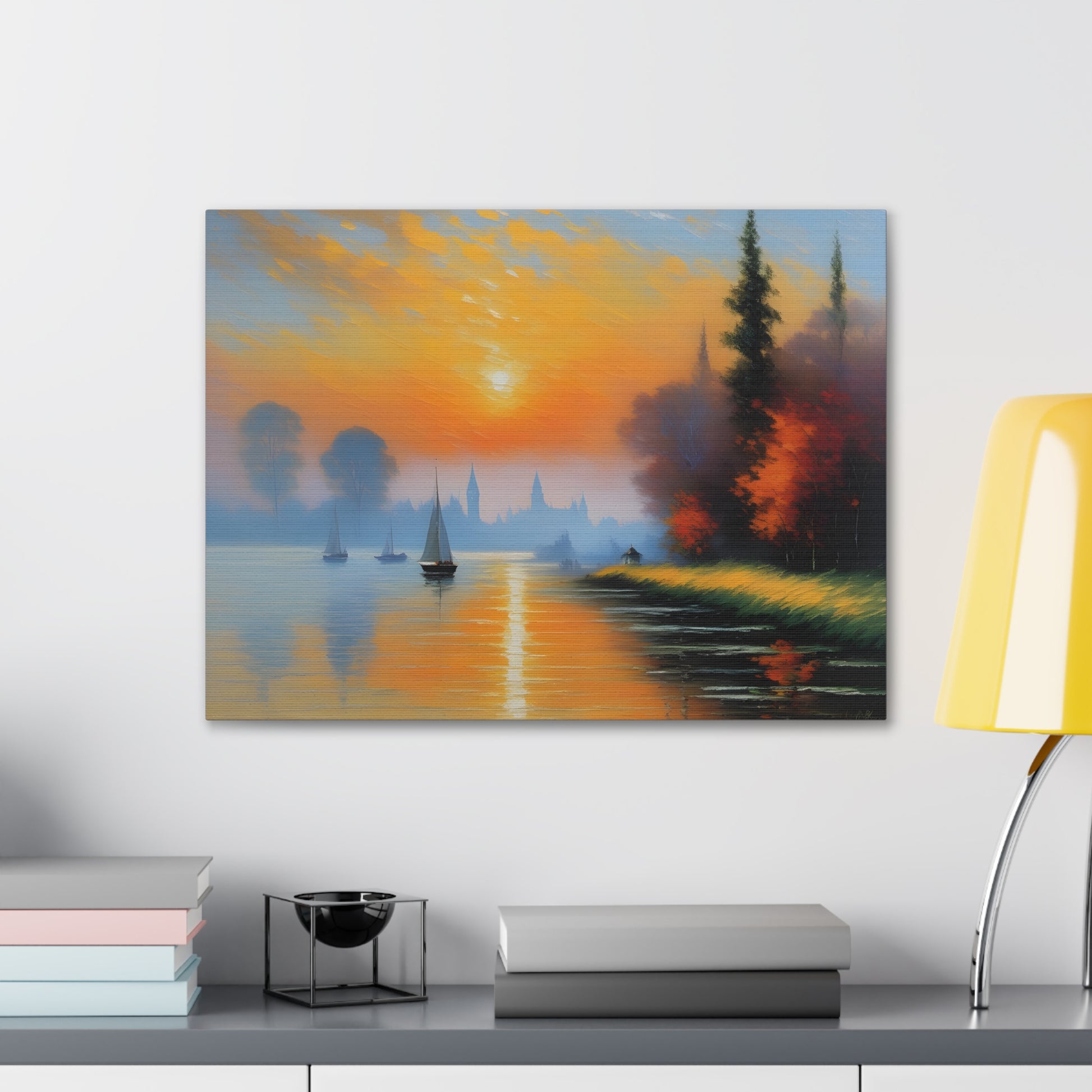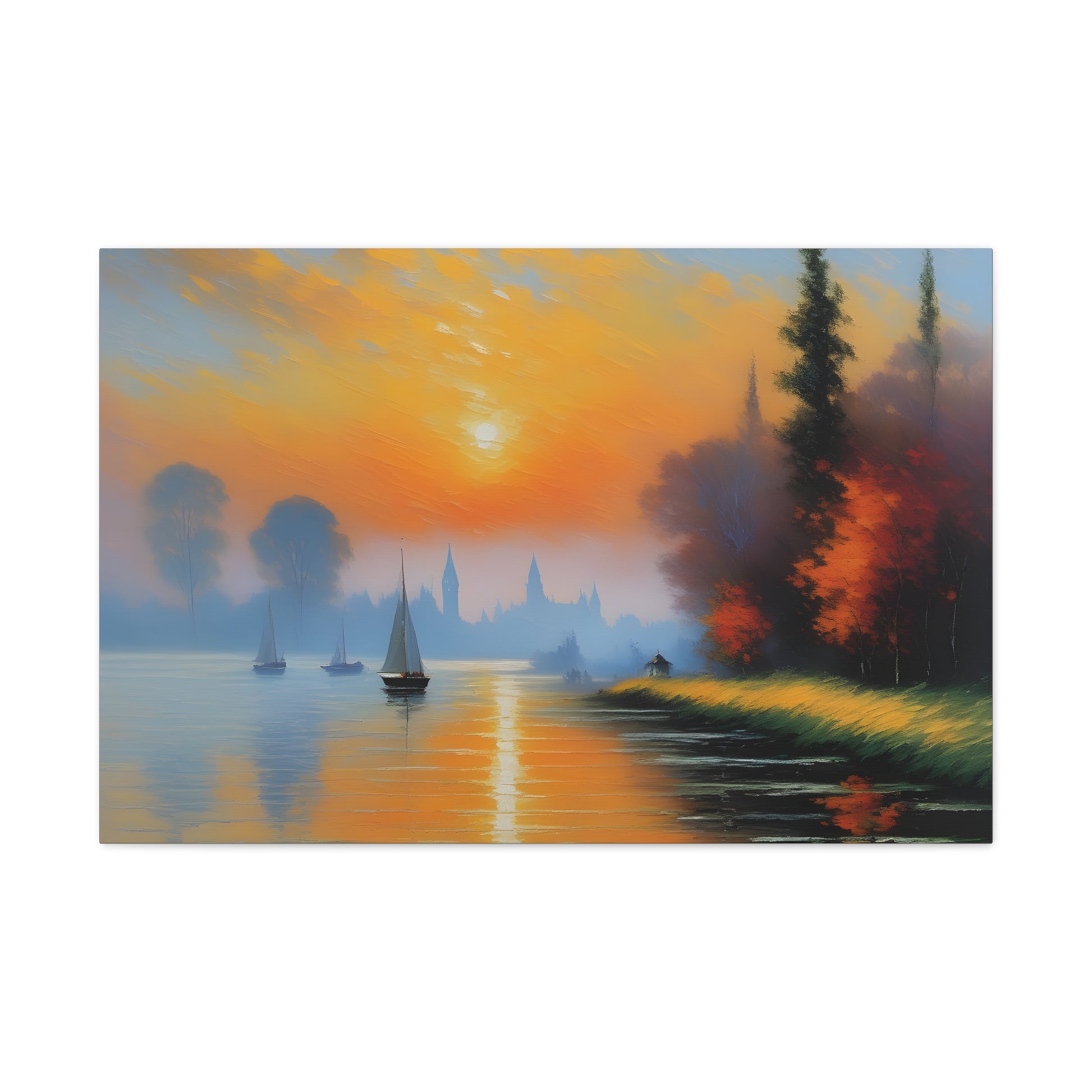 Immerse yourself in the serene beauty of "Lakeside Reflections," a captivating canvas artwork that transports you to tranquil waterside vistas. Expertly crafted on premium-quality cotton canvas, this piece captures the essence of calm and reflection with its breathtaking depiction of a lakeside scene.