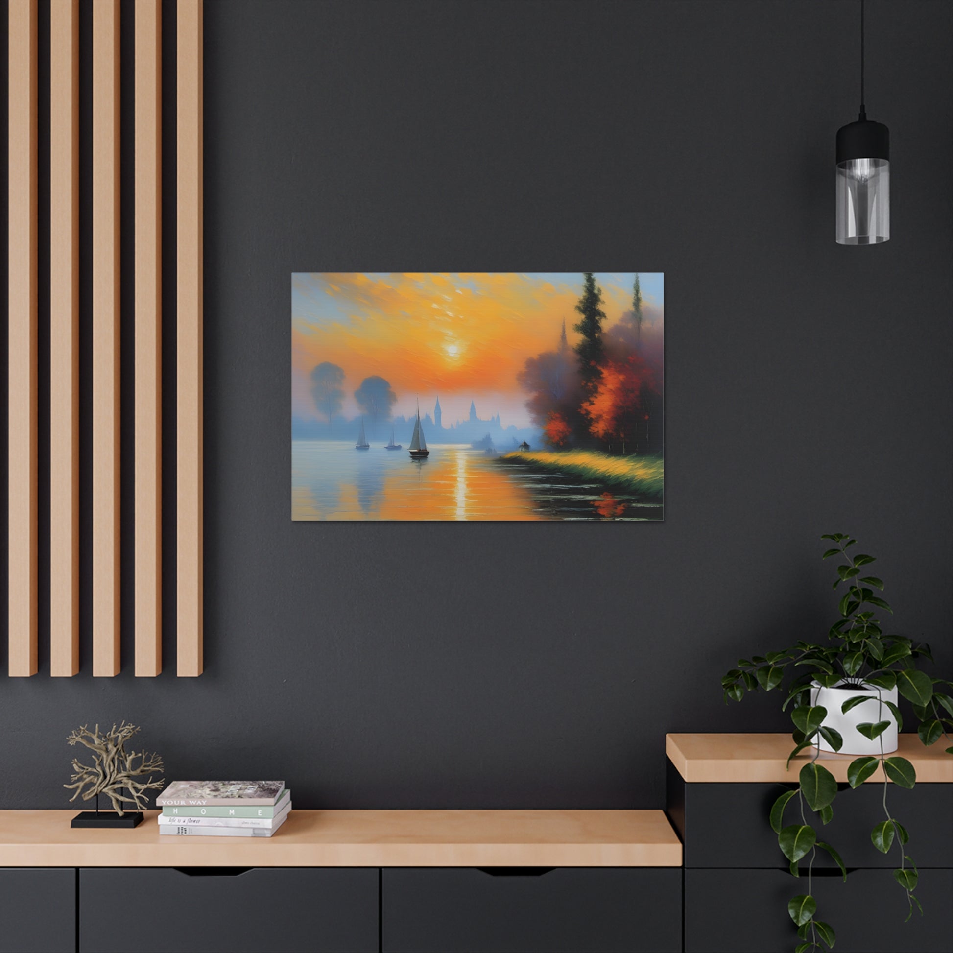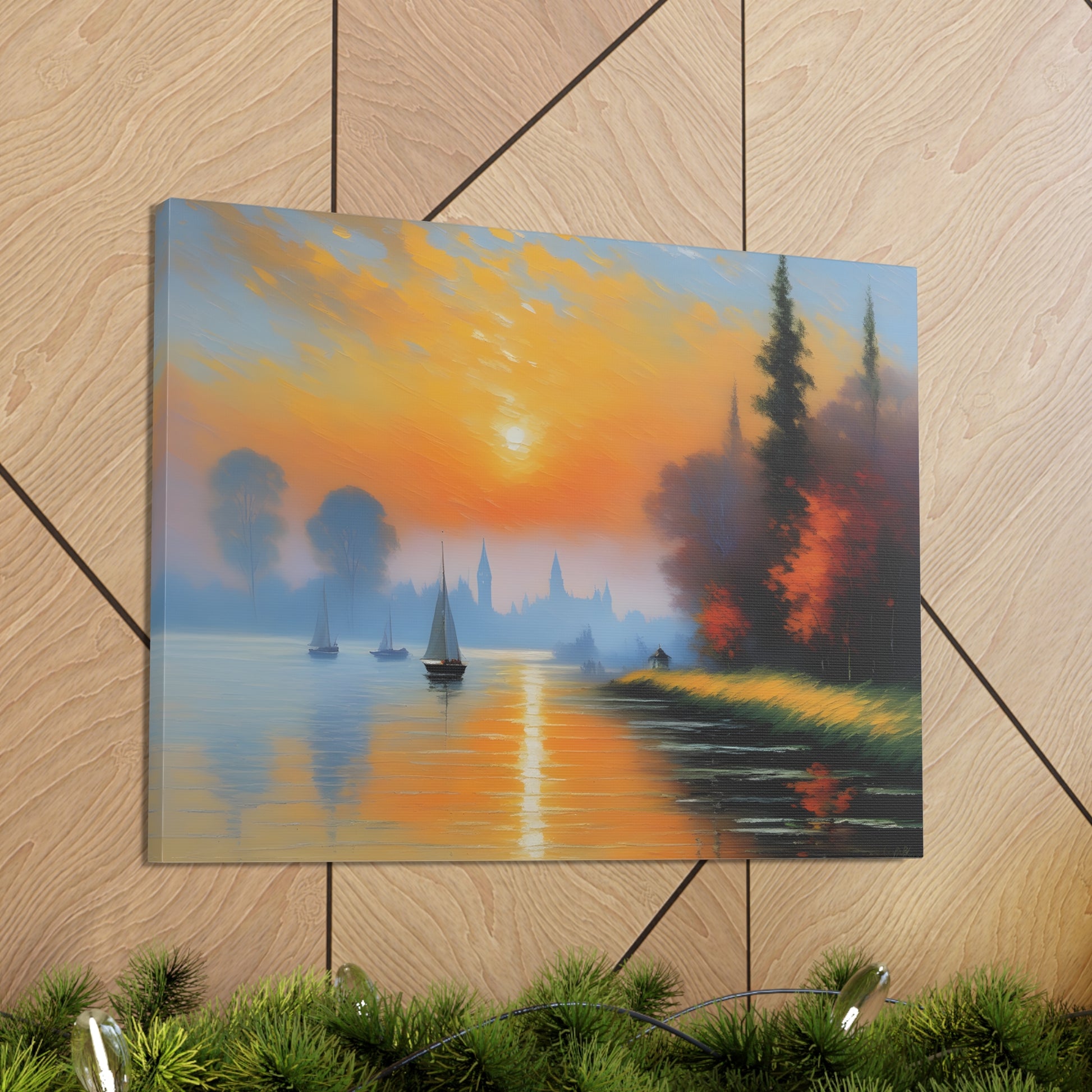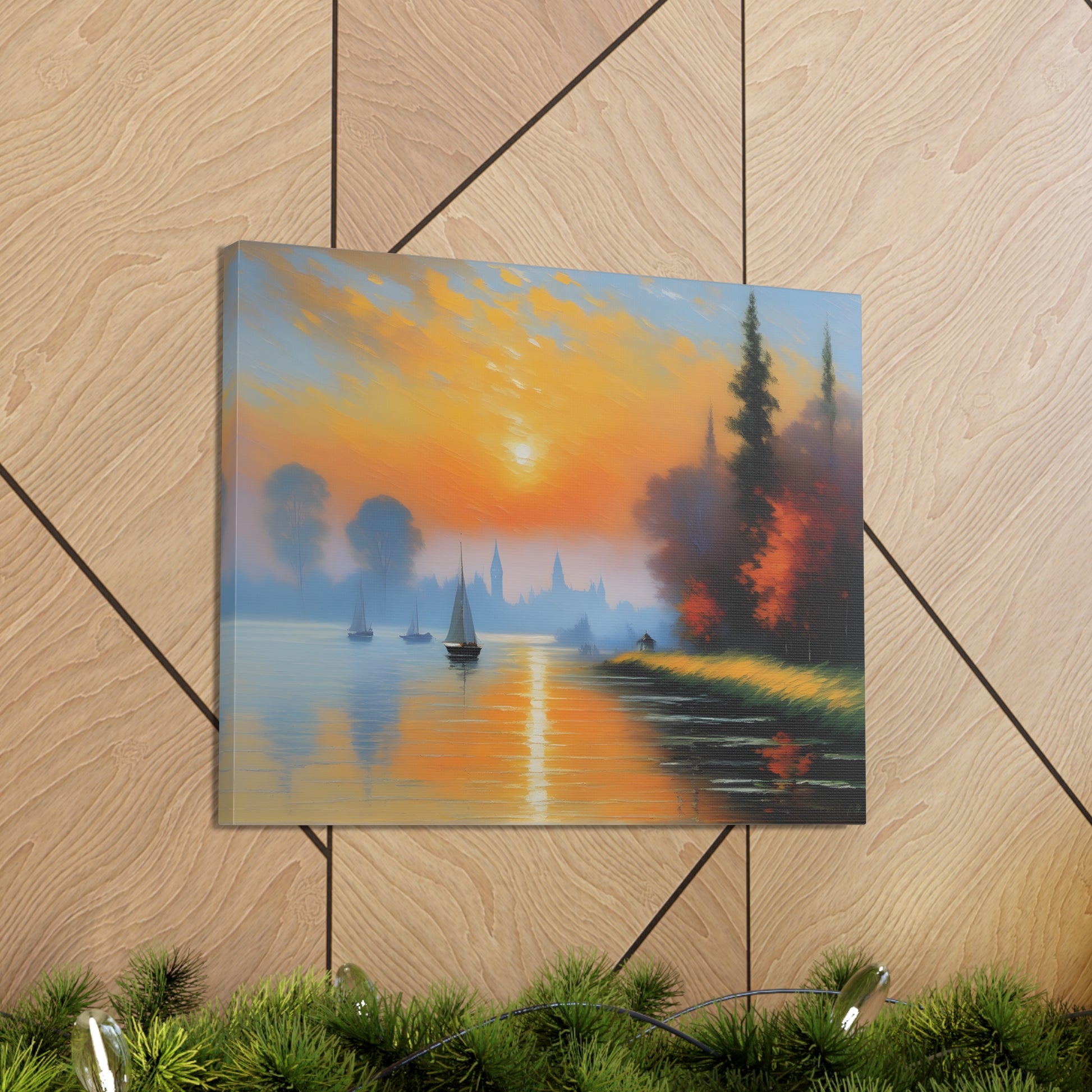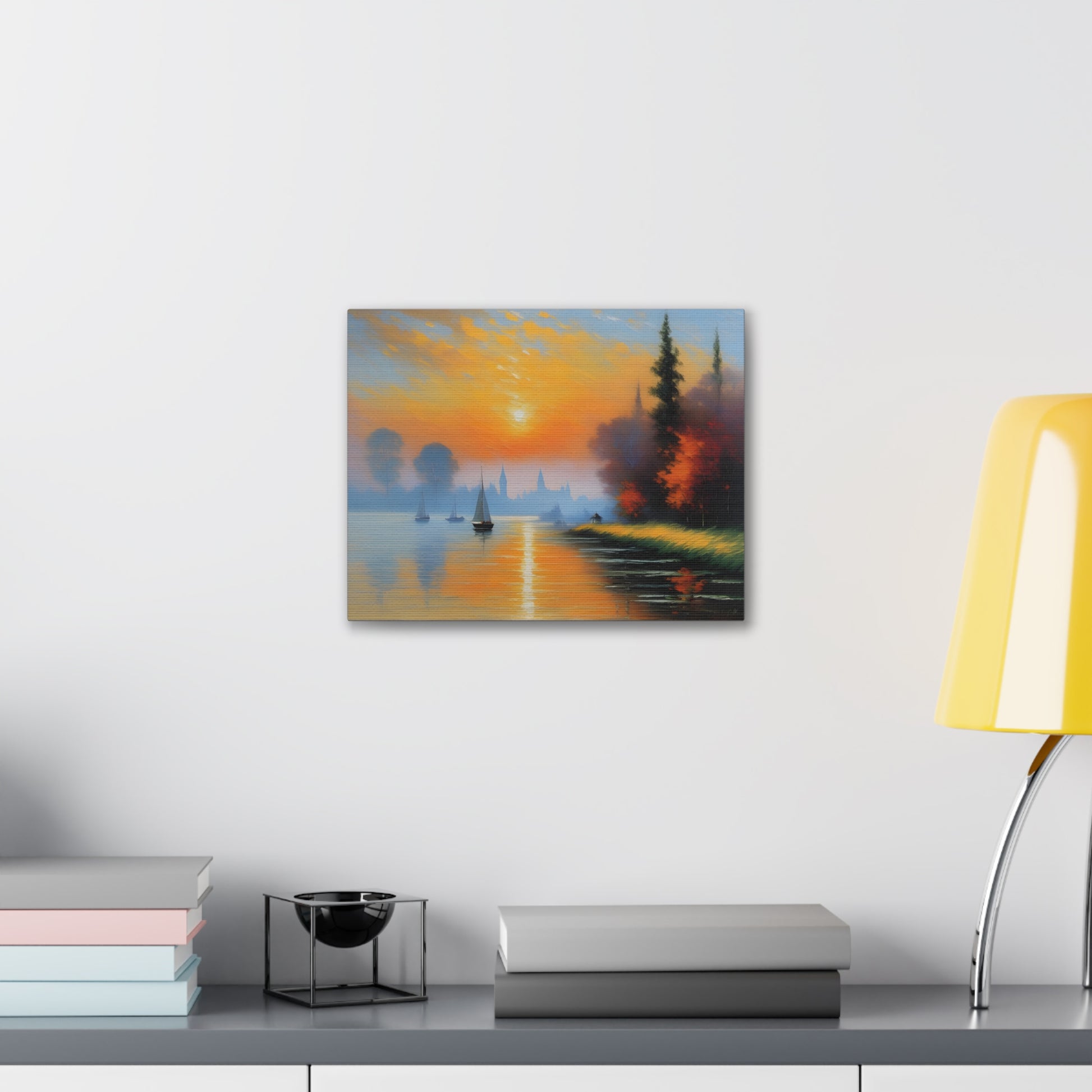 Immerse yourself in the serene beauty of "Lakeside Reflections," a captivating canvas artwork that transports you to tranquil waterside vistas. Expertly crafted on premium-quality cotton canvas, this piece captures the essence of calm and reflection with its breathtaking depiction of a lakeside scene.