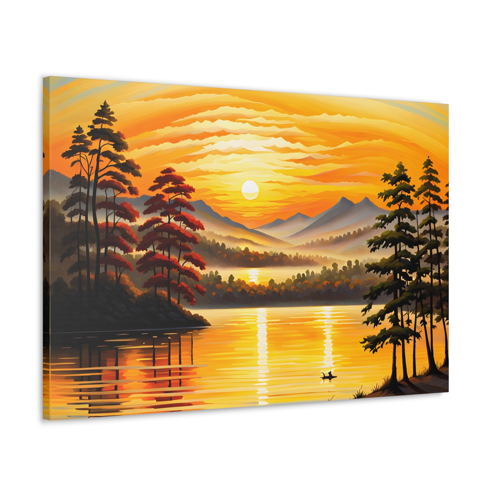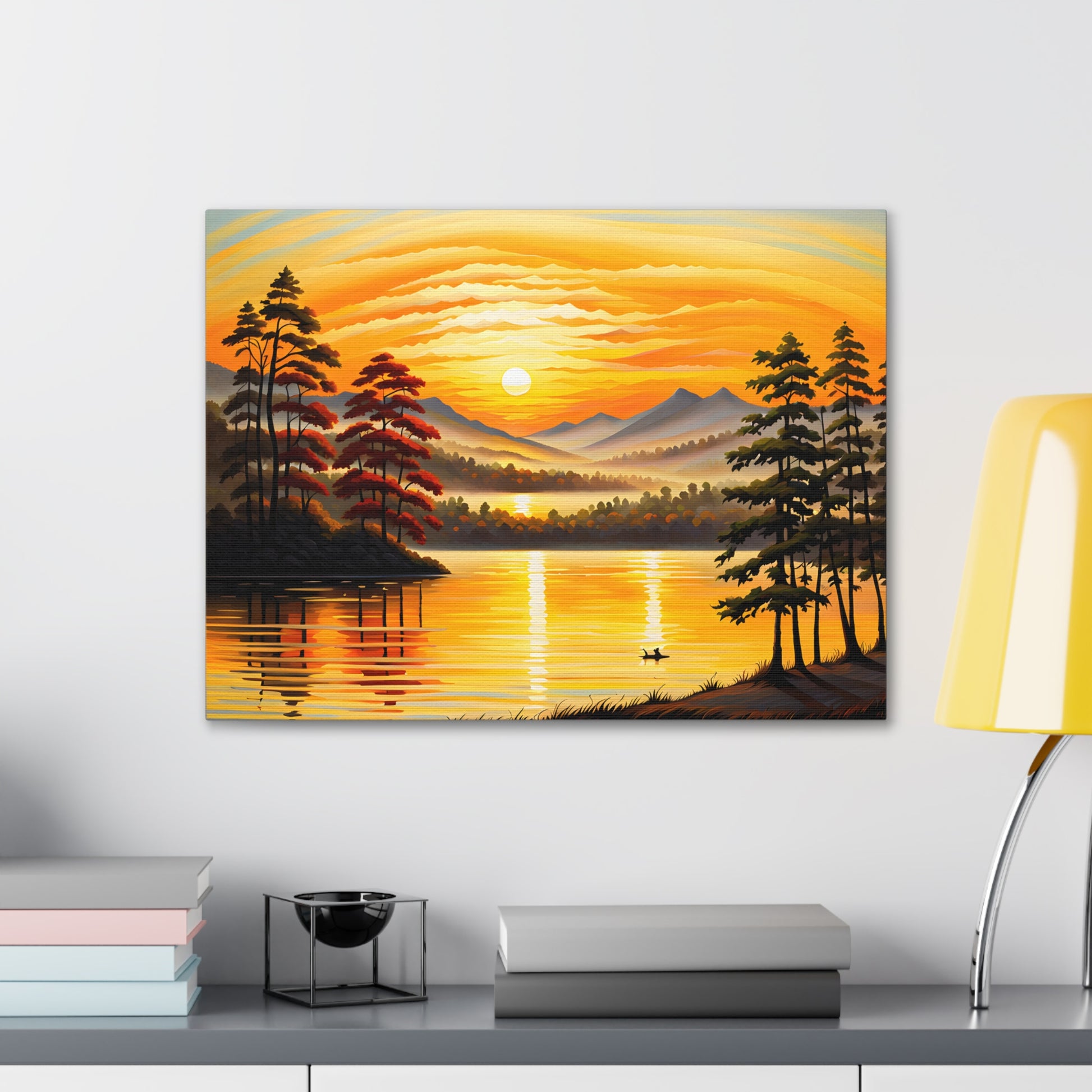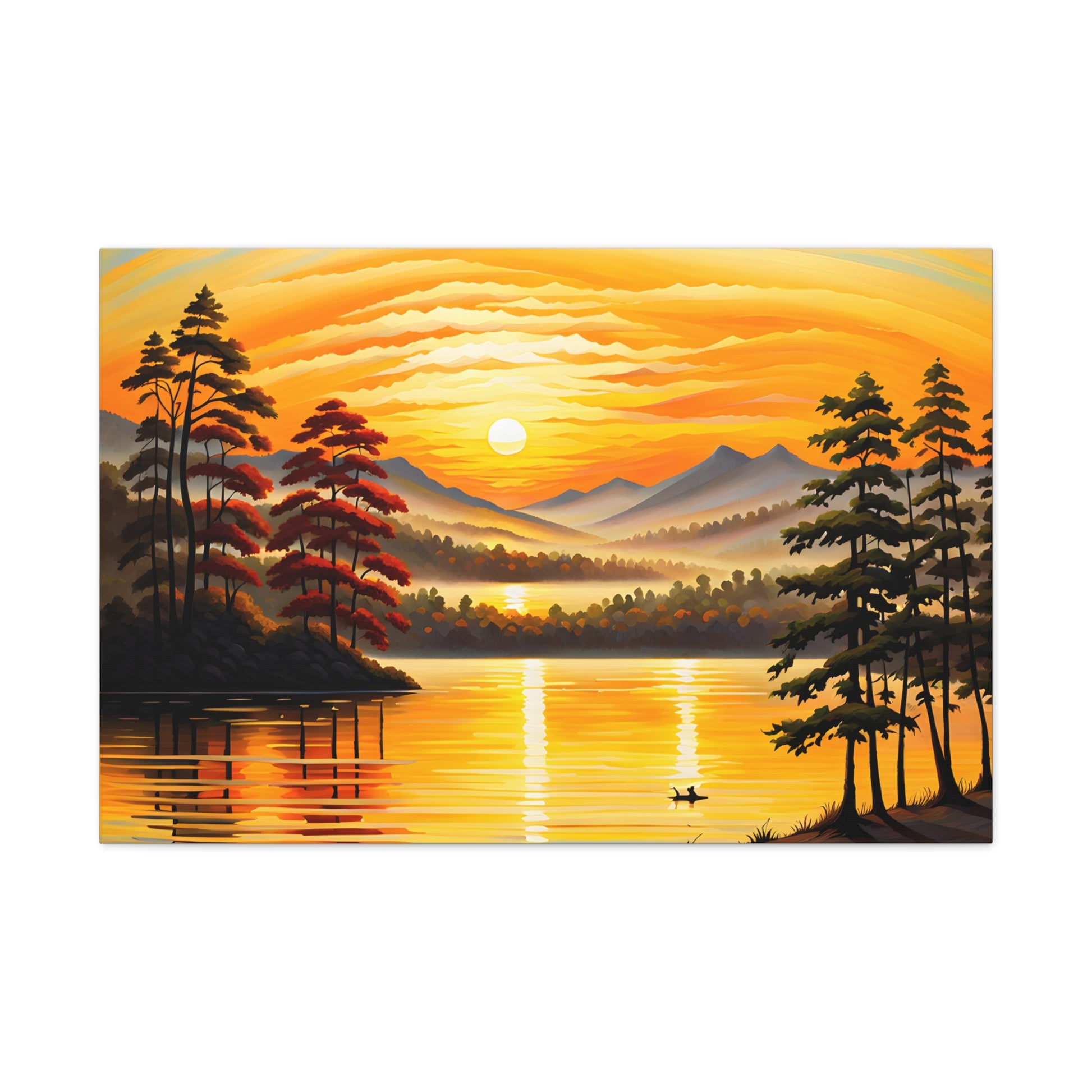 Immerse yourself in the tranquility of nature with "Lakeside Ripples." This artwork features a peaceful lakeside view framed by autumn trees, capturing the essence of still waters and calm reflection.