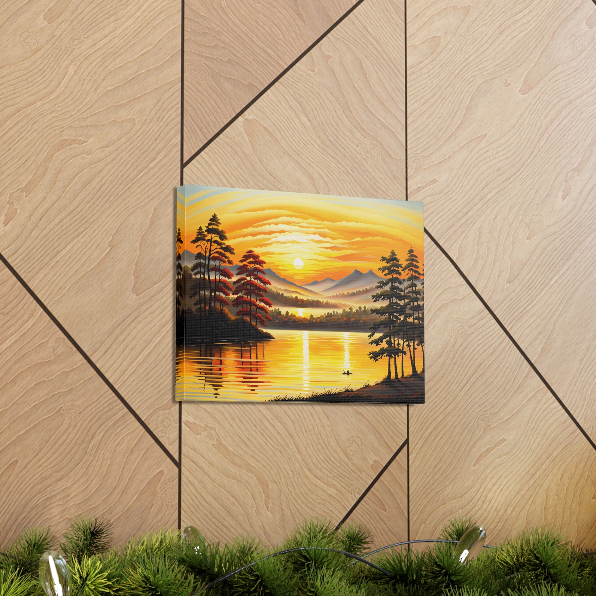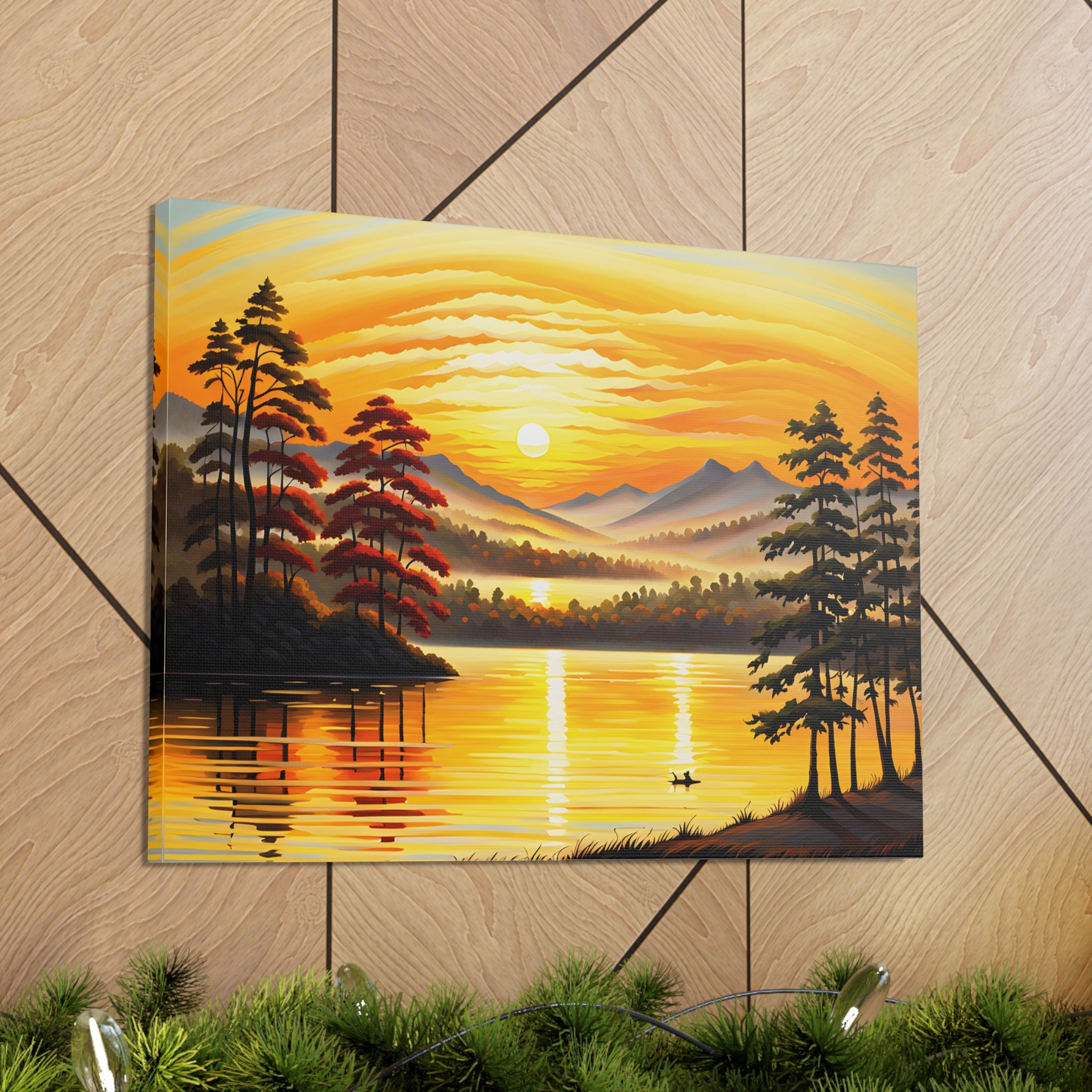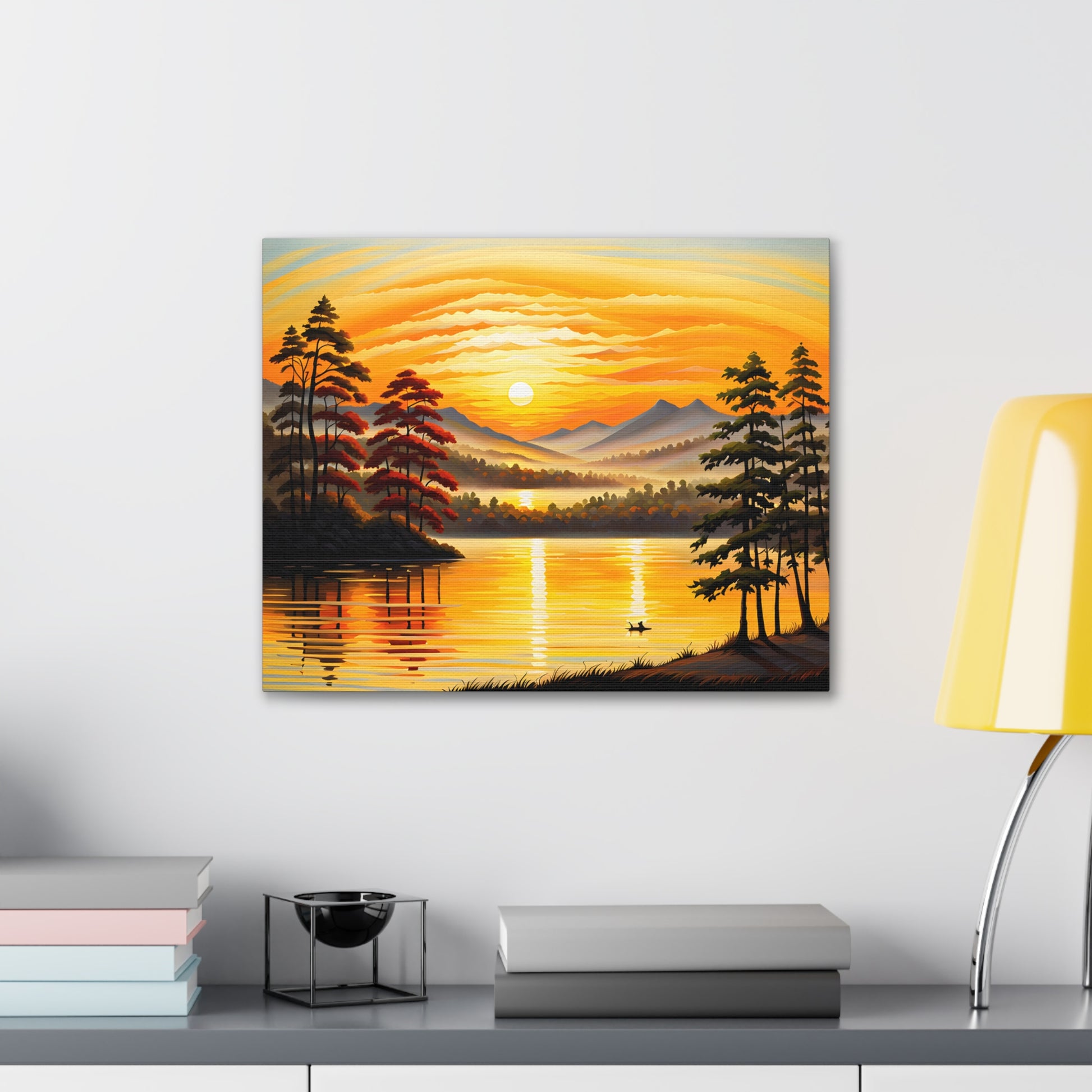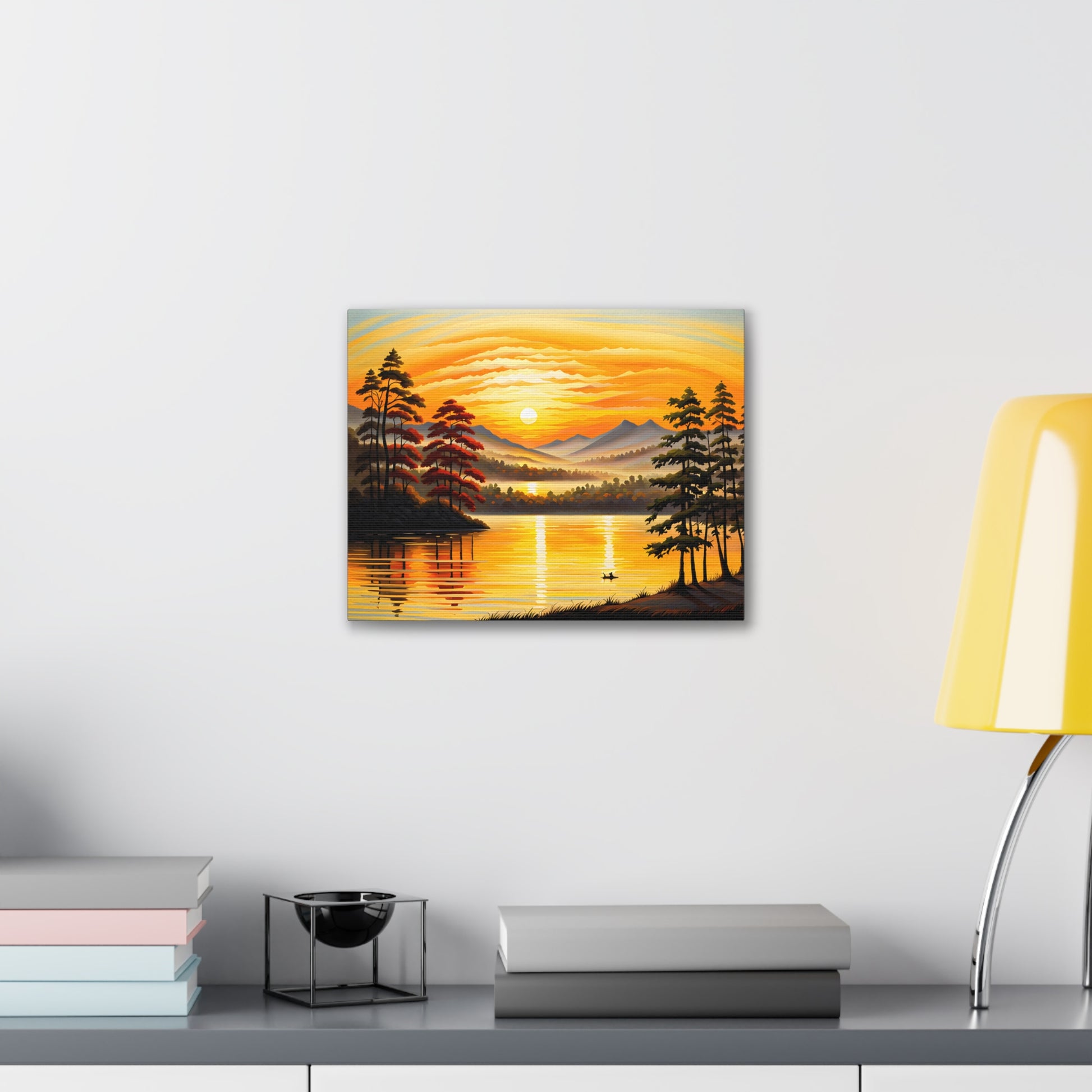 Immerse yourself in the tranquility of nature with "Lakeside Ripples." This artwork features a peaceful lakeside view framed by autumn trees, capturing the essence of still waters and calm reflection.