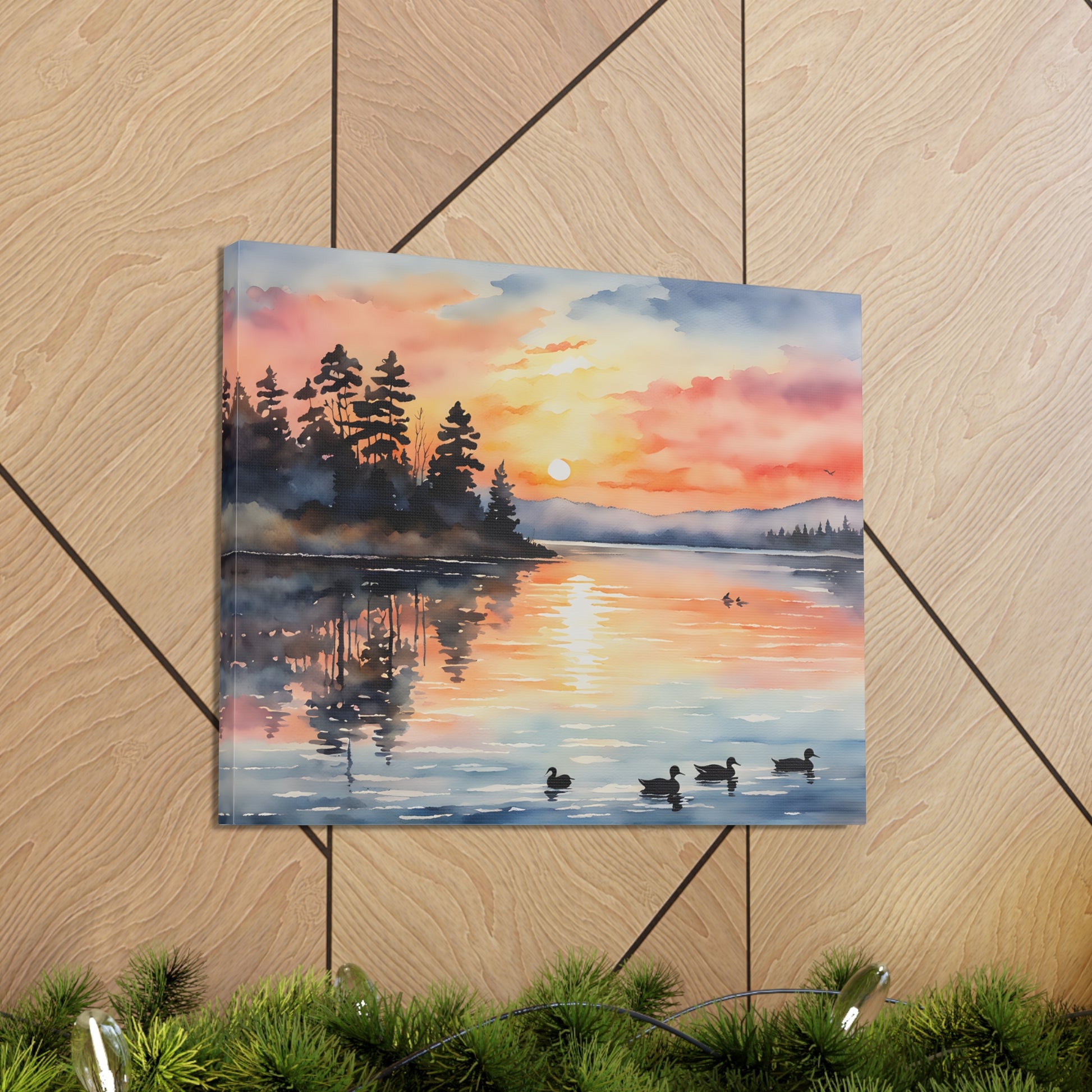 Indulge in the tranquil beauty of nature with our "Lakeside Serenity: Watercolor Wall Décor." Crafted on premium cotton canvas, this enchanting artwork captures the serene charm of a lakeside retreat.