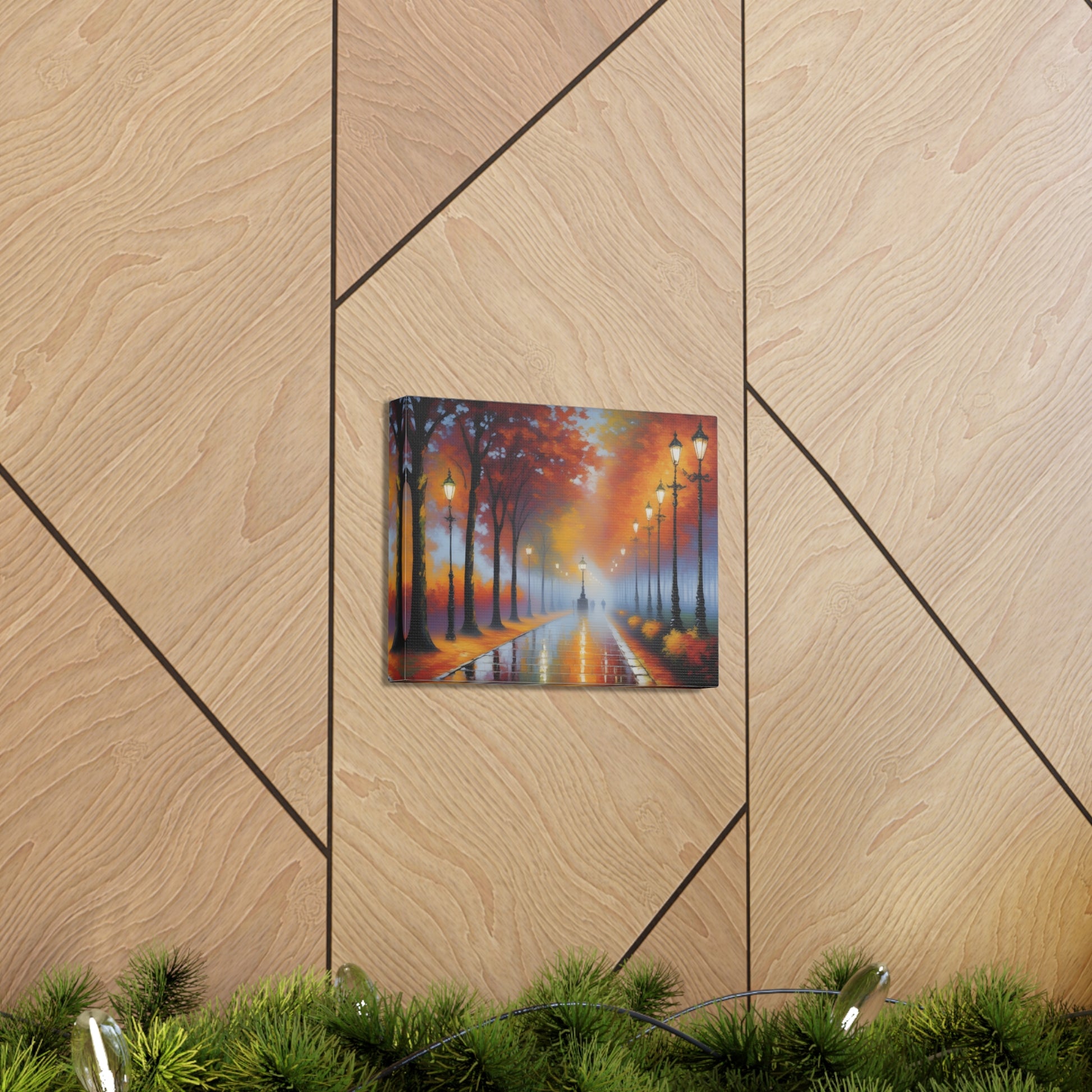 Experience the tranquil charm of "Lamp Post Serenity," a captivating canvas artwork that transports you to a peaceful street scene bathed in the warm glow of vintage lamps. Crafted with care on premium-quality cotton canvas, this piece radiates a sense of calm and nostalgia, making it the perfect addition to any indoor space.