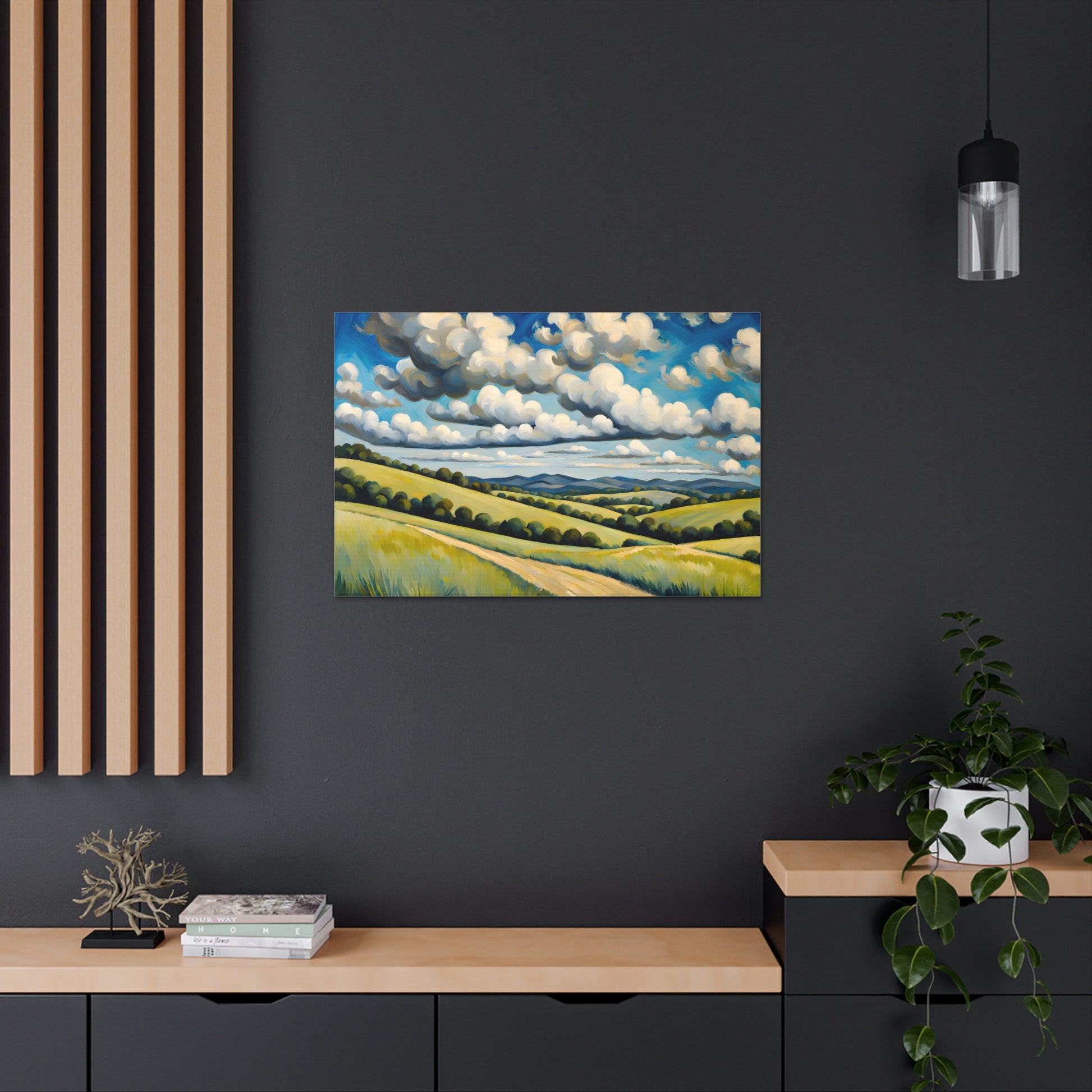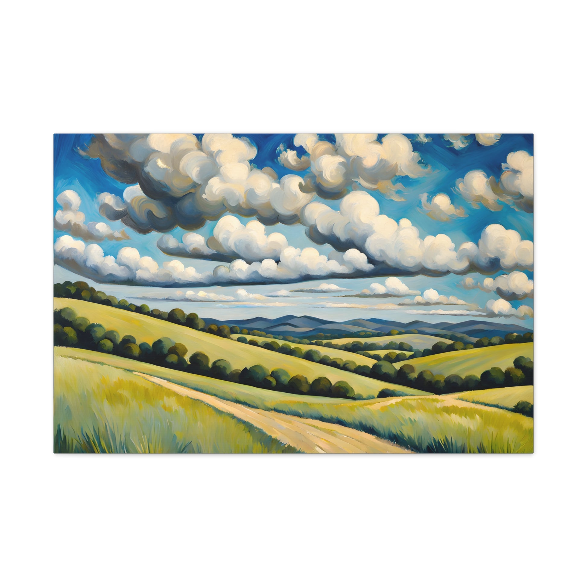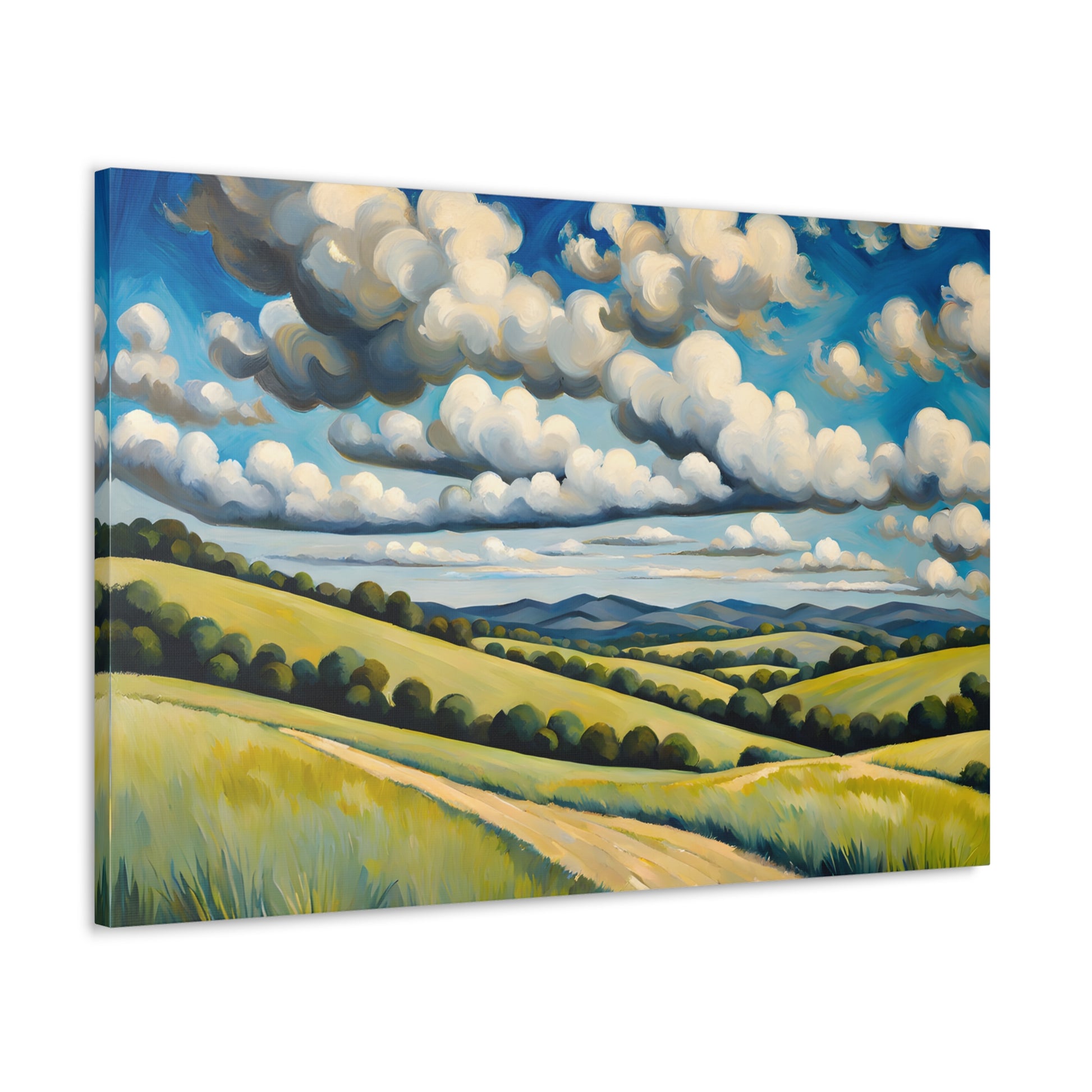 "Meadow Bloom" captures the endless beauty of rolling hills covered in vibrant wildflowers beneath dramatic clouds. This painting brings the fresh essence of spring and wide-open landscapes to any room.