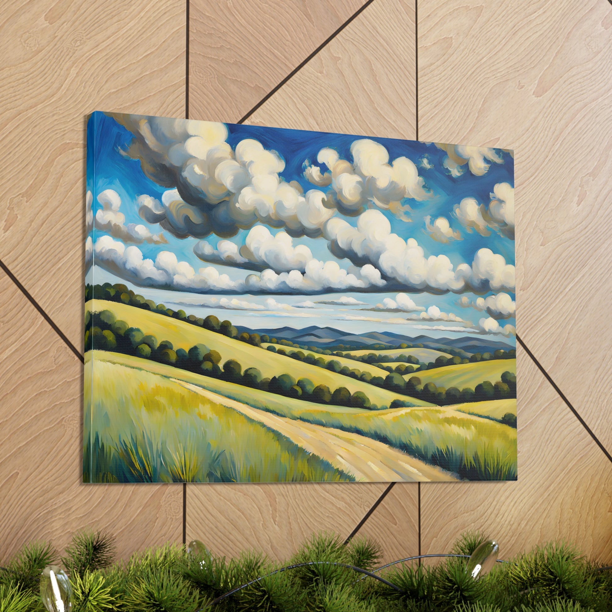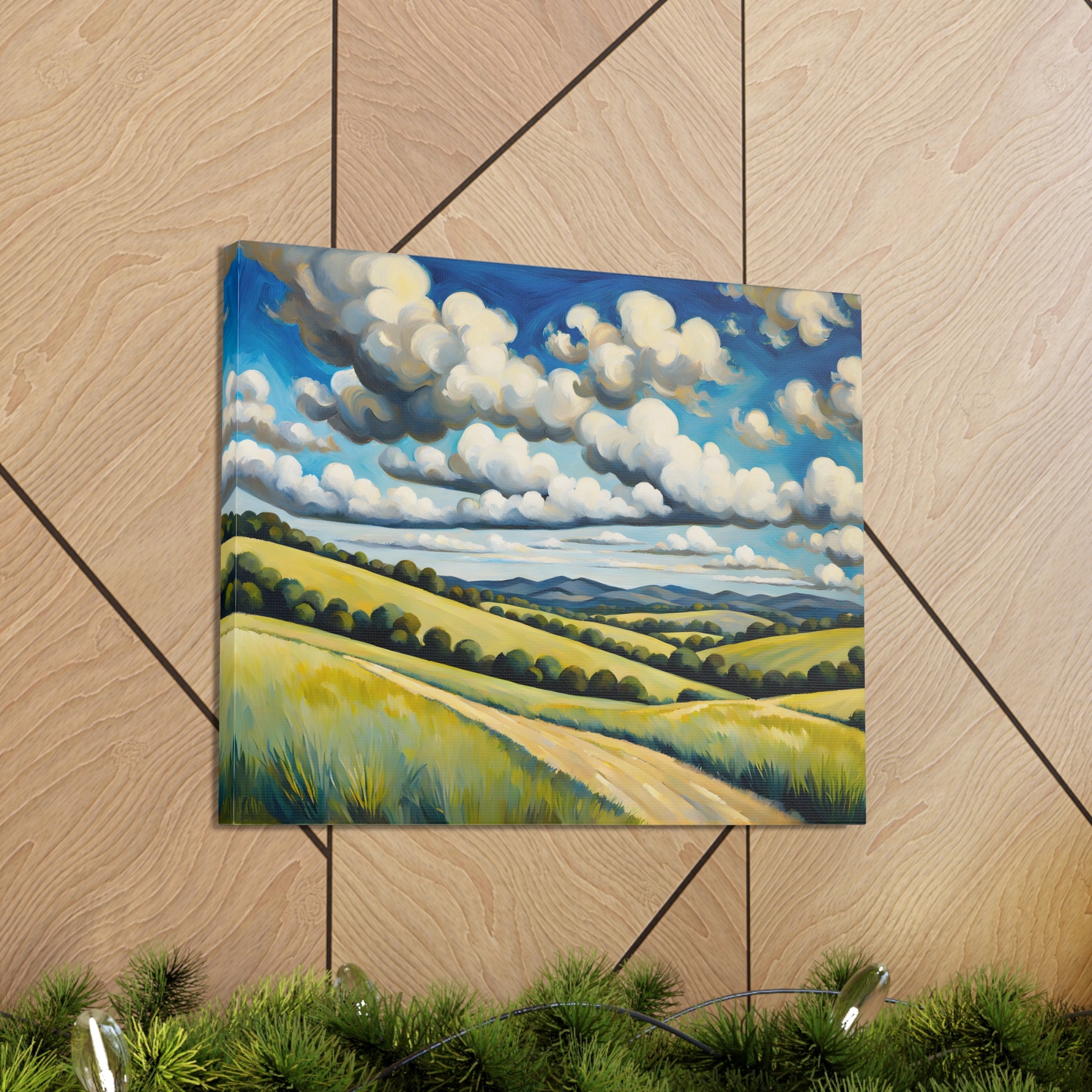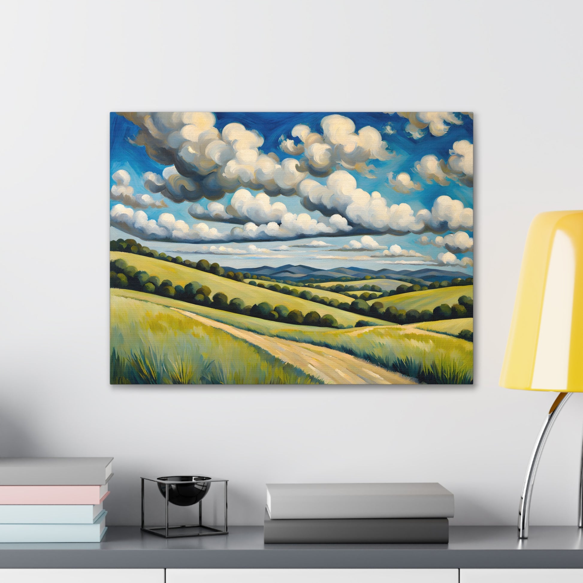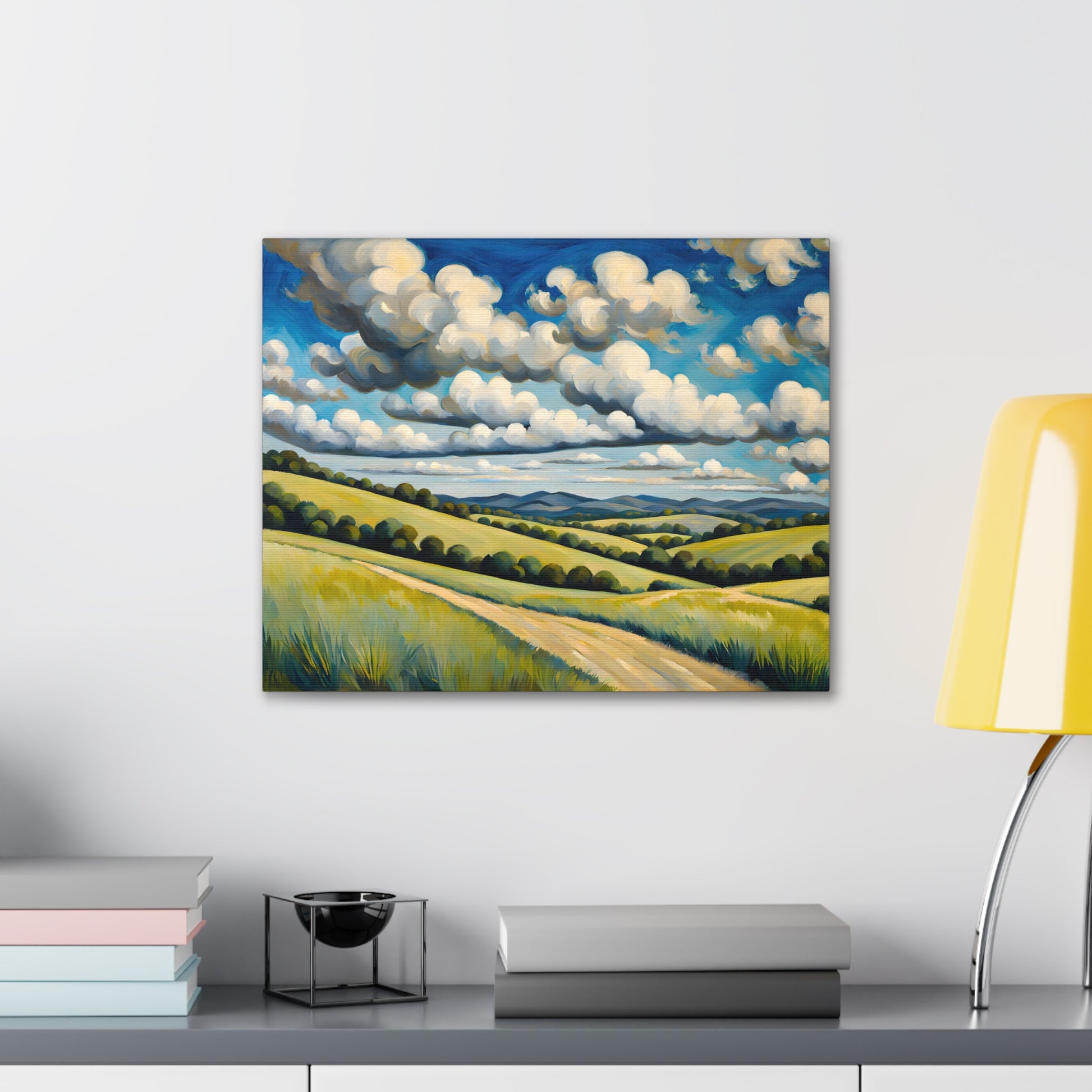 "Meadow Bloom" captures the endless beauty of rolling hills covered in vibrant wildflowers beneath dramatic clouds. This painting brings the fresh essence of spring and wide-open landscapes to any room.