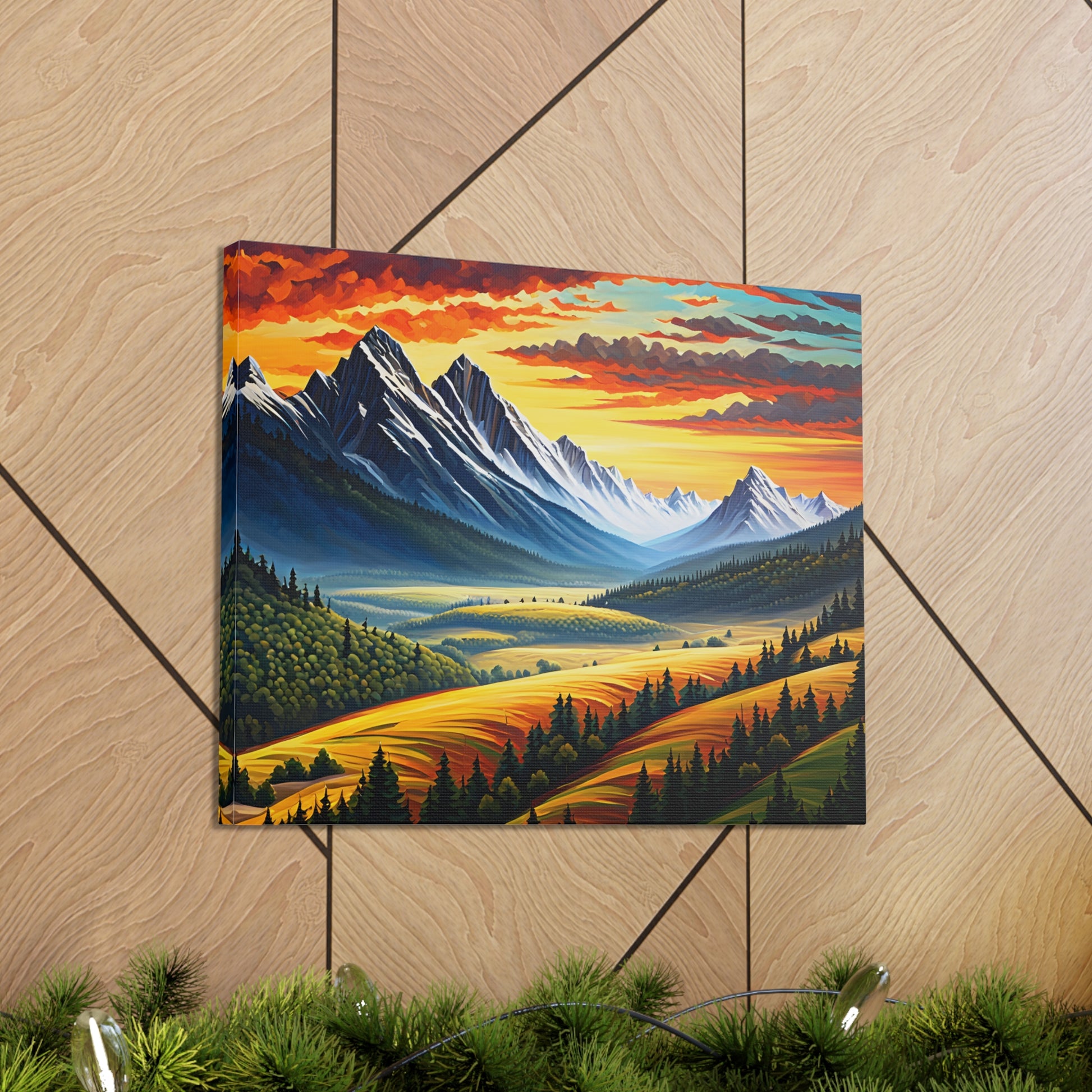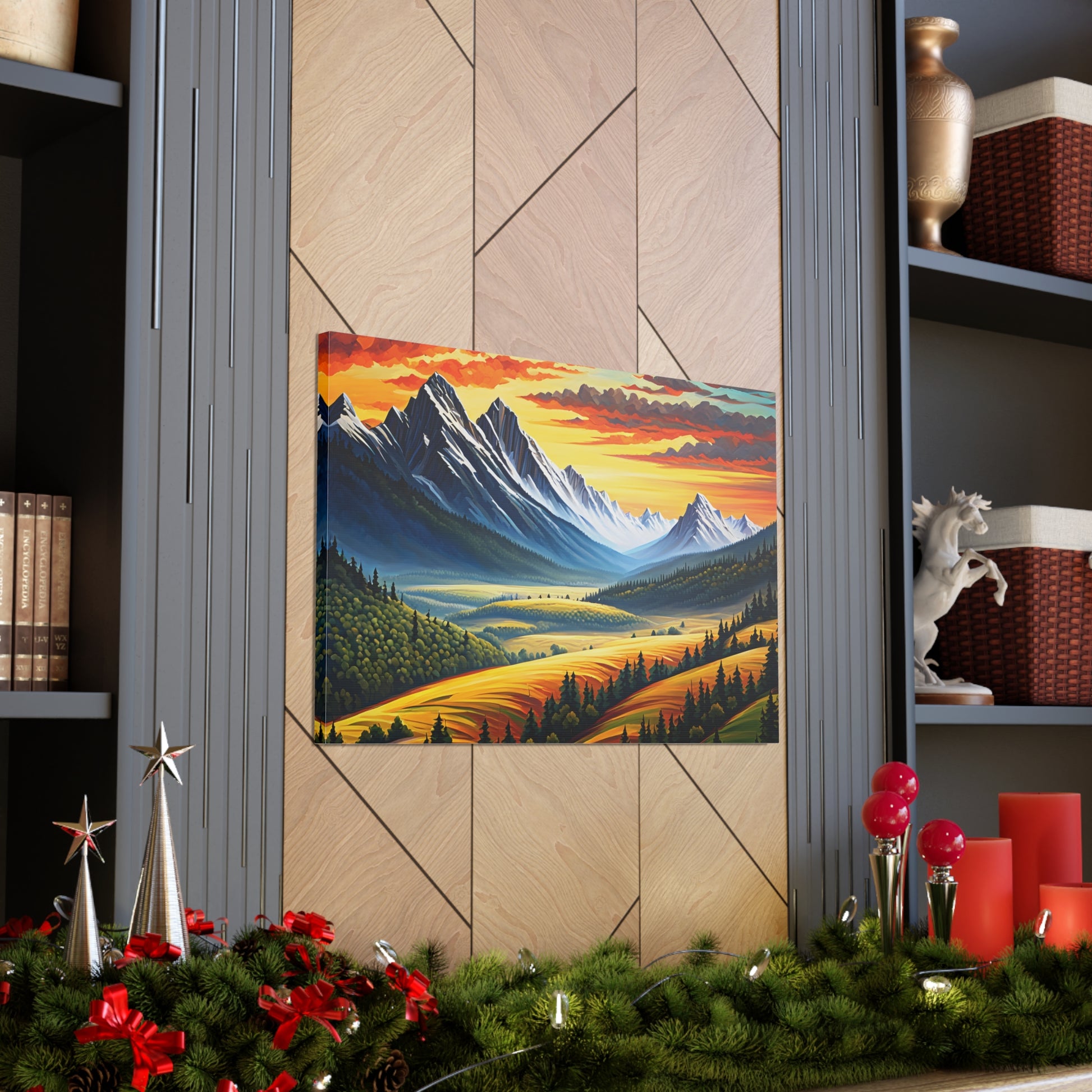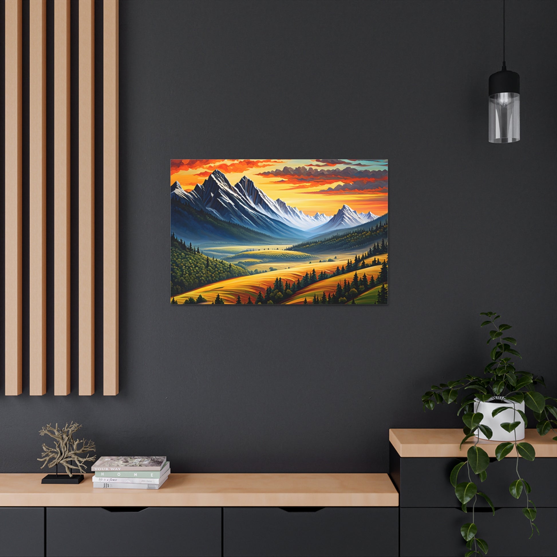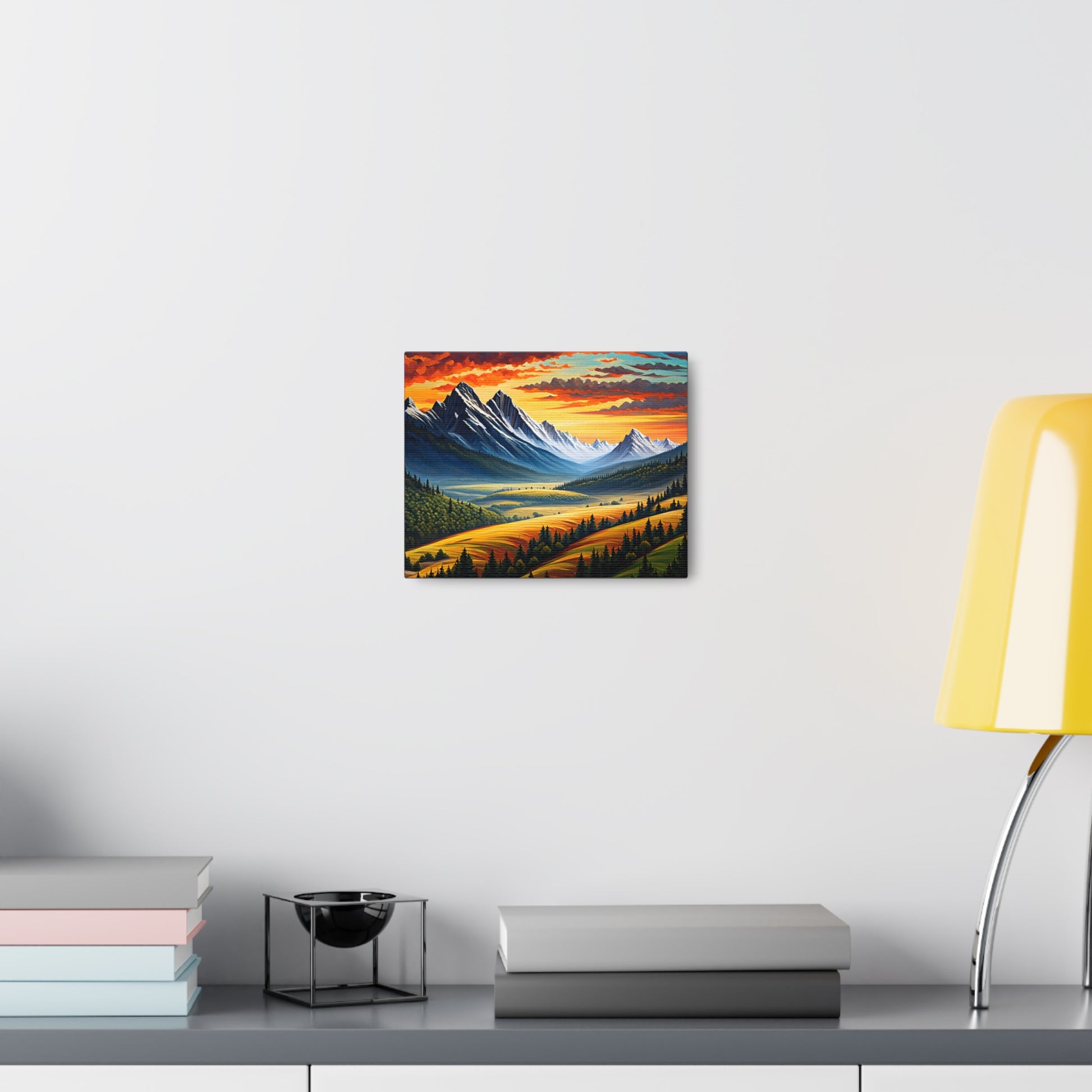 Feel the majestic presence of the mountains with "Mountain Echo," a powerful portrayal of towering peaks against a vibrant sunset sky. This artwork brings the grandeur of nature into your living space.